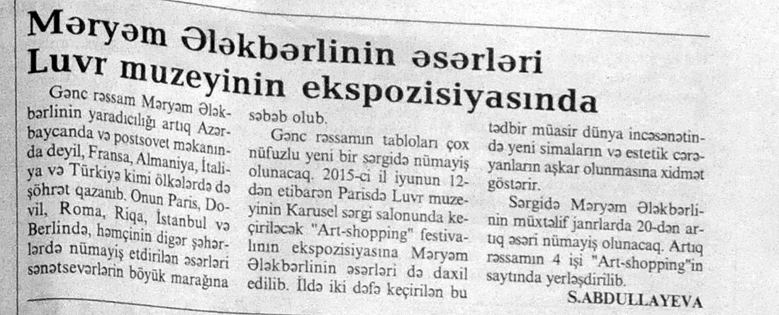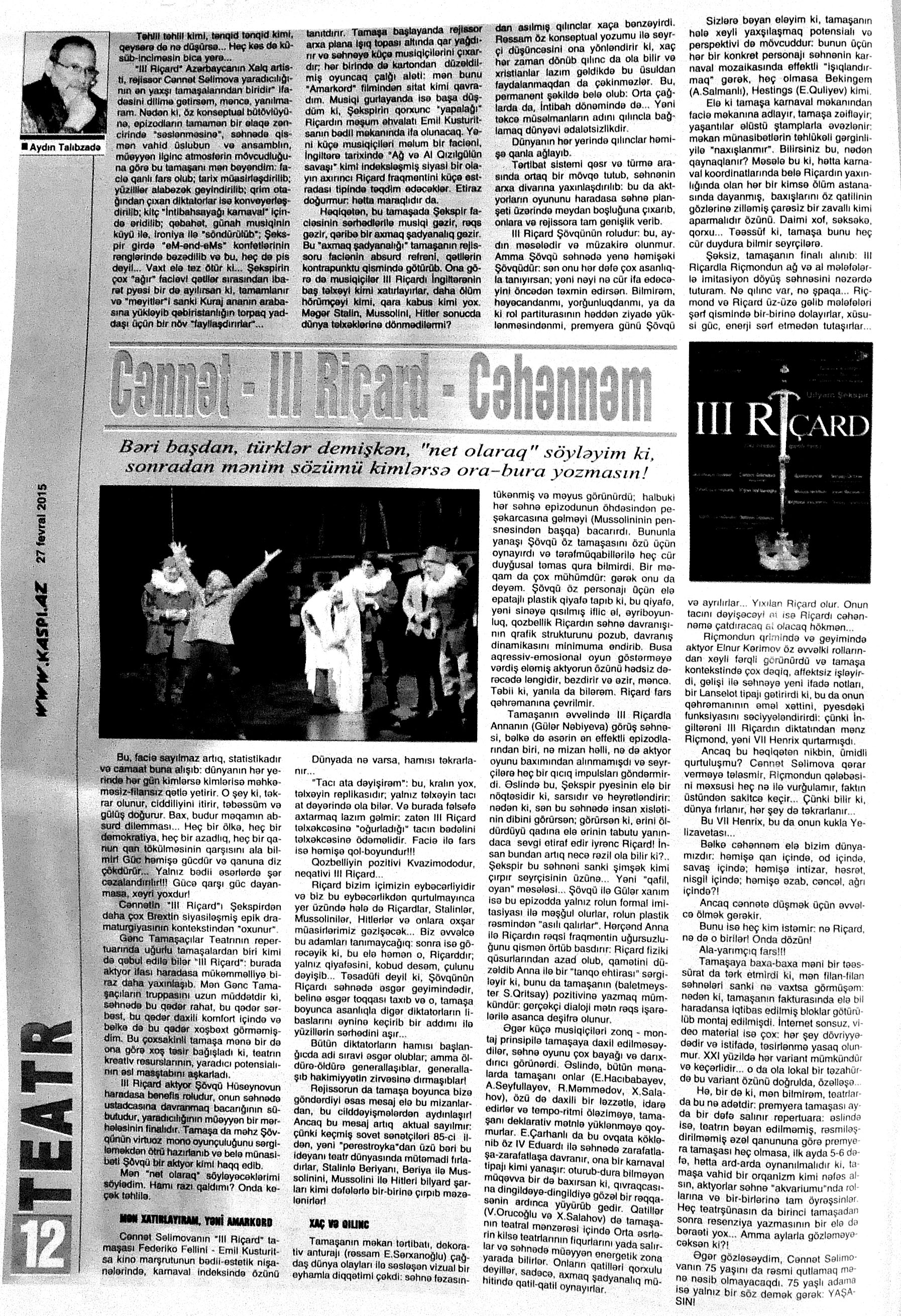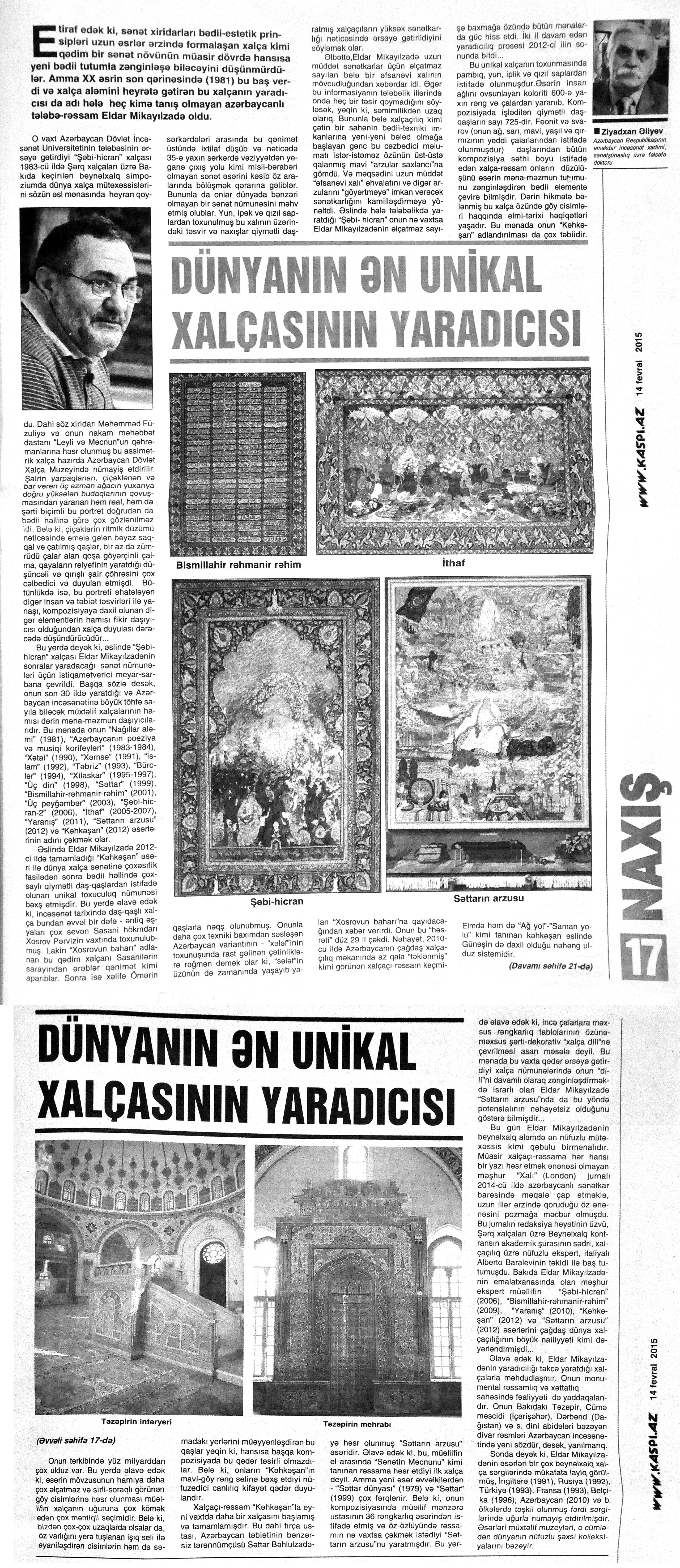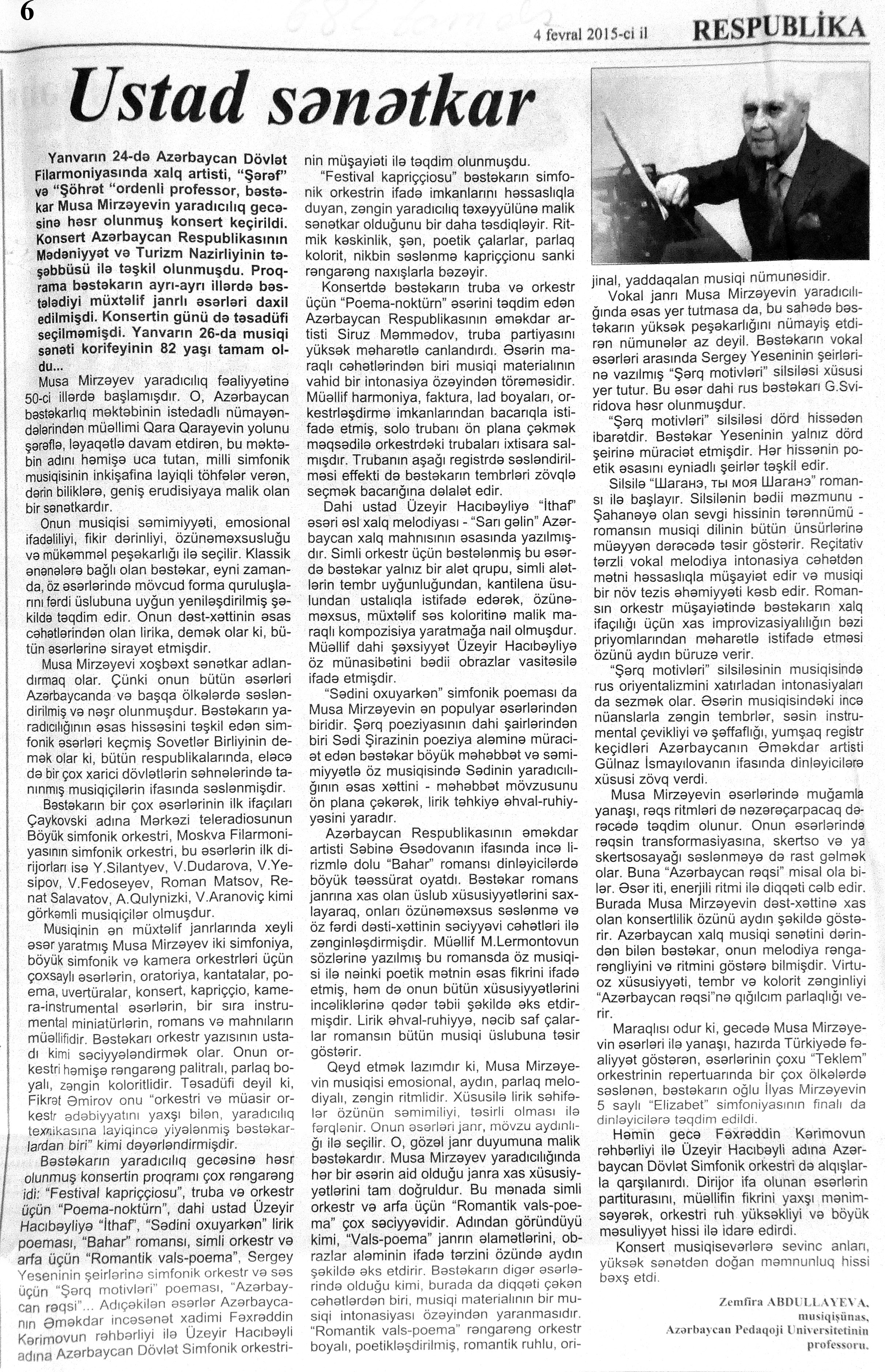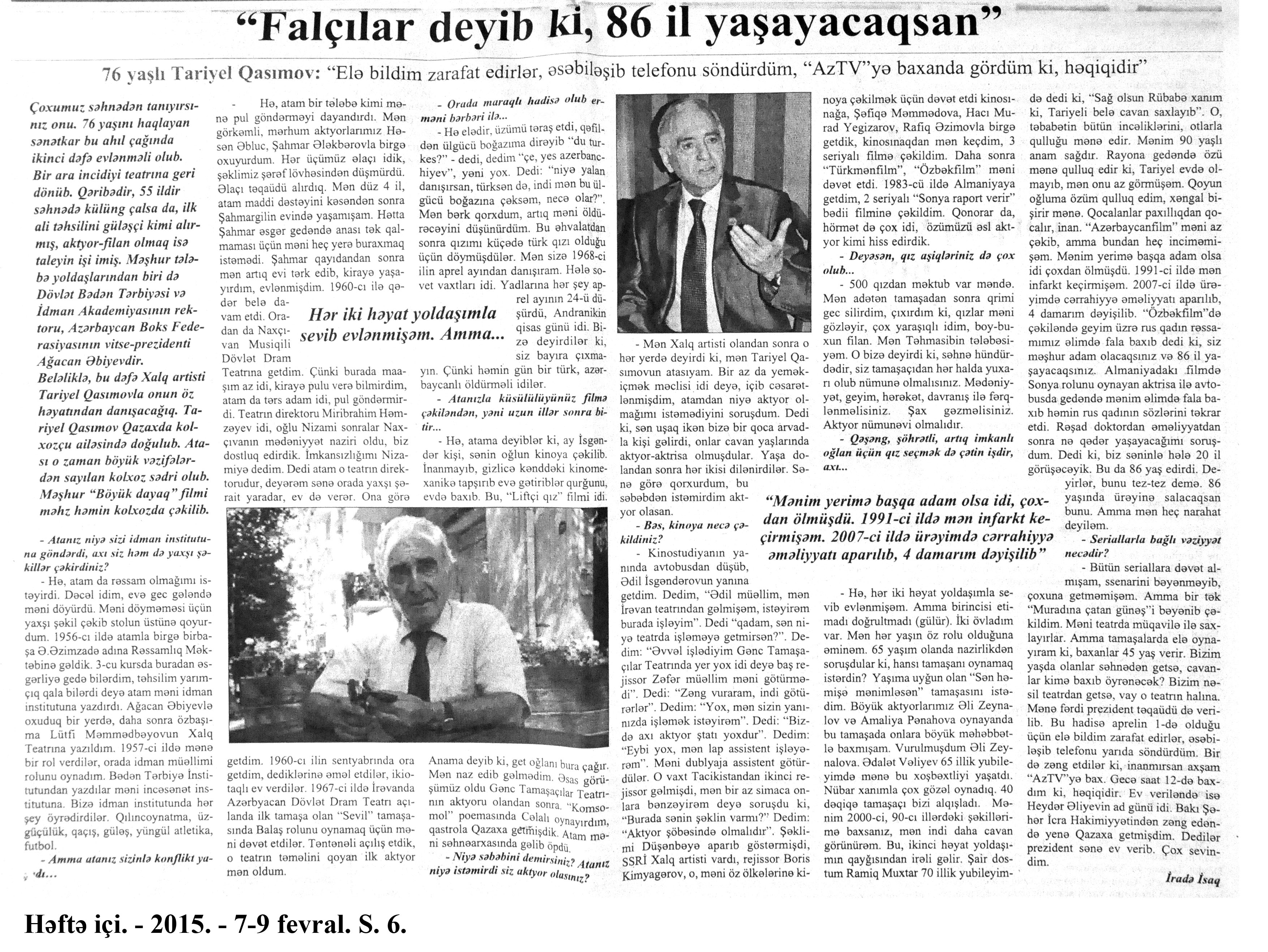 S.7; Mədəniyyət.- 2015.- 4 fevral.- S.9.