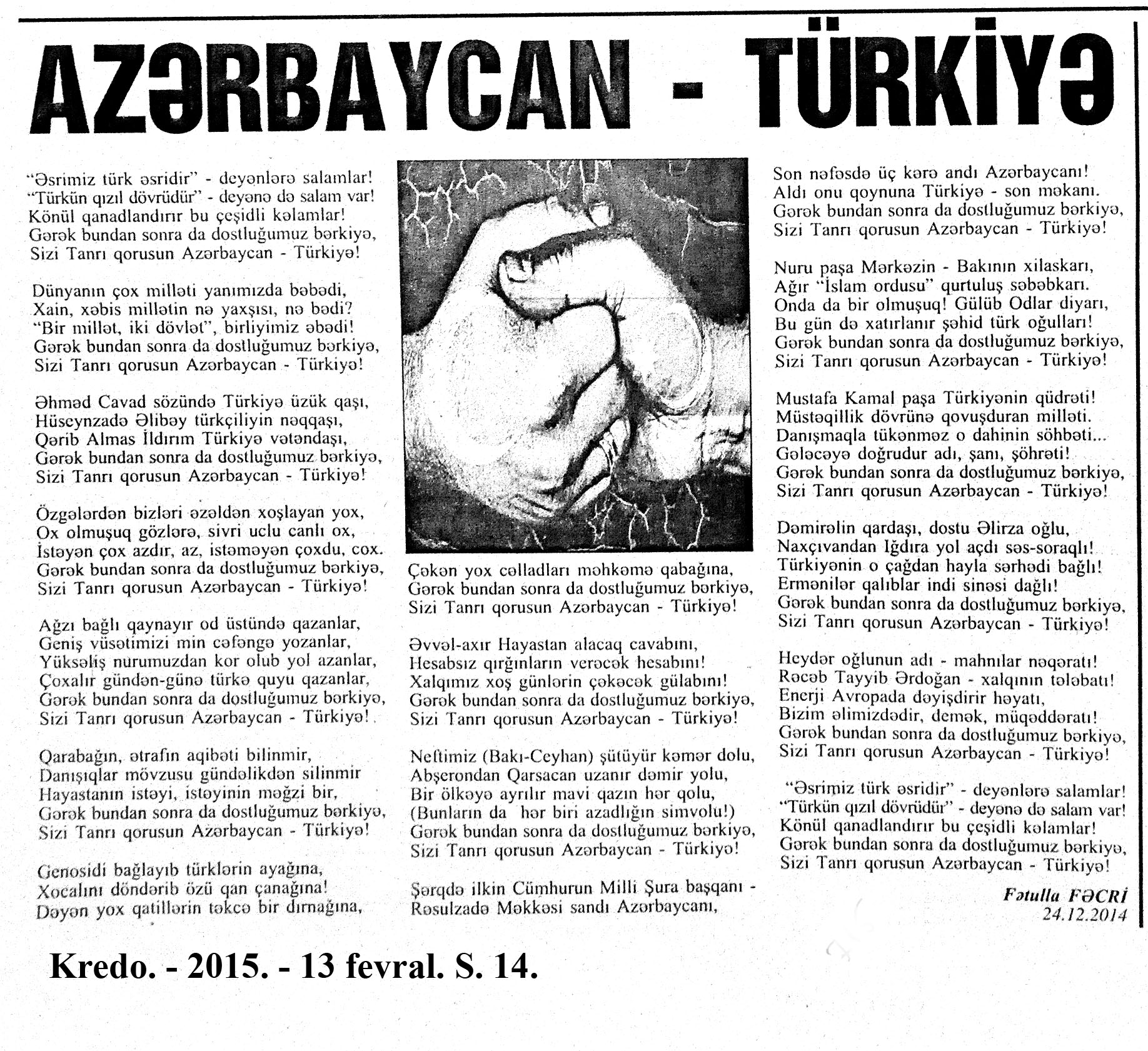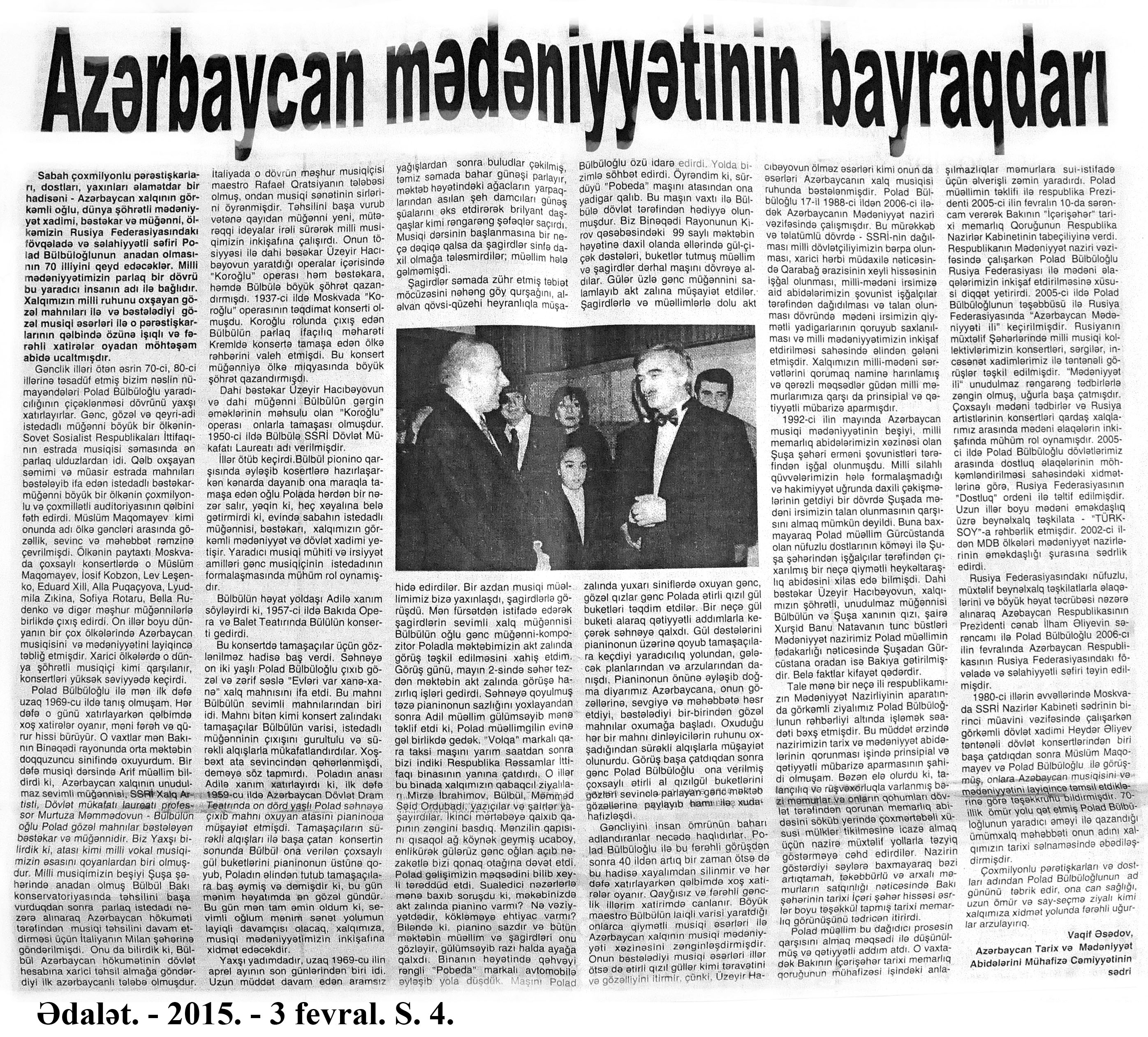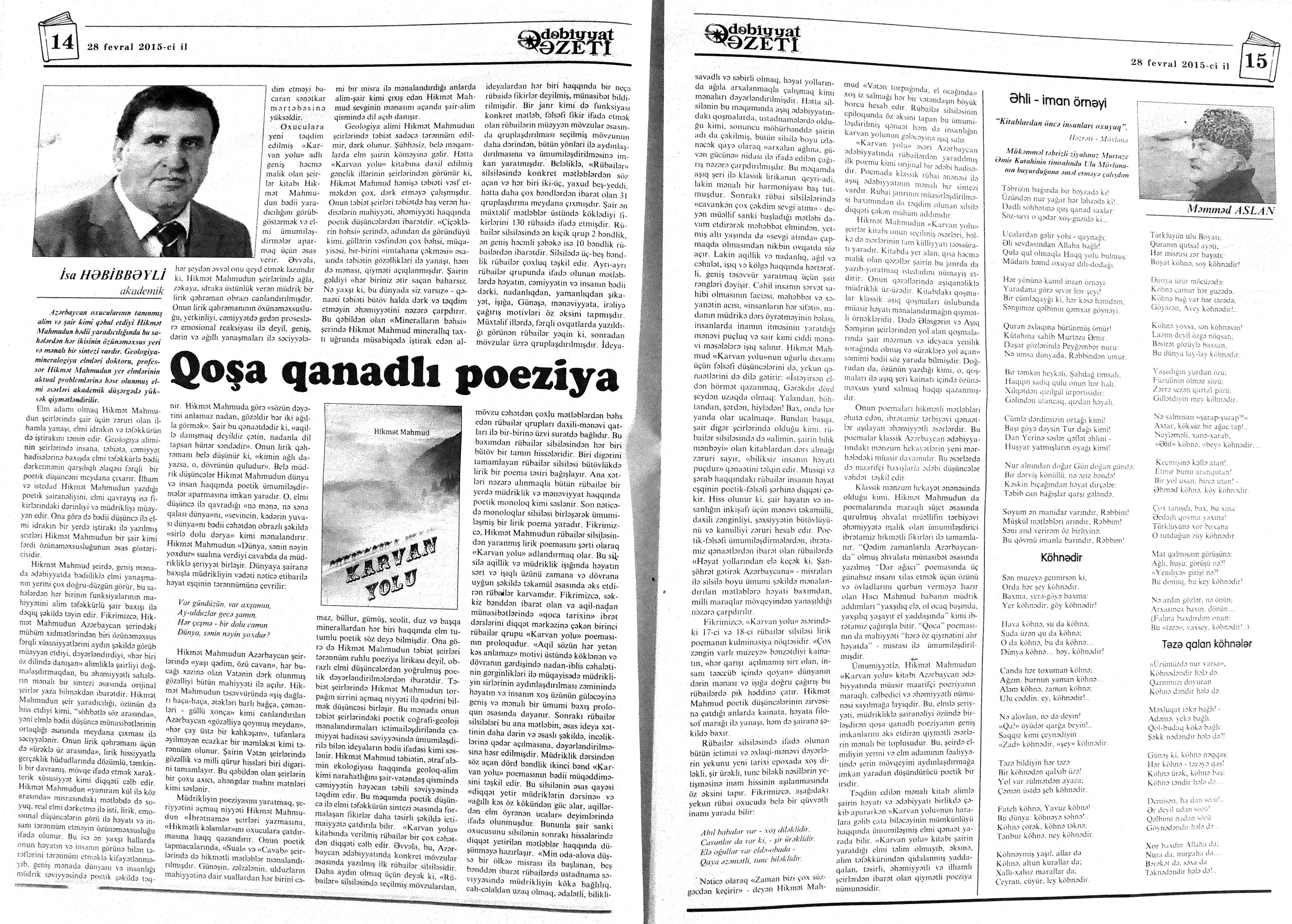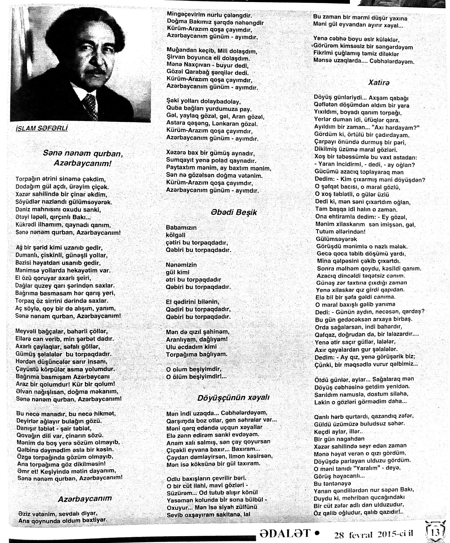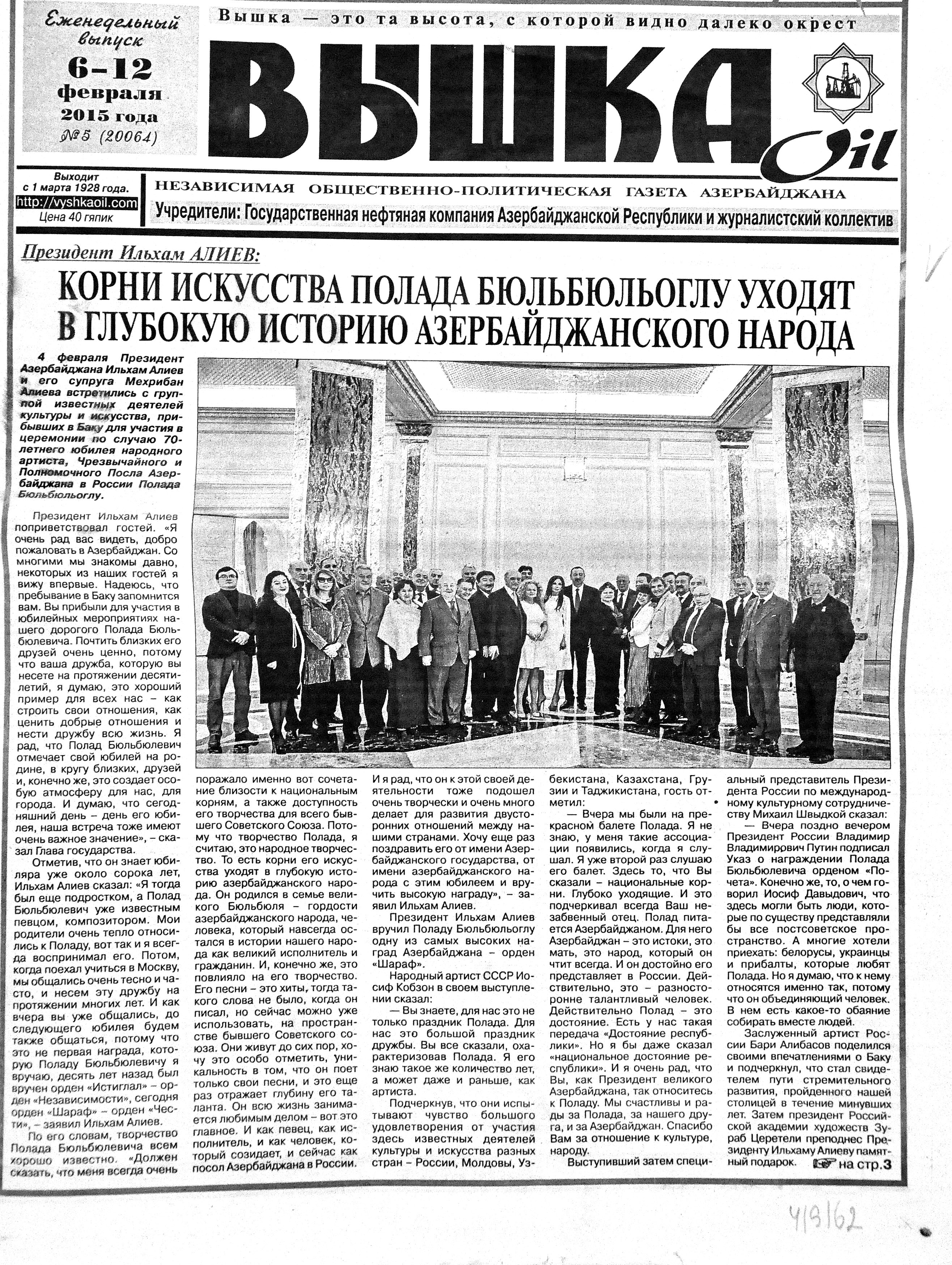 //Азербайджанские известия.-2015. - 28 февраля.- С. 1.