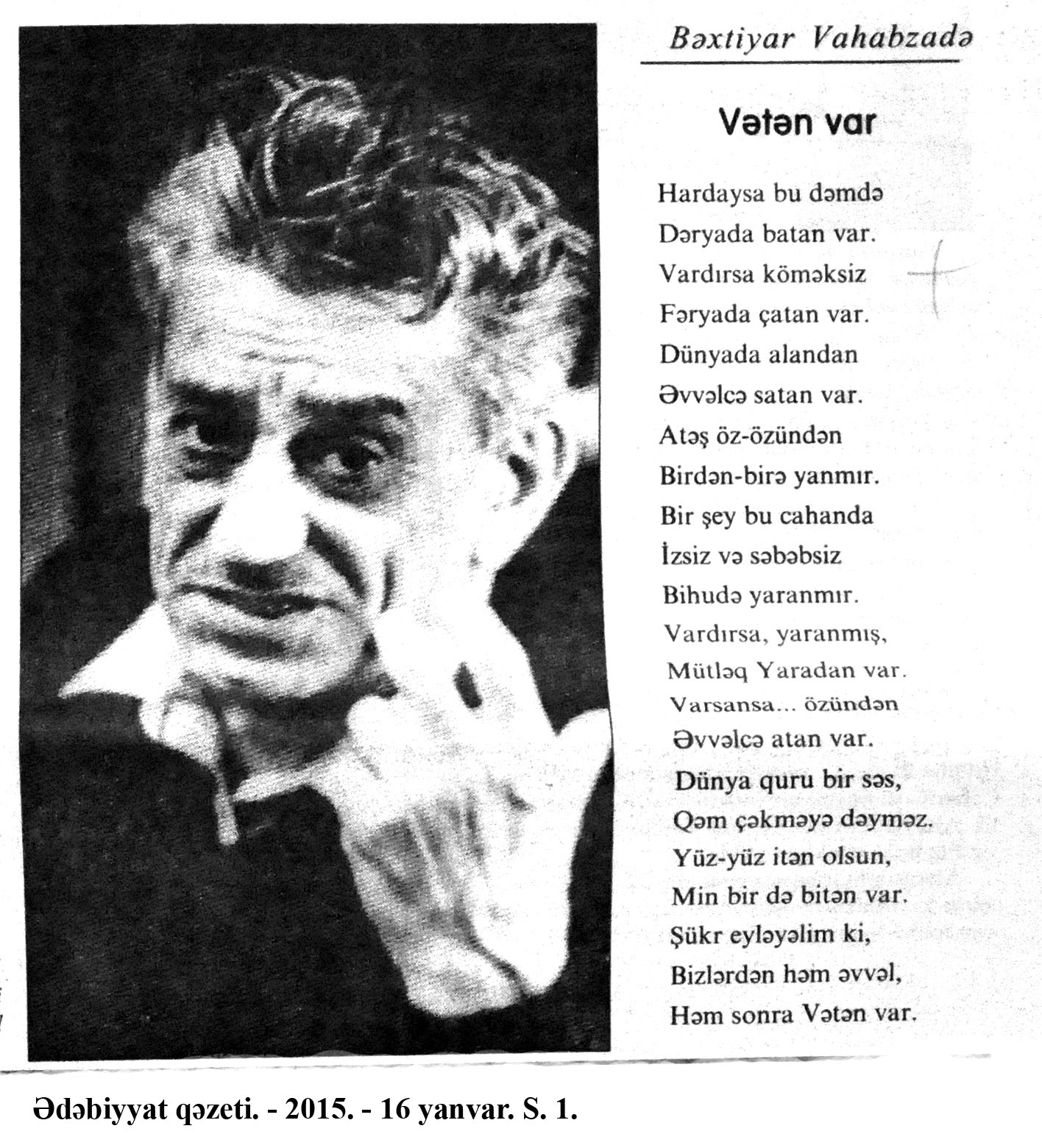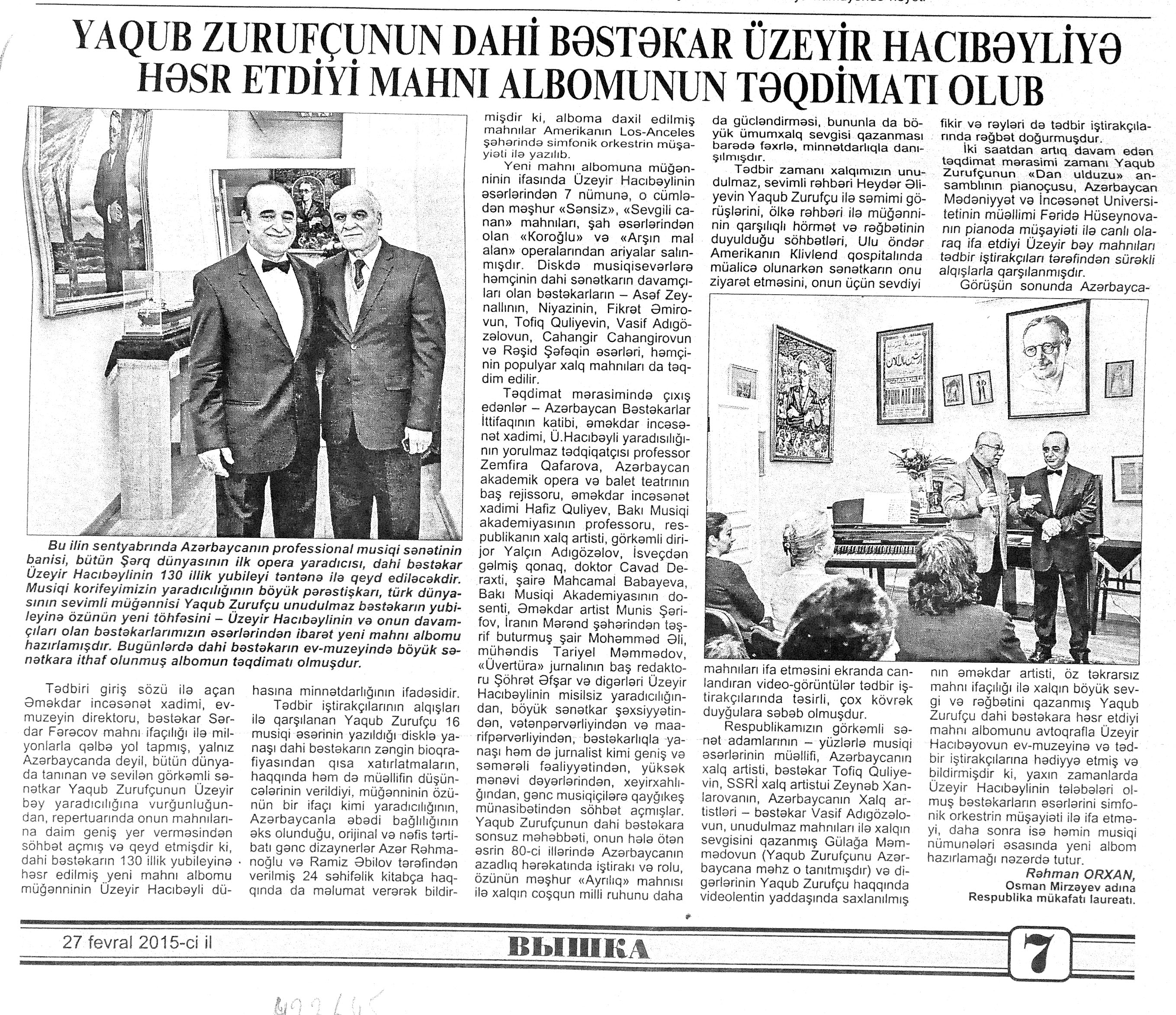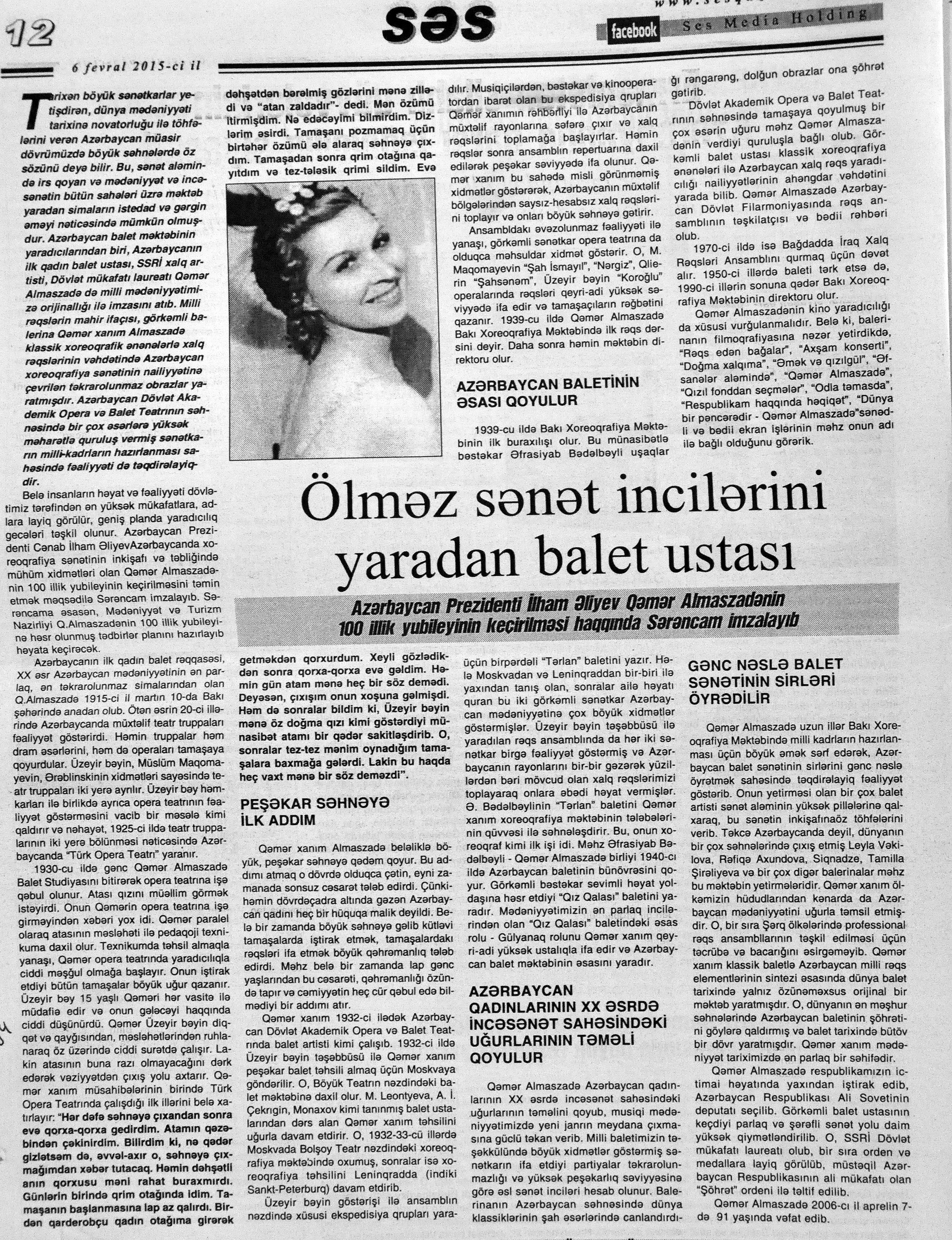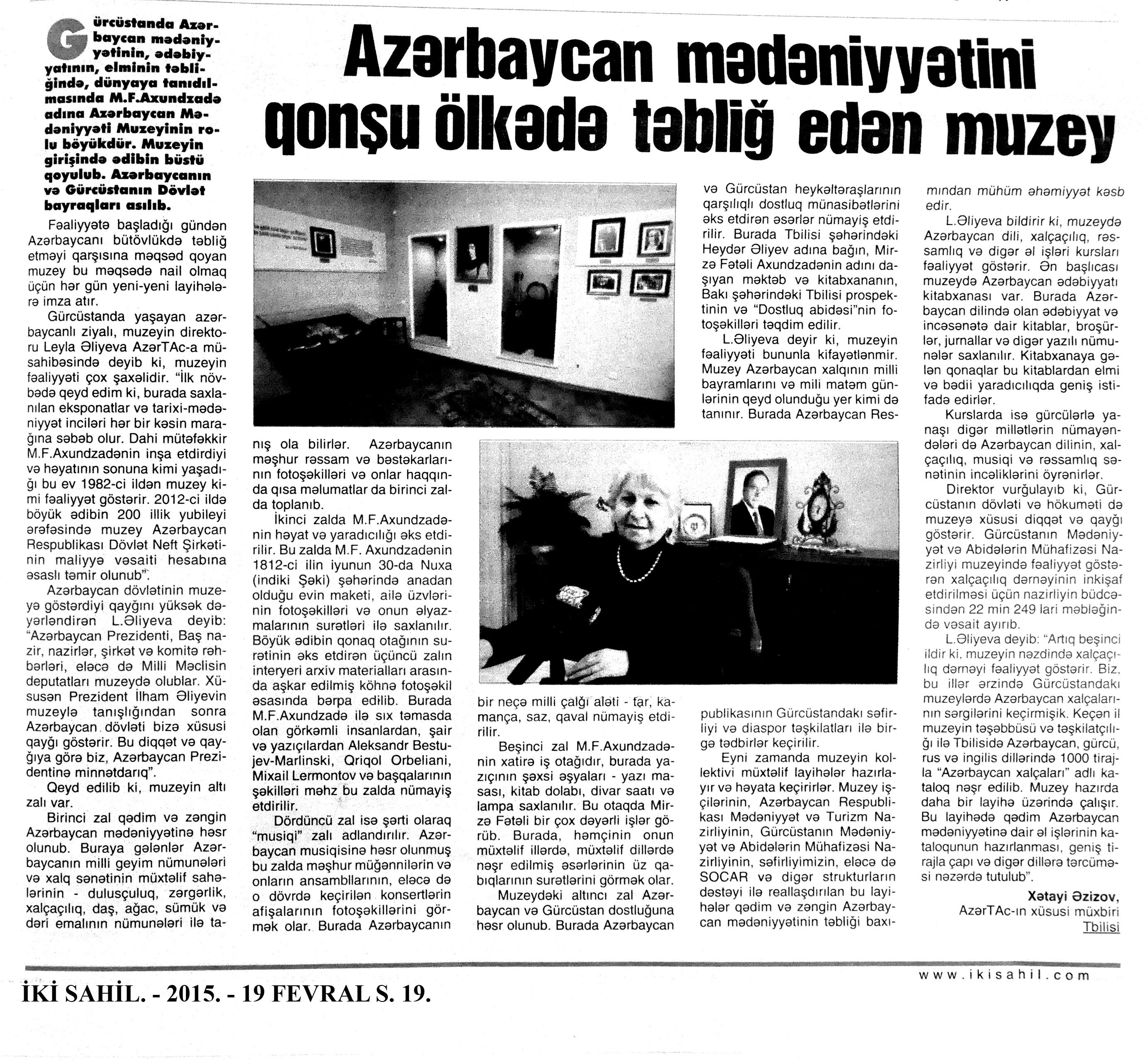 //Азербайджанские известия.-2015. - 28 февраля.- С. 1.