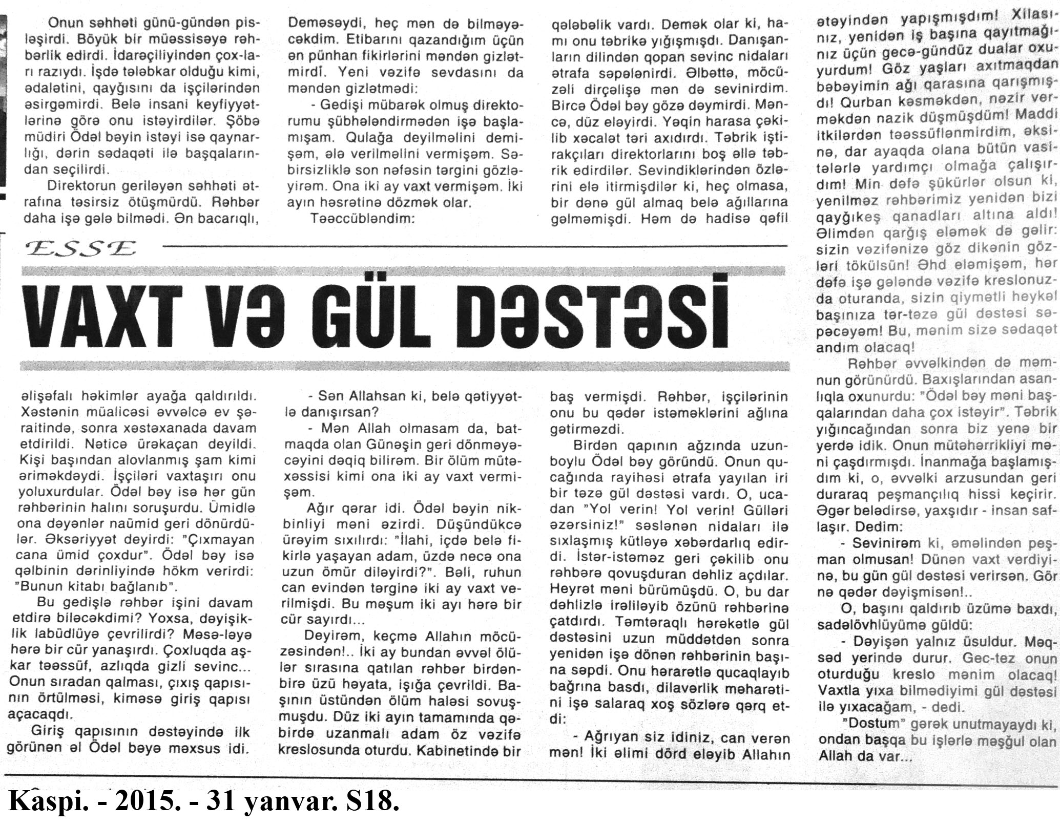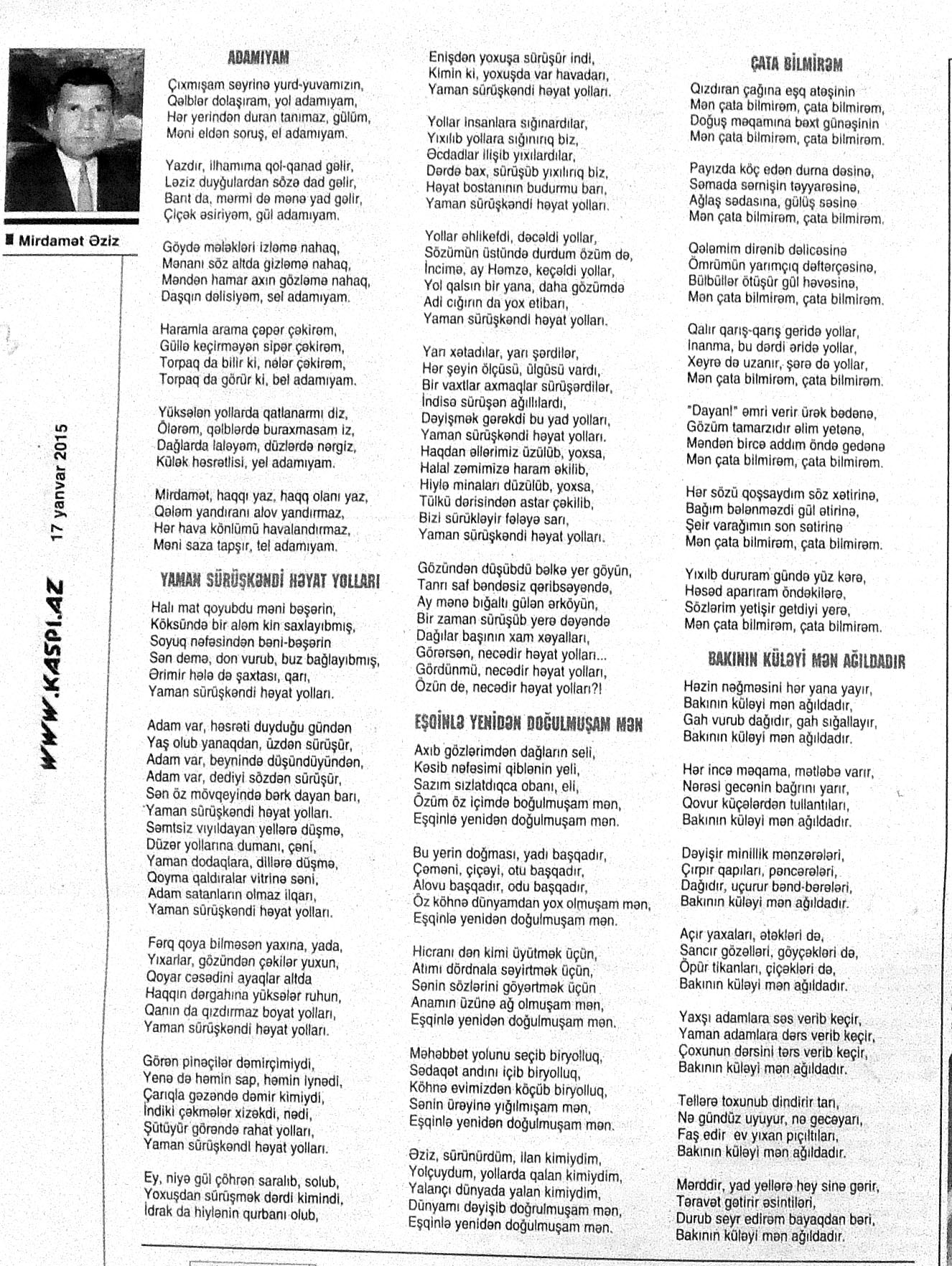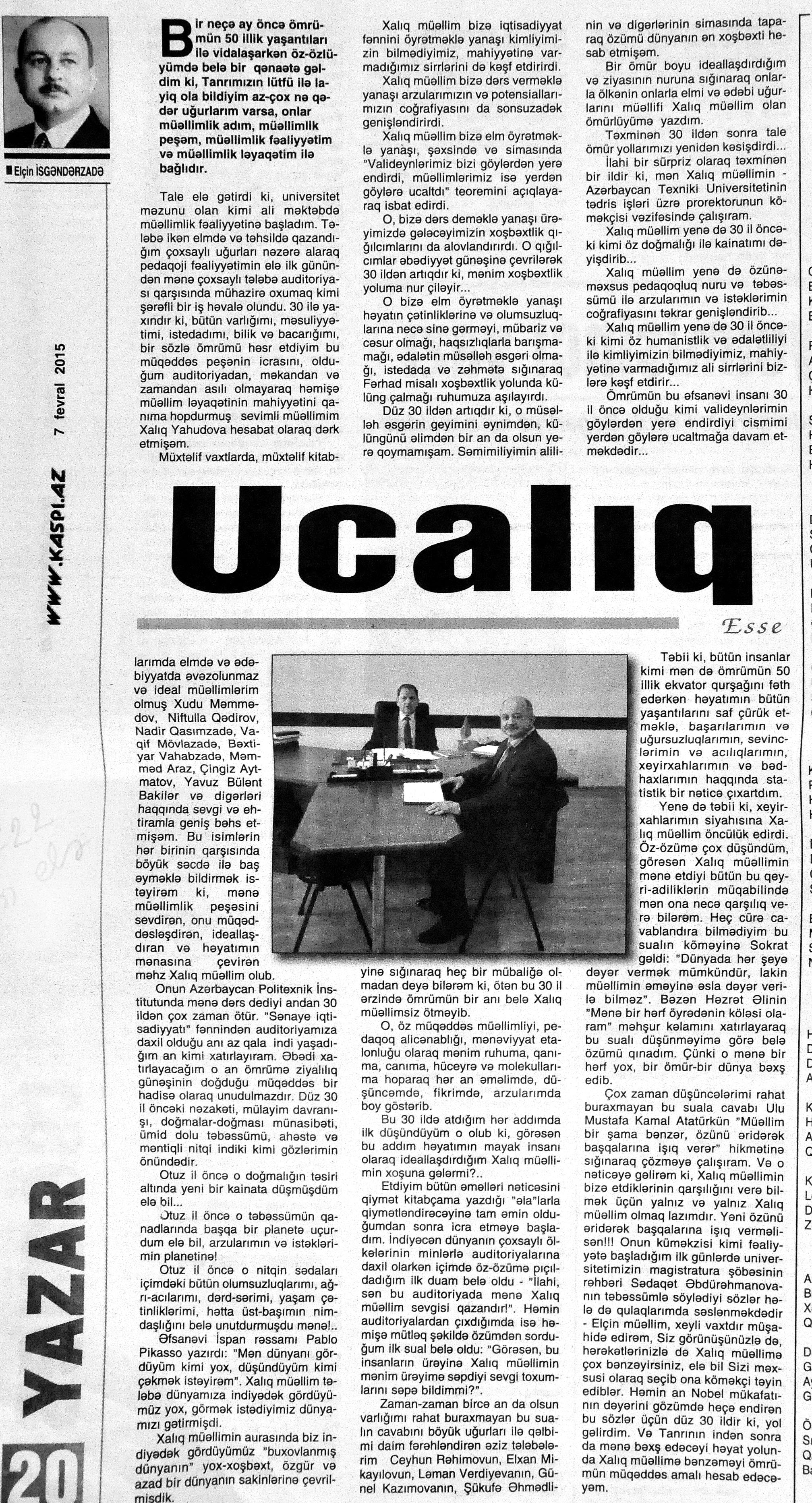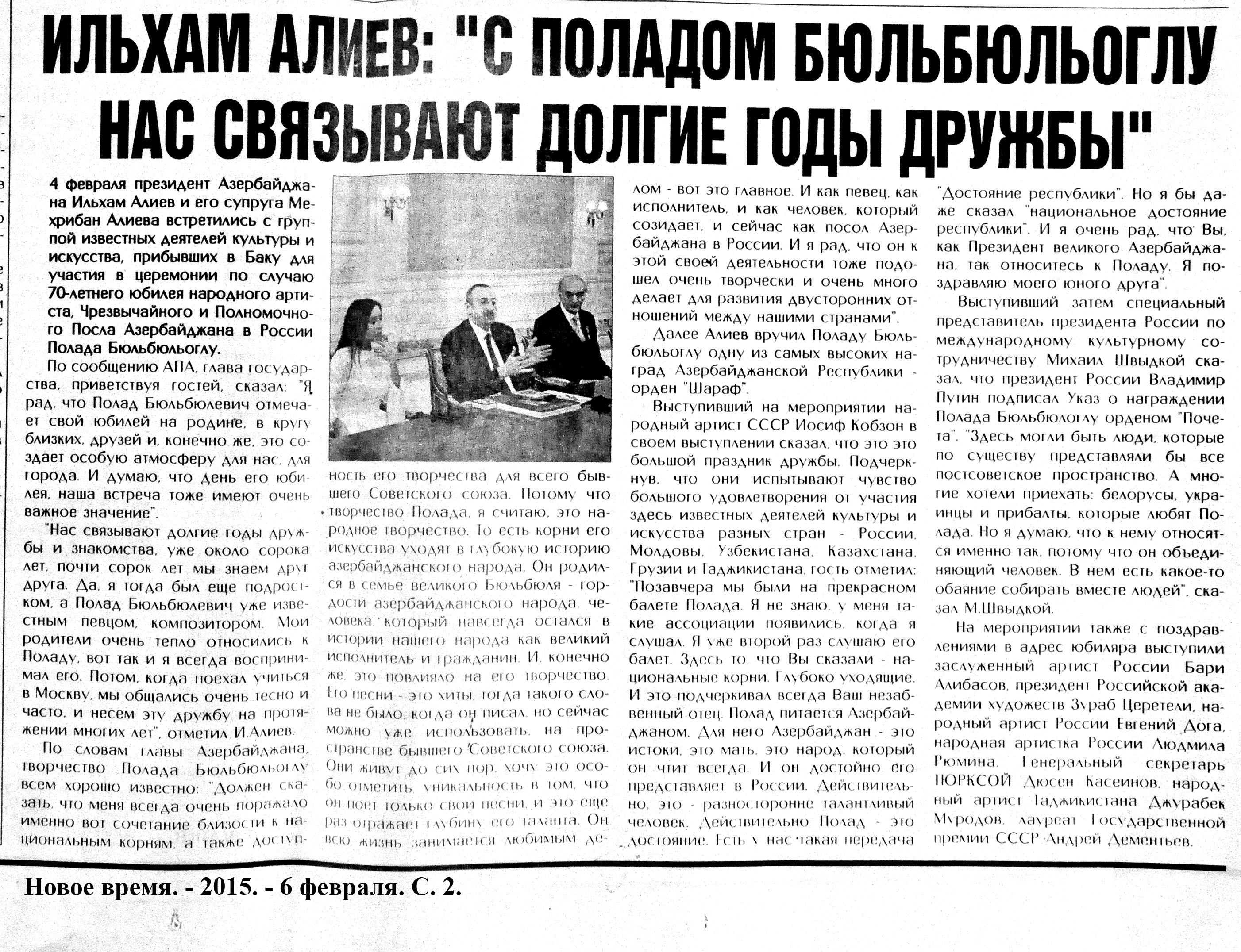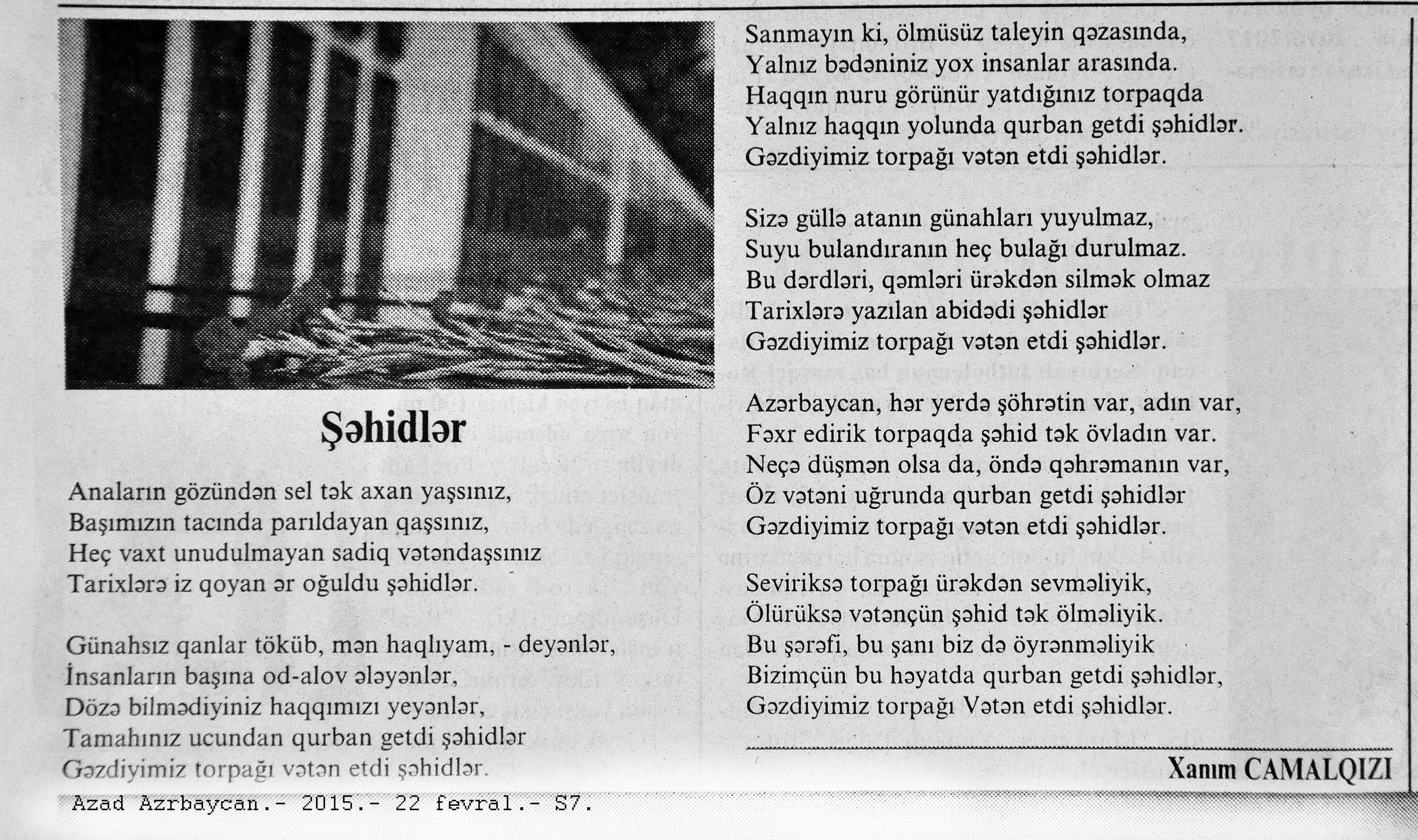 //Азербайджанские известия.-2015. - 28 февраля.- С. 1.