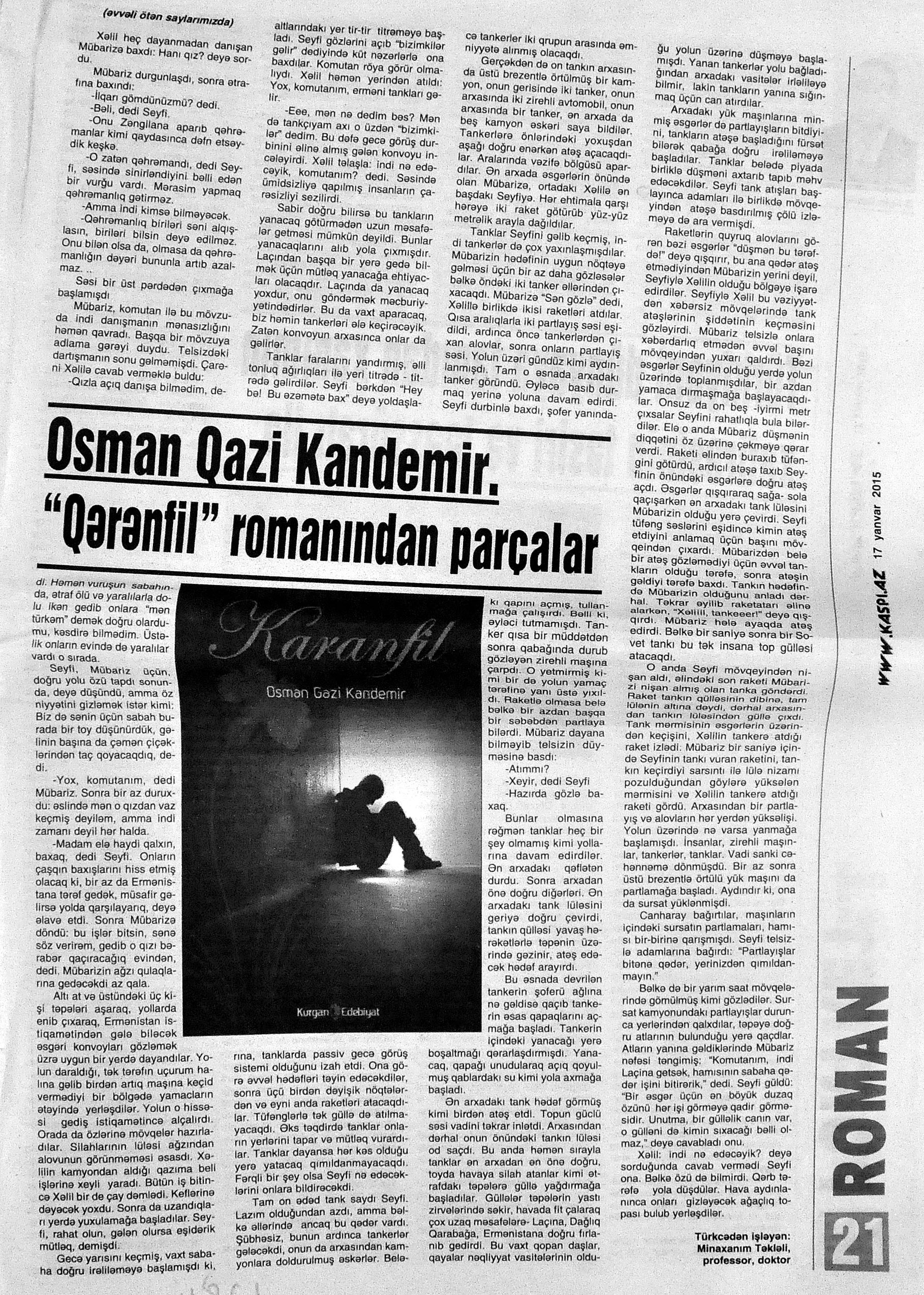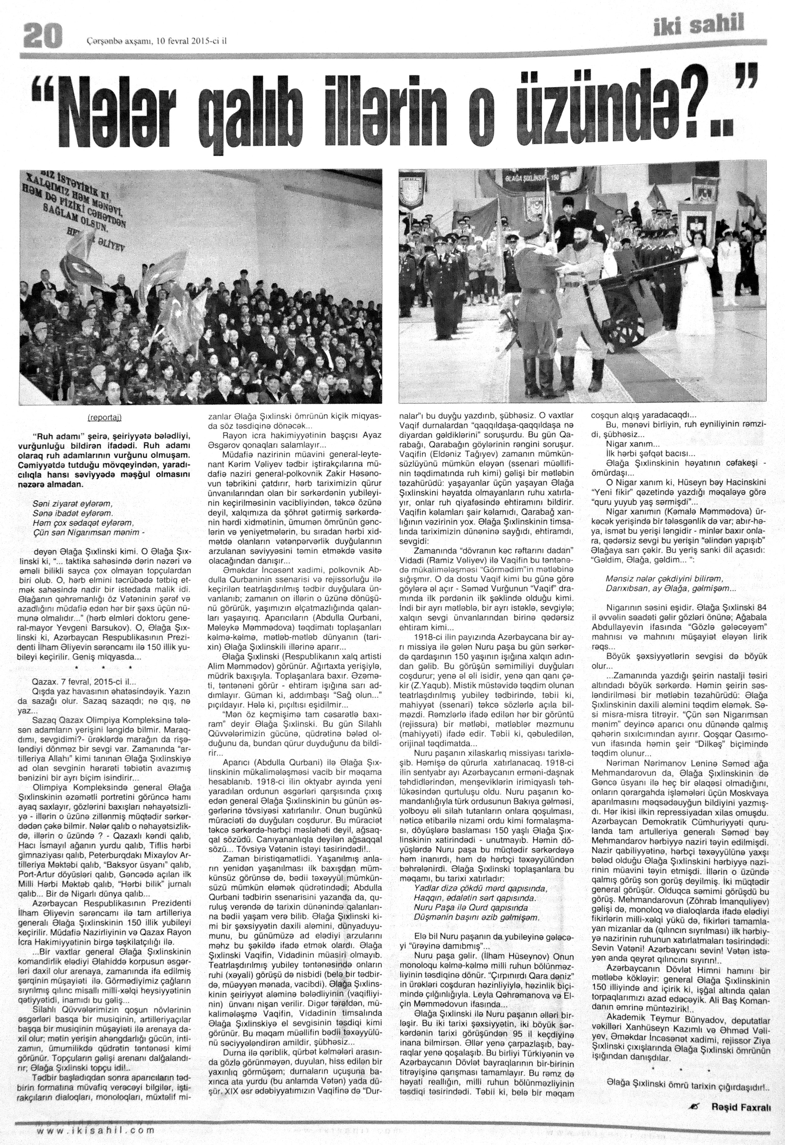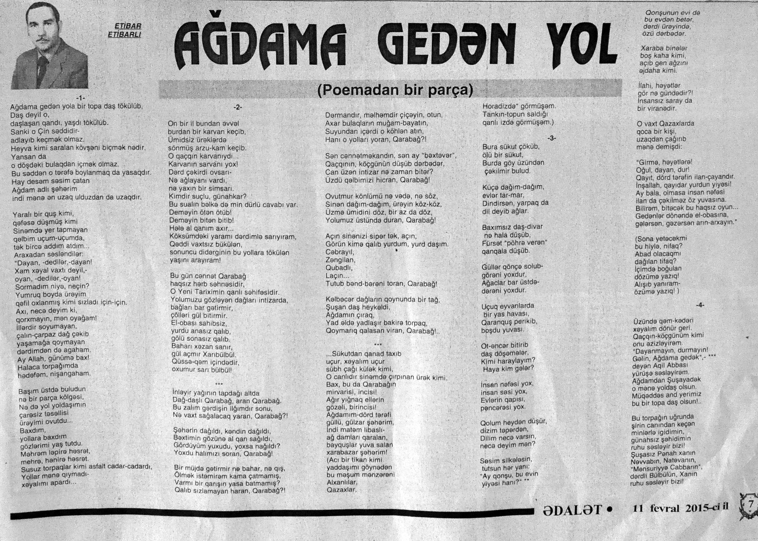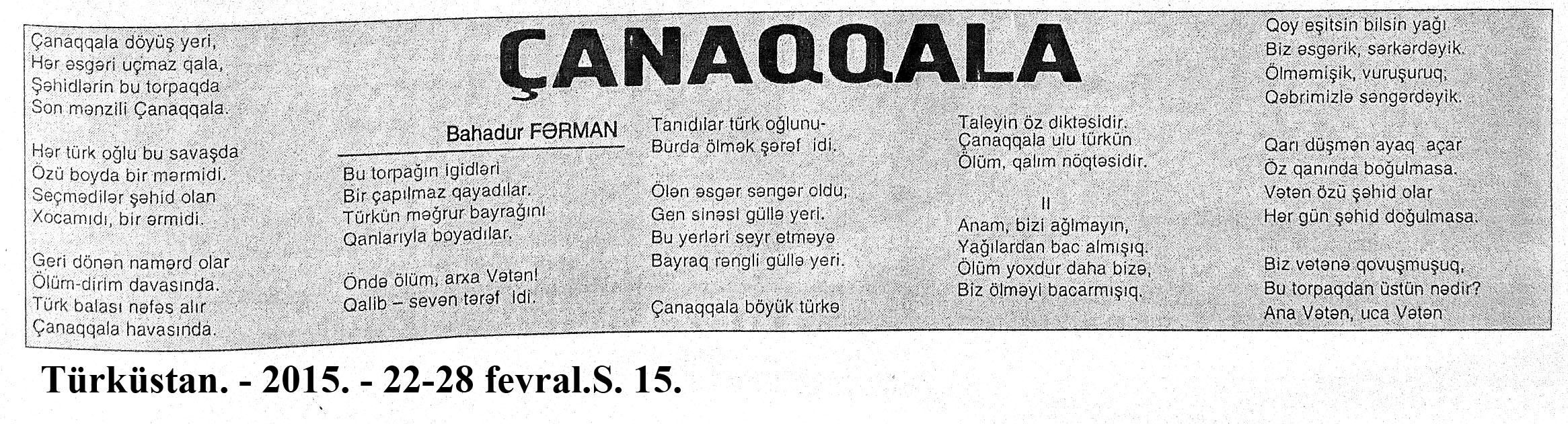 //Азербайджанские известия.-2015. - 28 февраля.- С. 1.
