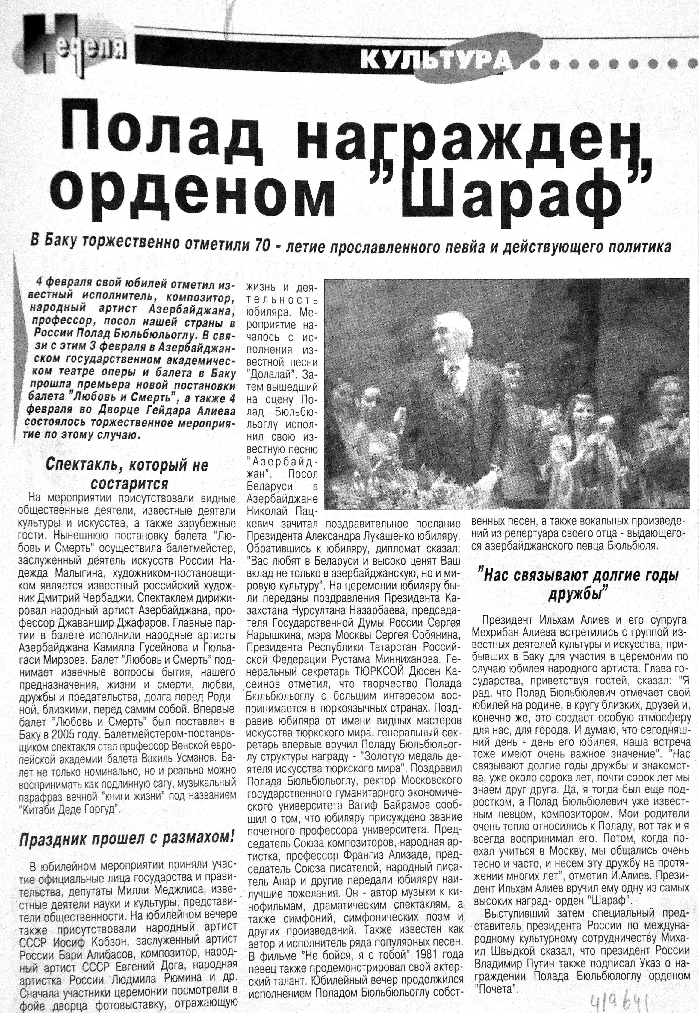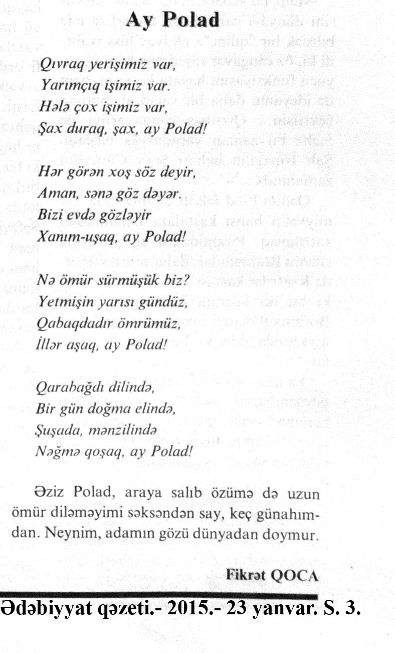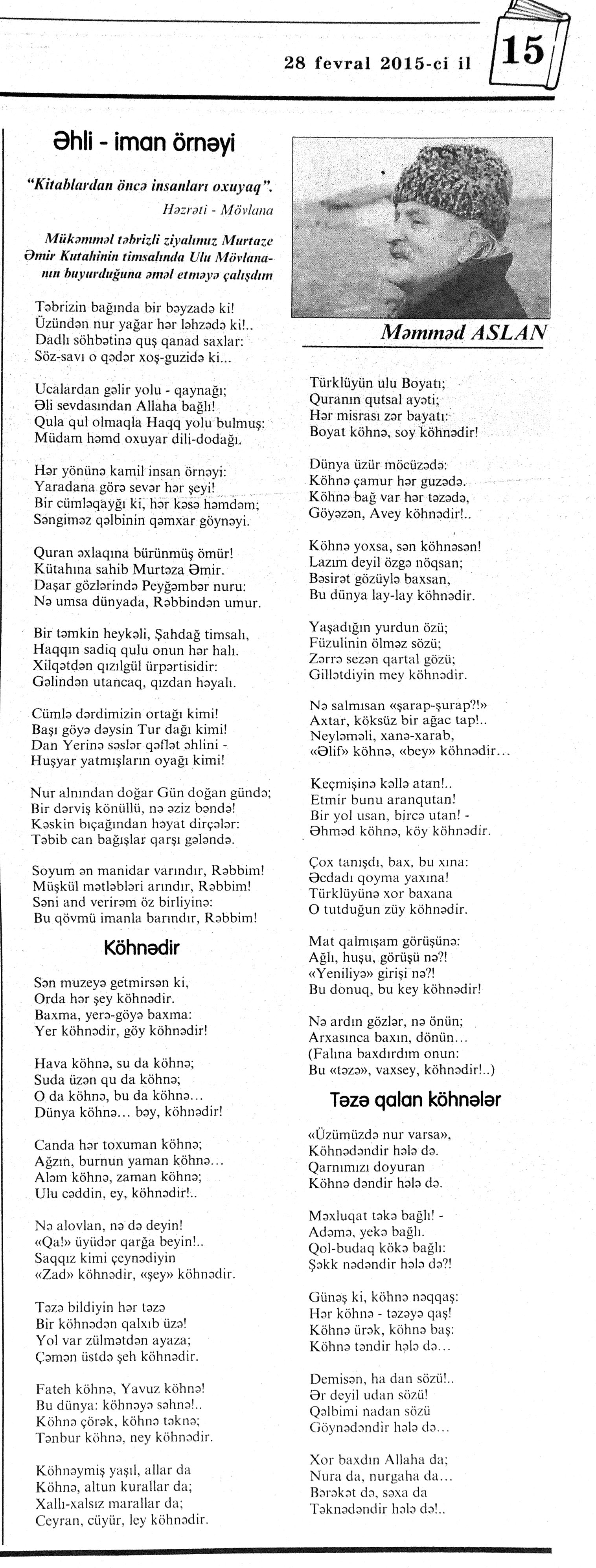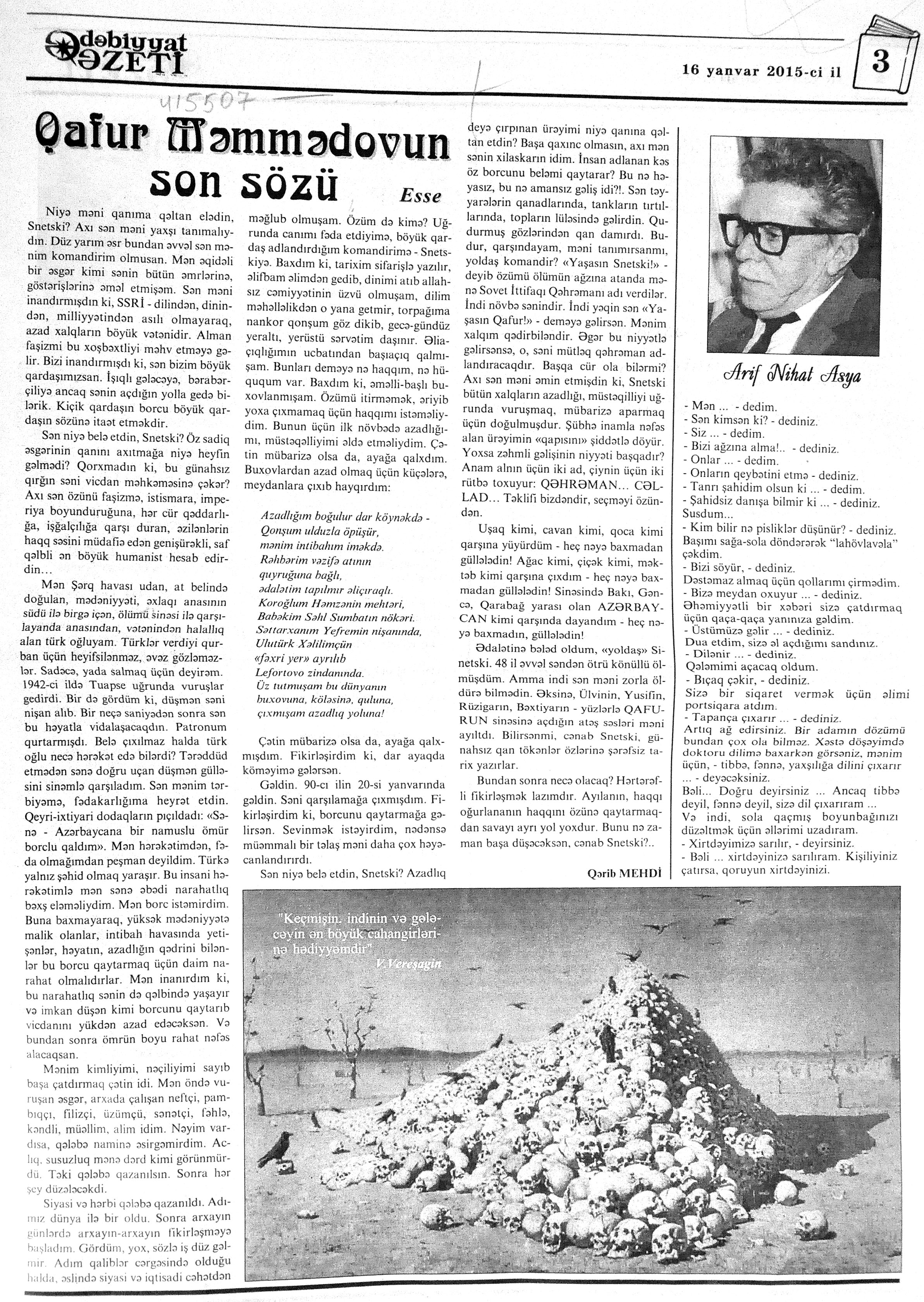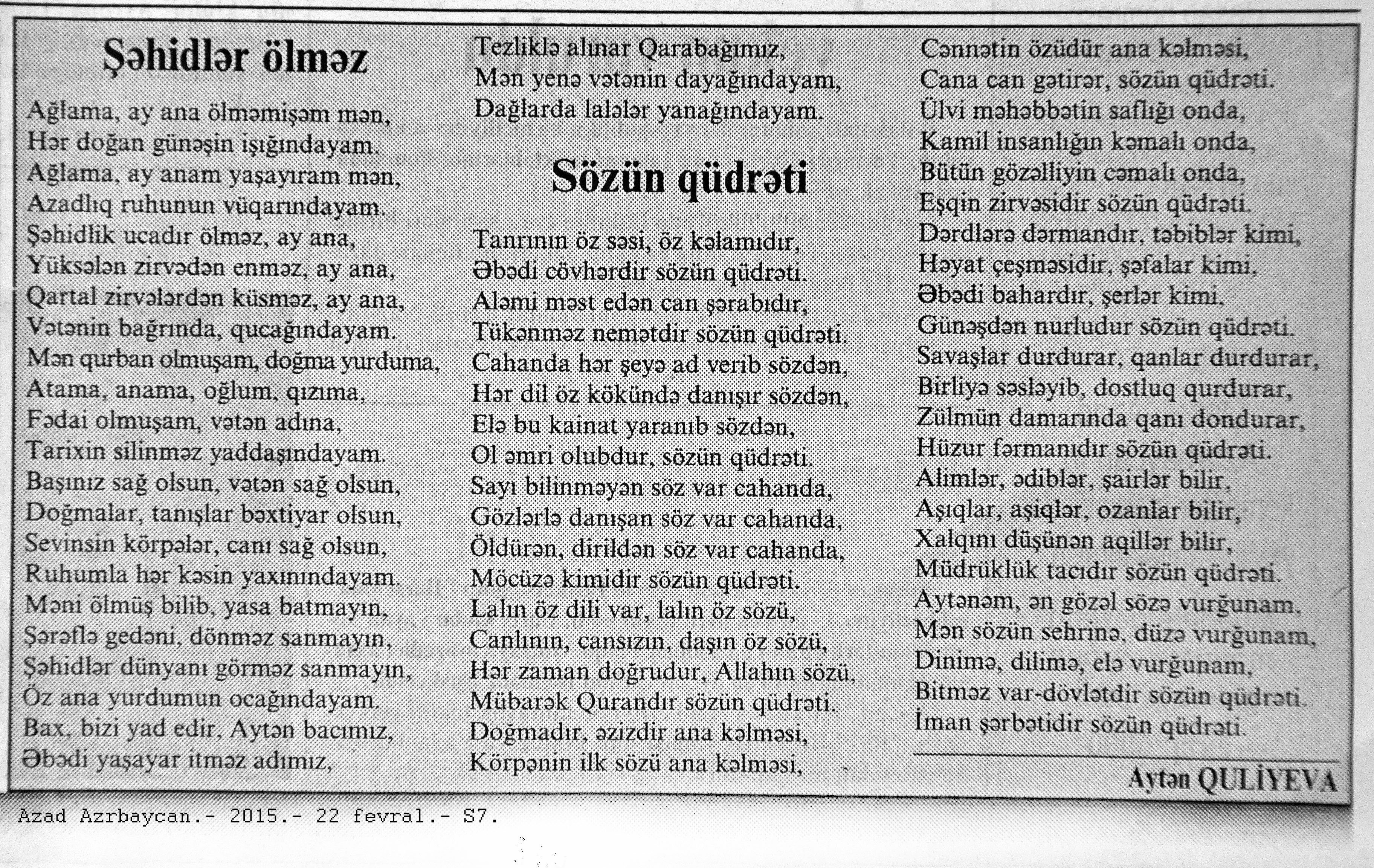 //Азербайджанские известия.-2015. - 28 февраля.- С. 1.