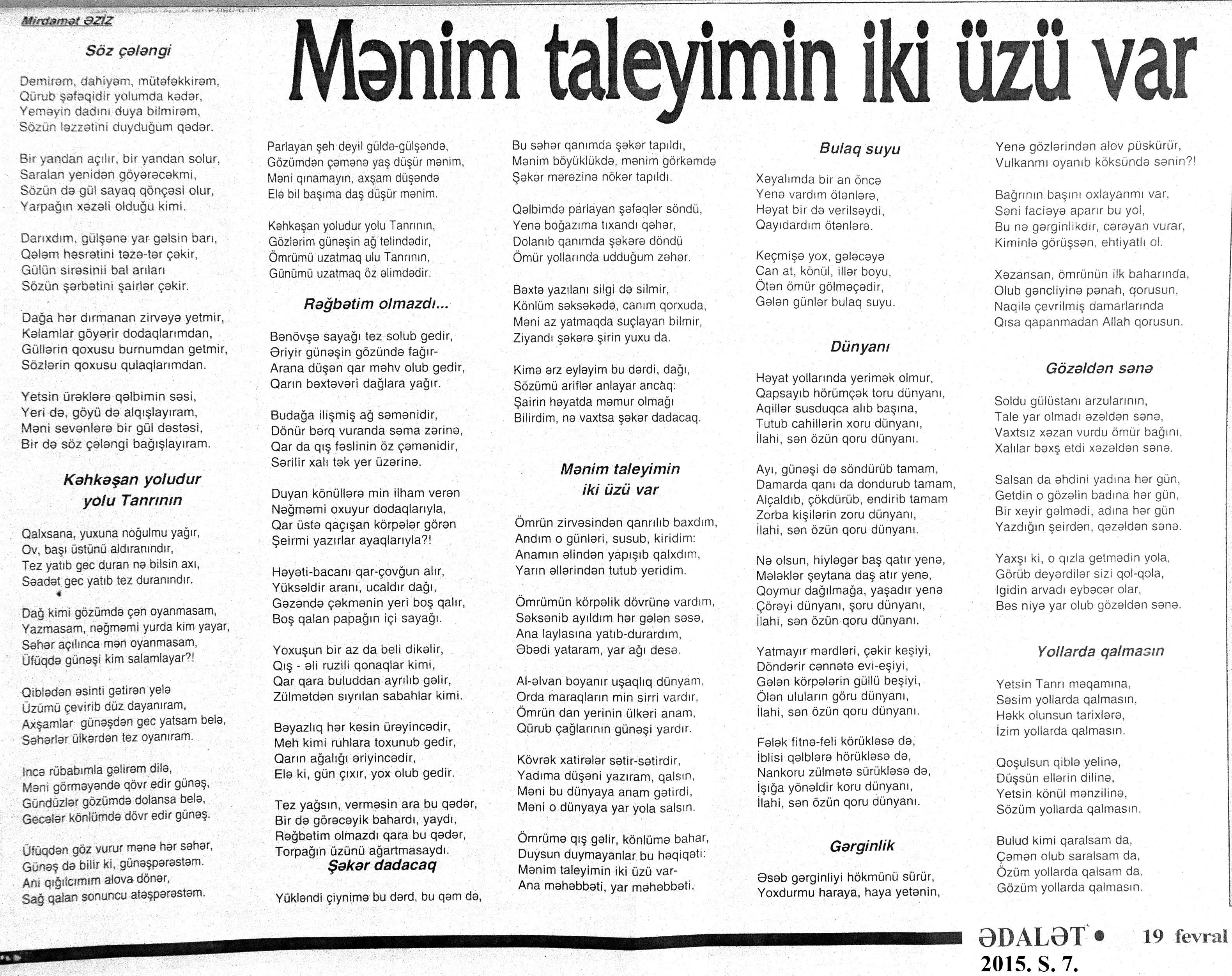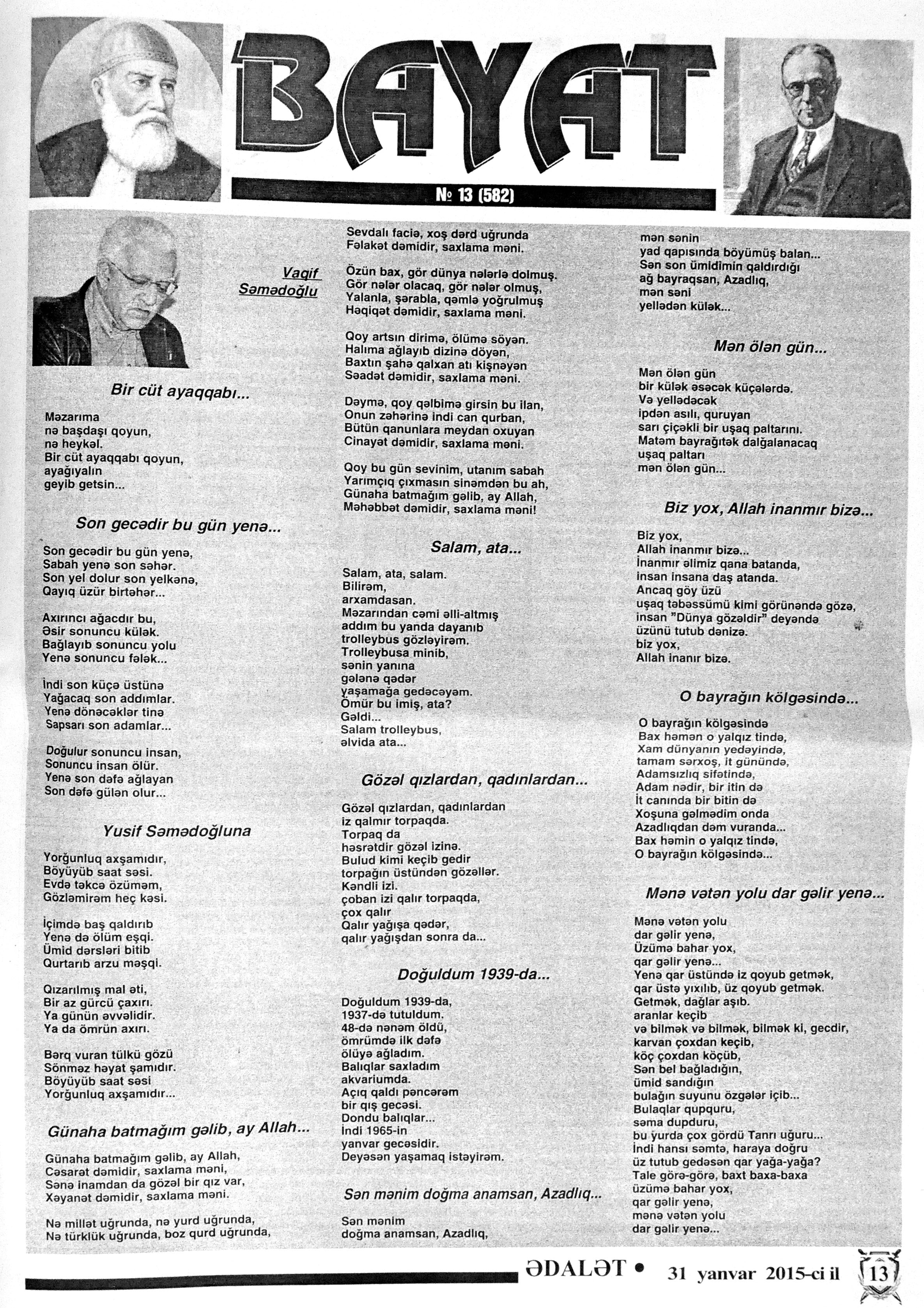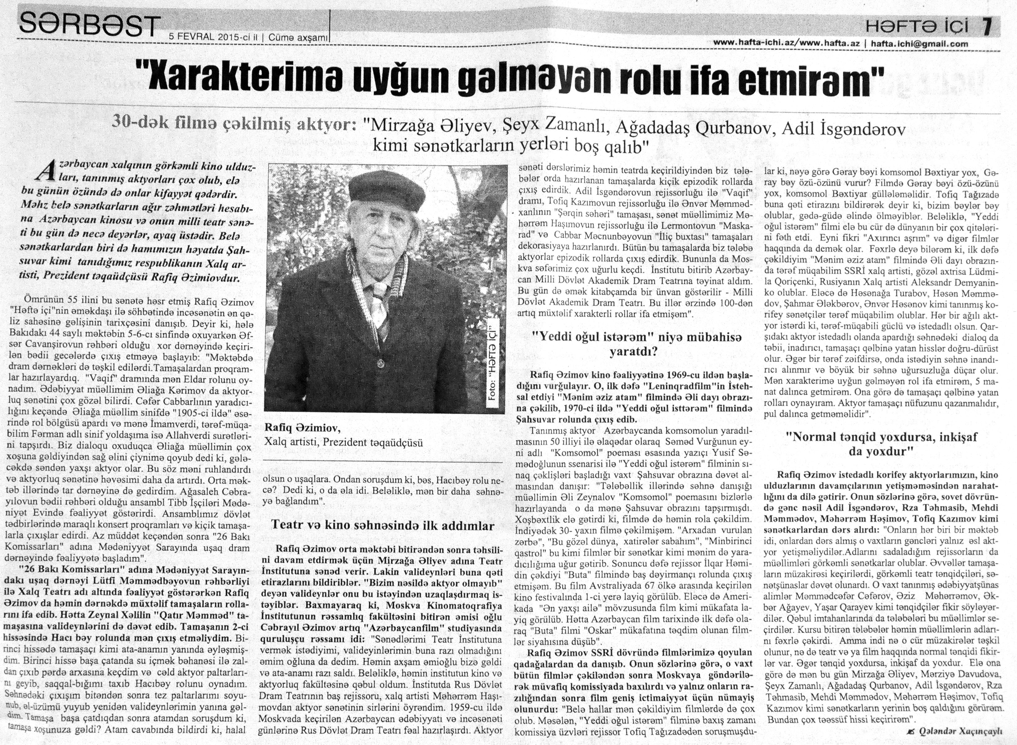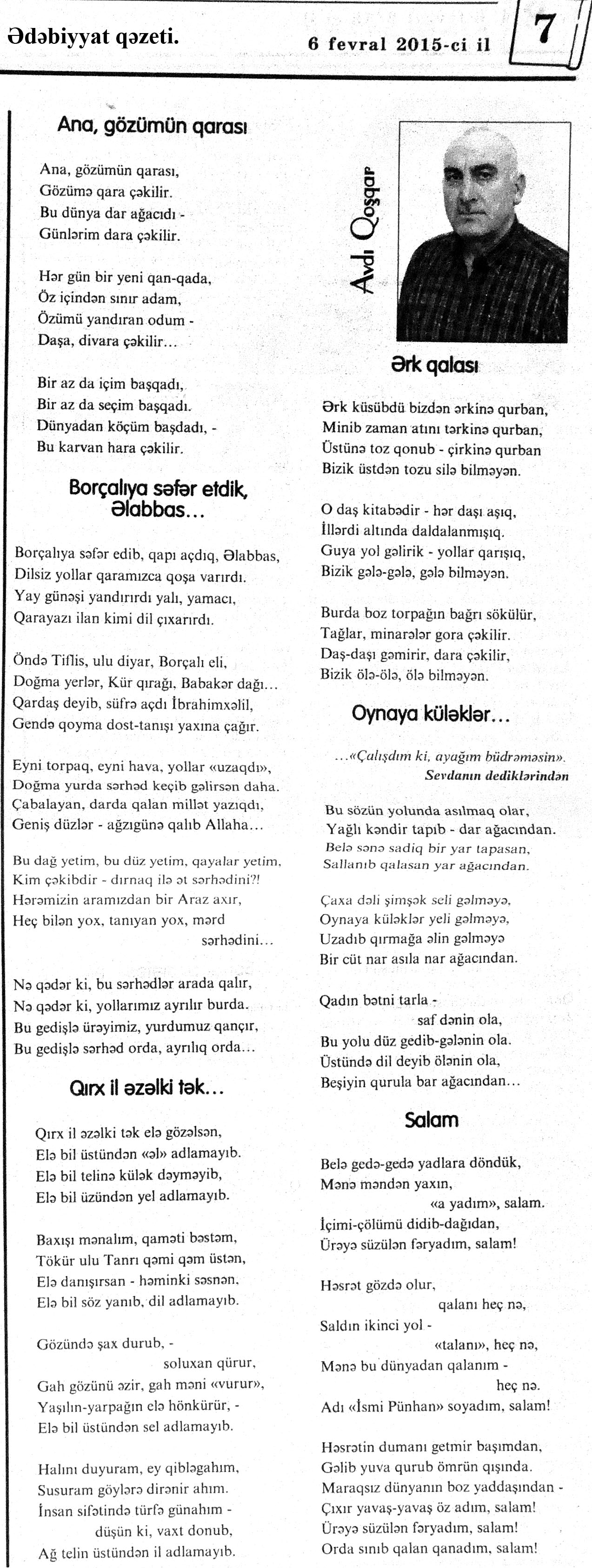 fevral.- S.7.; Səs.- 2015.- 12 fevral.- S.12.