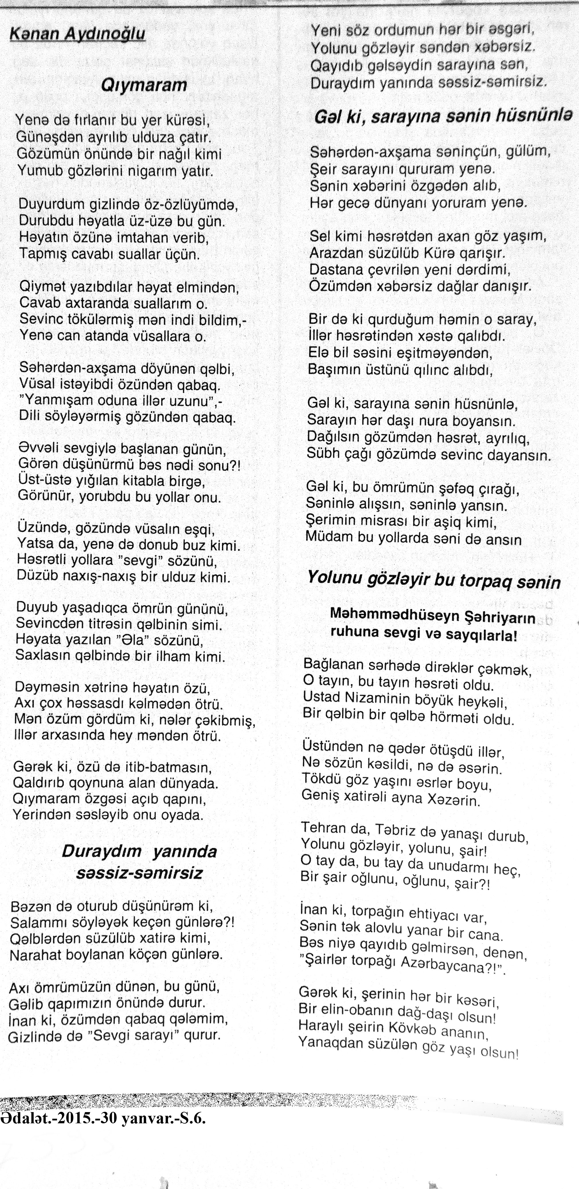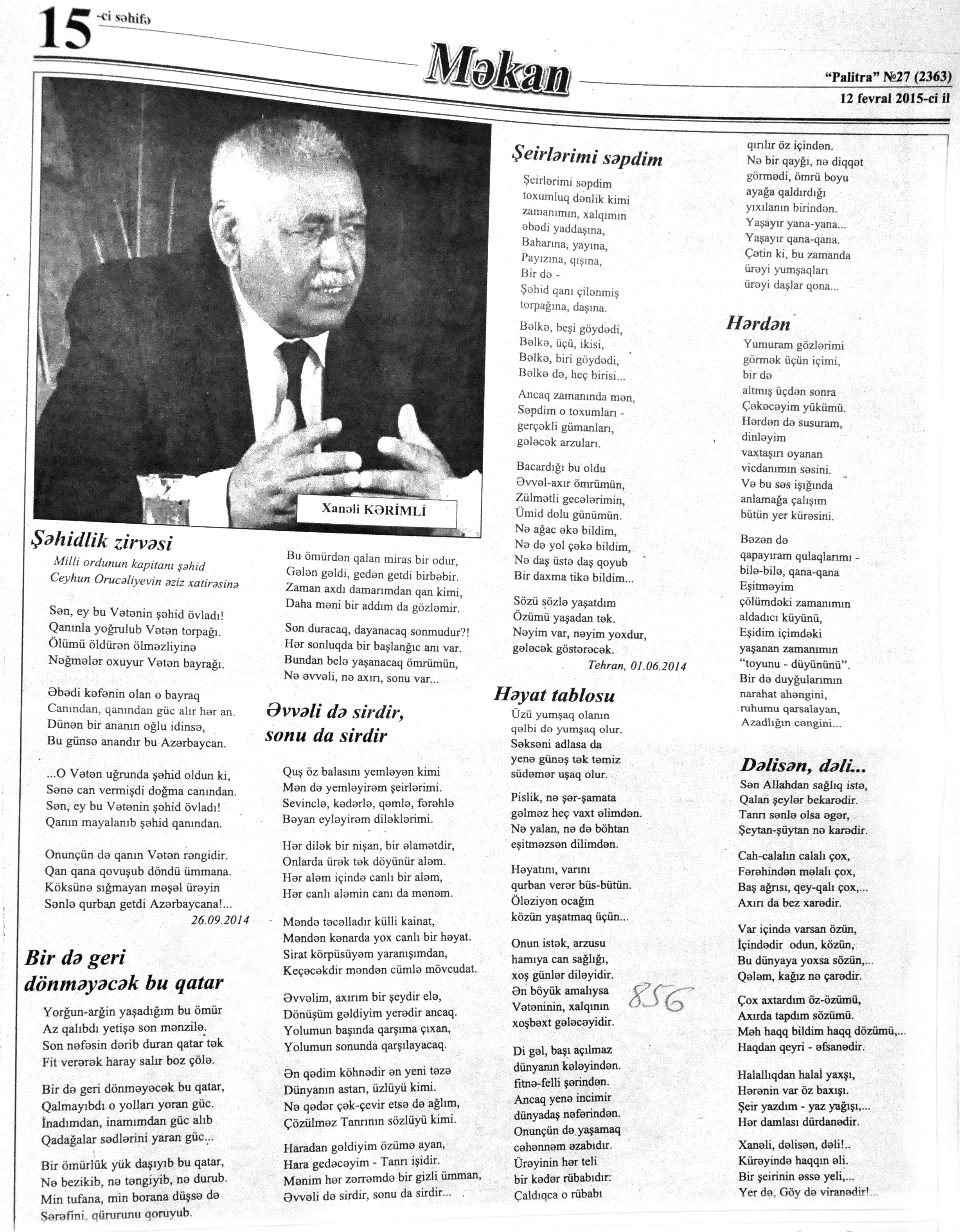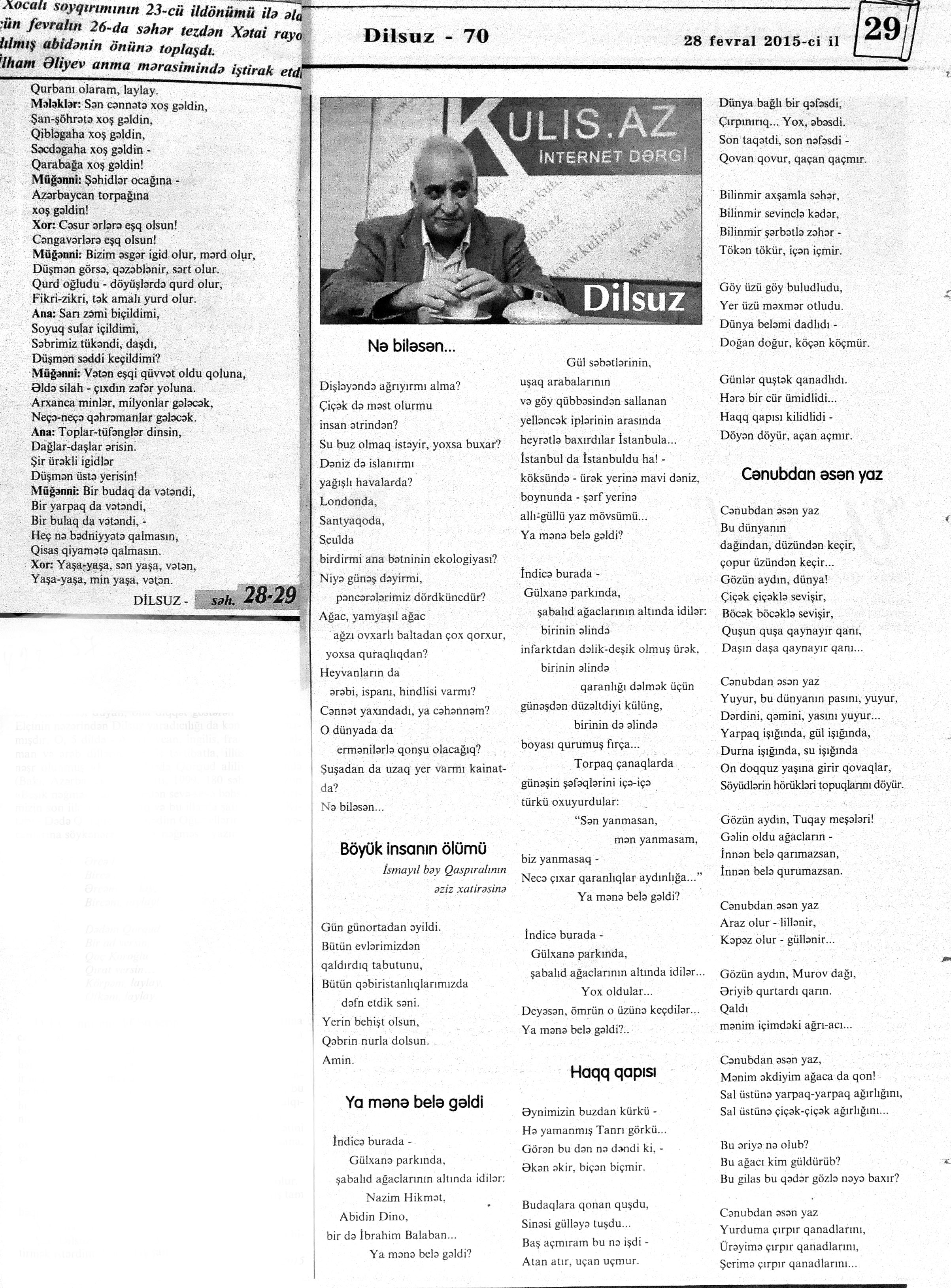fevral.- S.7.; Səs.- 2015.- 12 fevral.- S.12.