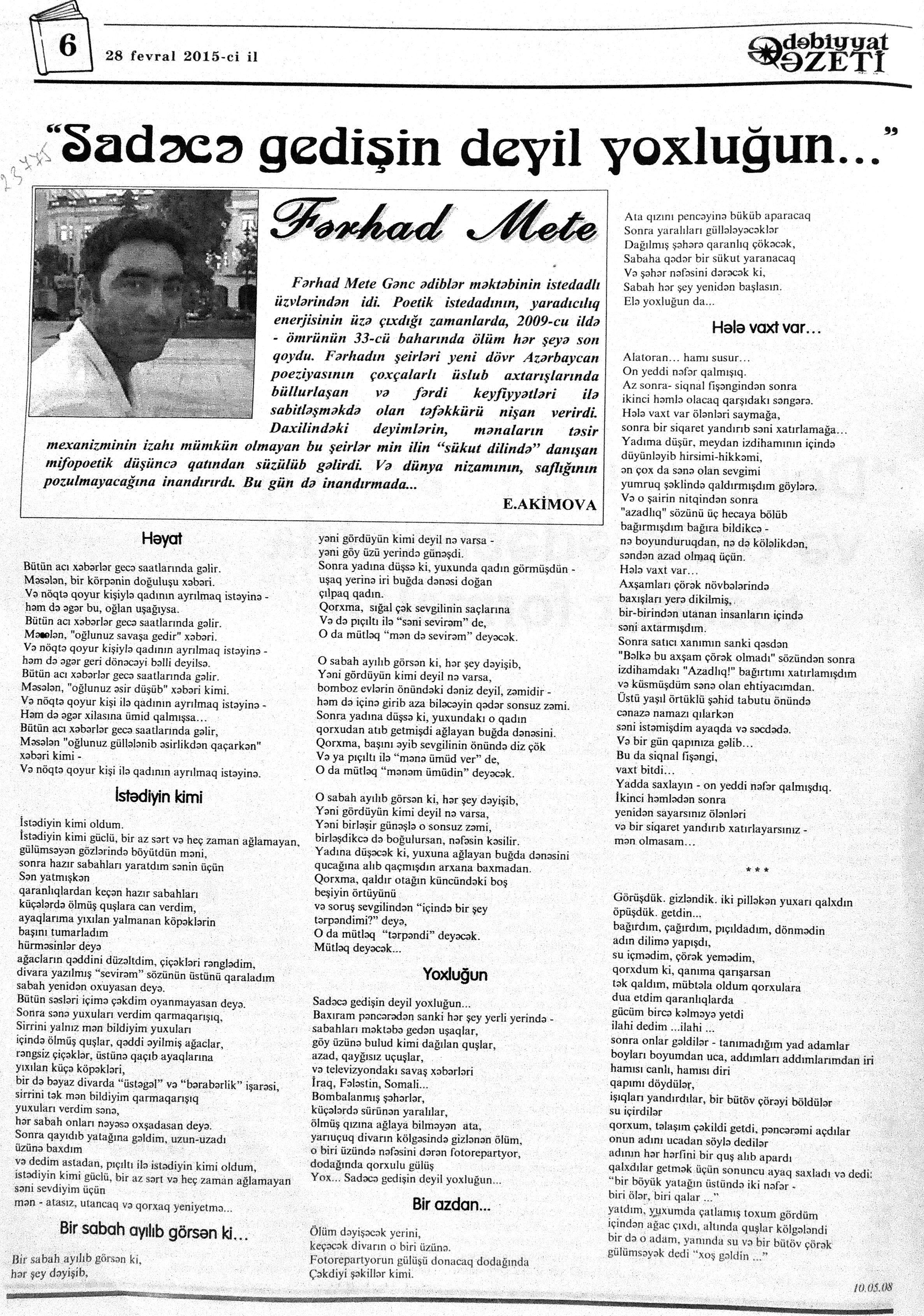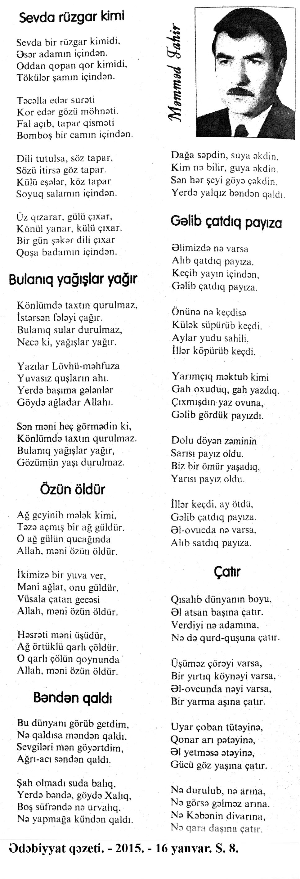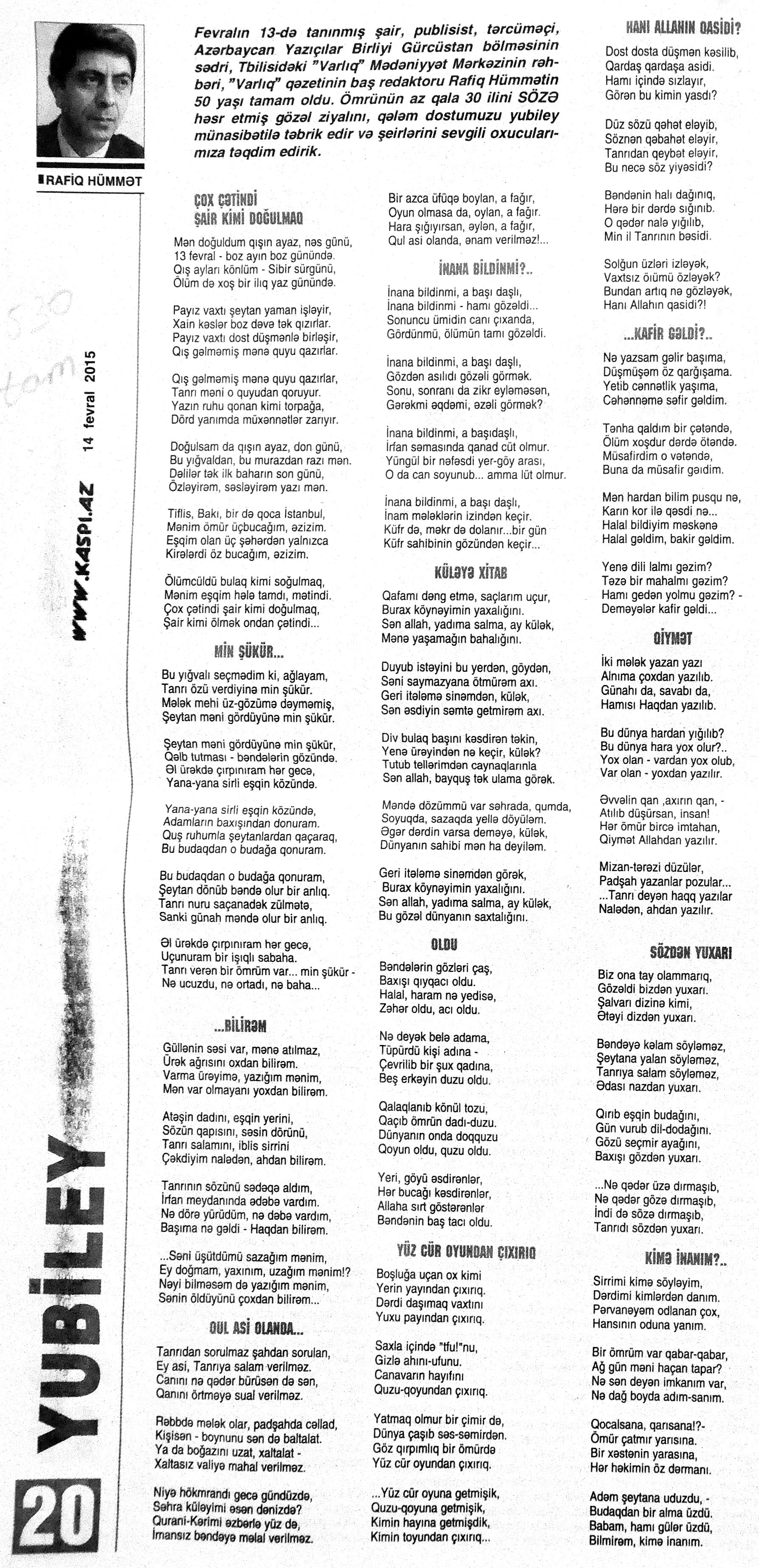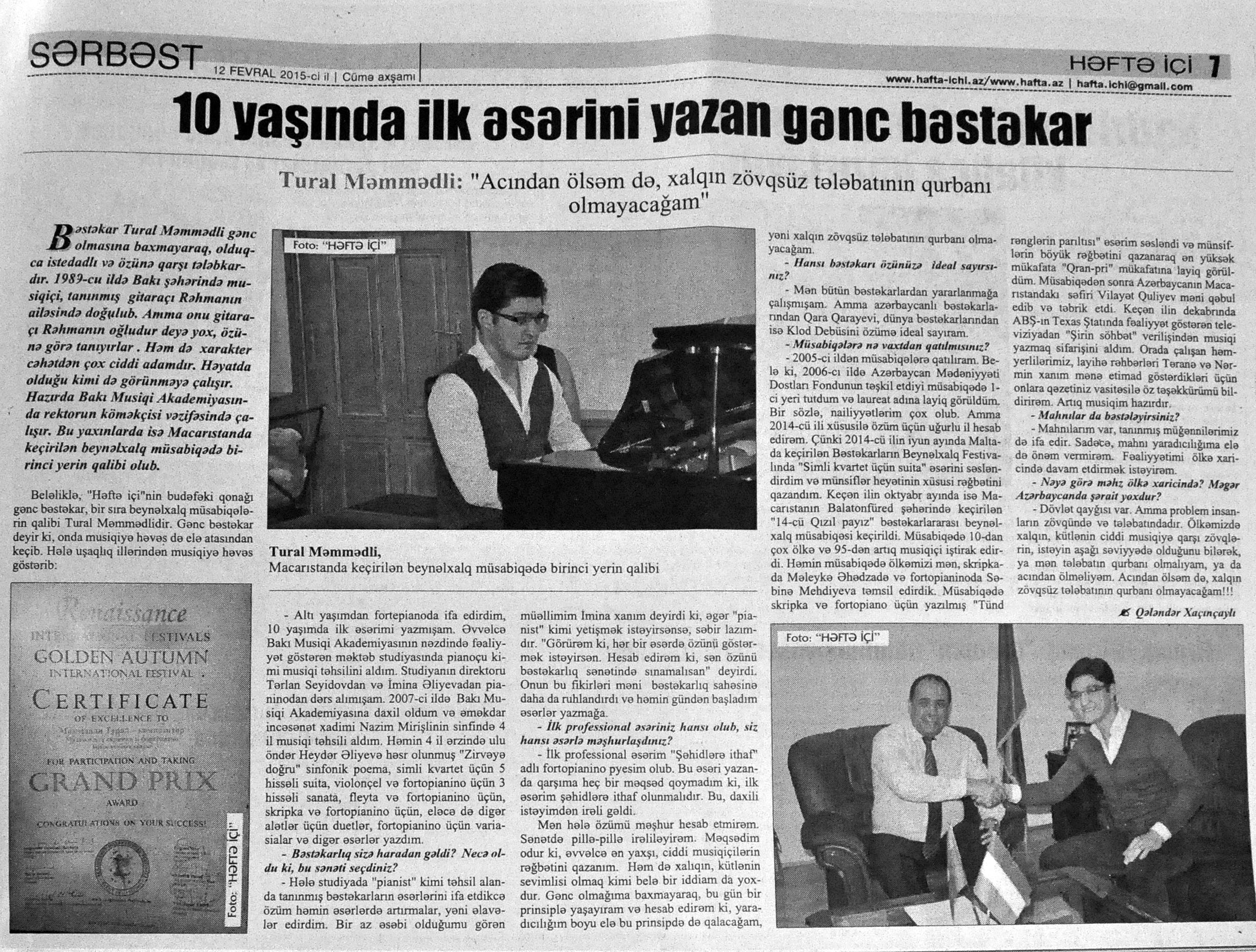 fevral.- S.7.; Səs.- 2015.- 12 fevral.- S.12.