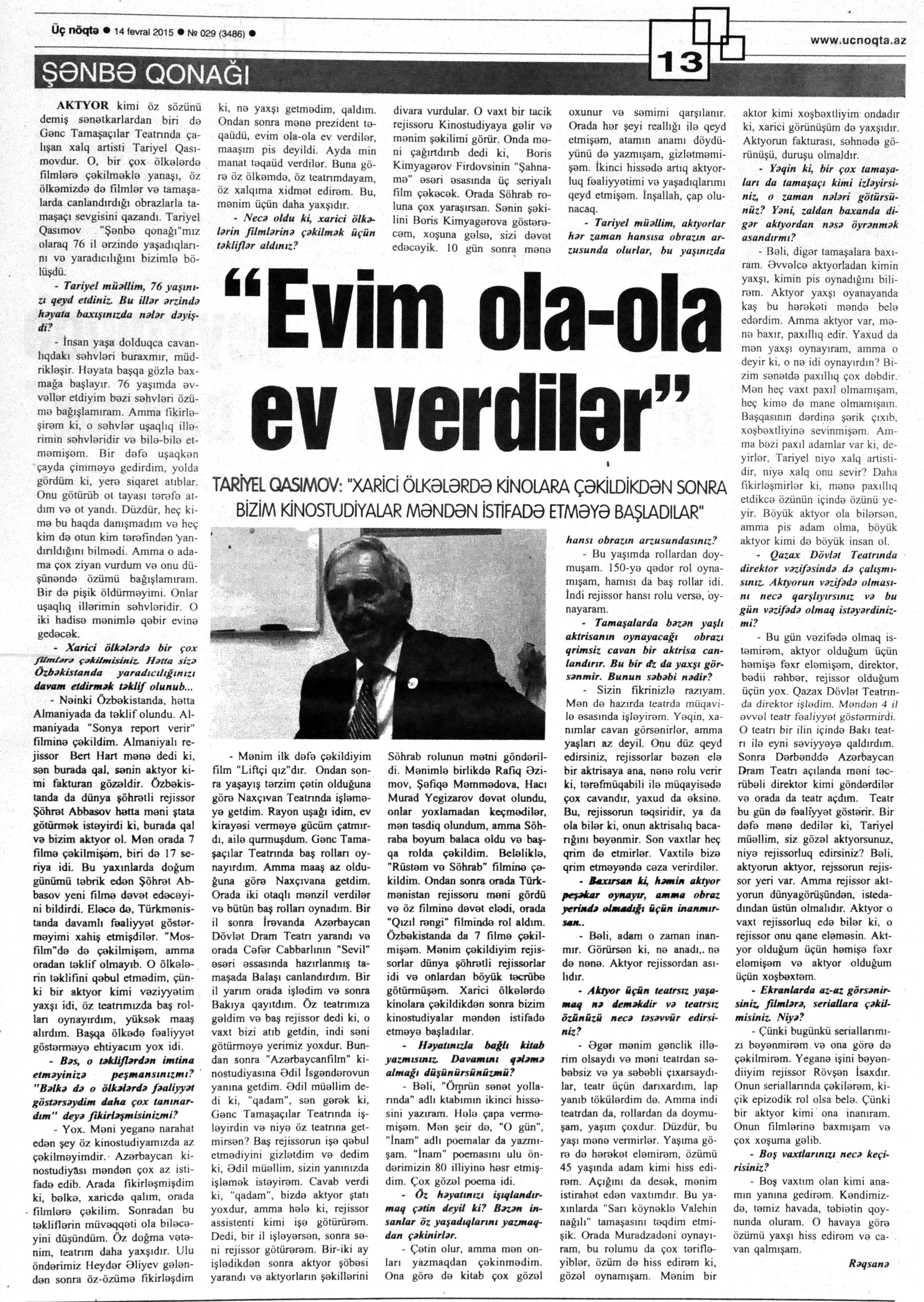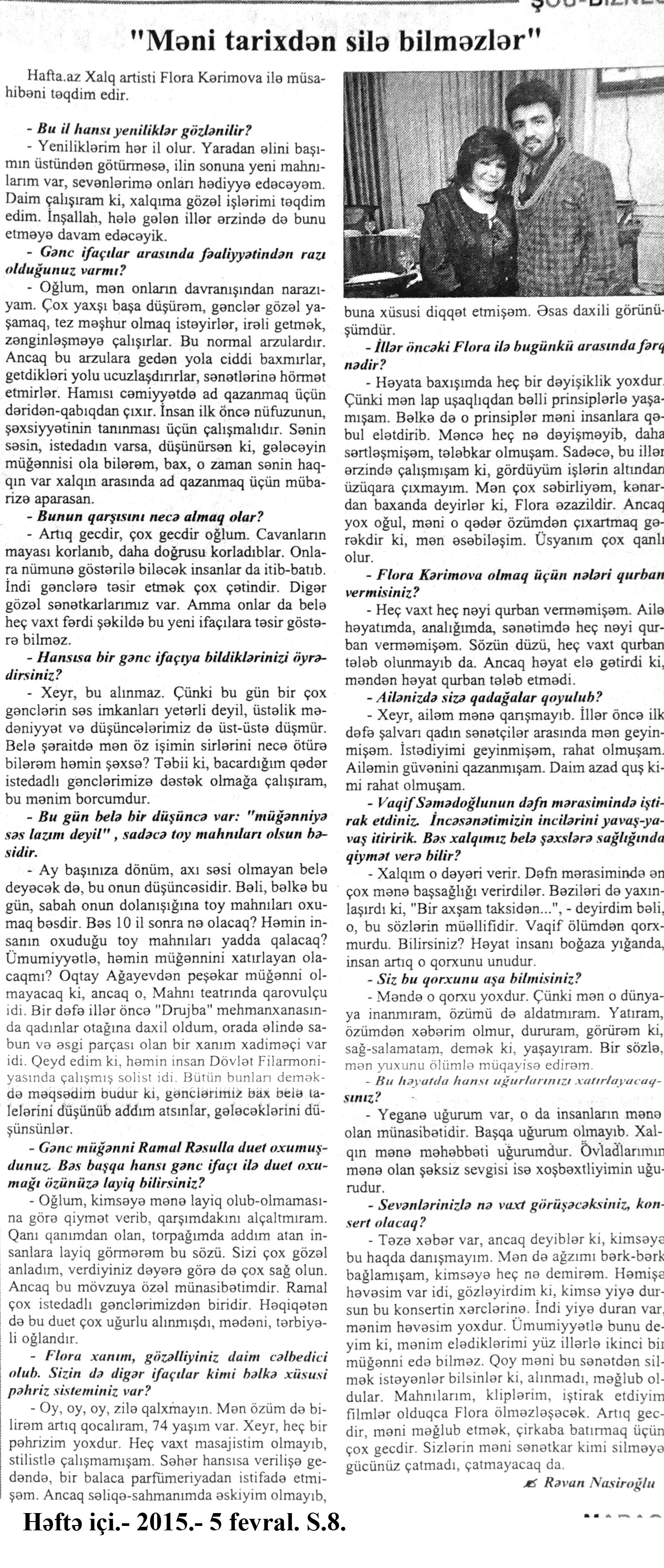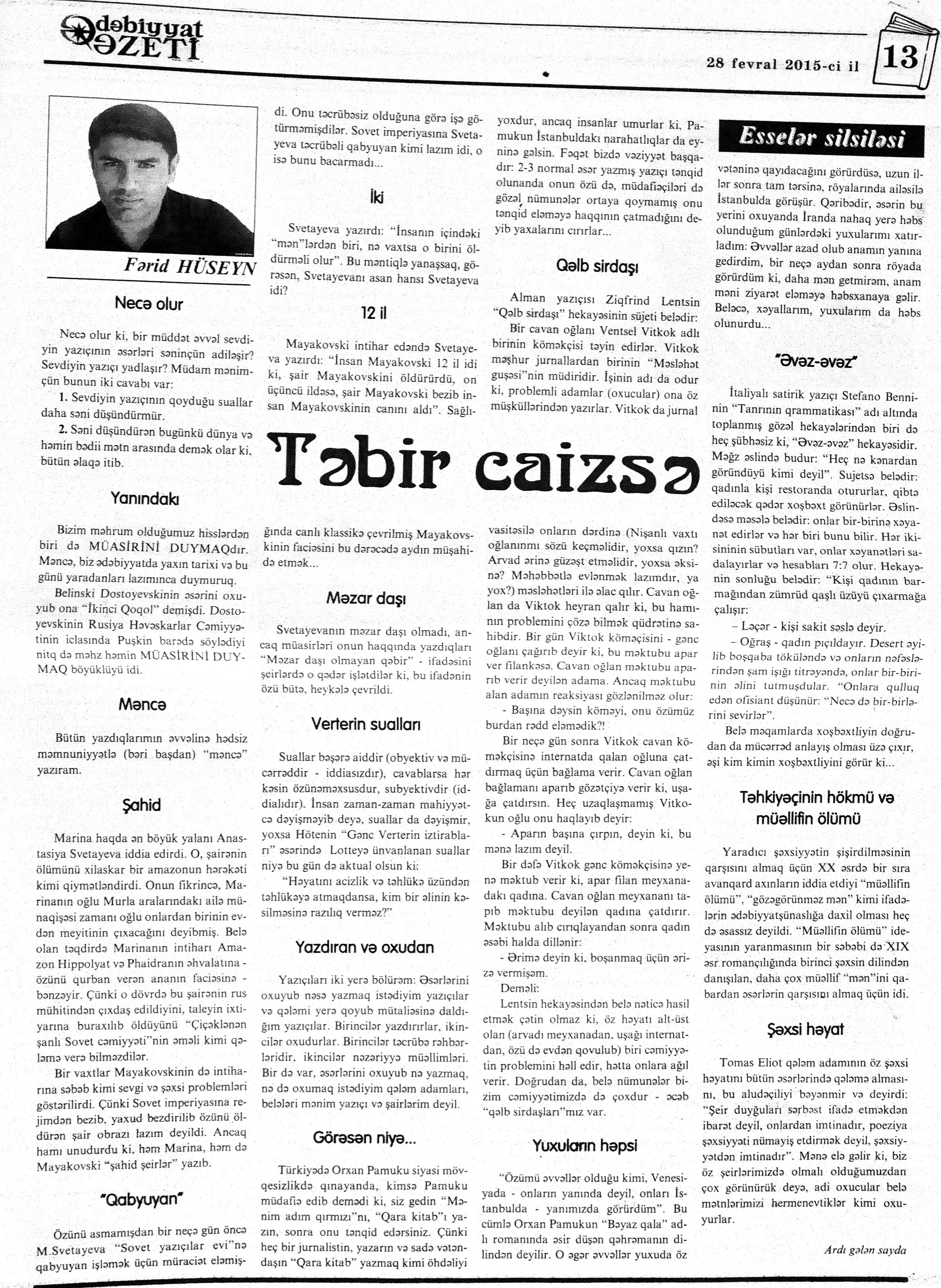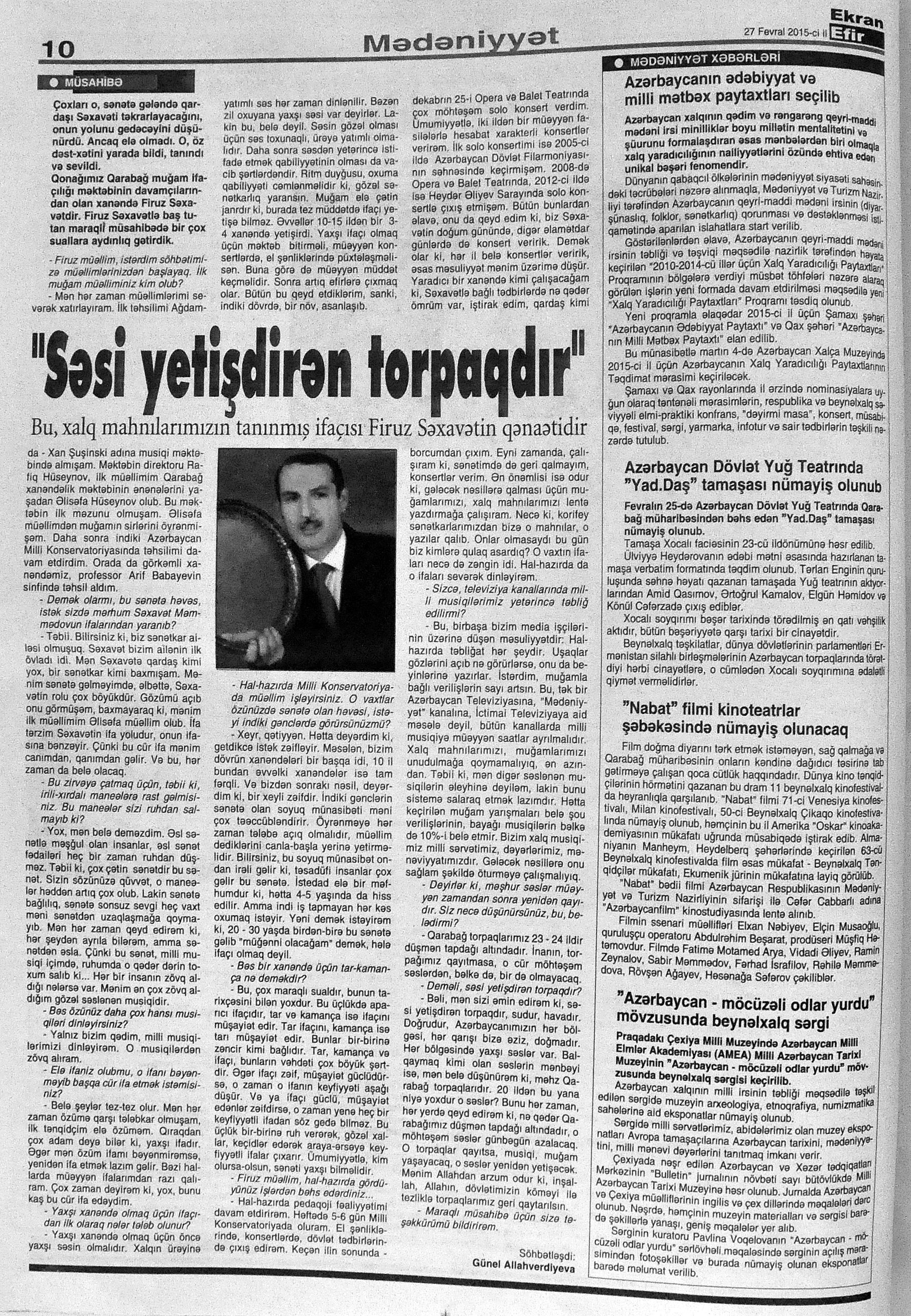 görüşlər //Mədəniyyət.- 2015.- 13 fevral.-
