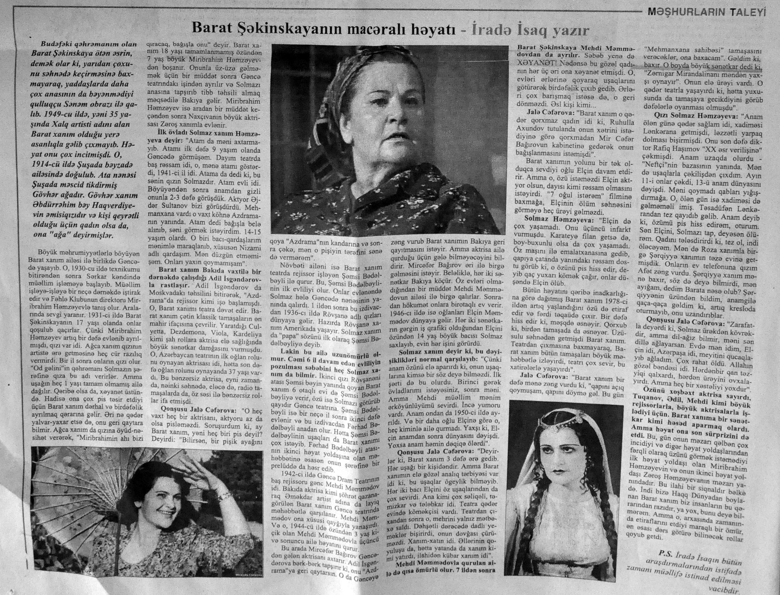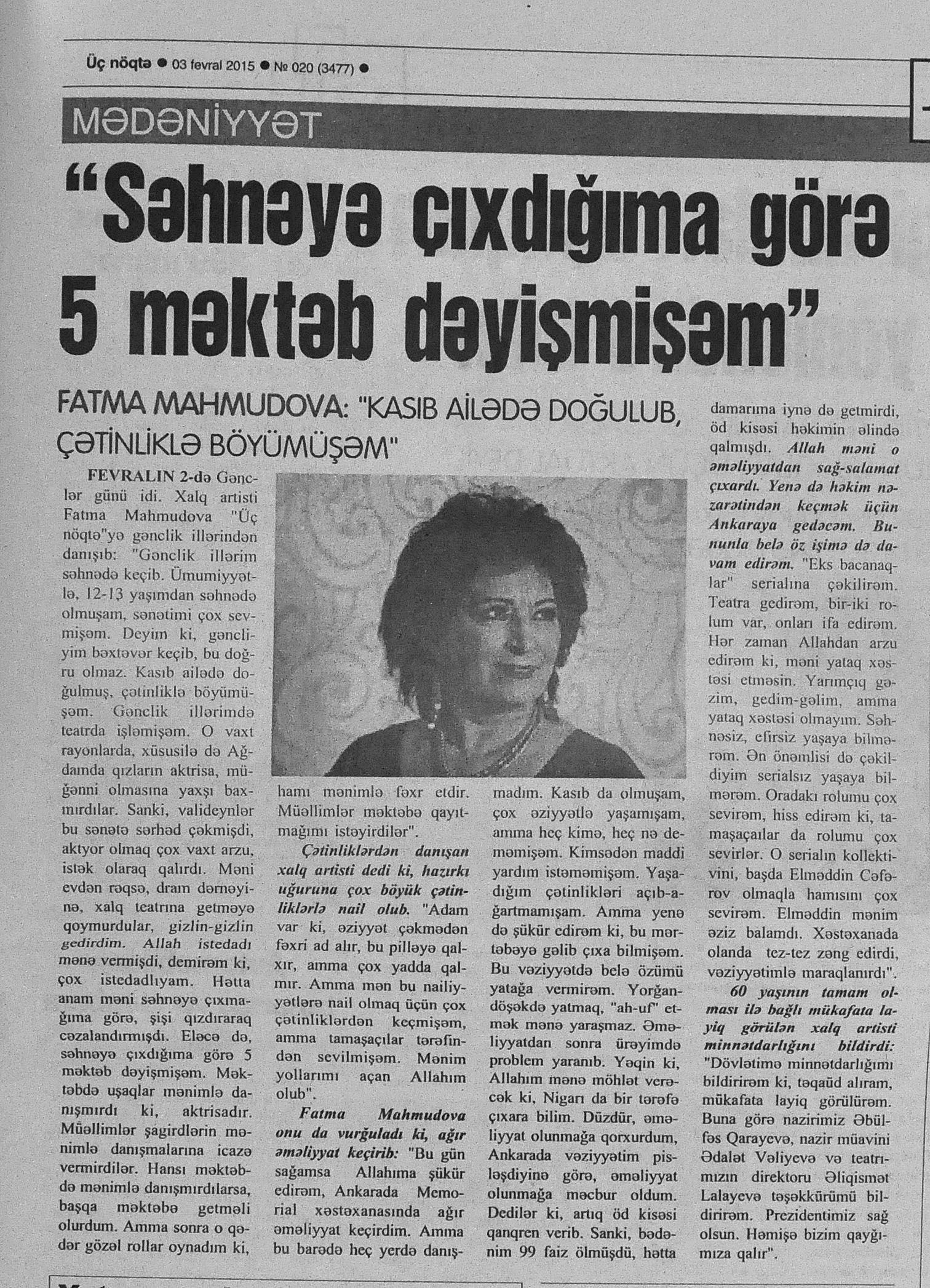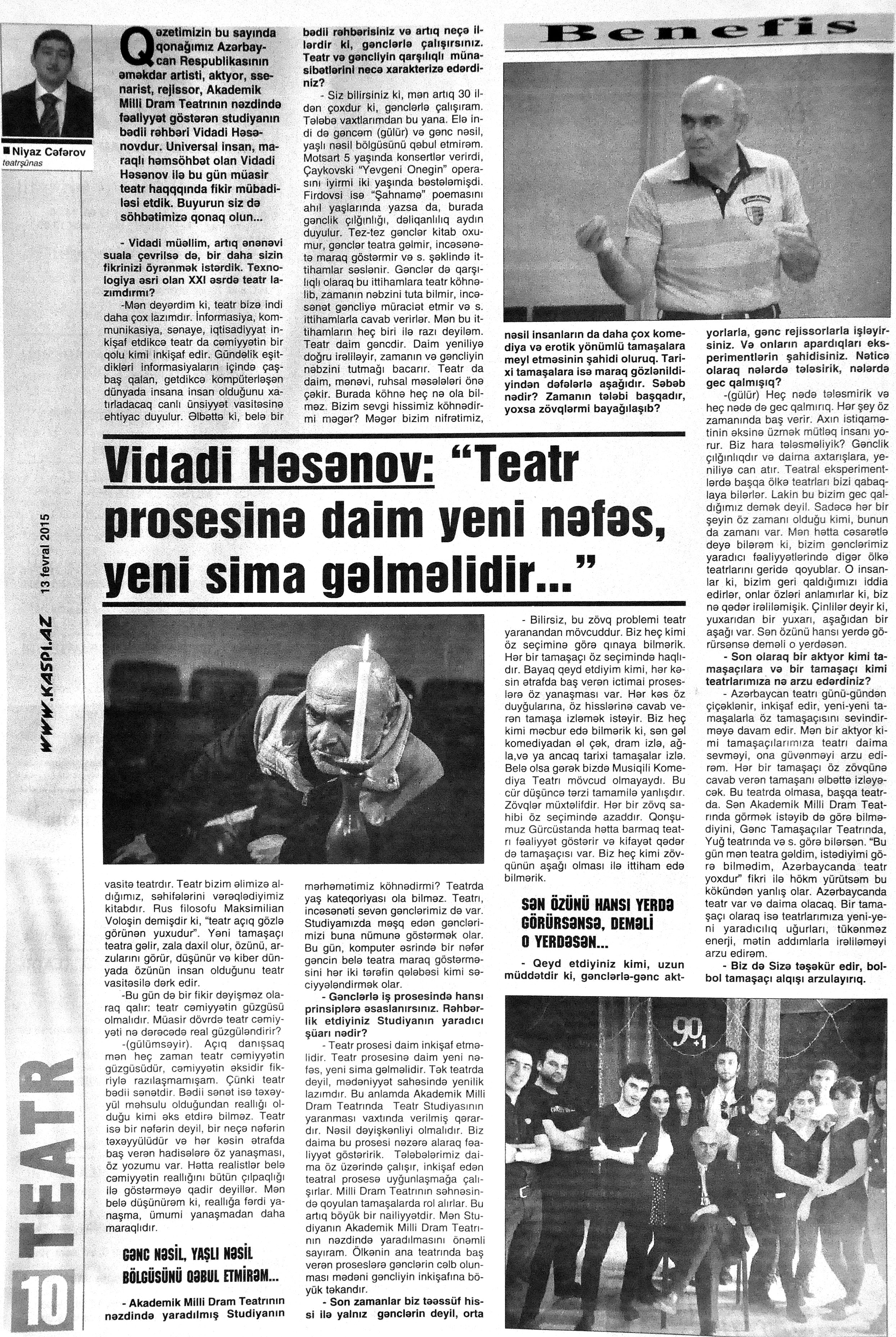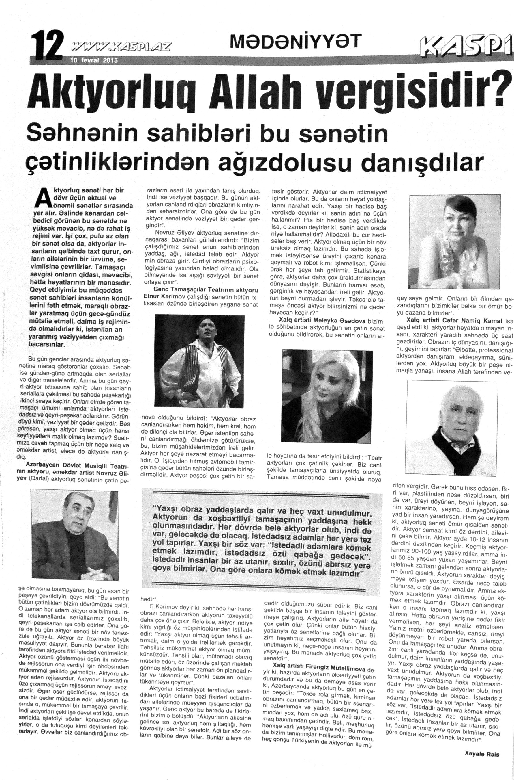 искусств в Госфильмофонде] //Бакинский рабочий.- 2015.- 6 февраля.- С.5. ТЕАТР