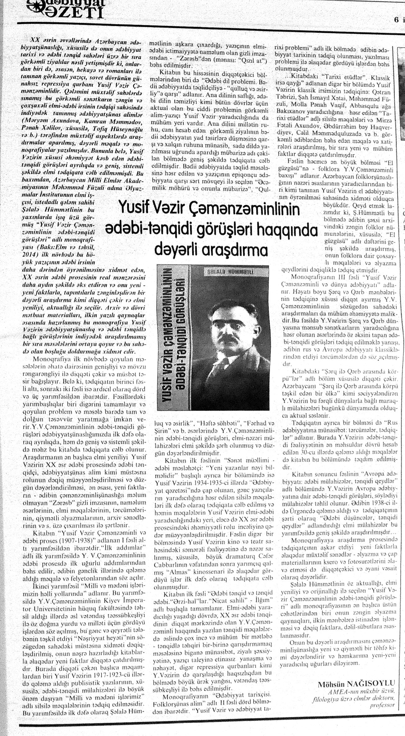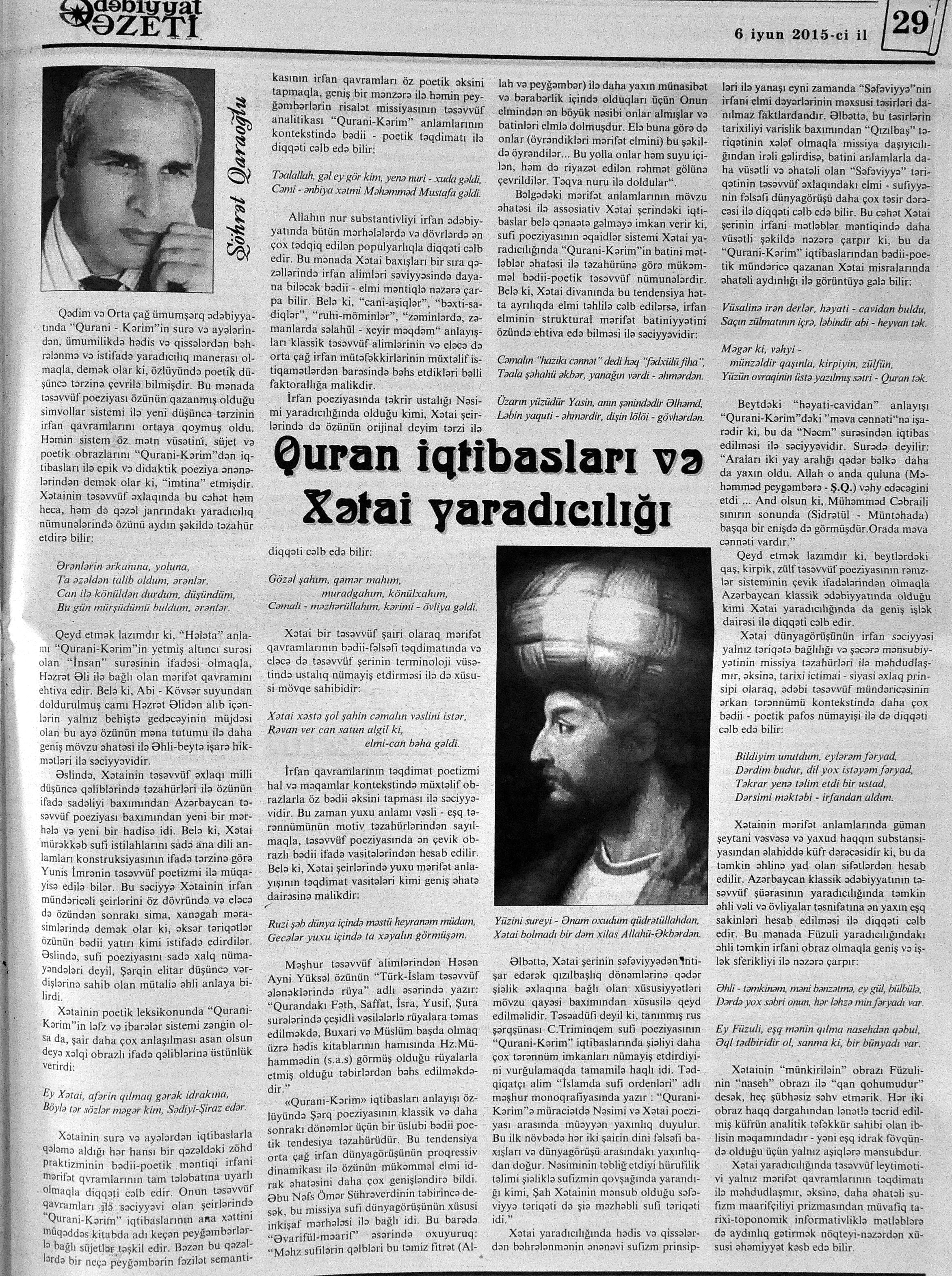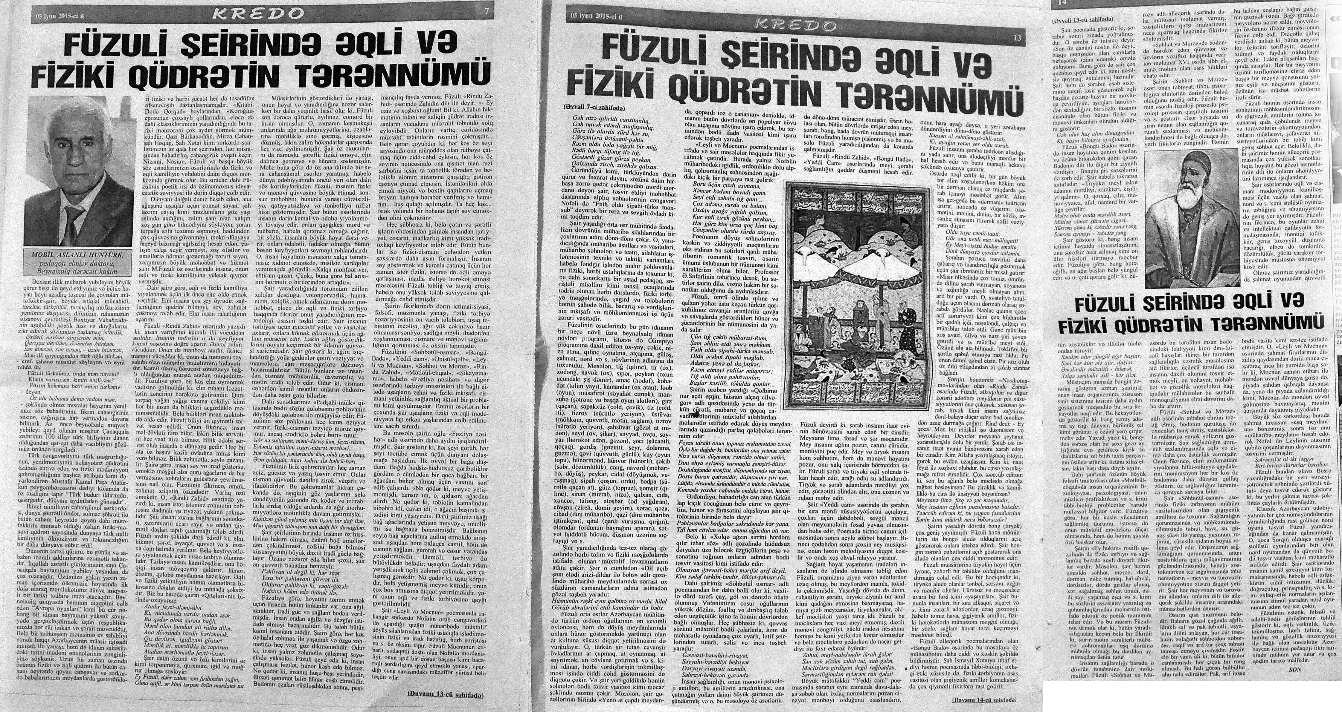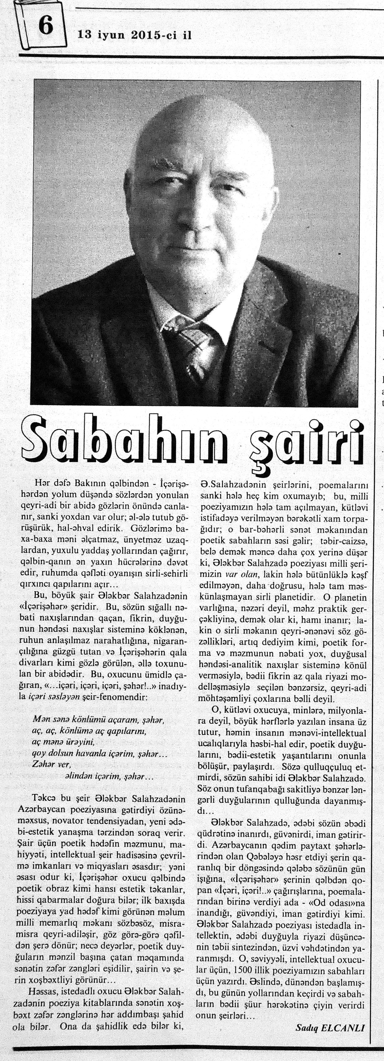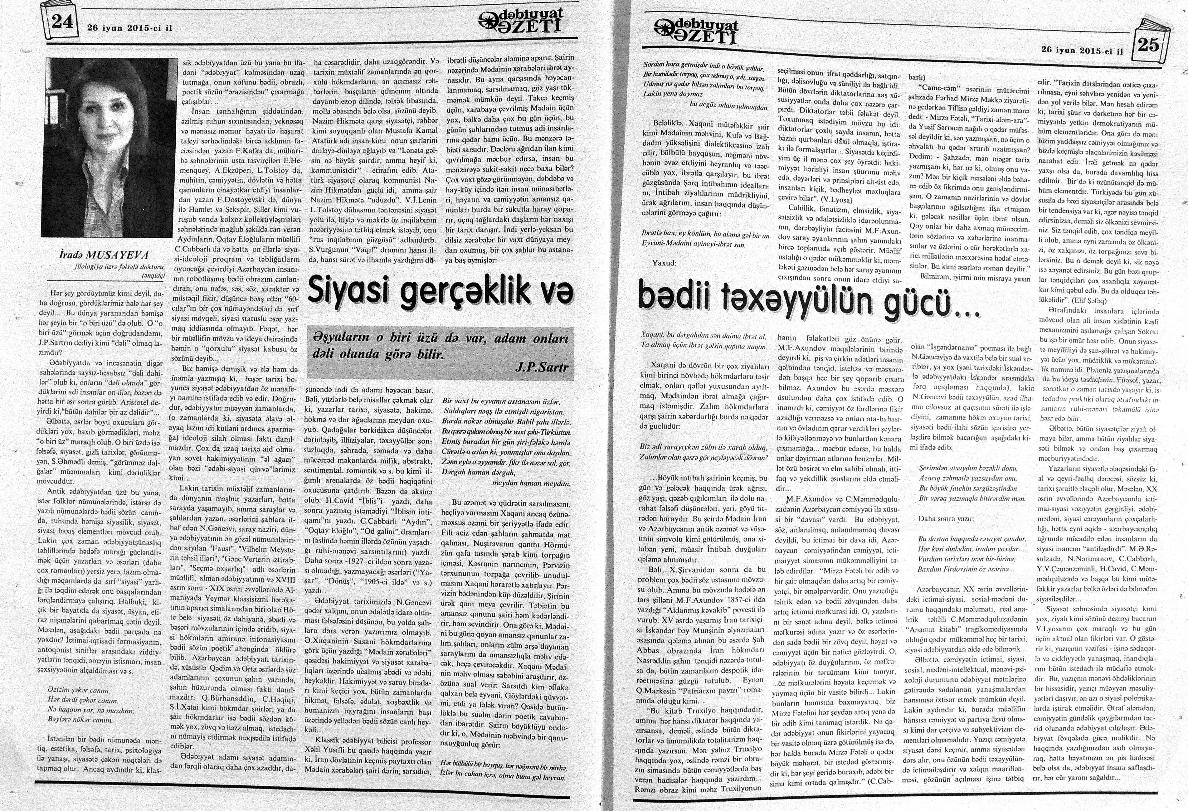 544. Kamal, Y. Əhvalatlar və rəvayətlər //Ədəbiyyat qəzeti.- 2015.- 6 iyun.- S.12-13. 545. Məmmədli, İ. Dahilər: //Ədəbiyyat qəzeti.- 2015.- 6 iyun.- S.15.