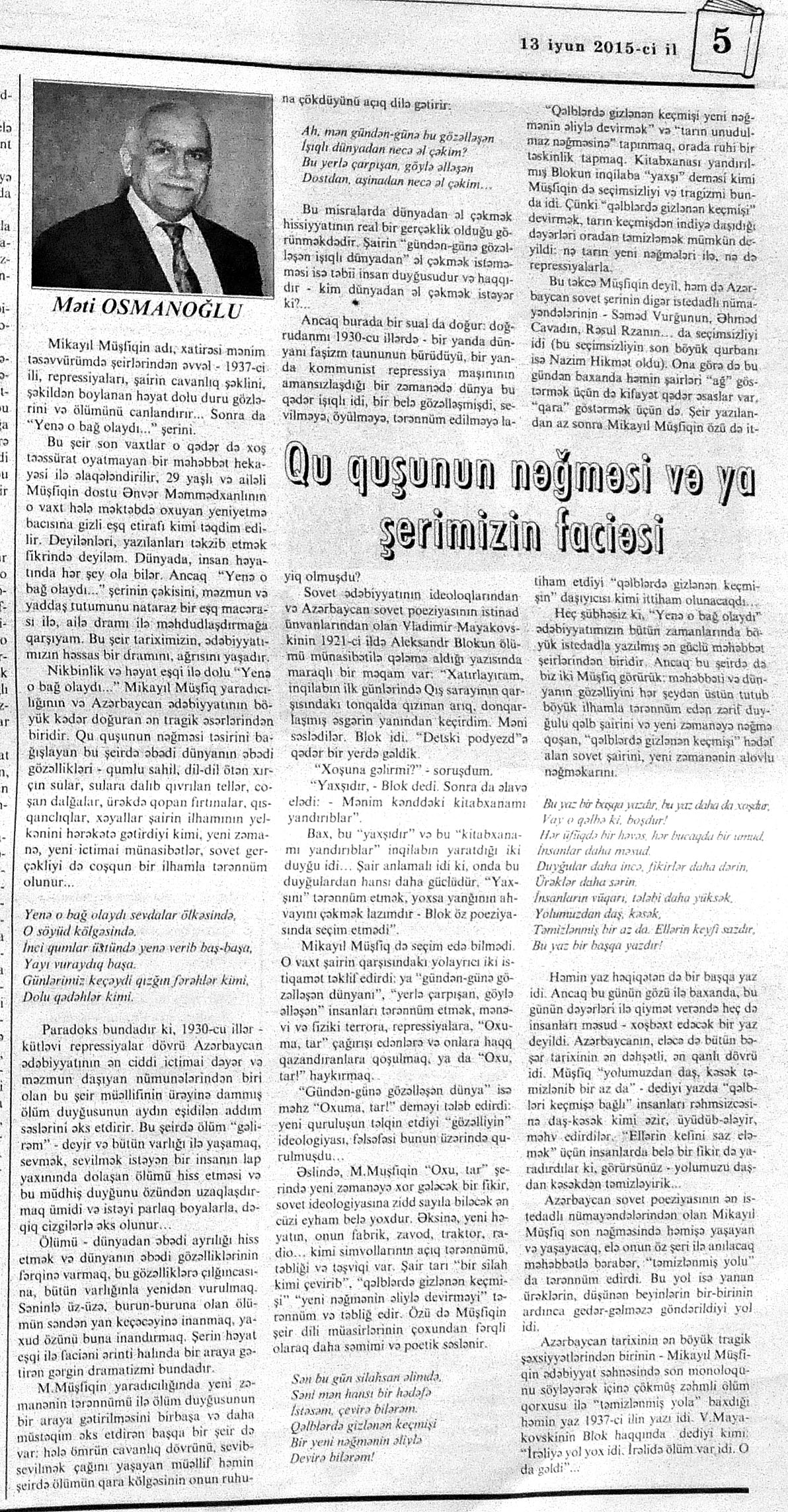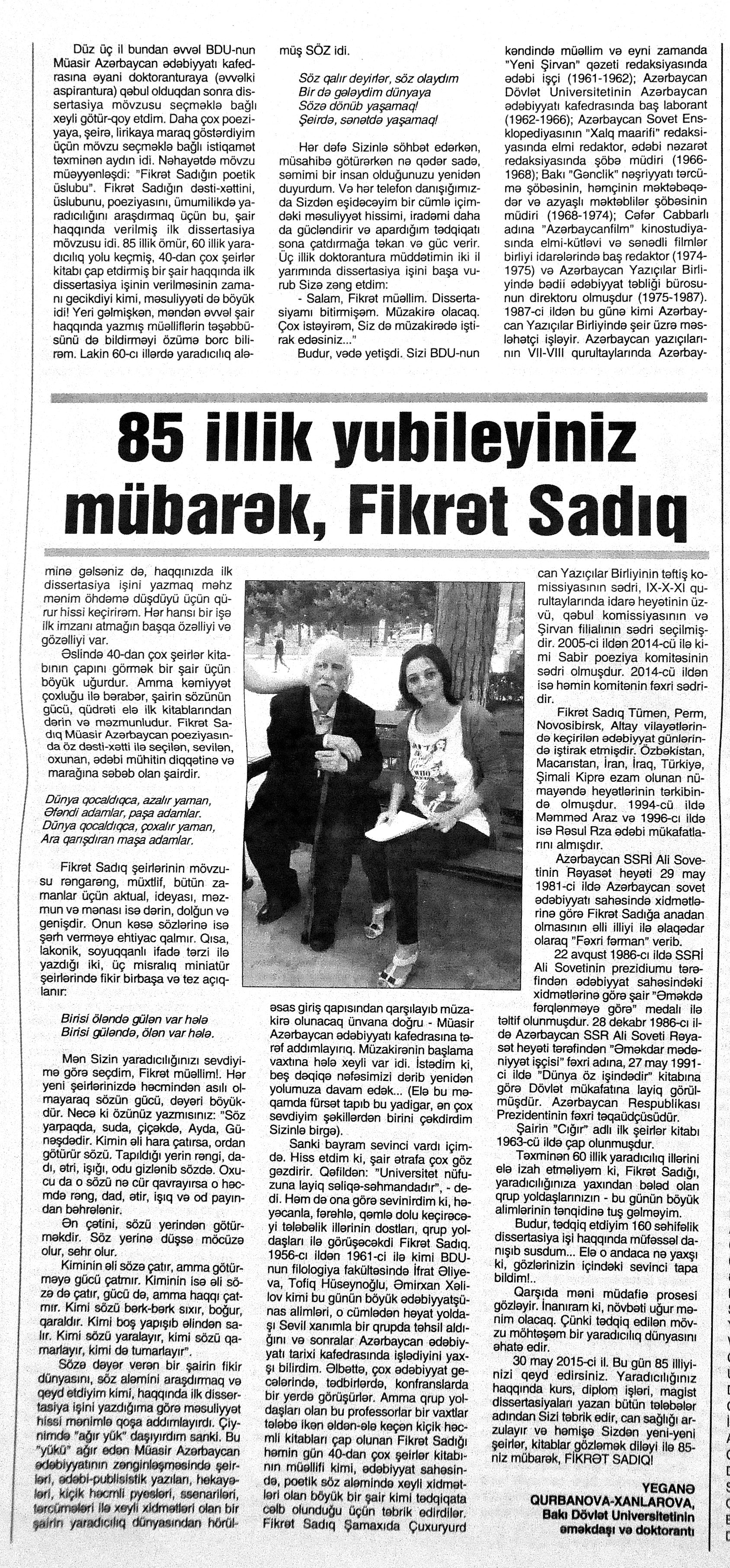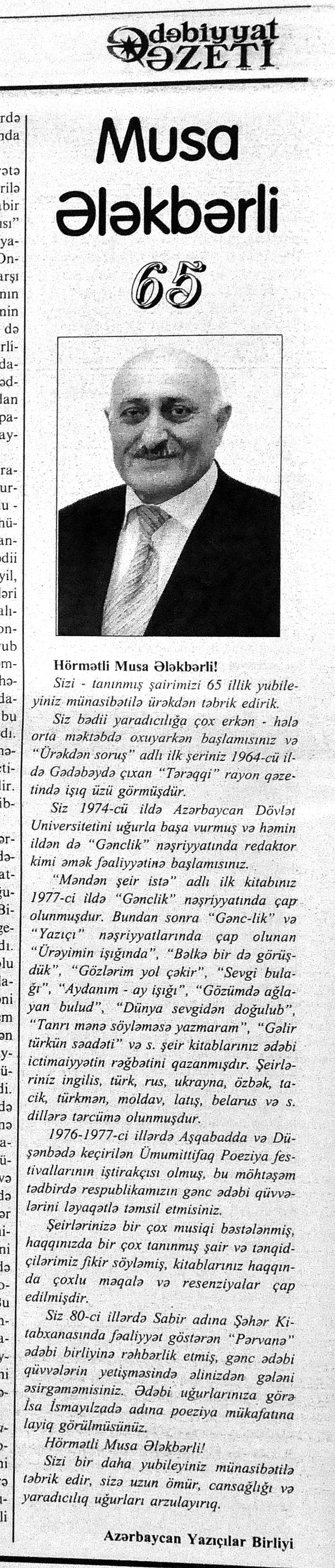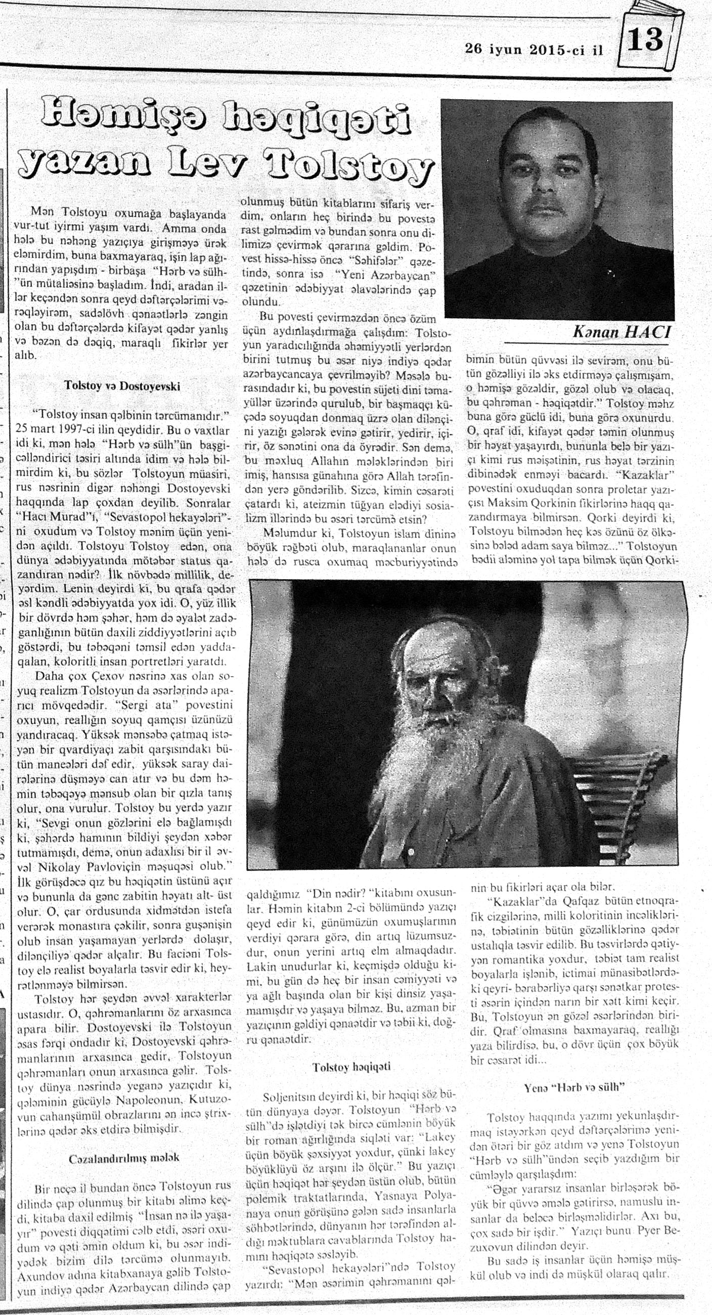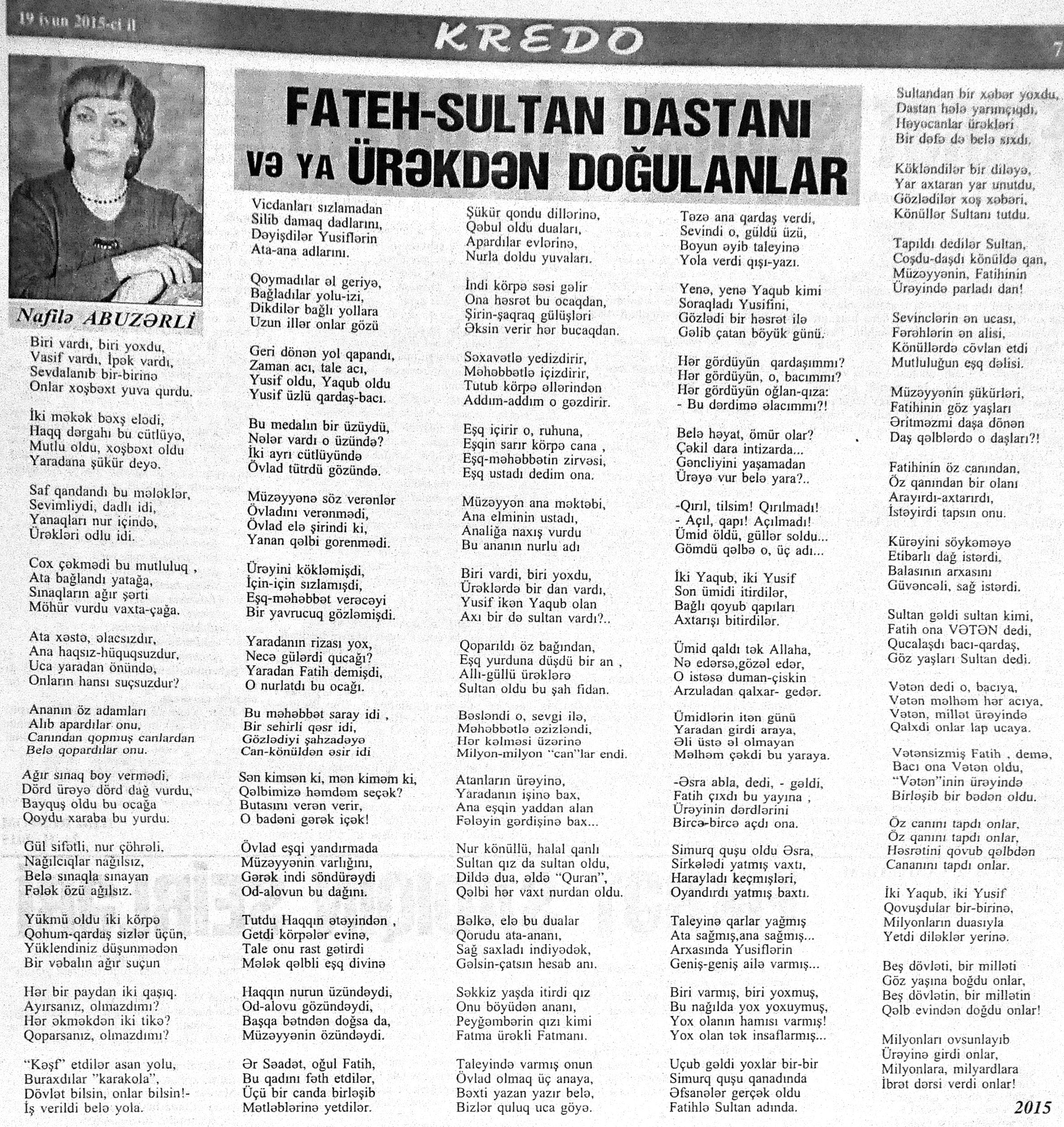 544. Kamal, Y. Əhvalatlar və rəvayətlər //Ədəbiyyat qəzeti.- 2015.- 6 iyun.- S.12-13. 545. Məmmədli, İ. Dahilər: //Ədəbiyyat qəzeti.- 2015.- 6 iyun.- S.15.