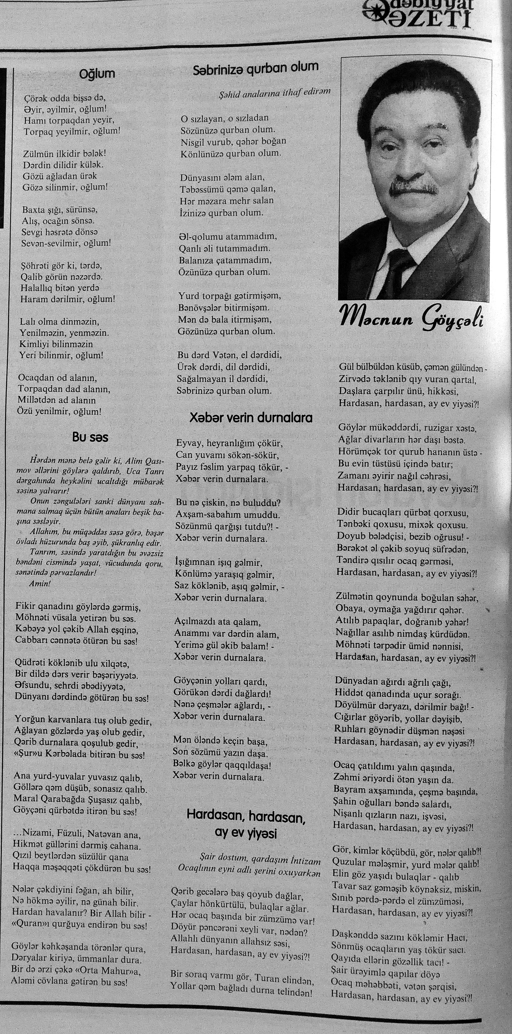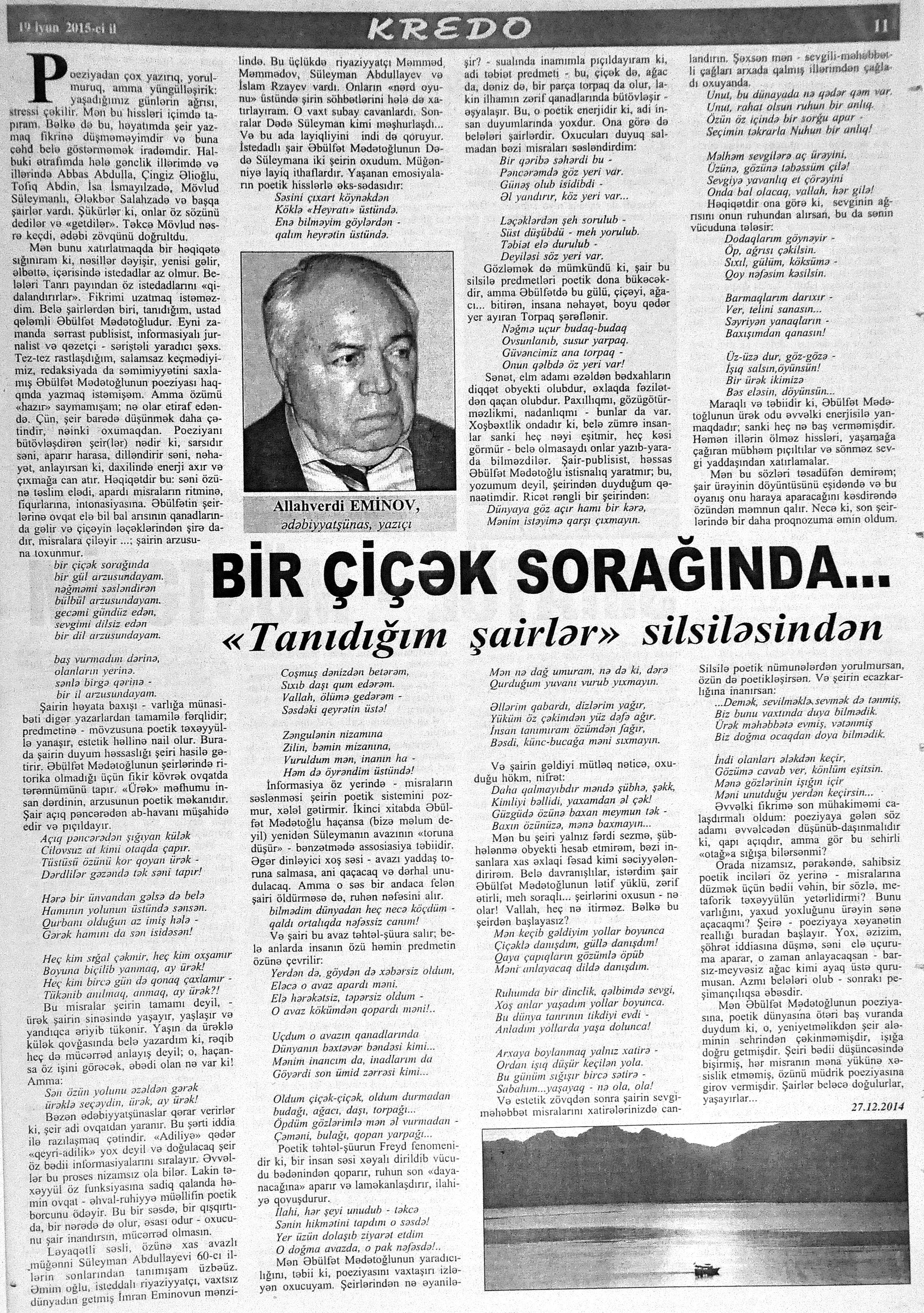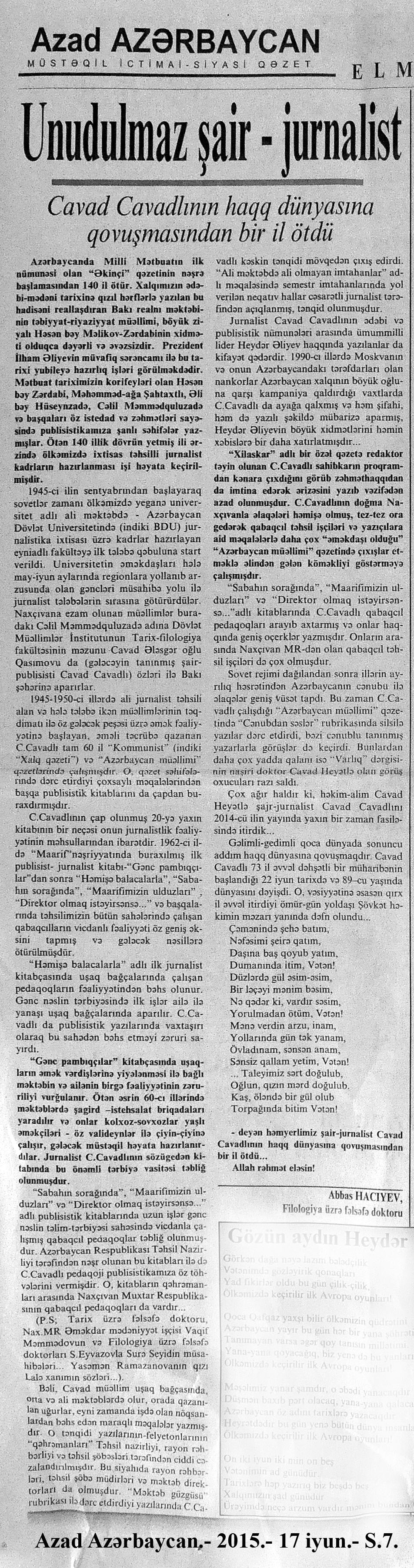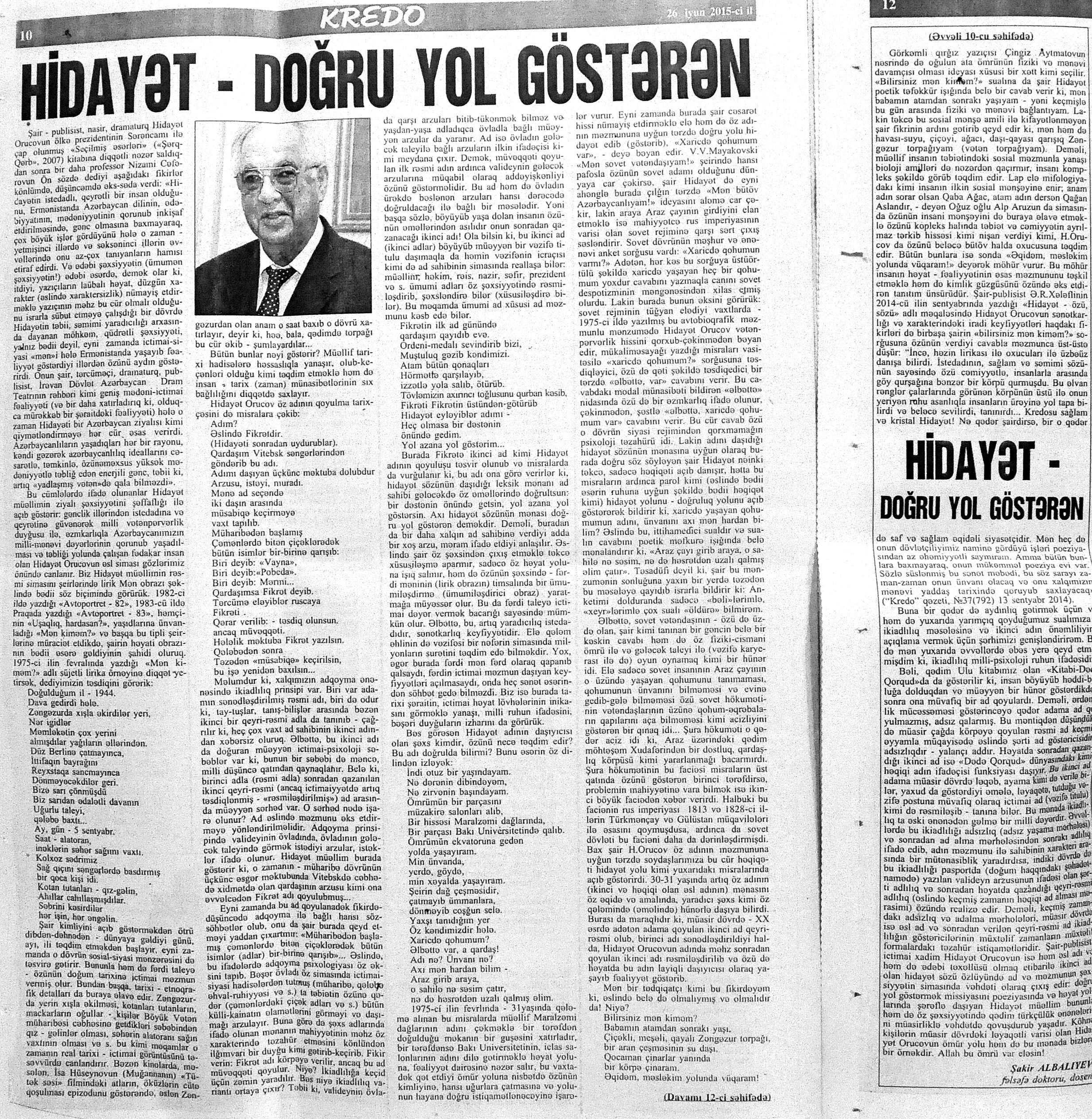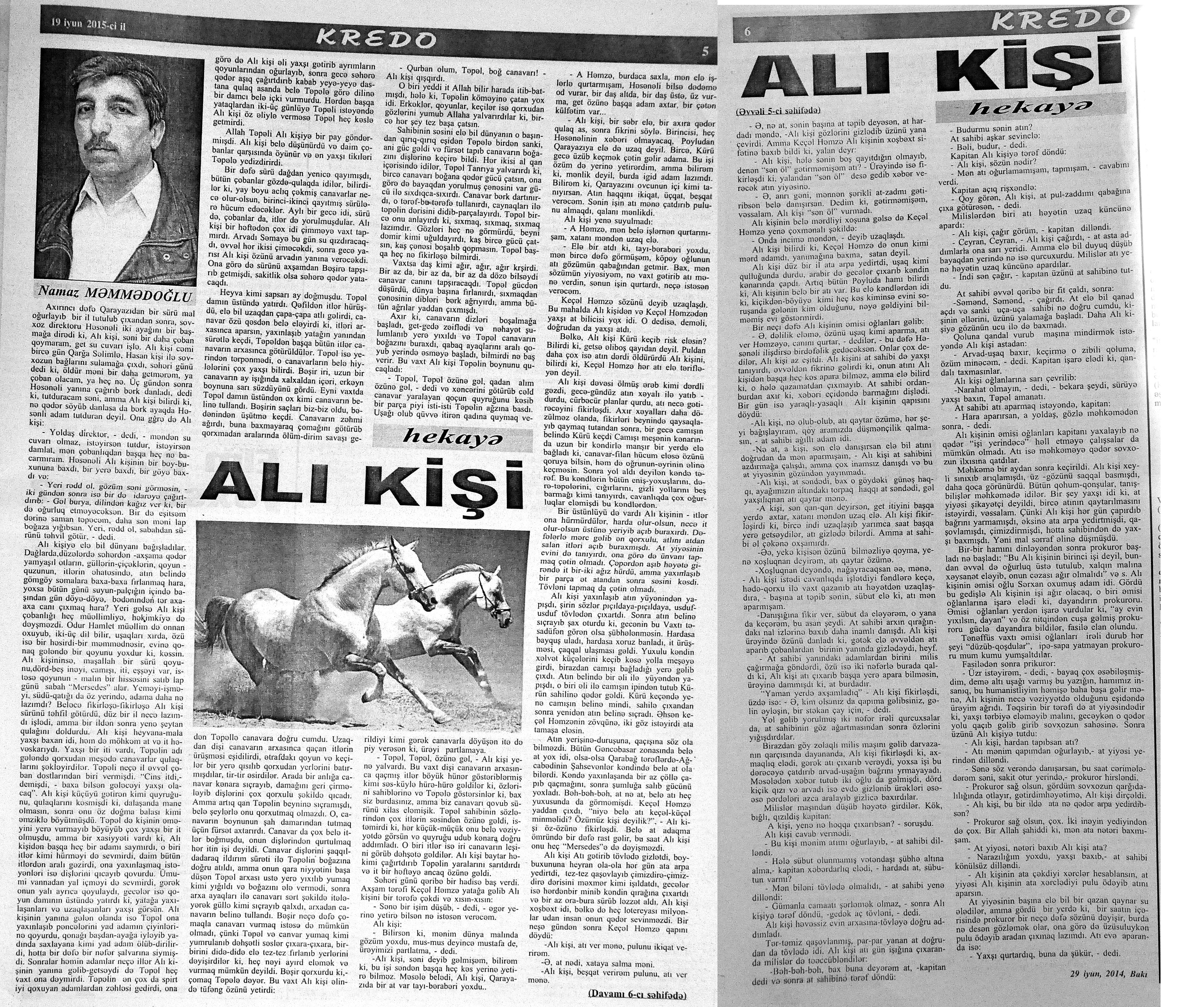 544. Kamal, Y. Əhvalatlar və rəvayətlər //Ədəbiyyat qəzeti.- 2015.- 6 iyun.- S.12-13. 545. Məmmədli, İ. Dahilər: //Ədəbiyyat qəzeti.- 2015.- 6 iyun.- S.15.
