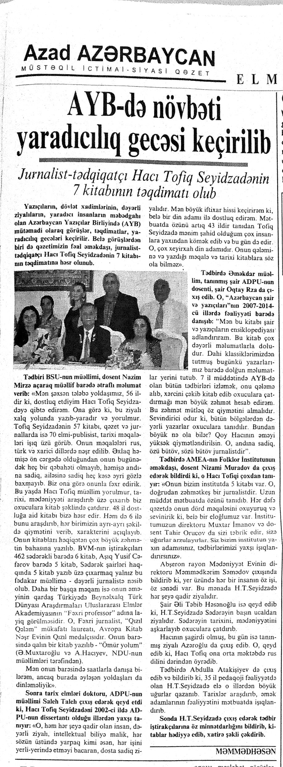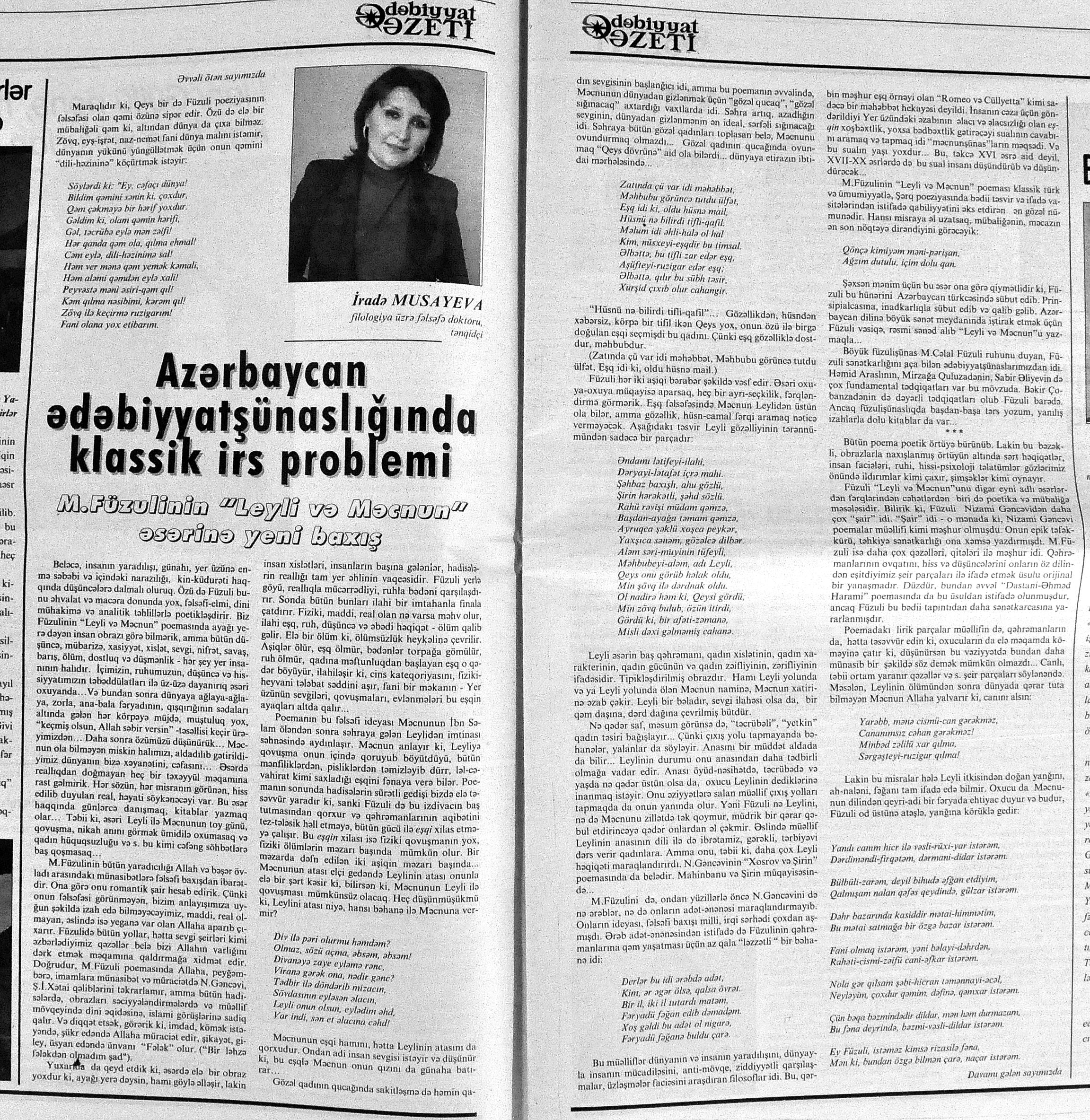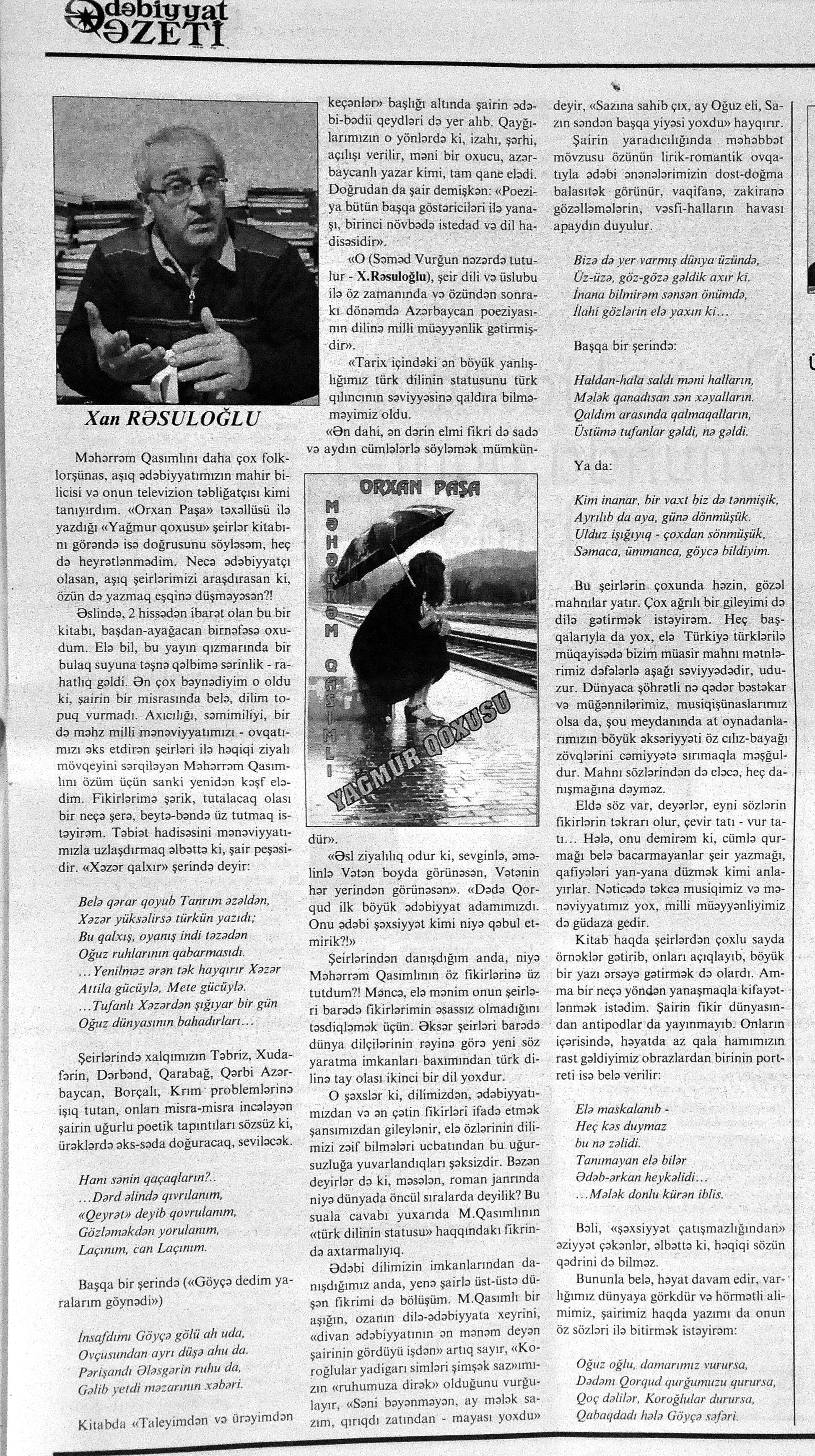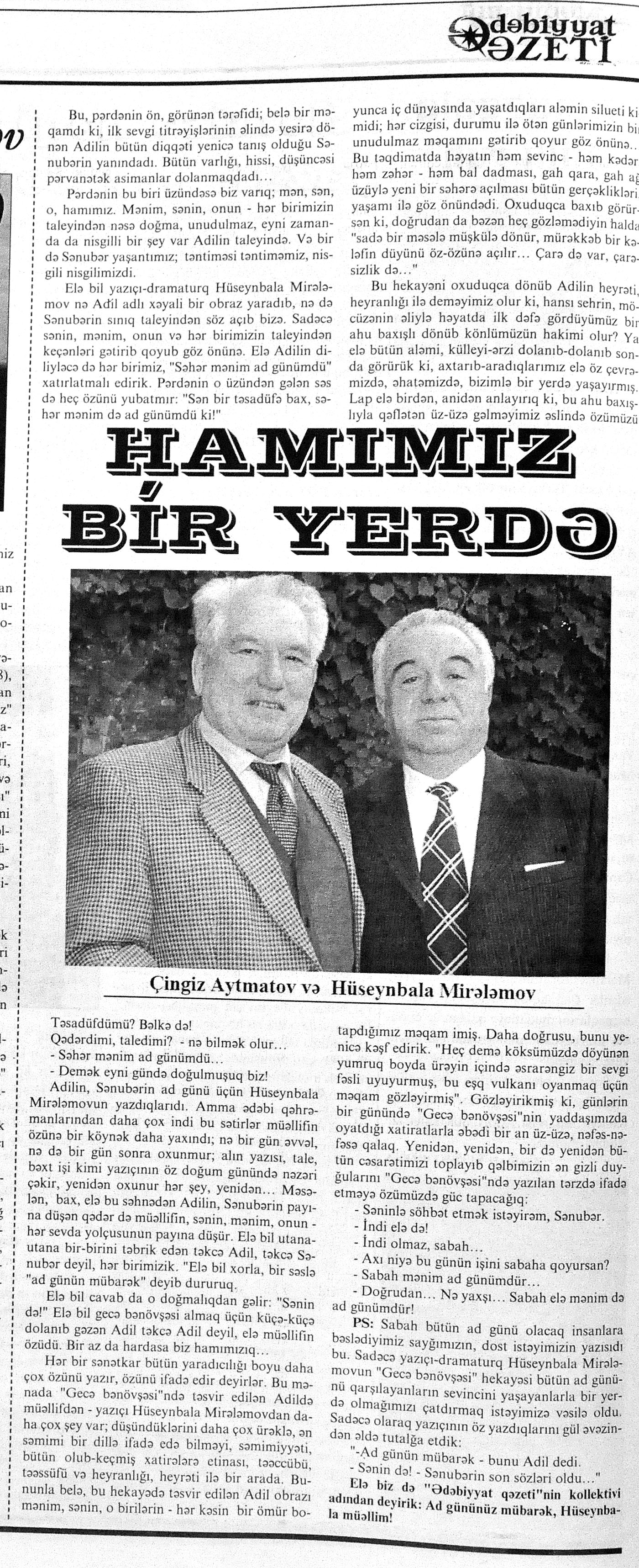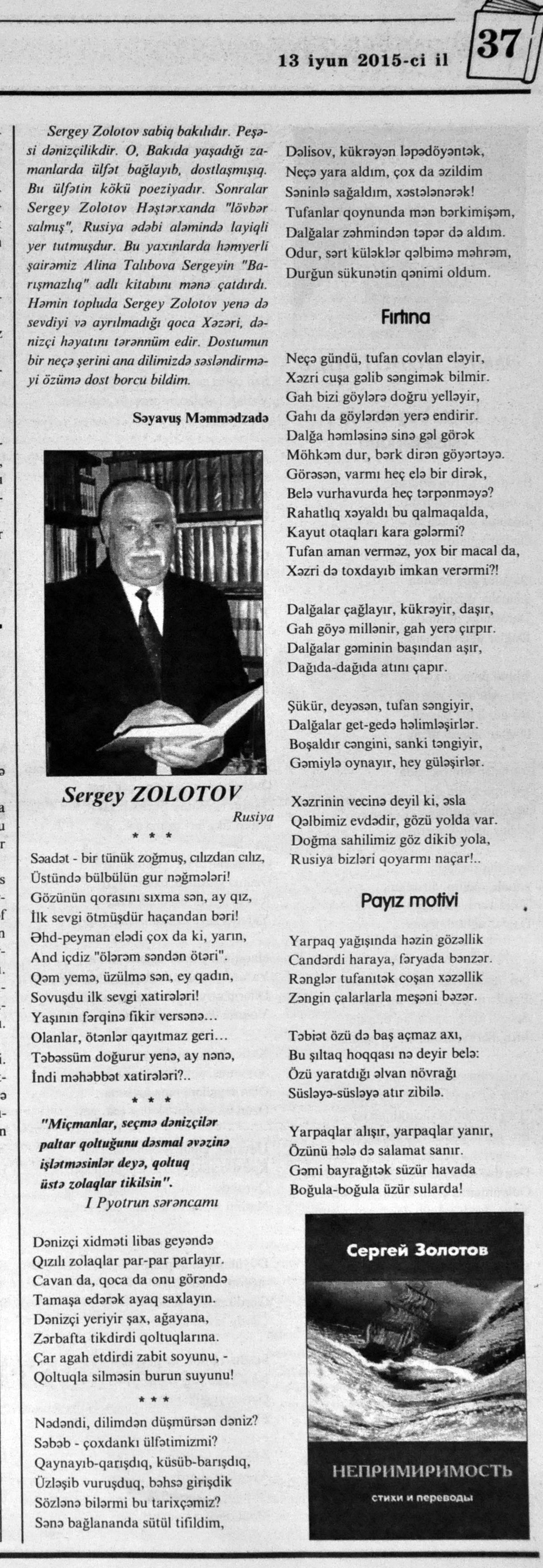 544. Kamal, Y. Əhvalatlar və rəvayətlər //Ədəbiyyat qəzeti.- 2015.- 6 iyun.- S.12-13. 545. Məmmədli, İ. Dahilər: //Ədəbiyyat qəzeti.- 2015.- 6 iyun.- S.15.