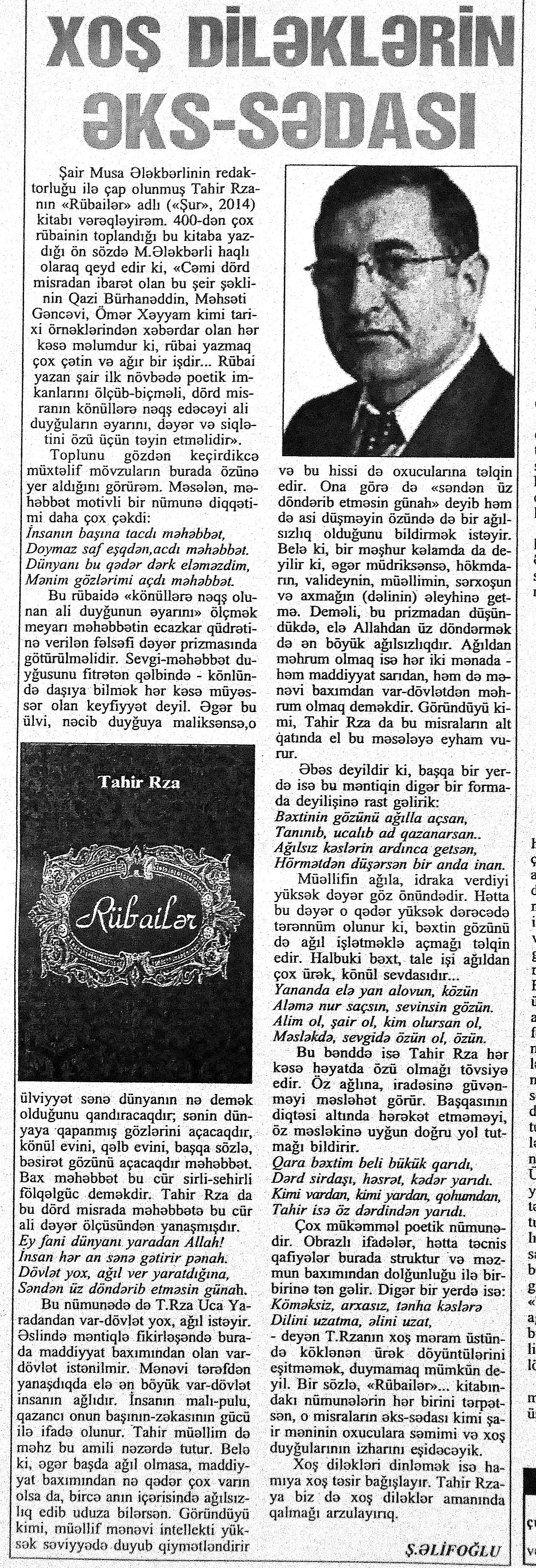 141. Kitab soraqlı bayramlar //Mədəniyyət.- 2015.- 3 iyun.- S.12. 142. Oğuz rayonunda istedadların baxış-müsabiqəsi: [Mədəniyyət Mərkəzində] //Mədəniyyət.- 2015.- 17 iyun.- S.11. 143. Saatlıda və Xızıda kitab bayramları //Mədəniyyət.- 2015.- 5 iyun.- S.12.