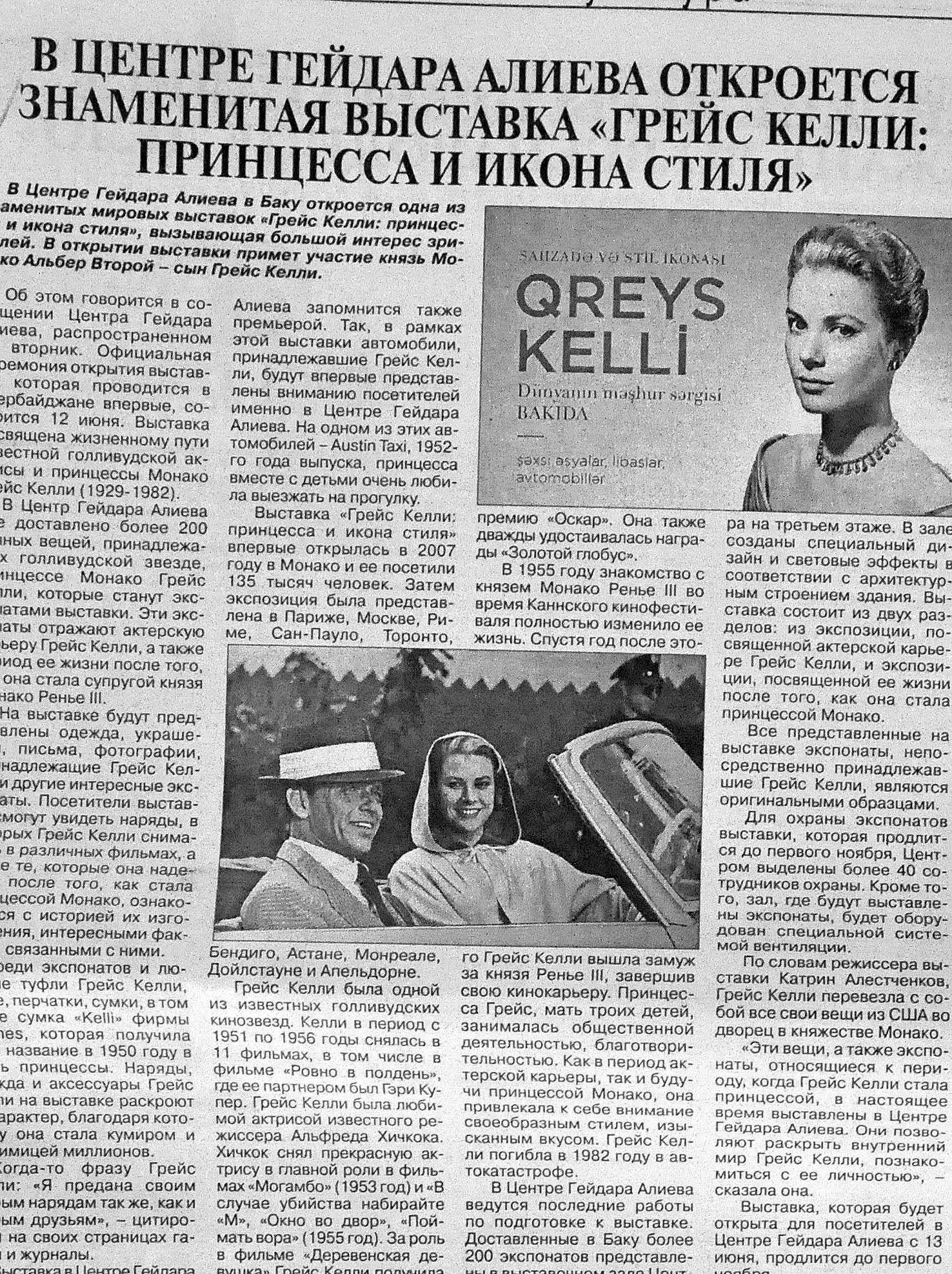 59. Азербайджанские художники представят свои работы в Лувре //Вышка.- 2015.- 5 июня.- С.16. 60. Аликоглу, Р. Carrusel du Louvre: В Лувре проходит международная выставка картин под названием Carrusel du Louvre //Эхо.- 2015.- 17 июня.- С.8. 61. Асадова. И. Возвращение к нашим ирландским корням: В Баку выступит группа Rhythm of the dance //Эхо.- 2015.-9 июня.- C. 5. 62. В Баку впервые прозвучит концерт французского композитора «Ходжалы 613»: [Пьера Тилуа] //Эхо. - 2015.- 3 июня.- С. 8. 63. В Пекине состоялся вечер азербайджанской музыки //Эхо.- 2015 - 3 июня.- С. 8. 64. В Центре Гейдара Алиева открывается выставка «Грейс Келли: принцесса и икона стиля» //Бакинский рабочий.- 2015.- 6 июня.- С. 7. 65. В Центре Гейдара Алиева откроется знаменитая выставка «Грейс Келли: Принцесса и икона стиля» //Вышка.- 2015.- 12 июня.- С.11. 66. В Центре Гейдара Алиева открылась знаменитая выставка «Грейс Келли: Принцесса и икона стиля»: В церемонии открытия приняла участие первая леди Азербайджана Мехрибан Алиева //Бакинский рабочий.- 2015.- 13 июня.- С.8. 67. Глебова, Л. Любовь Глебова, глава Россотрудничества: «Мы находимся в постоянном поиске новых форм сотрудничества с Азербайджаном» //Азербайджанские известия.- 2015.- 17 июня.- С.4. 68. Директор Азербайджанского культурного центра в Украине награжден Почетной грамотой Полтавского областного совета: [Яшар Алхасов] //Бакинский рабочий.- 2015.- 25 июня.- С.9. 69. Испанская группа «Фламенко» представила новую постановку «Кармен»: [на сцене Центра Гейдара Алиева] //Бакинский рабочий.- 2015.- 17 июня.- С.11. 70. Конкурс карикатуристов Aydın Dogan: [в Турции] //Эхо.- 2015.- 25.-июня.-С.8. 71. Национальный павильон Азербайджана – лучший на «Milan Expo 2015» по привлекательности, архитектуре, современности и интерактивности //Бакинский рабочий.- 2015.- 9 июня.- С.11. 72. Робер Оссейн: «Когда говорю про Азербайджан, на глаза наворачиваются слезы» //Азербайджанские известия.- 2015.- 18 июня.- С.3. 73. Руслан, М. «9 чудес Азербайджана»: Российский режиссер снимает третий фильм цикла: [Игорь Бышнев] //Эхо.- 2015.- 18 июня.- С.8. 74. Сын Грейс Келли приедет в Баку: Князь Монако примет участие в открытии выставки в Центре Гейдара Алиева, где впервые будут представлены личные автомобили голливудской актрисы и принцессы //Эхо.- 2015.- 10 июня.- С. 8. 75. Фильм «Бесконечный коридор» удостоен престижной премии США: [фильм создан на основе воспоминаний выживших свидетелей Ходжалинской трагедии литовским режиссером Андрюсом Брокасом] //Бакинский рабочий.- 2015.- 20 июня.- С.5. 76. Хойланд, Р. Профессор Роберт Хойланд: «Я хочу глубоко изучить историю и культуру Азербайджана и региона, в котором он расположен»: [интервью директора Научного центра Азербайджана и Кавказоведения имени Низами Гянджеви при Оксфордском университете] //Бакинский рабочий.- 2015.-10 июня.- С.7.