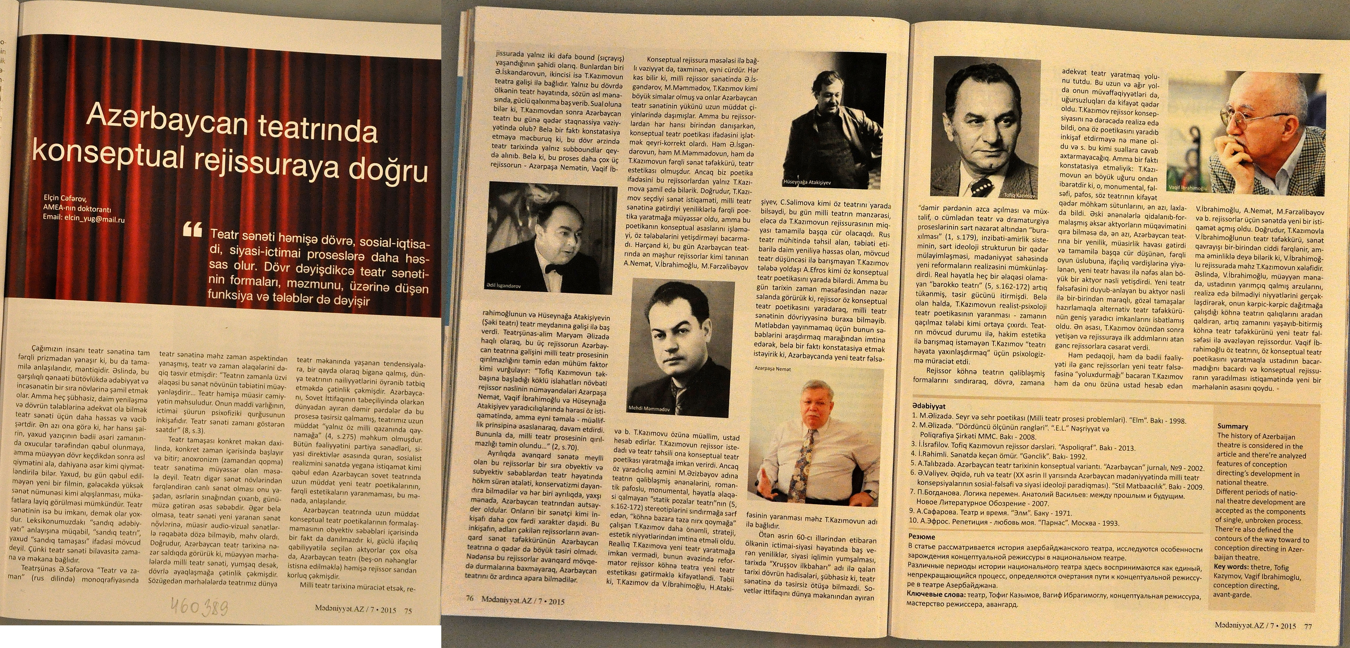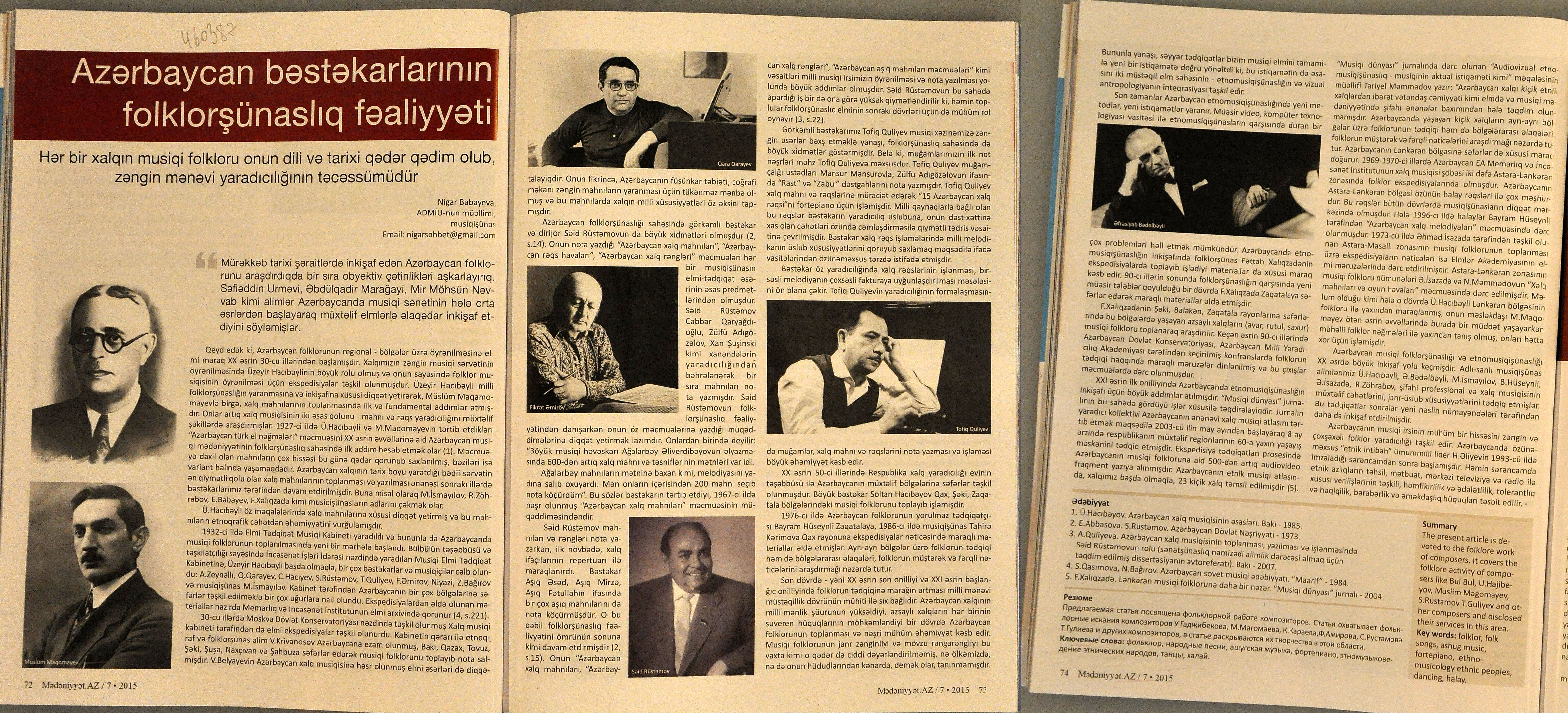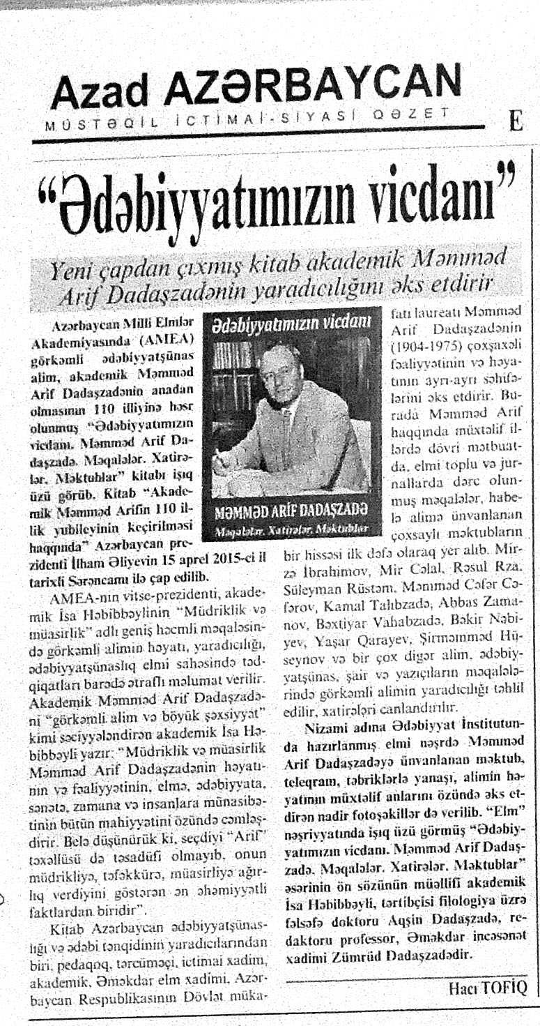 M.F.Axundov adına Azərbaycan Milli Kitabxanasının mətbəəsində ofset üsulu ilə çap olunmuşdur. Ünvan: Bakı, Xaqani küç. 57; Kağız formatı: 60x84 1/16 Həcmi: 7.2 ç.v. Sifariş: 30 Çapa imzalanmışdır: 03.12.2015 Tirajı 50 Pulsuz |