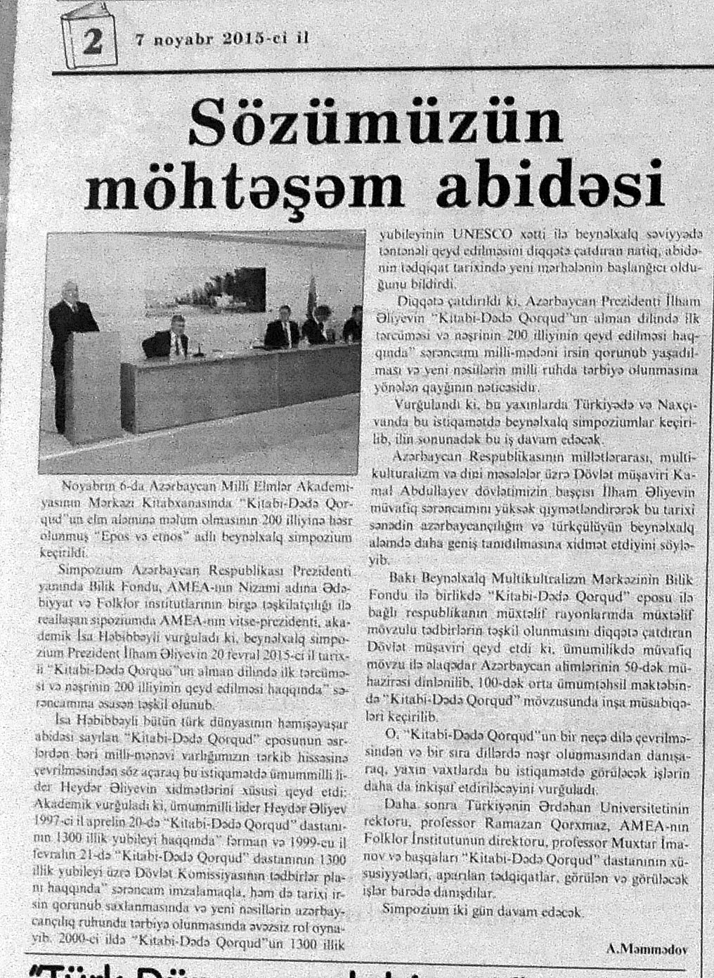il //Azərbaycan.- 2015.- 12 noyabr.- S.2.