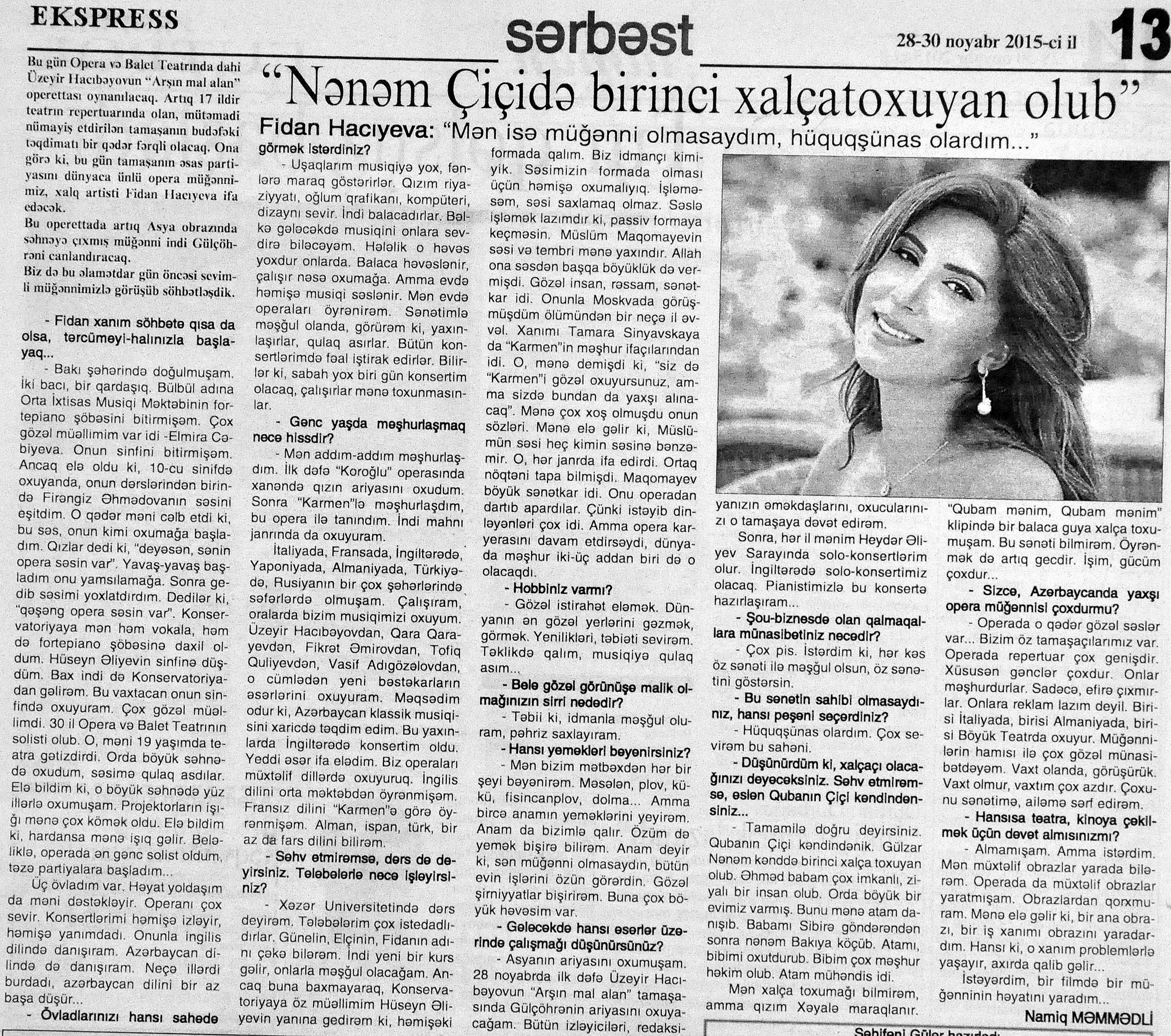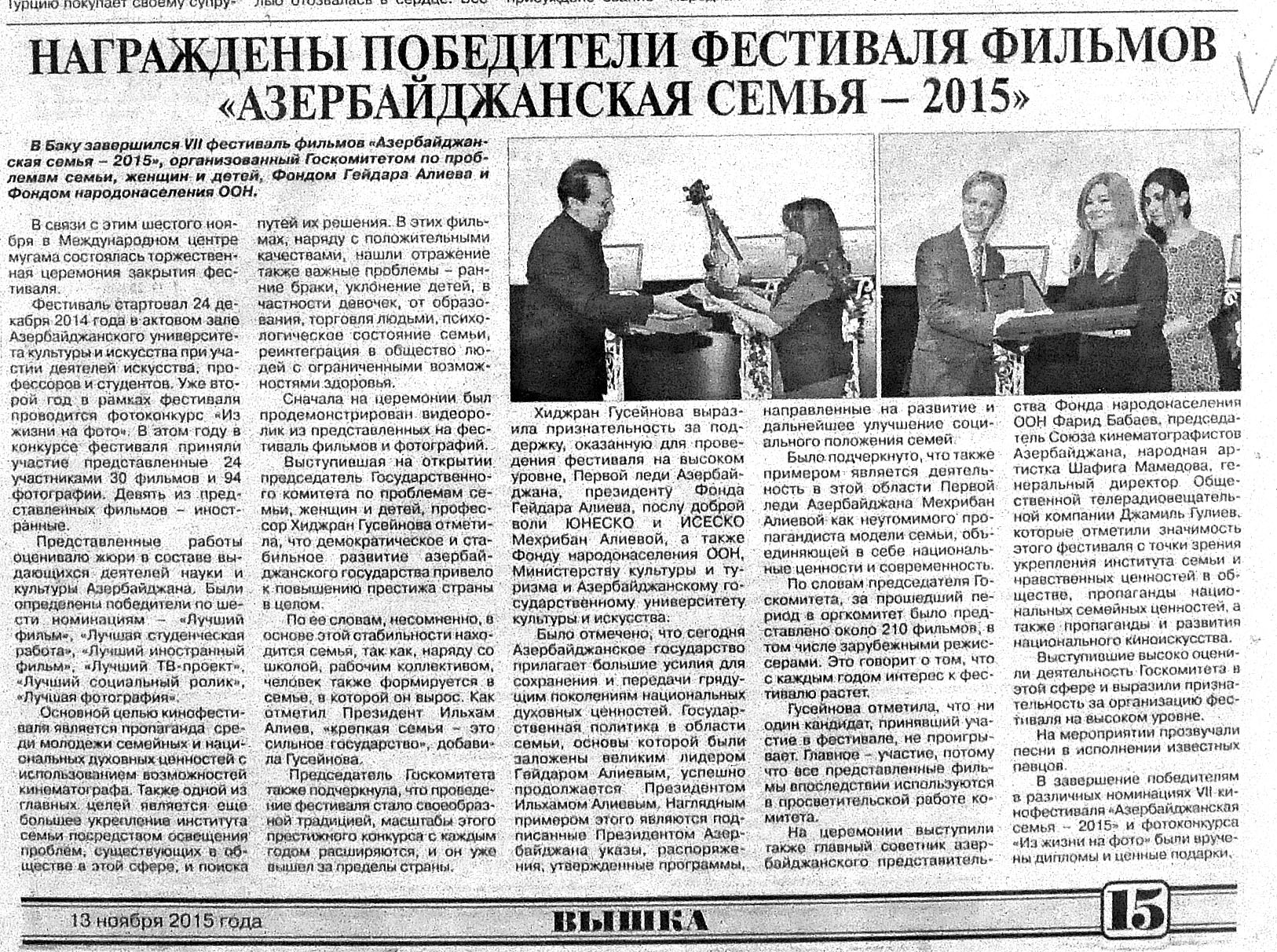 //Azərbaycan. - 2015.- 6 noyabr.-S.6.