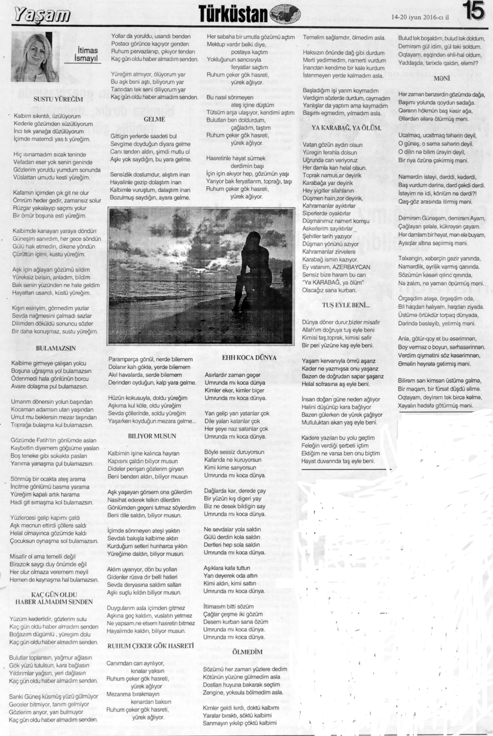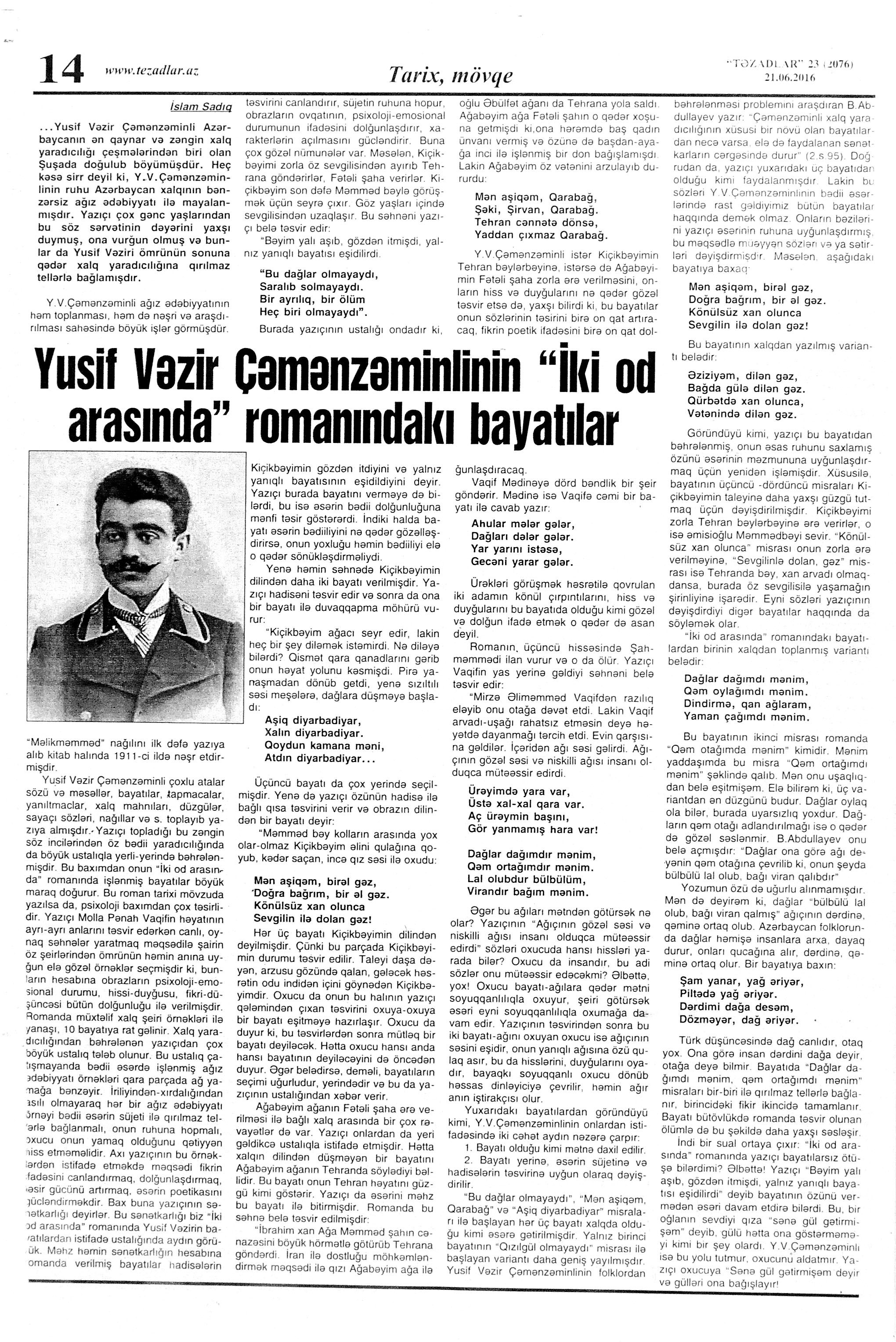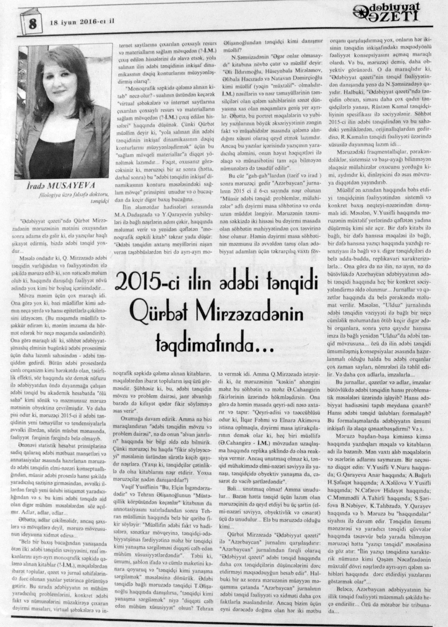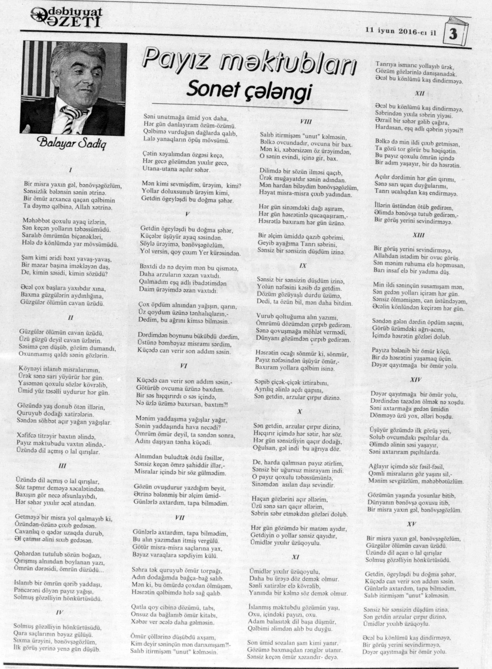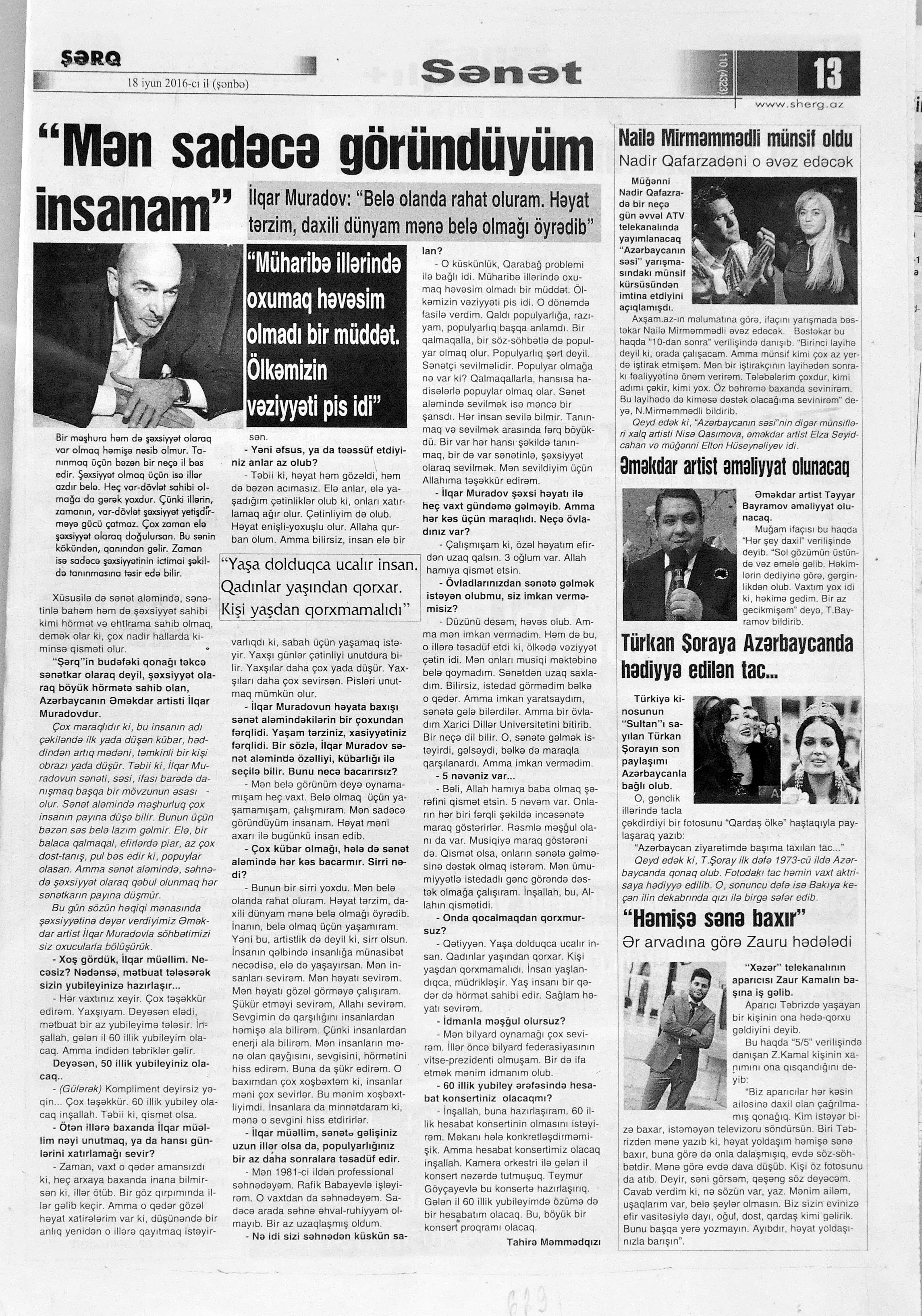 636. Cəlaloğlu, E. 9-cu meydan //Türküstan.- 2016.- 14-20 iyun.- S.12. 637. Cəlaloğlu, E. 9-cu meydan //Türküstan.- 2016.- 7-13 iyun.- S.12. 638. Cəlaloğlu, E. 9-cu meydan //Türküstan.- 2016.-21-27 iyun.- S.12. 639. Nəcəfoğlu, N. Qoytuləli körpüsü – “Bir sədanın ardınca” povestindən parça //525-ci qəzet.- 2016.- 11 iyun.- S.18-19. 640. Nəcəfoğlu, N. Qoytuləli körpüsü – “Bir sədanın ardınca” povestindən parça //525-ci qəzet.- 2016.- 18 iyun.- S.18-19.
