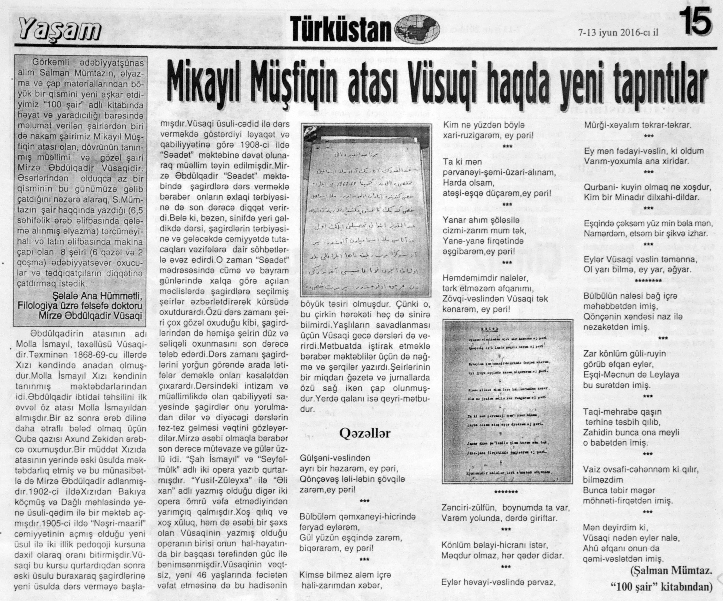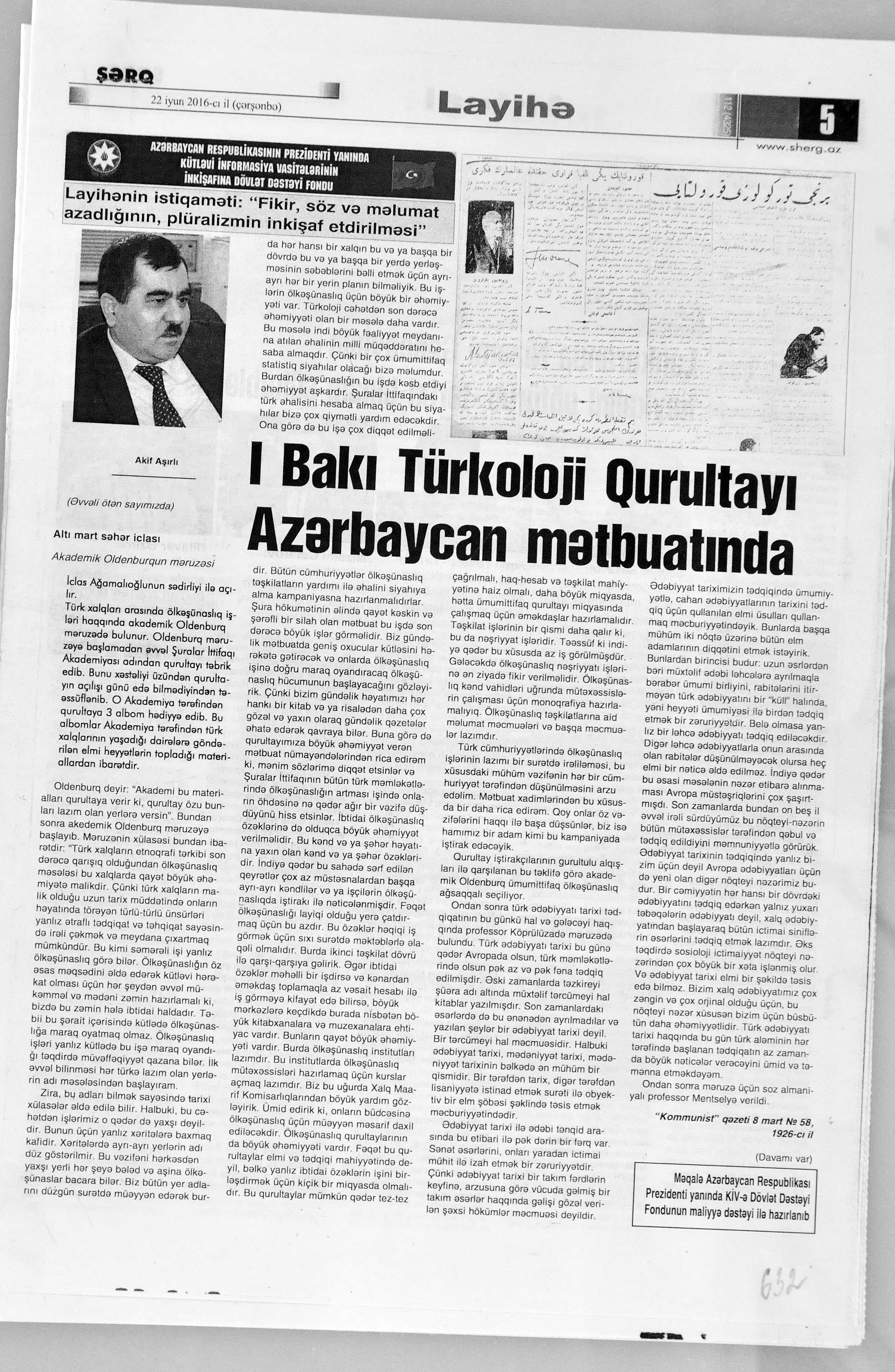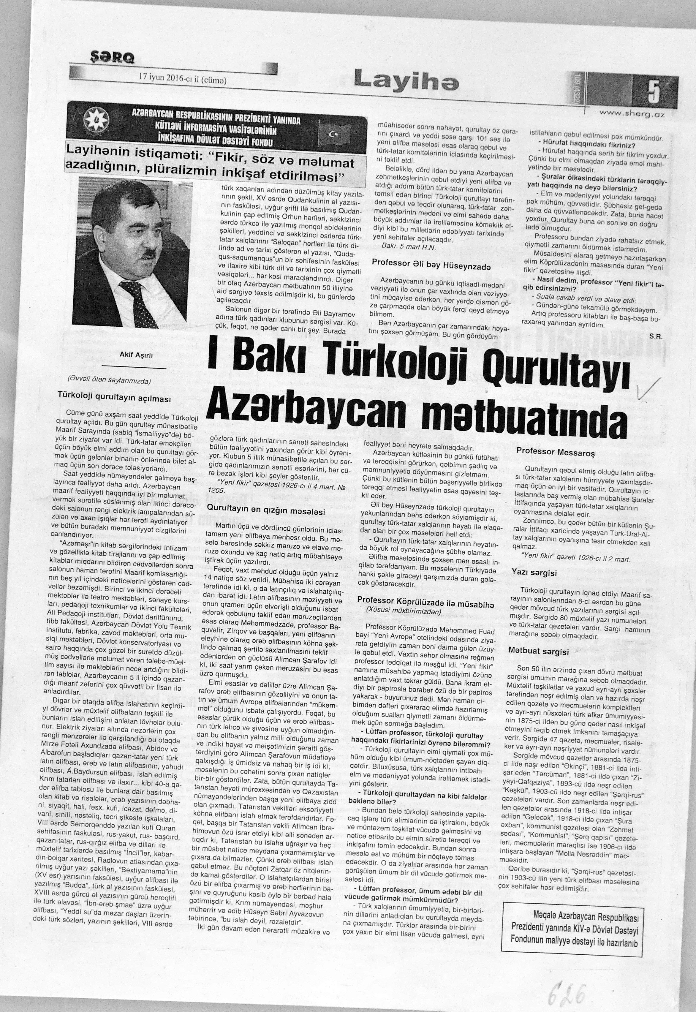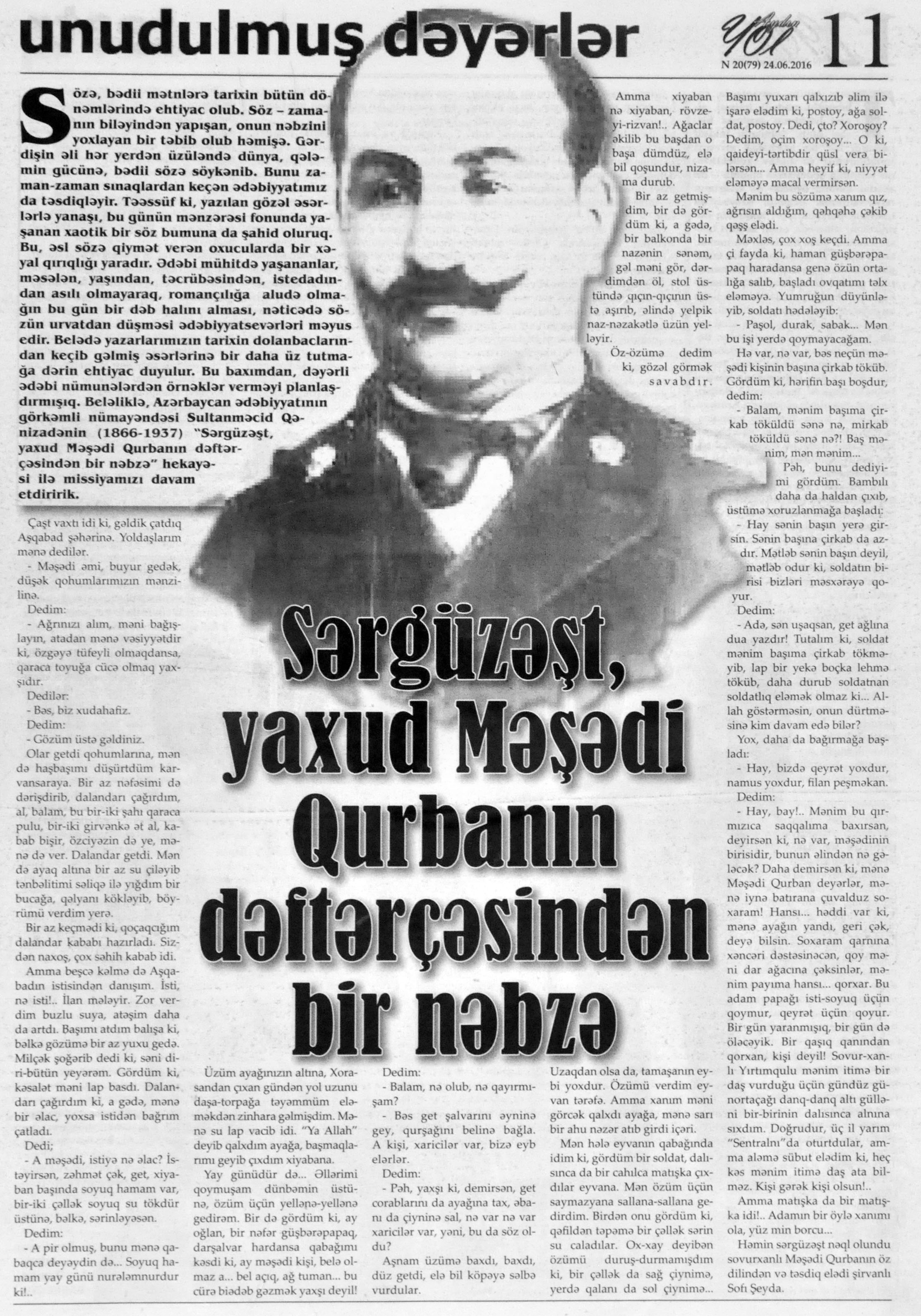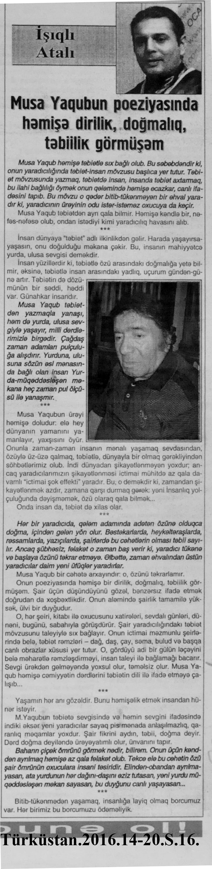 636. Cəlaloğlu, E. 9-cu meydan //Türküstan.- 2016.- 14-20 iyun.- S.12. 637. Cəlaloğlu, E. 9-cu meydan //Türküstan.- 2016.- 7-13 iyun.- S.12. 638. Cəlaloğlu, E. 9-cu meydan //Türküstan.- 2016.-21-27 iyun.- S.12. 639. Nəcəfoğlu, N. Qoytuləli körpüsü – “Bir sədanın ardınca” povestindən parça //525-ci qəzet.- 2016.- 11 iyun.- S.18-19. 640. Nəcəfoğlu, N. Qoytuləli körpüsü – “Bir sədanın ardınca” povestindən parça //525-ci qəzet.- 2016.- 18 iyun.- S.18-19.