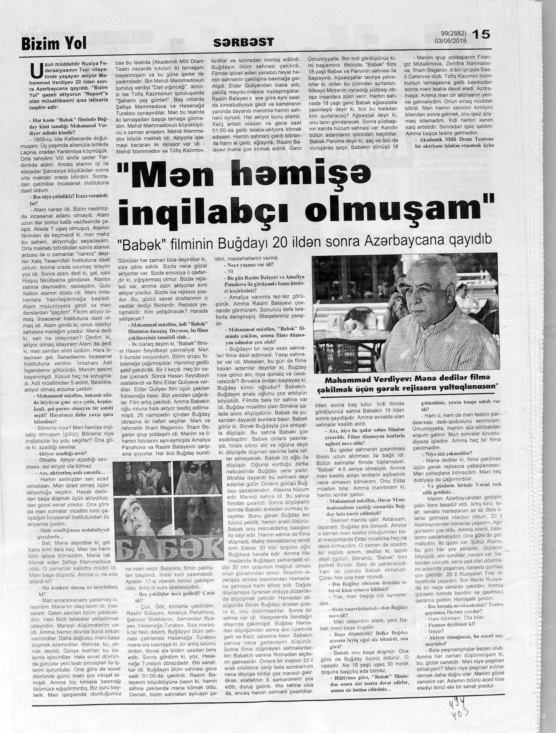 936. Буланова, О. Тайны Баку: История кинематографии //Эхо.- 2016.- 11 июня.- С.7. 937. В Белграде состоялась презентация книги о Баку: [Заслуженного артиста Бахрама Багирзаде] //Бакинский рабочий.- 2016.- 18 июня.- С.6.