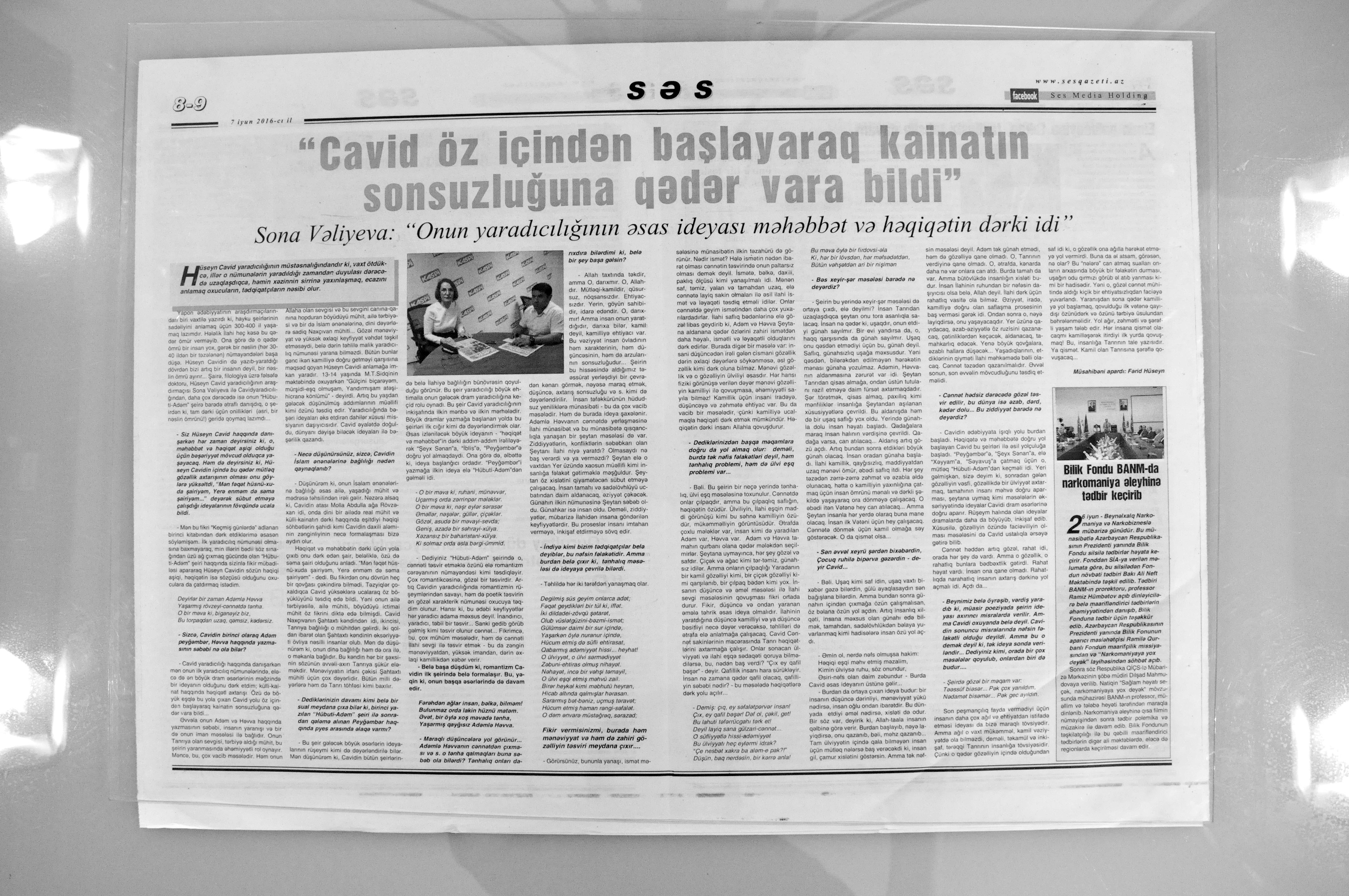 875. Асадова, И. Little Lies и «300 слов о Сопротивлении»: Центр современного искусства YARAT представил две масштабные и креативные выставки //Эхо.- 2016.- 11 июня.- С.10. 876. Кязимова, С. Прошлое или настоящее?: Новые проекты Yarat! ломают представление о времени и пространстве //Азербайджанские известия.- 2016.- 11 июня.- С.3.
