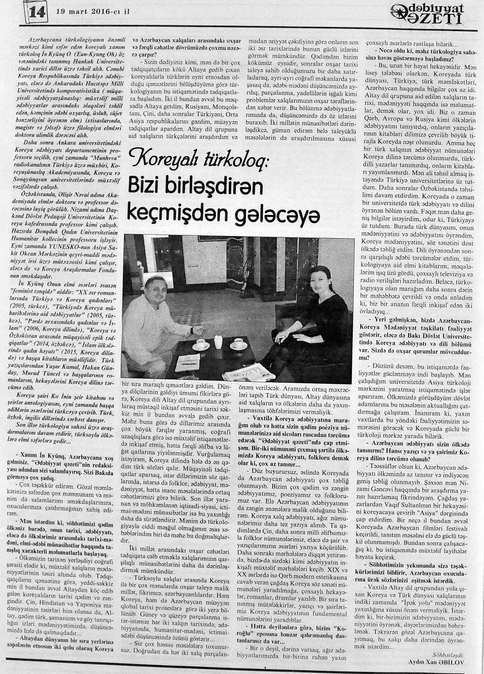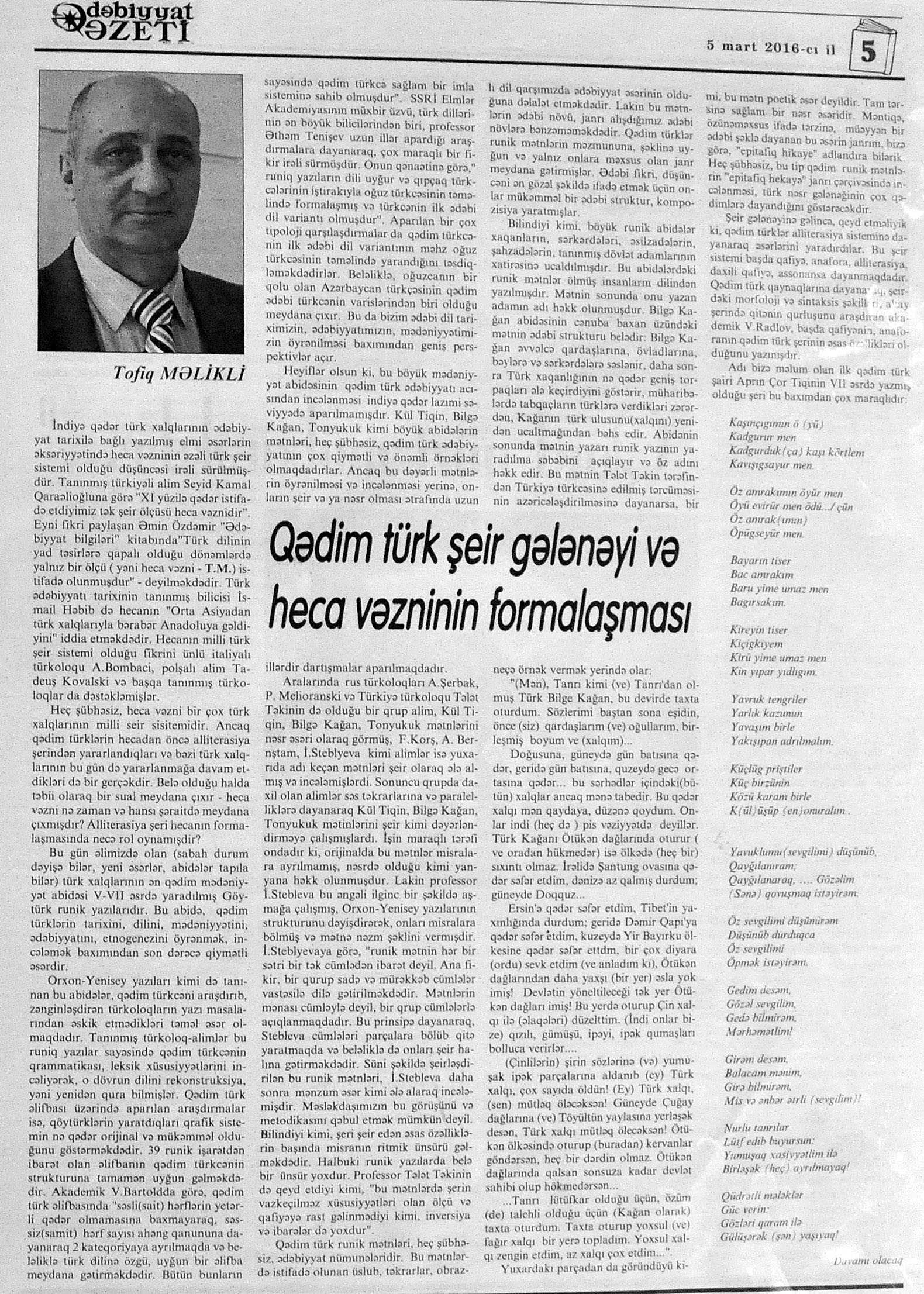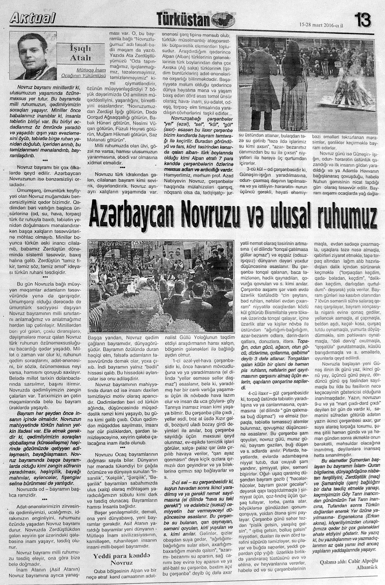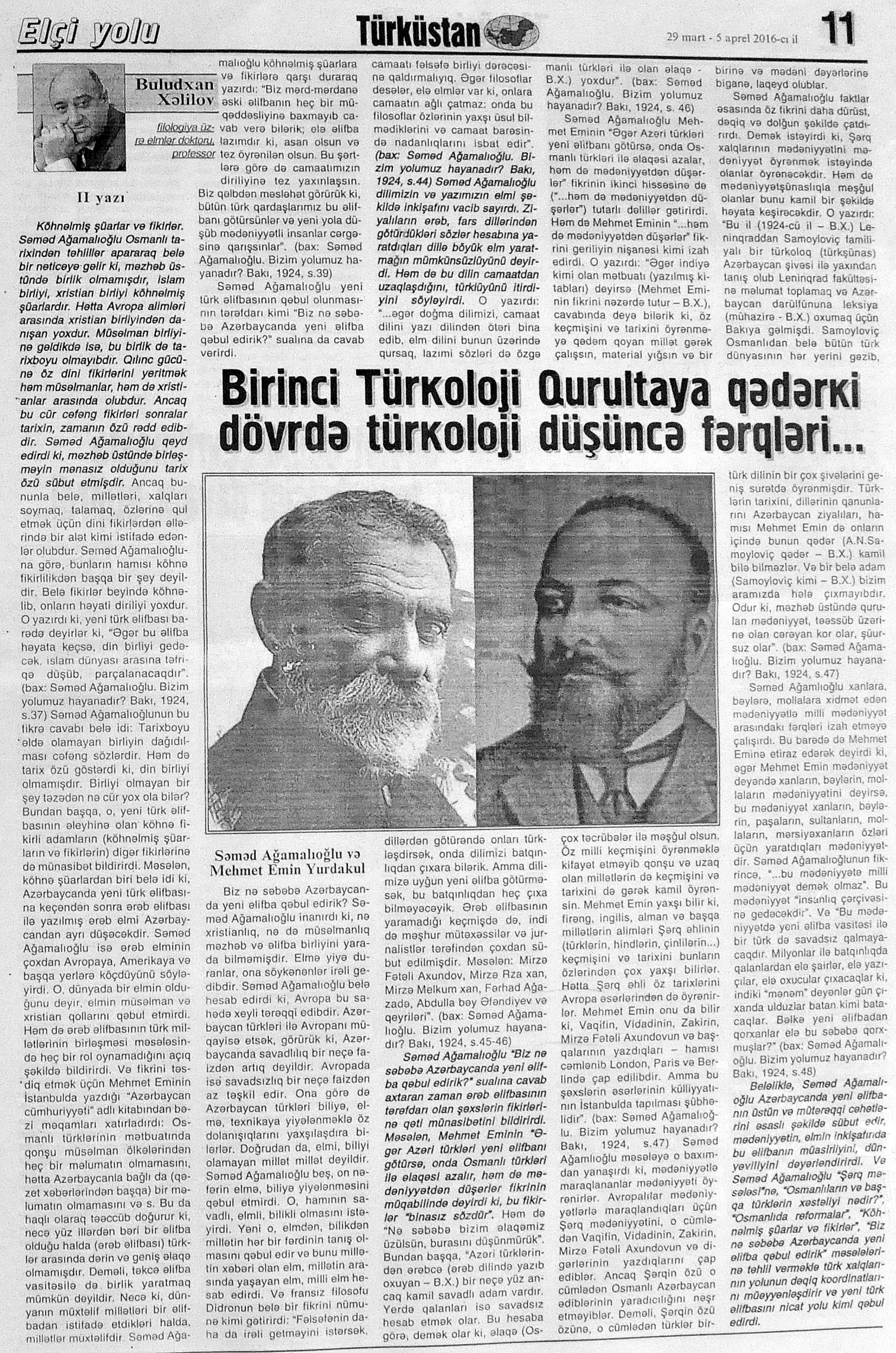 123. Birinci Türkoloji qurultayın 90 illiyinə həsr olunan elmi sessiya //Elm.- 2016.- 11 mart.- S.3. 124. Birinci Türkoloji Qurultayın 90 illiyinə həsr olunan elmi sessiya keçirilib:[AMEA-nın Nizami adına Ədəbiyyat İnstitutunda] //Ədəbiyyat qəzeti.- 2016.- 5 mart.- S.15. 125. Xəlilov, B. Birinci Türkoloji Qurultaya qədərki dövrdə türkoloji düşüncə fərqləri...: I Yazı //Türküstan.- 2016.- 15-28 mart.- S.11. 126. Xəlilov, B. Birinci Türkoloji Qurultaya qədərki dövrdə türkoloji düşüncə fərqləri...: II Yazı // Türküstan 2016.- 29 mart.- S.11. 127. Salmanlı, R. Türk xalqlarının həmrəyliyinə xidmət edən tarixi hadisə: [1926-cı ildə Bakıda keçirilmiş Birinci Türkoloji Qurultay haqqında] //Azərbaycan.- 2016.- 20 mart.- S.4. 128. Tofiq, H. AMEA-da bir sıra tədbirlər keçiriləcək: Birinci Türkoloji Qurultayın 90 illiyinə həsr olunmuş elmi sessiya keçirilib //Azad Azərbaycan.- 2016.- 4 mart.- S.7; Xalq cəbhəsi.- 2016.- 4 mart.- S.14.