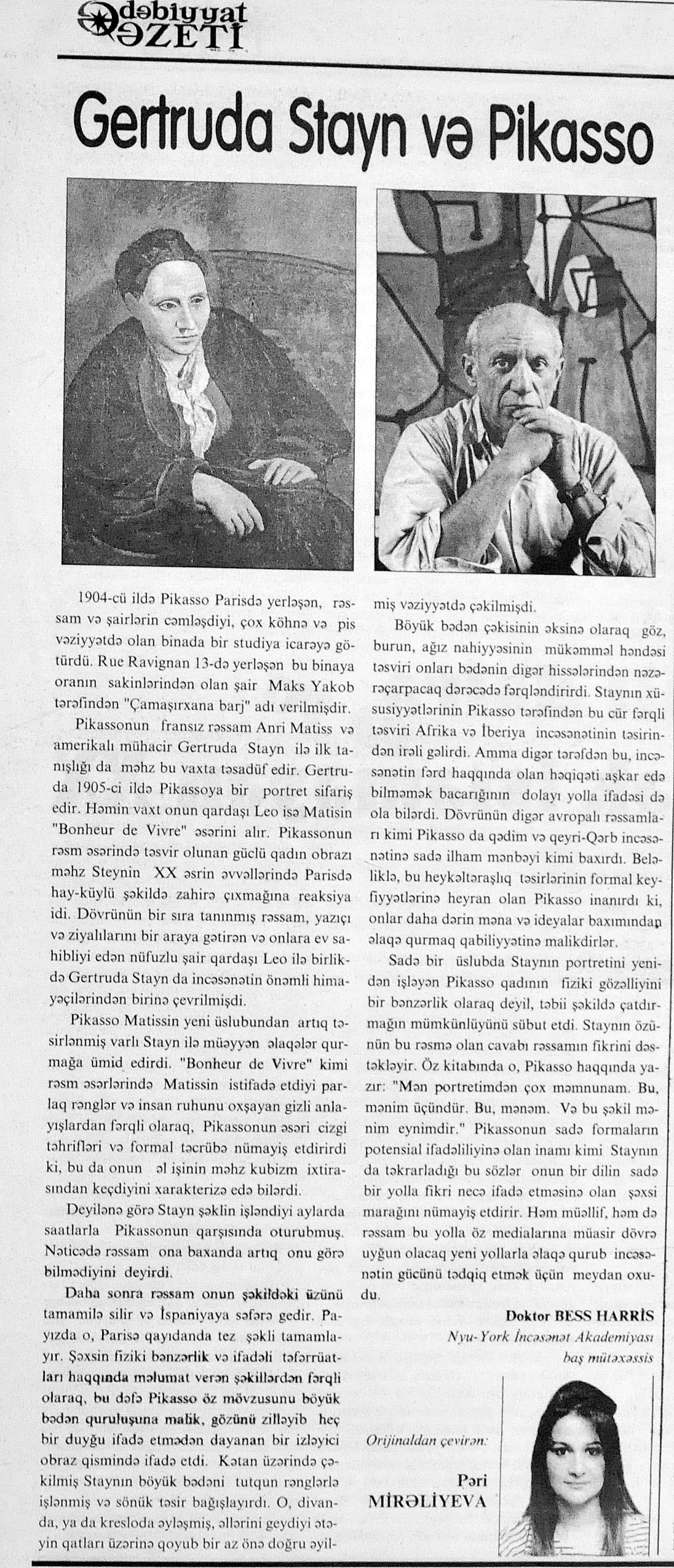 425. Fiziki qüsurlu uşaqların sənət sevgisi: İctimai birlik mədəniyyət ocaqlarına təşəkkür edir //Mədəniyyət.- 2016.- 30 mart.- S. 15. 426. Mirməmməd, G. Qədim Ellada tarixi rəsmlərdə: [Bakı İtalyan Mərkəzində “Ellada” uşaq incəsənət sərgisinin açılışı haqqında] //Mədəniyyət.- 2016.- 8 mart.- S. 13. 427. “Oxuduğum kitabların nağıl qəhrəmanları”: [İmişli Rayon Mərkəzi Kitabxanasında keçirilən rəsm əsərlərindən ibarət eyniadlı sərgi-müsabiqə haqqında] //Mədəniyyət.- 2016.- 18 mart.- S. 7. 428. Rənglərin dili ilə danışan istedadlı gənc: [gənc rəssam Nərmin Hümmətzadə haqqında] //Azərbaycan müəllimi.- 2016.- 12 mart.- S.11. 429. “Səhnəyə ilk addım”: Birincilərin konsert və sərgisi: [Qara Qarayev adına Mərkəzi İncəsənət Məktəbində] //Mədəniyyət.- 2016.- 8 mart- S. 6.