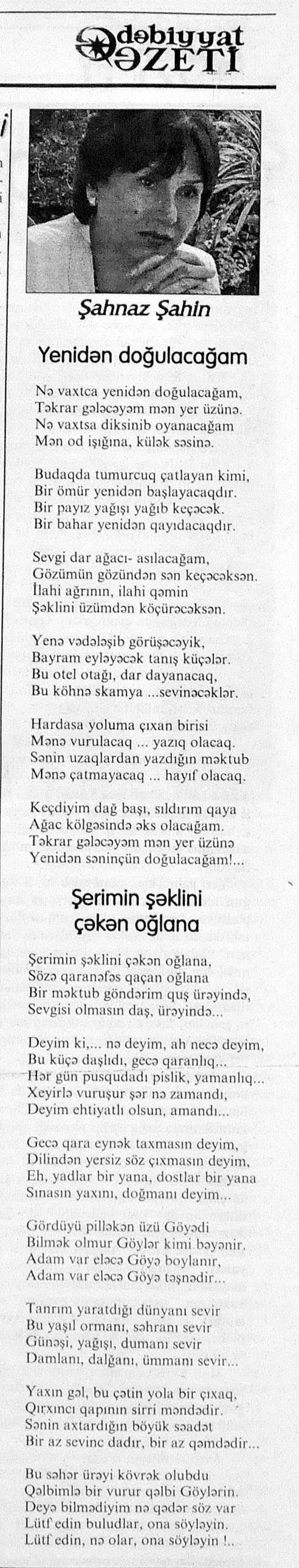609. Akinari, U. Bir sevən qadının həyat hekayəsi: [yapon ədəbiyyatından tərcümə] /tərc etdi. Şənol Şükür //Ədalət.- 2016.- 5 mart.- S.16. 610. Akinari, U. Bir sevən qadının həyat hekayəsi: [yapon ədəbiyyatından tərcümə] /tərc etdi. Şənol Şükür //Ədalət.- 2016.- 12 mart.- S.16.
