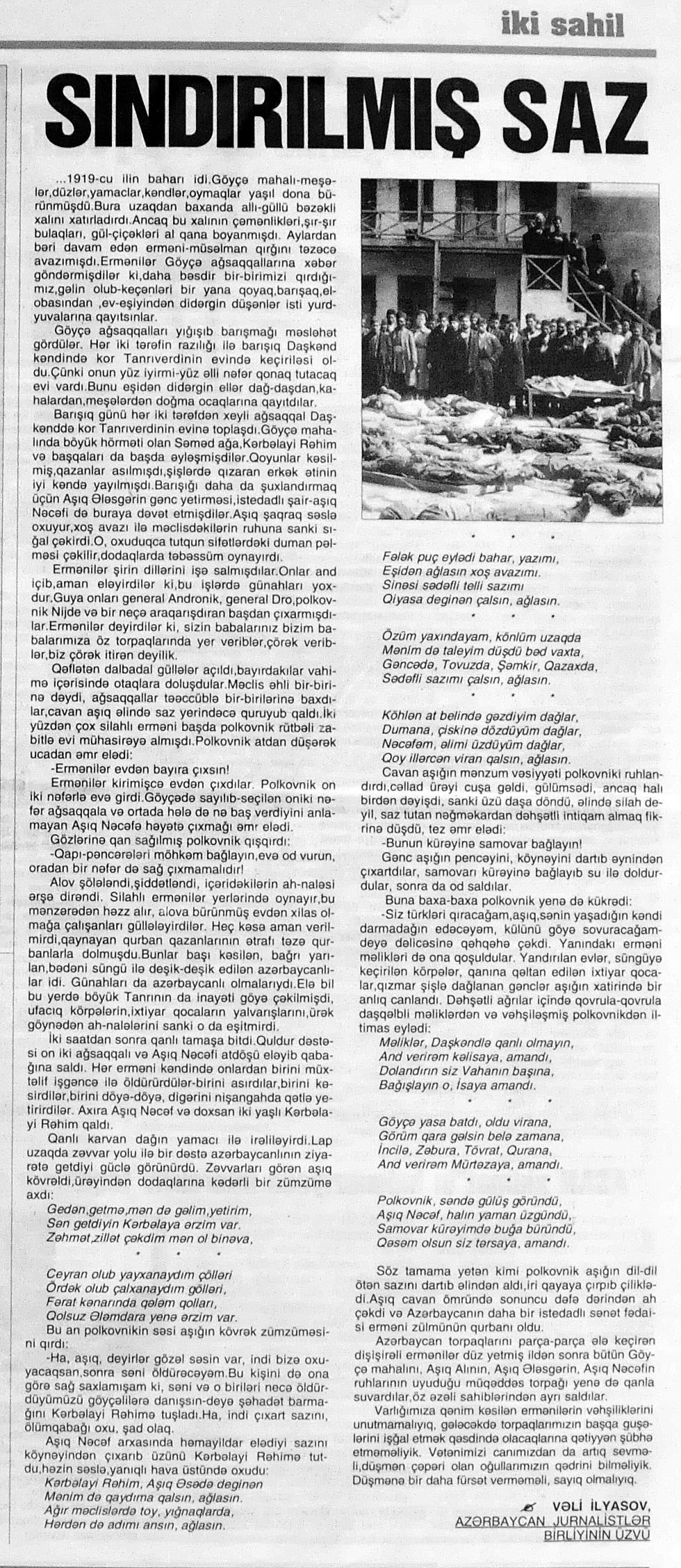 608. Nəcəfoğlu, N. Bir sədanın ardınca...: (povestdən parça) //525-ci qəzet.- 2016.- 19 mart.- S.18-19;22.