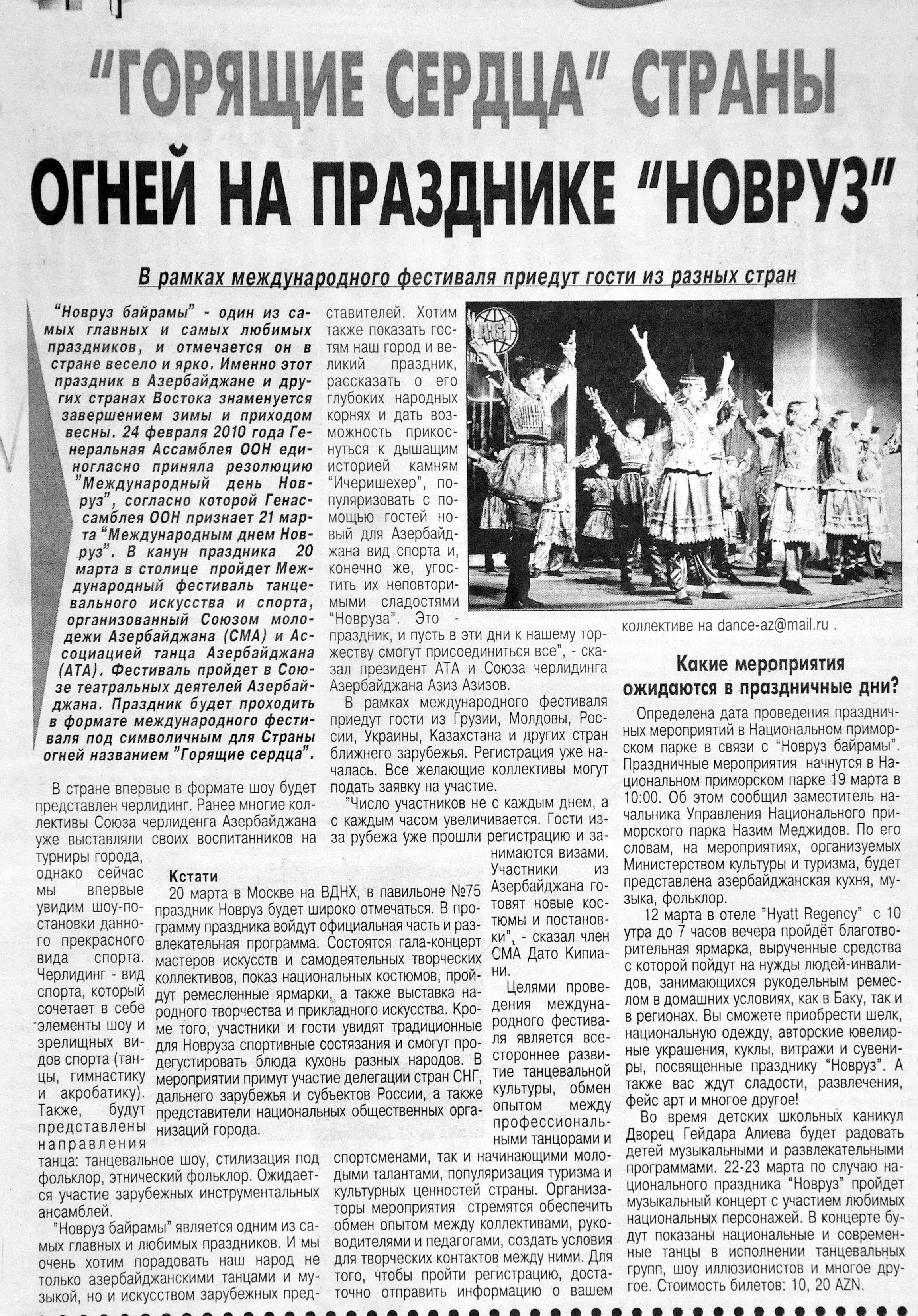 430. Bakı Xoreoqrafiya Akademiyasında ustad dərsləri //Mədəniyyət.- 2016.- 18 mart.- S. 6. 431. Bayramova, Z. IV Qlobal Bakı Forumunun iştirakçıları “Yeddi gözəl” baletinə tamaşa ediblər //Yeni Azərbaycan.- 2016.- 10 mart.- S.7. 432. Qədimlik rəmzi, Oğuz möhürü - Şərur yallısı //Yeni Azərbaycan.- 2016.- 5 mart.- S.8. 433. Ölkəmiz beynəlxalq balet festivalında təmsil olunub: [Cənubi Afrika Respublikasının Keyp-Taun şəhərində keçirilən beynəlxalq balet festivalında Akademik Opera və Balet Teatrının balet truppasının aparıcı solisti Anar Mikayılovun təmsil etməsi haqqında] //Mədəniyyət.- 2016.- 4 mart.- S. 5.