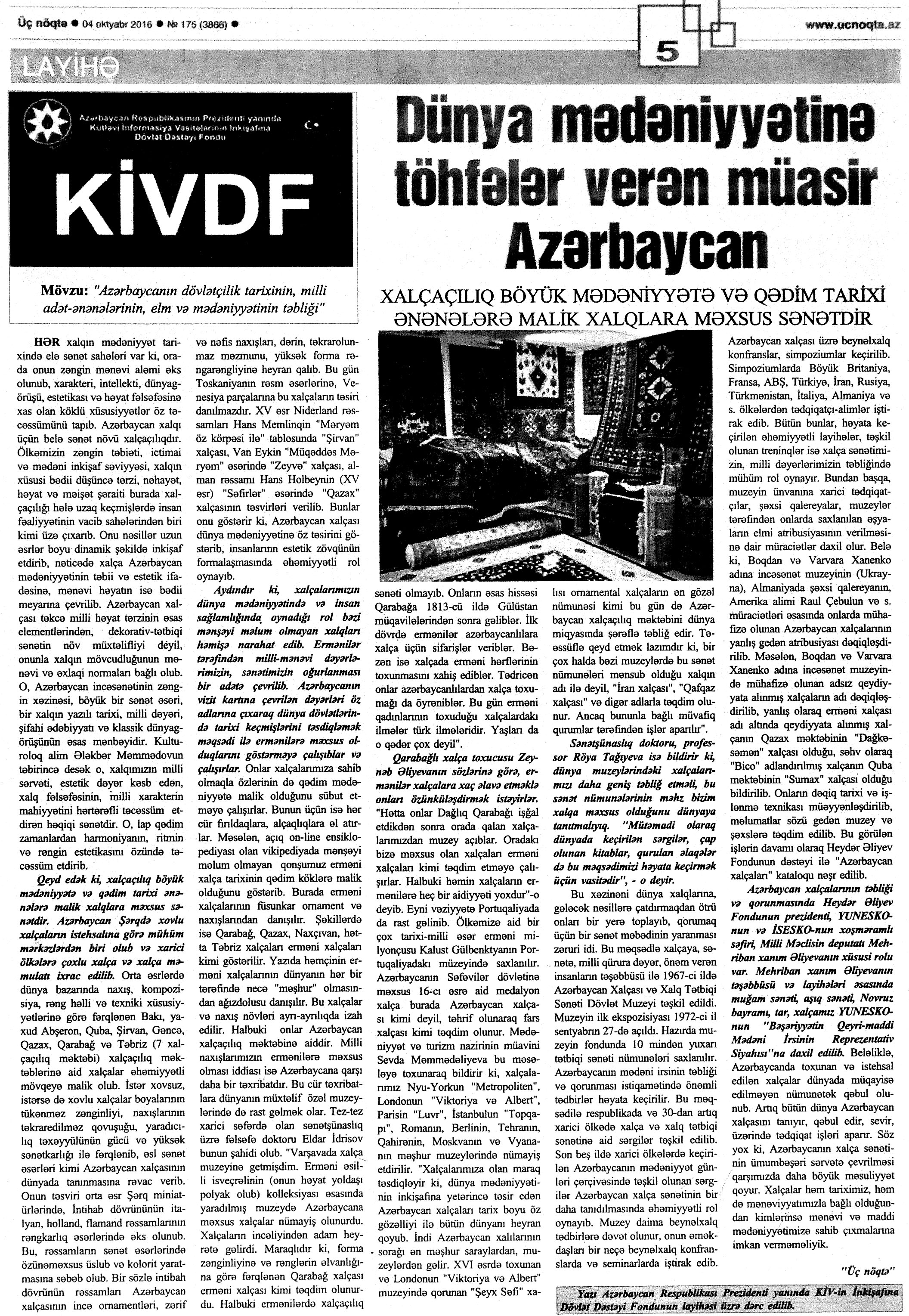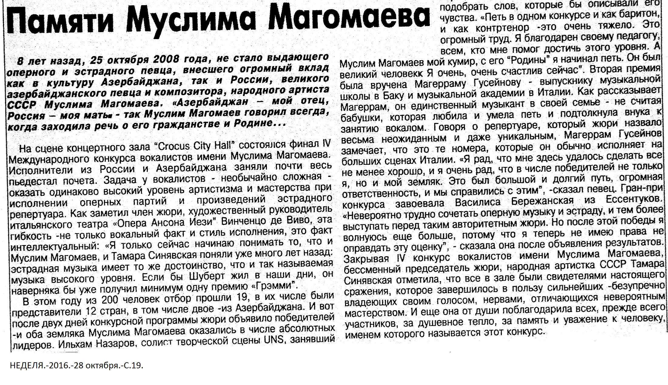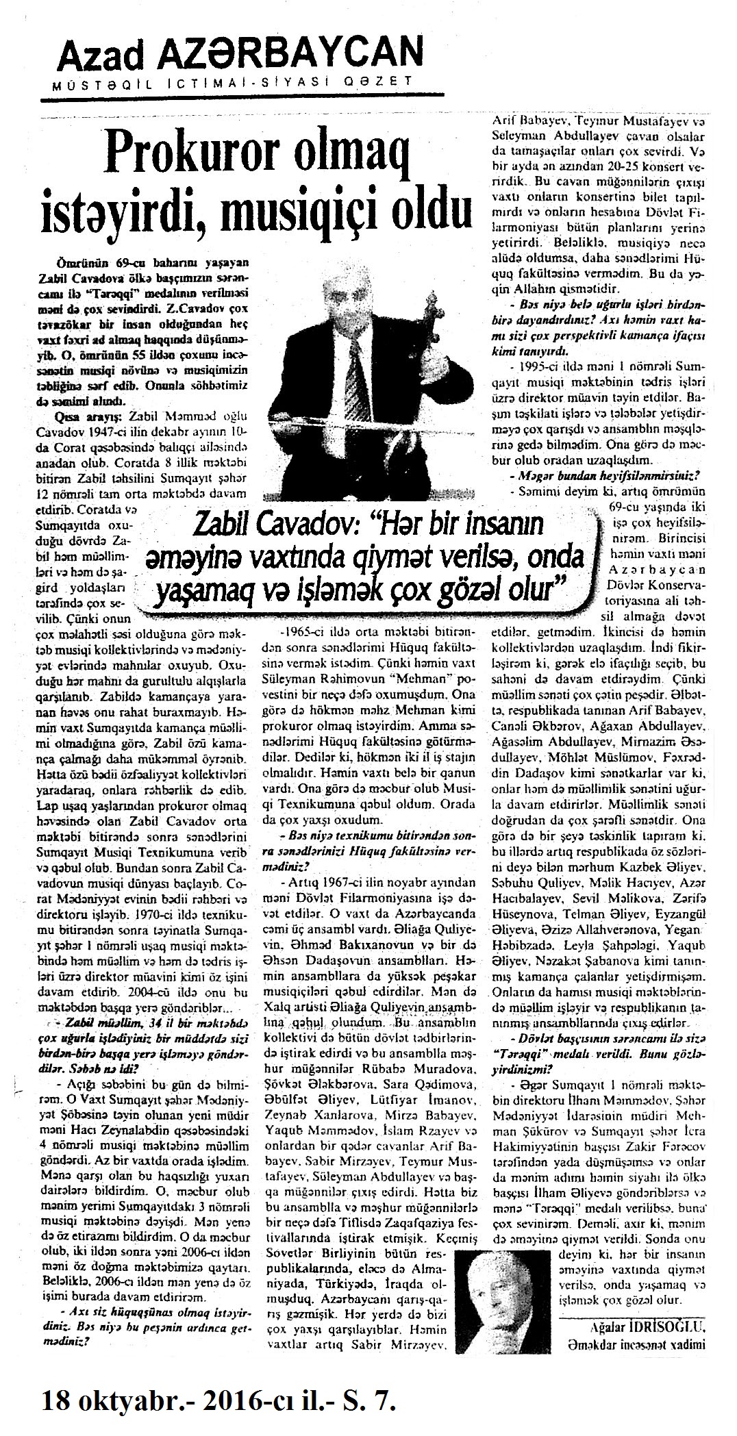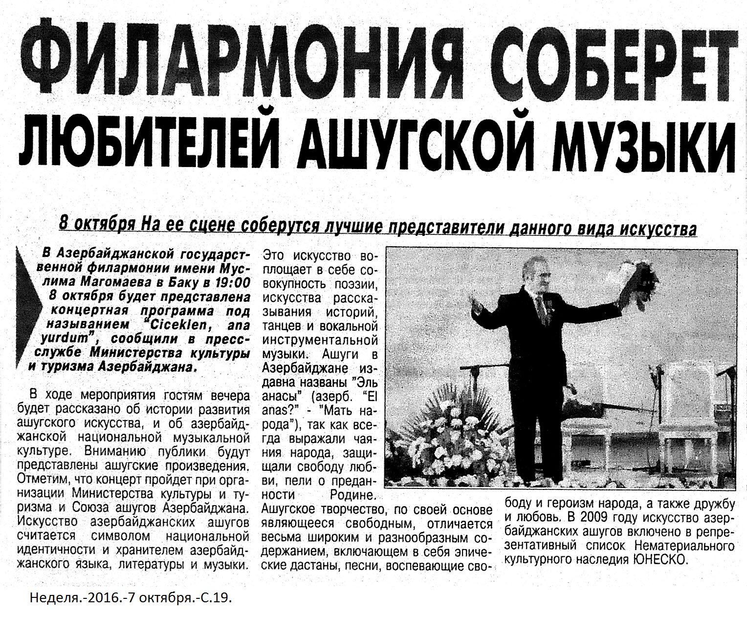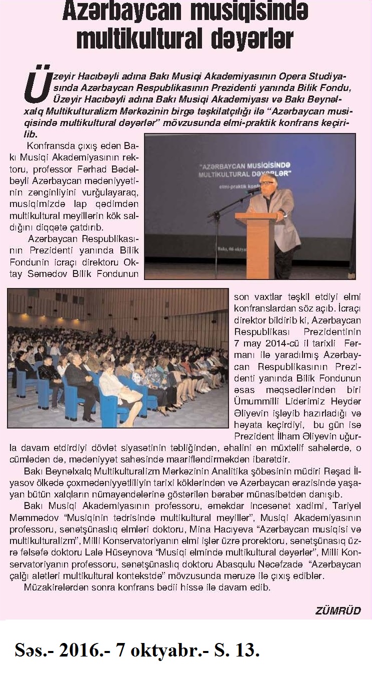 şəhəri, 6 oktyabr 2016-cı il: [musiqi sahəsində] //Azərbaycan.-
