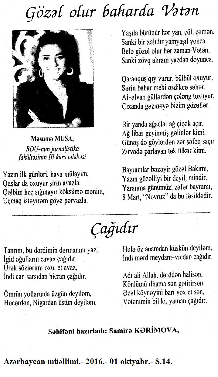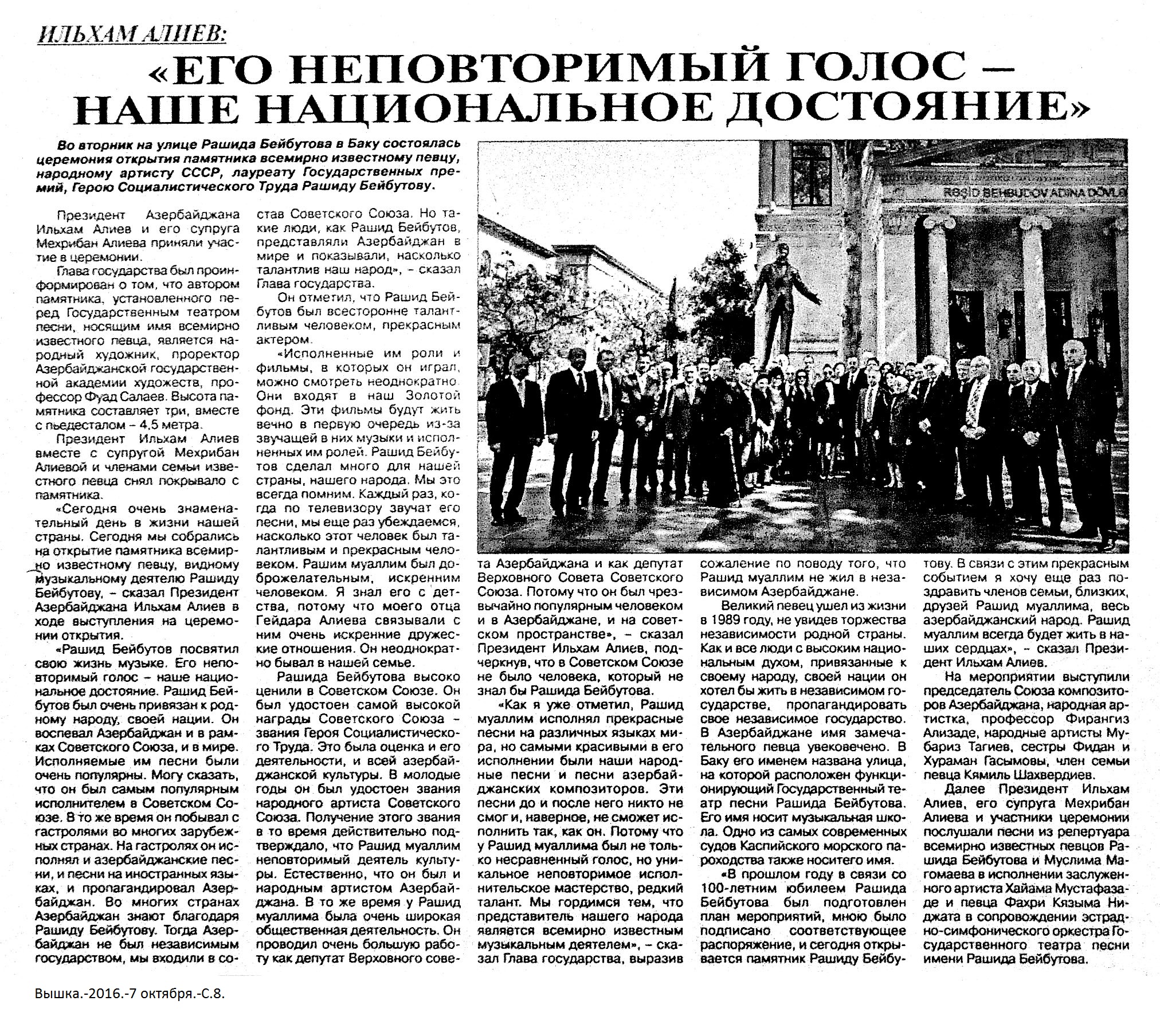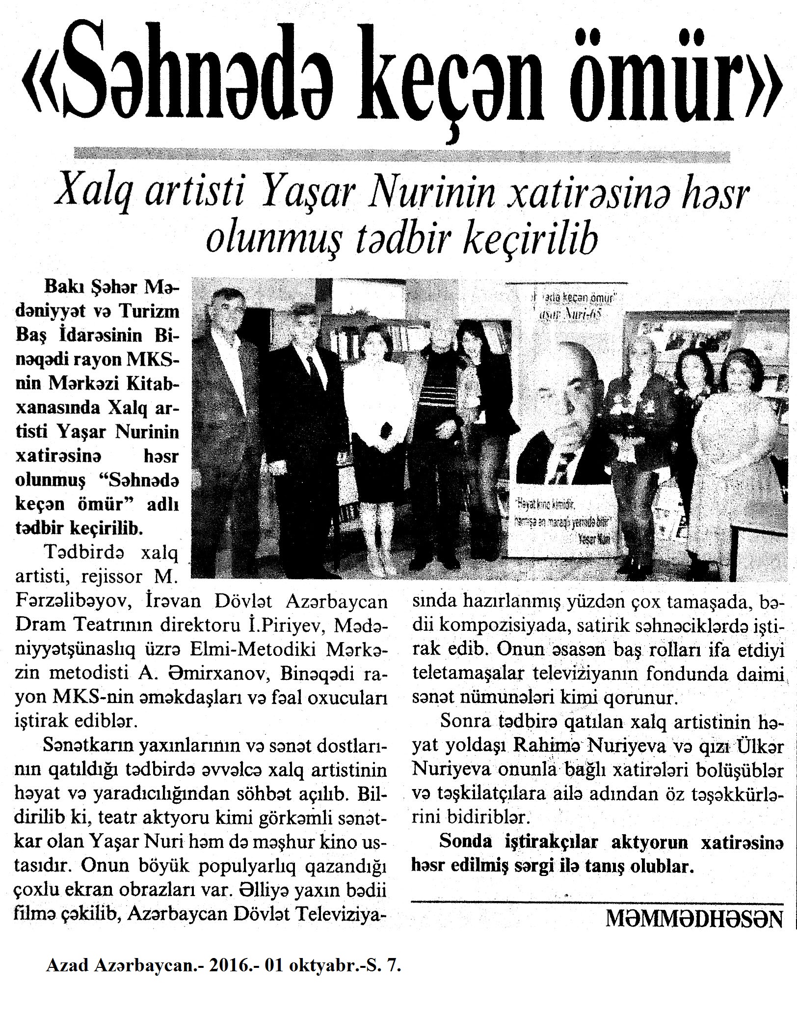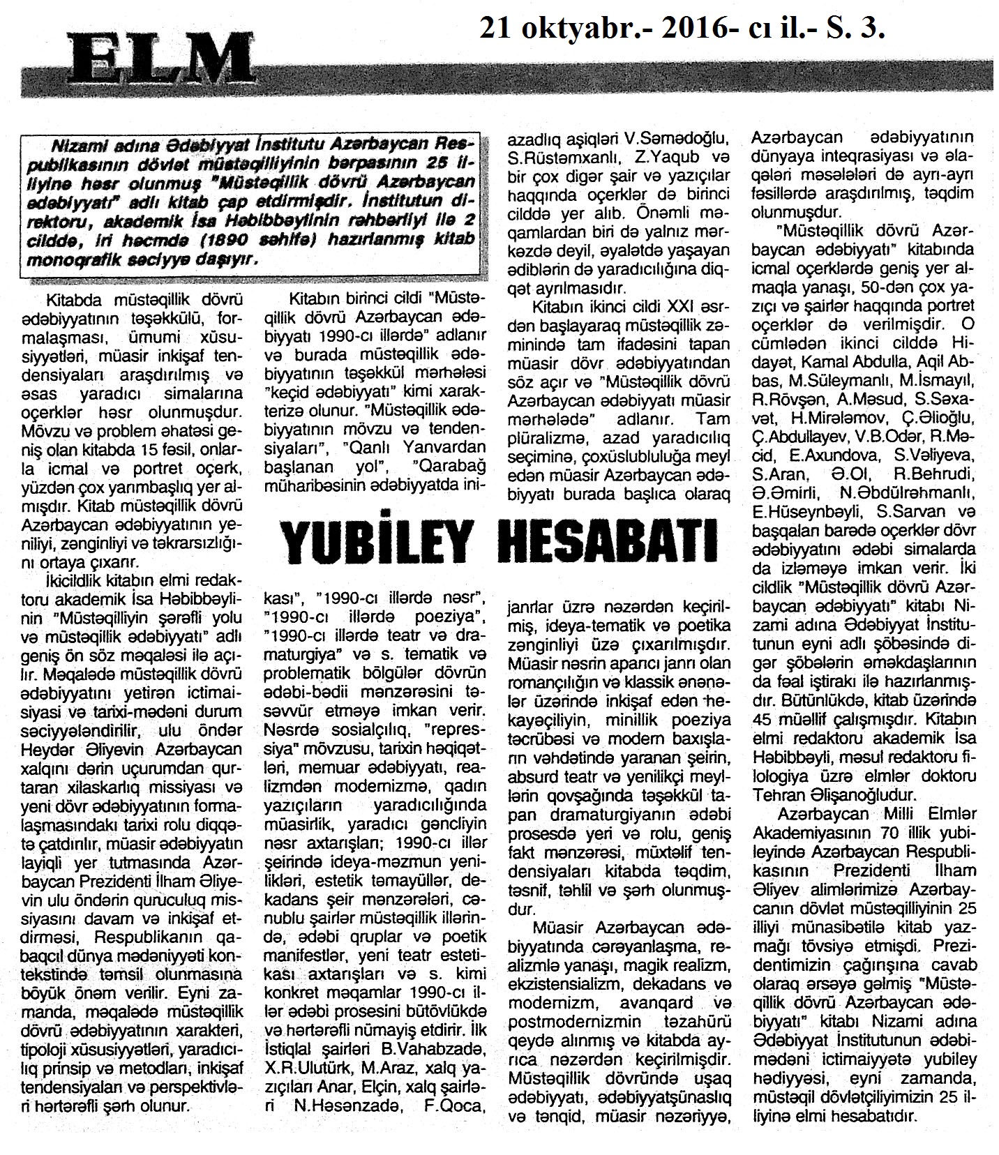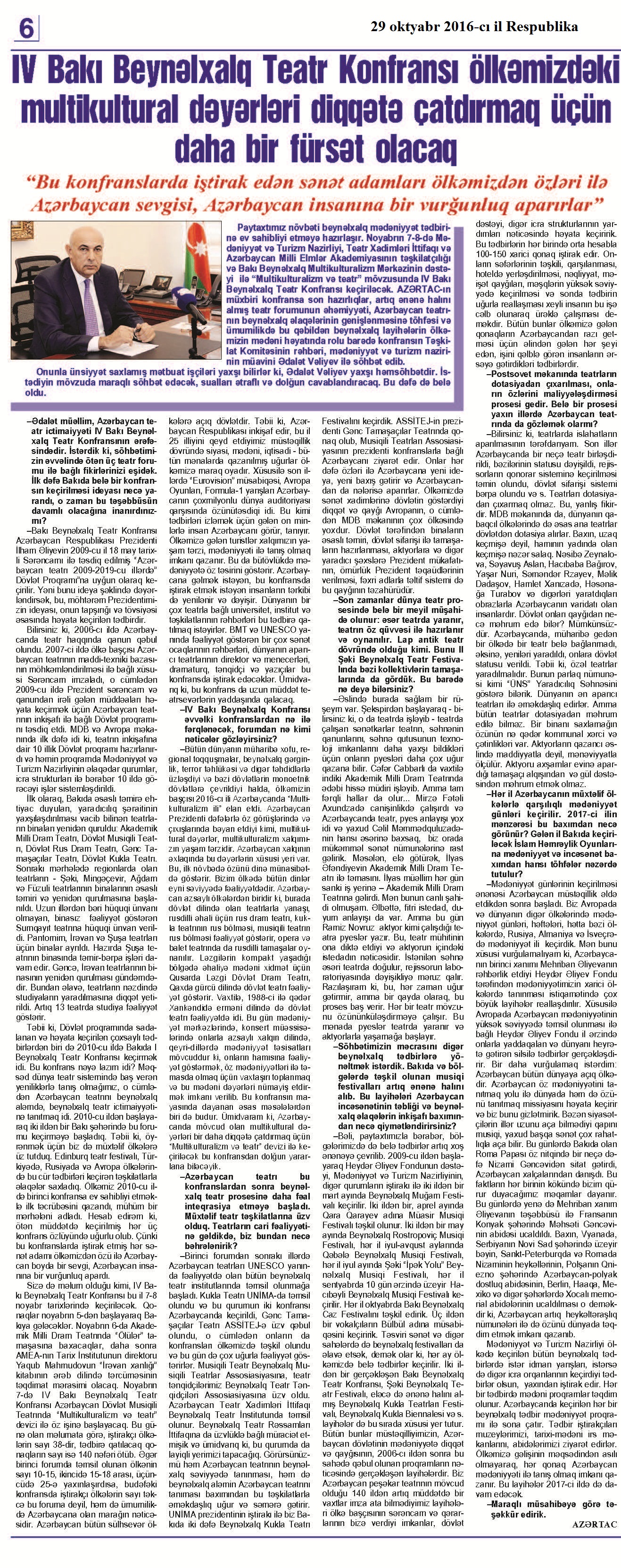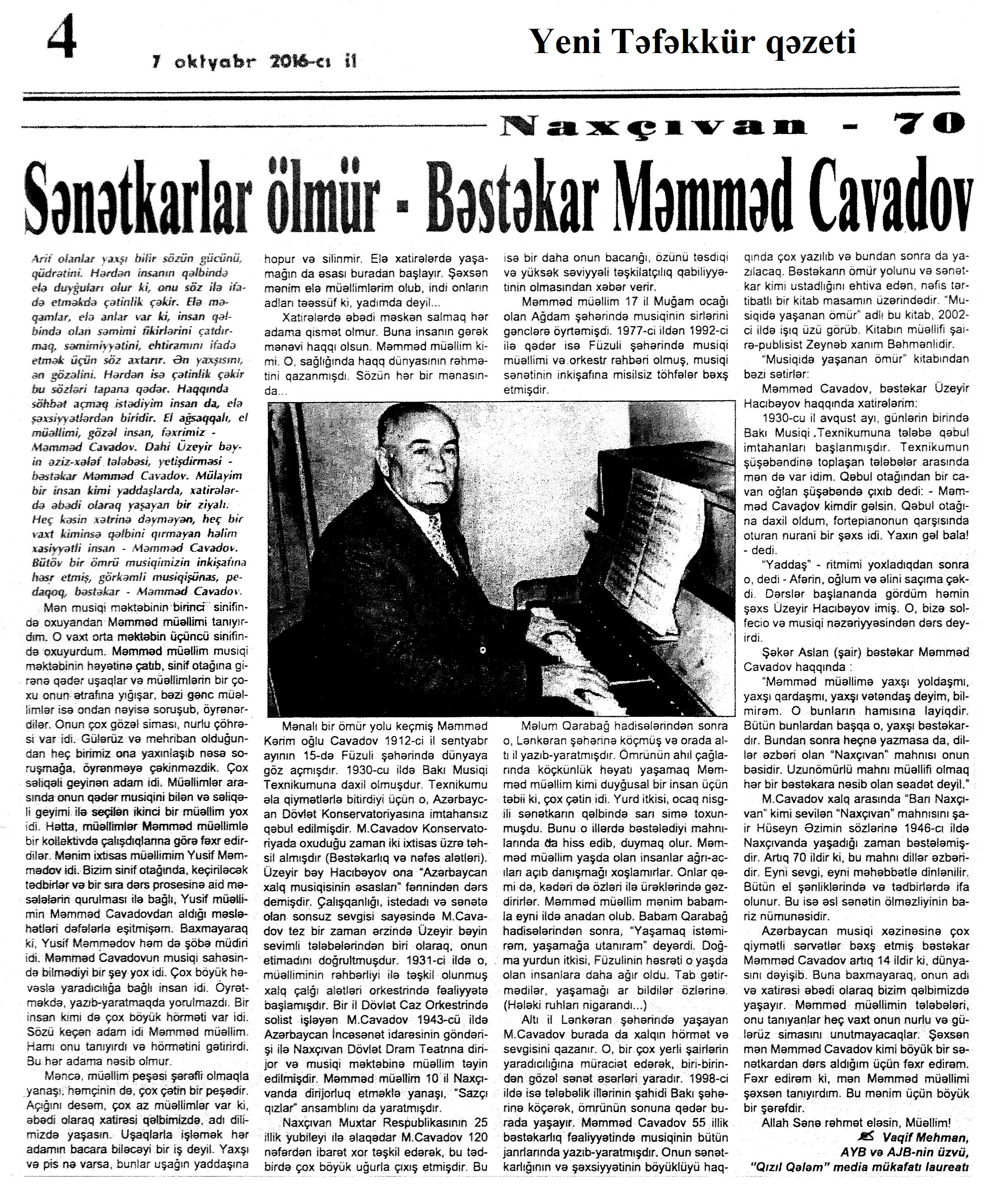 şəhəri, 6 oktyabr 2016-cı il: [musiqi sahəsində] //Azərbaycan.-