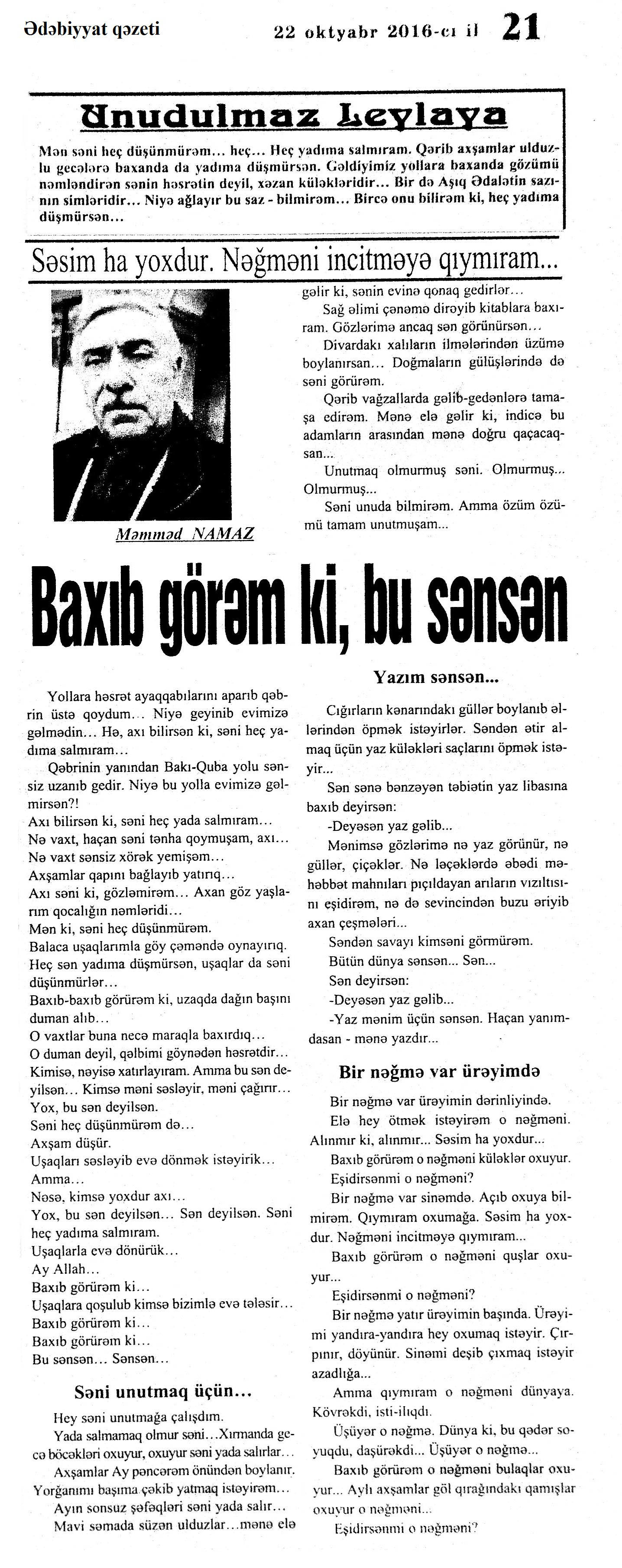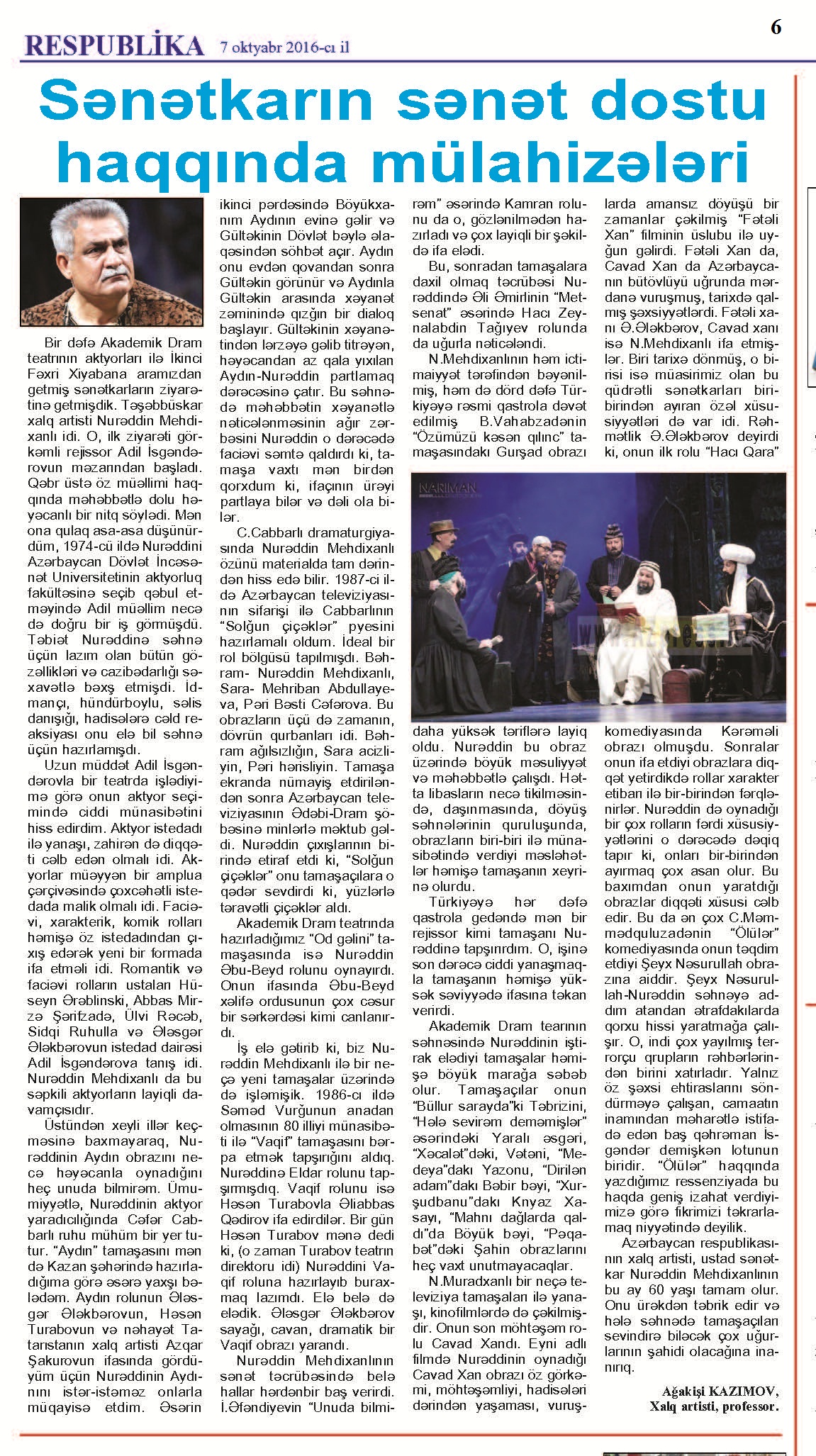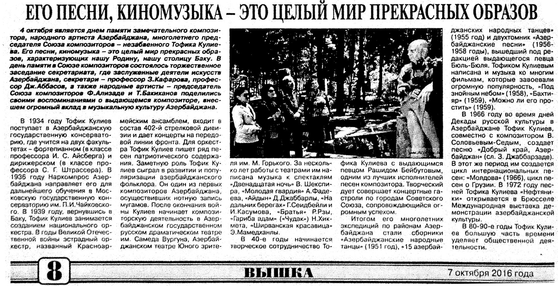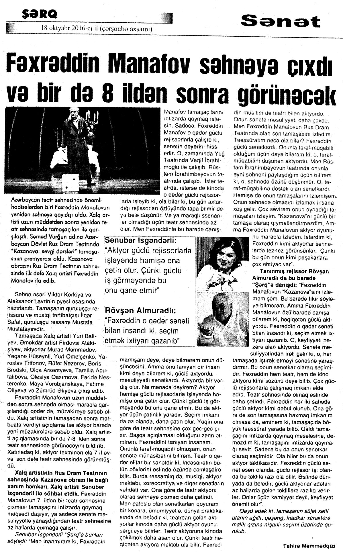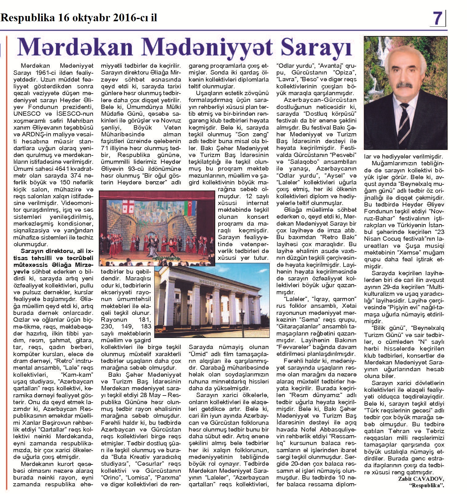 şəhəri, 6 oktyabr 2016-cı il: [musiqi sahəsində] //Azərbaycan.-