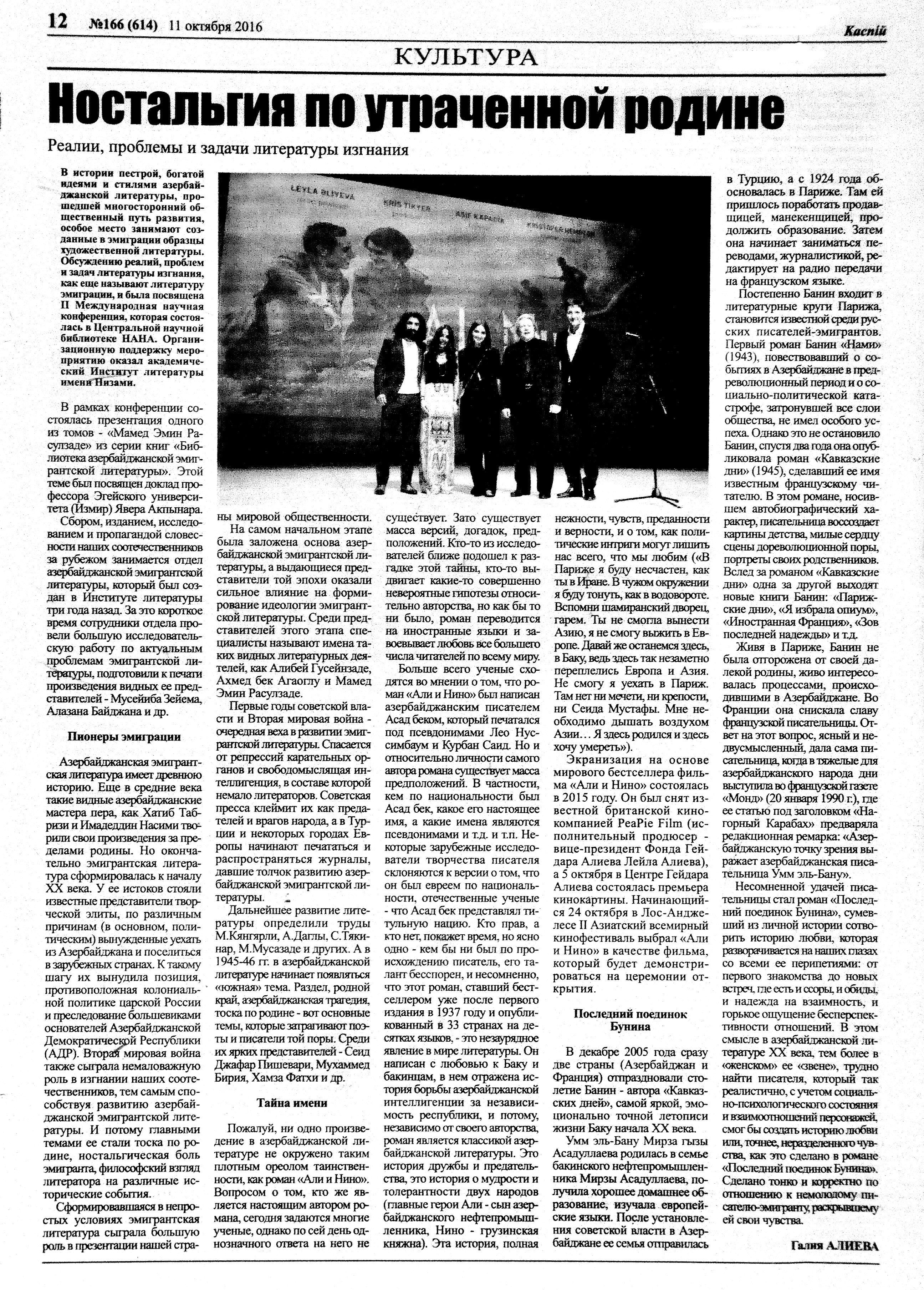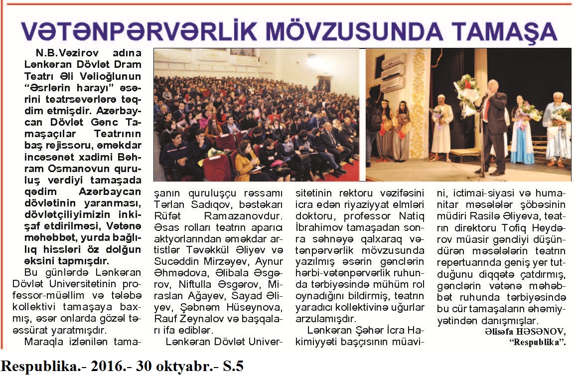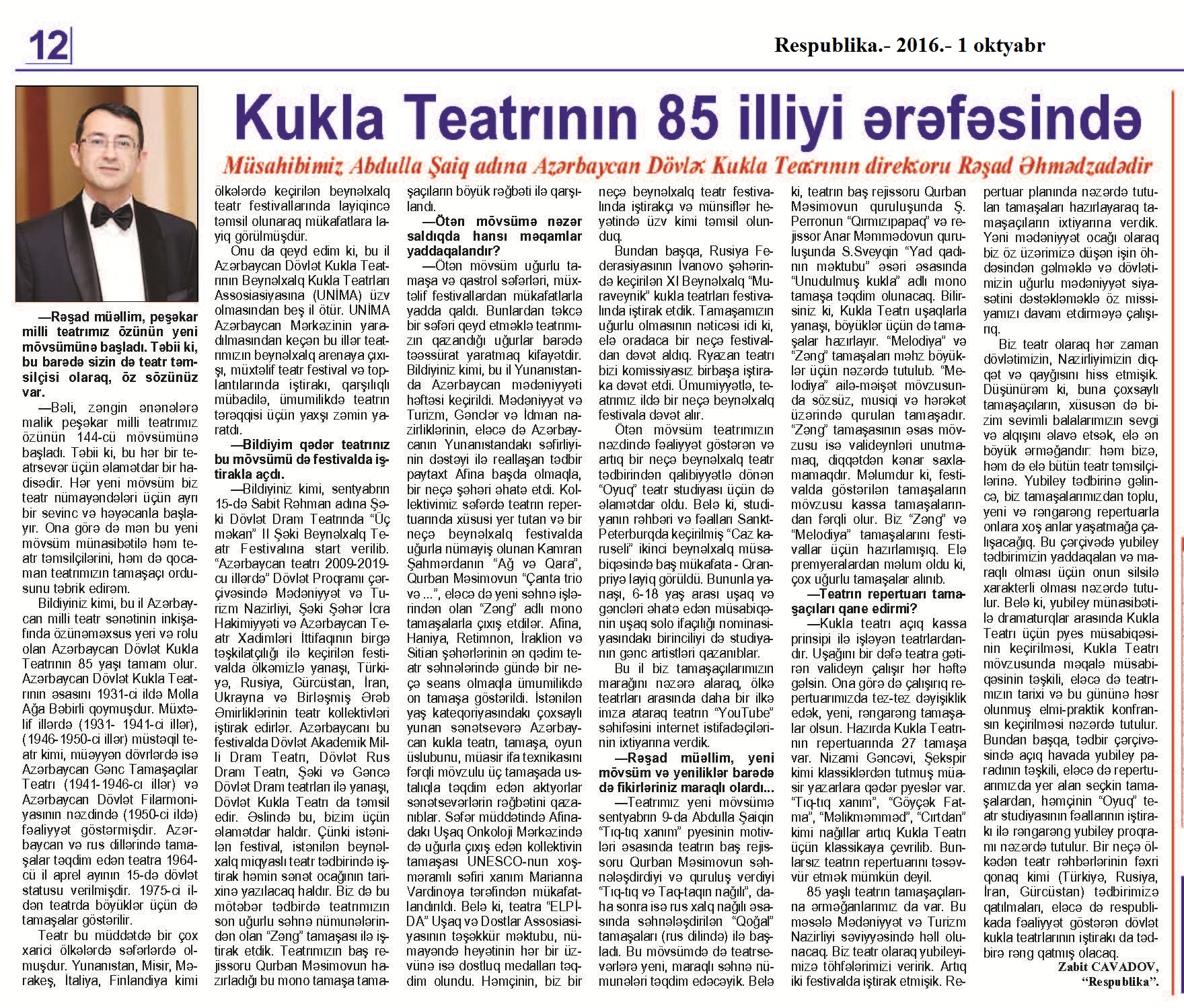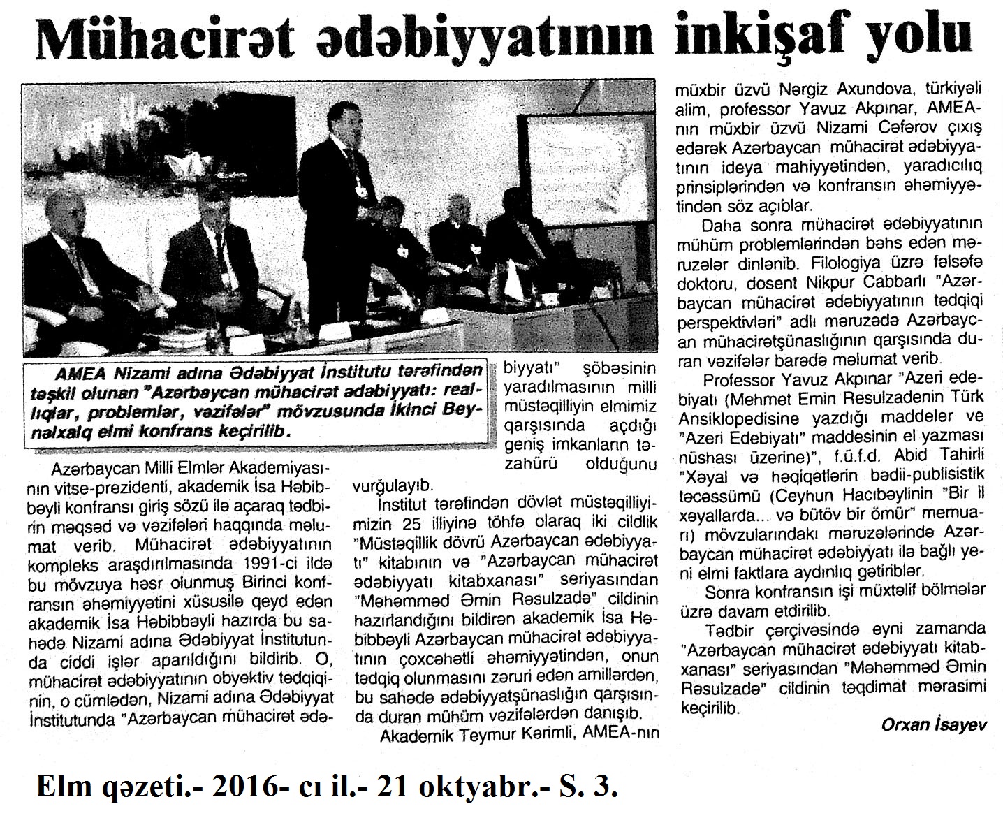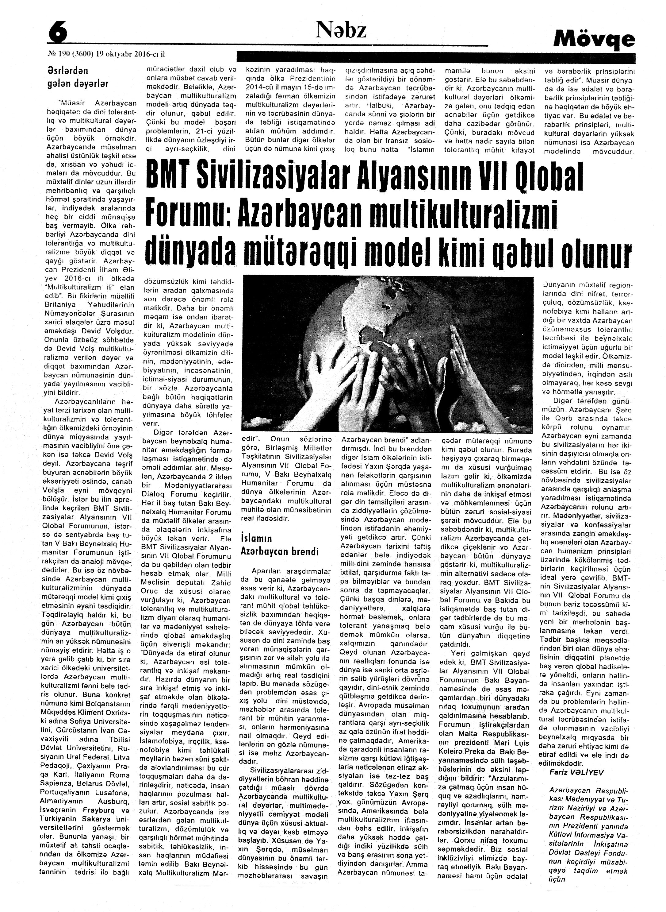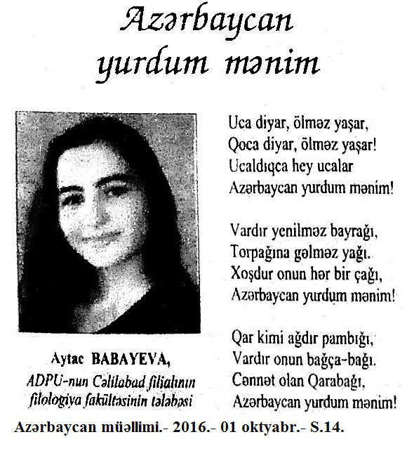 şəhəri, 6 oktyabr 2016-cı il: [musiqi sahəsində] //Azərbaycan.-