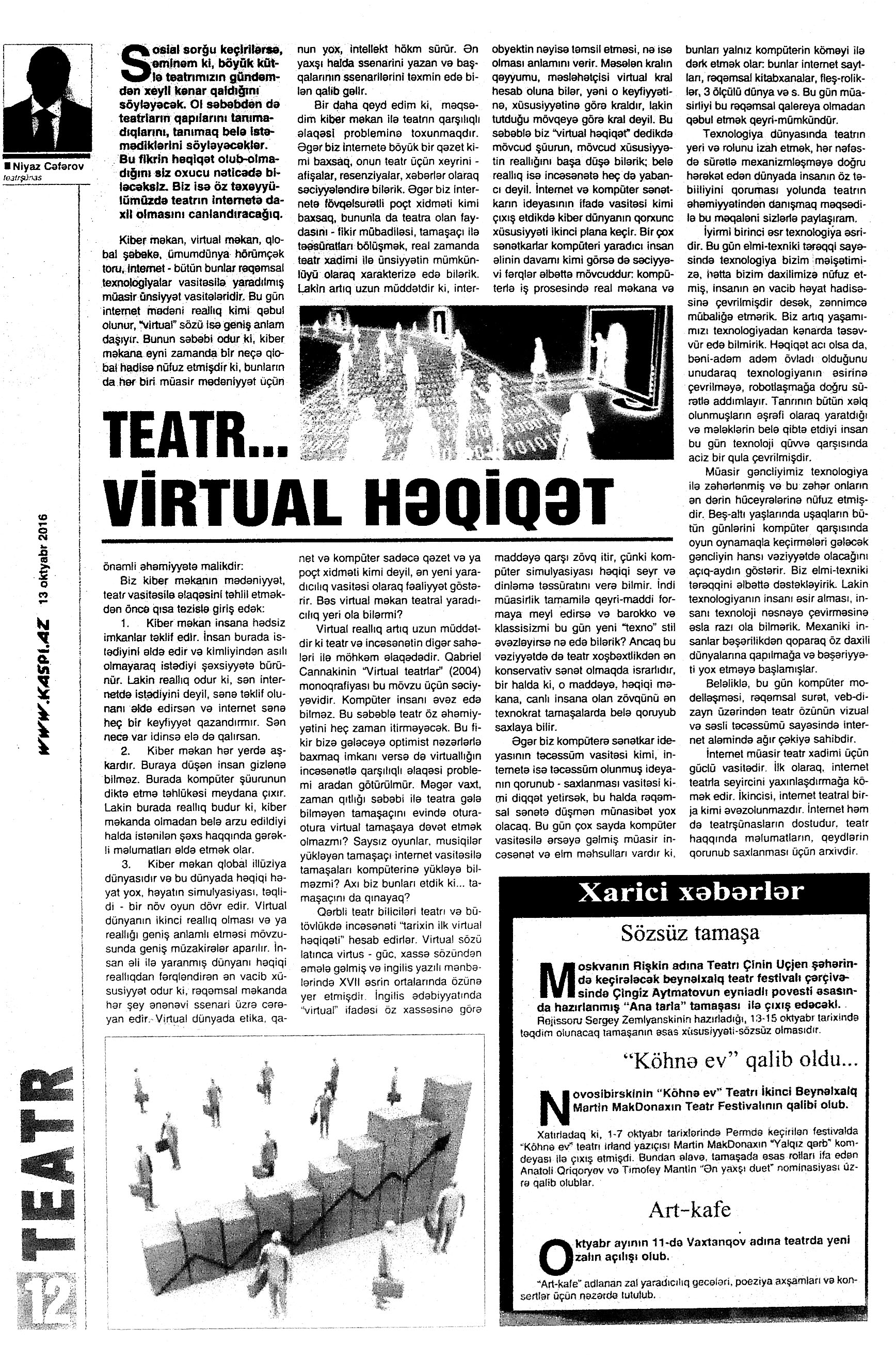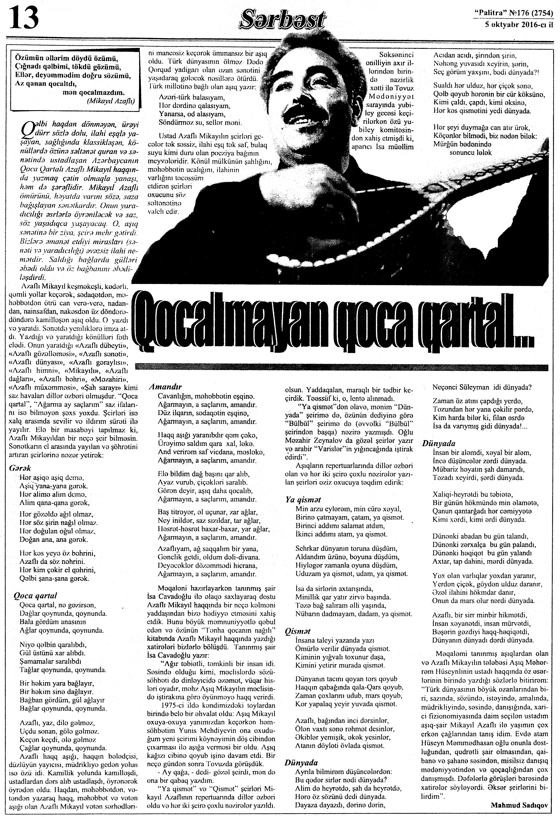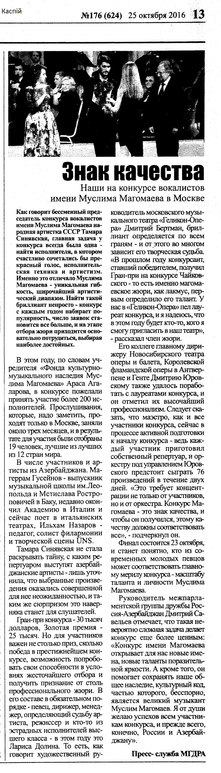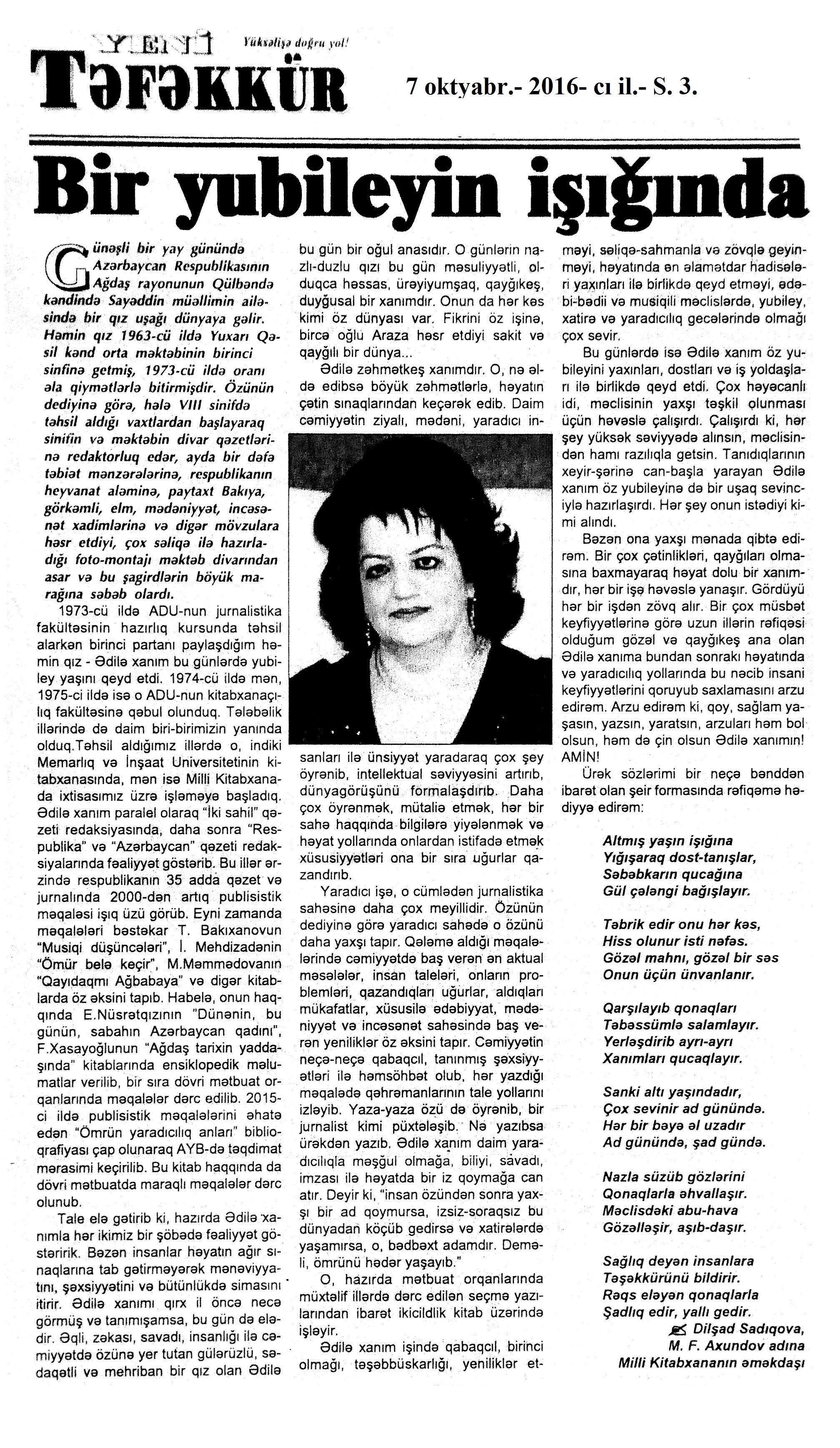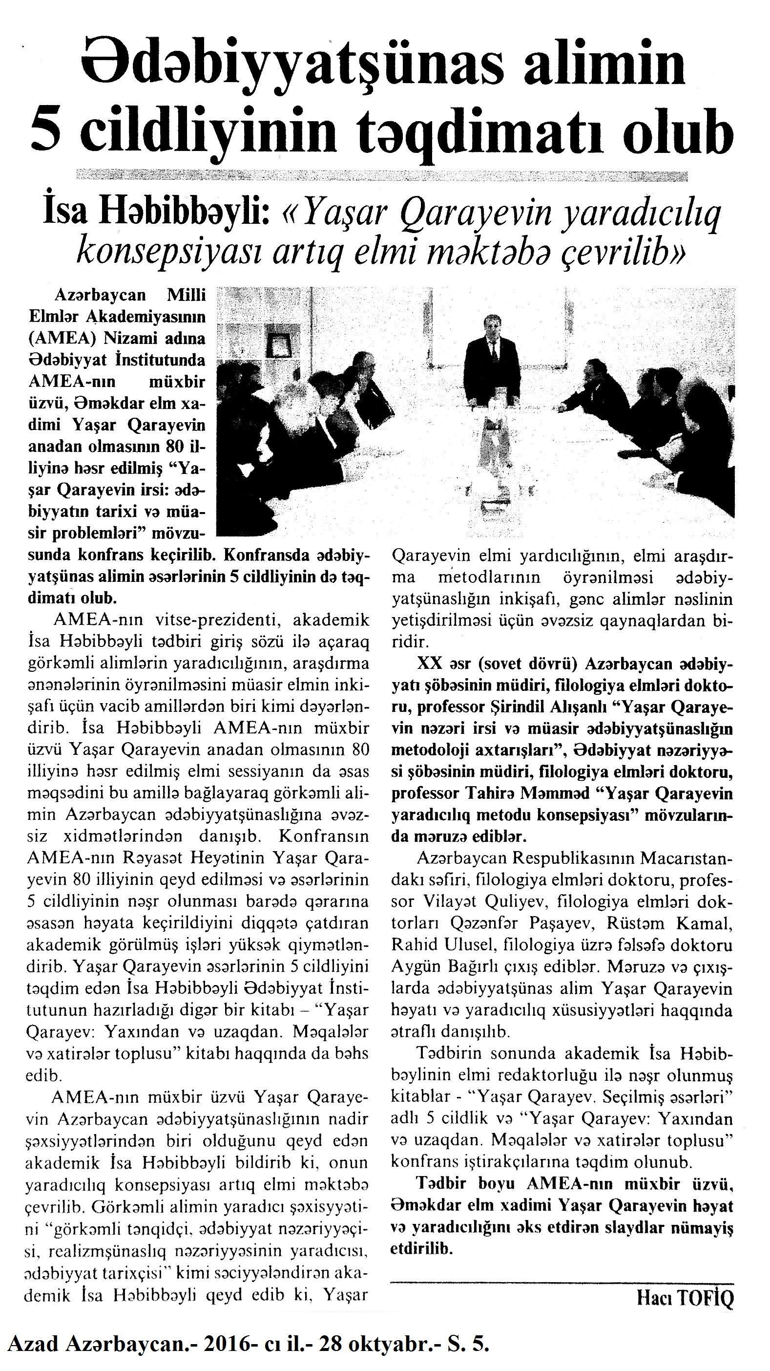 şəhəri, 6 oktyabr 2016-cı il: [musiqi sahəsində] //Azərbaycan.-