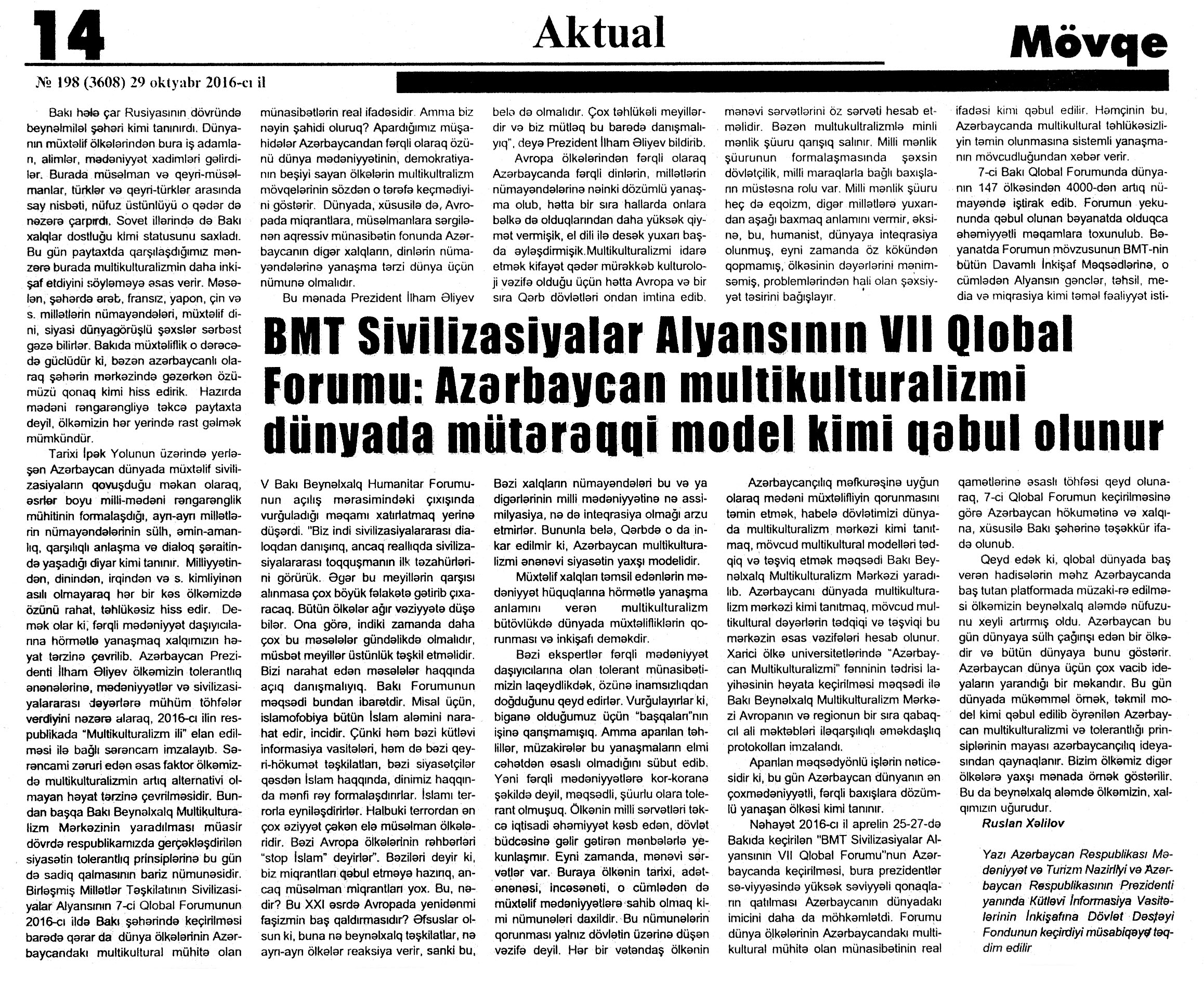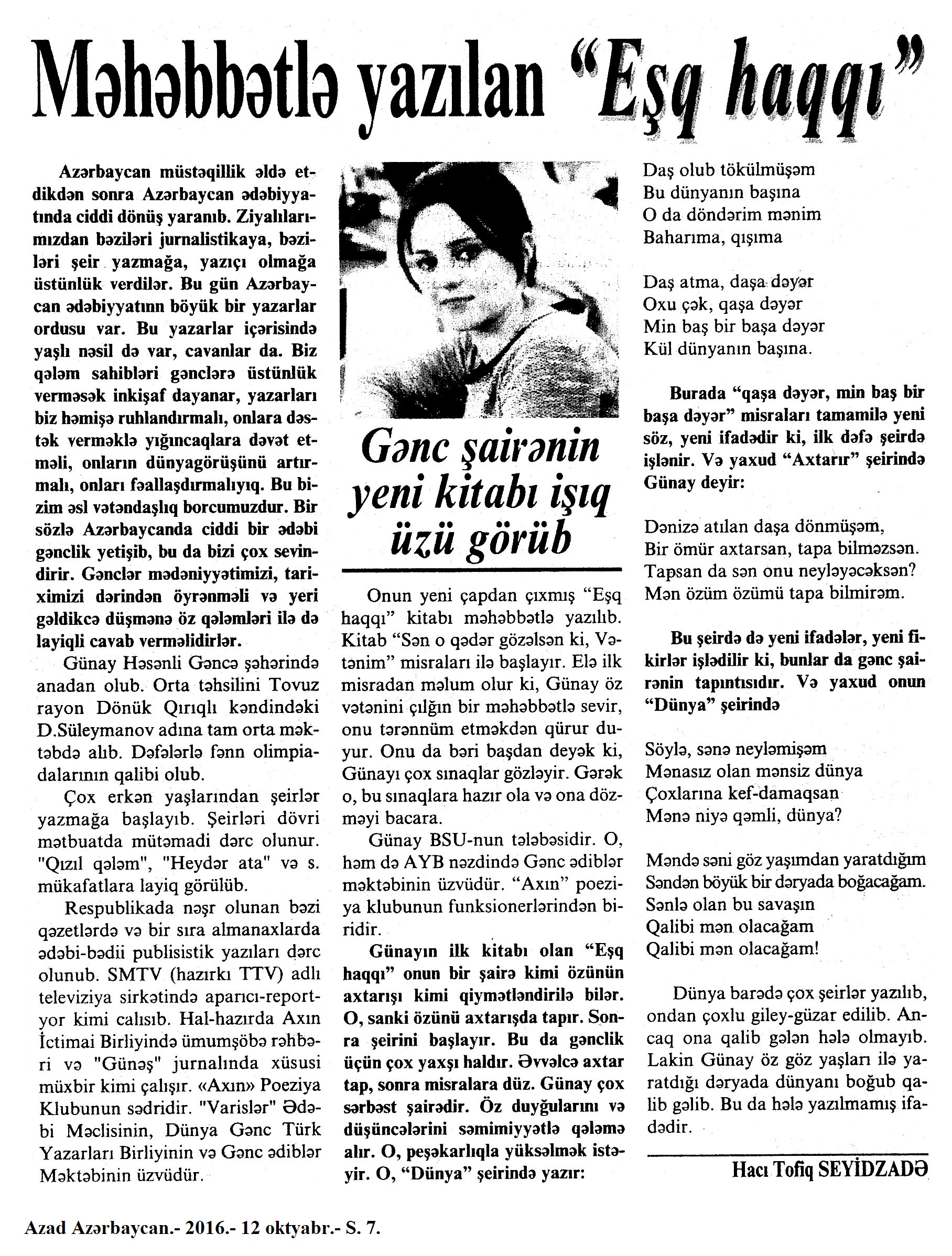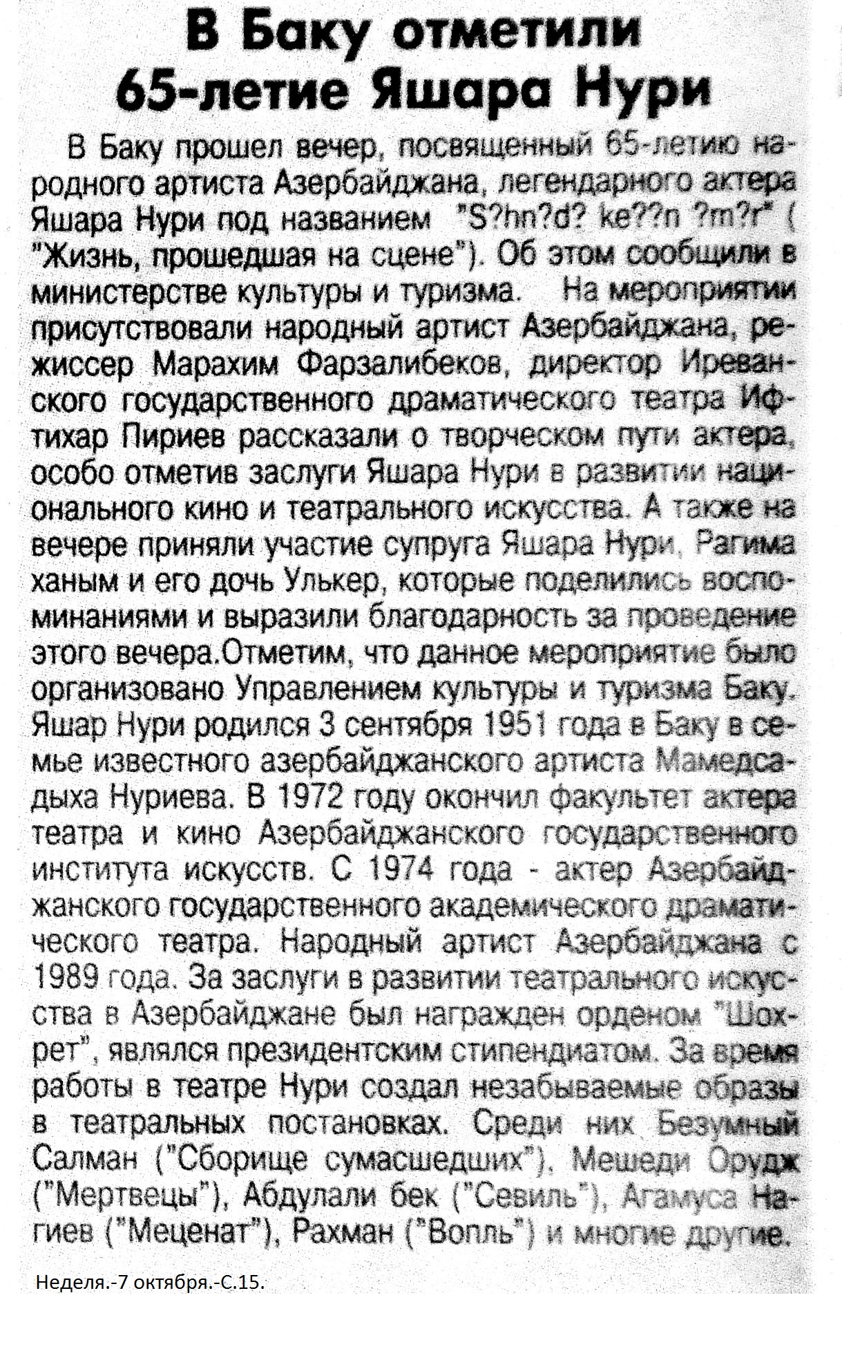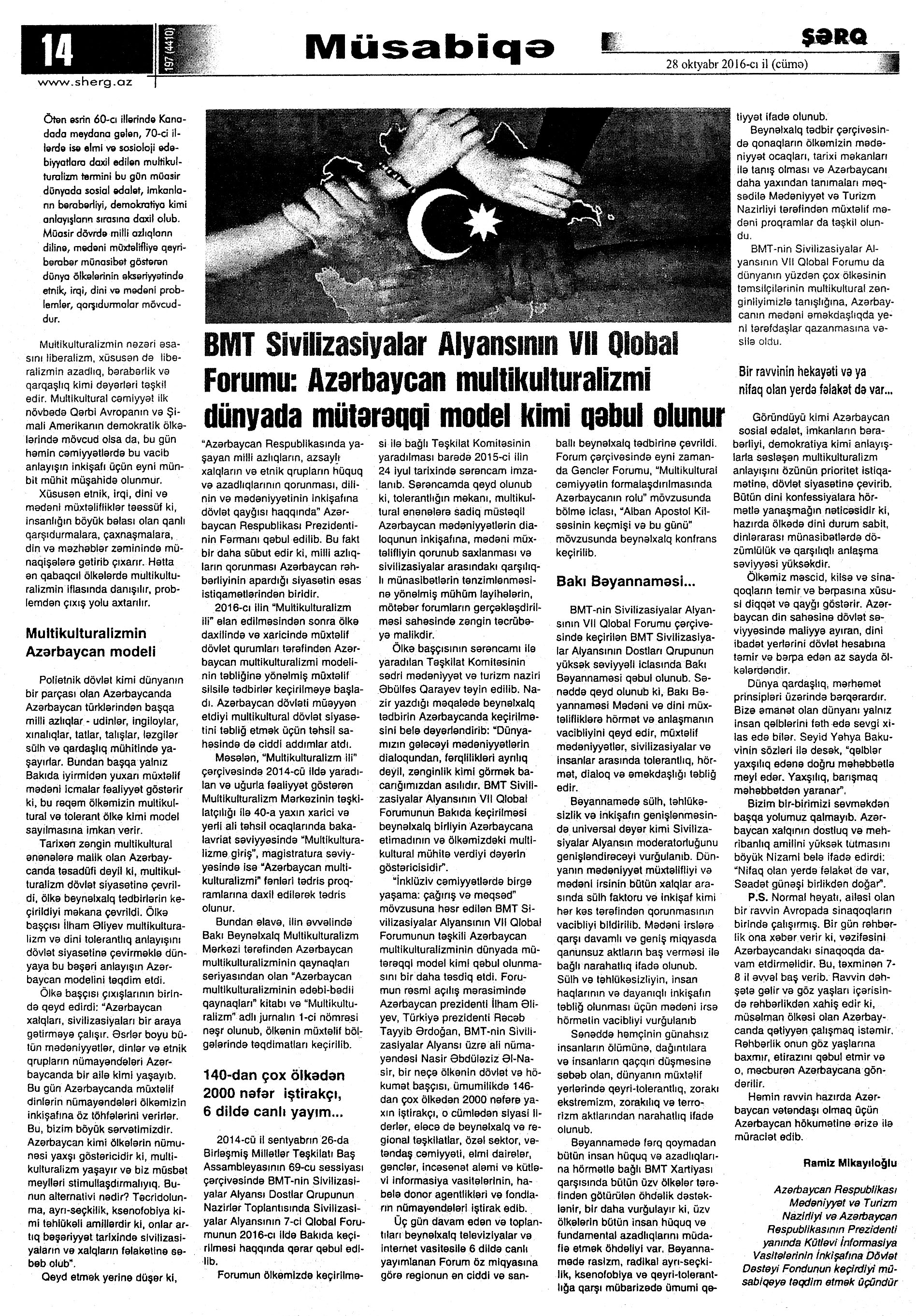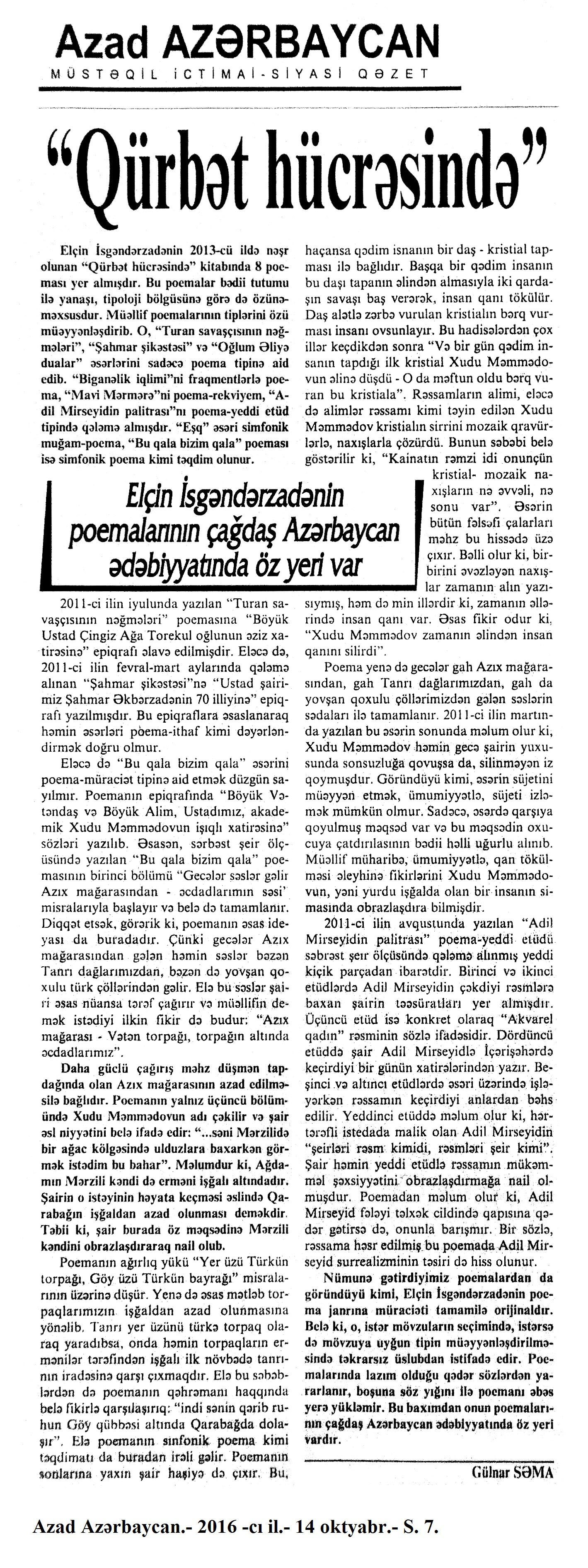 şəhəri, 6 oktyabr 2016-cı il: [musiqi sahəsində] //Azərbaycan.-