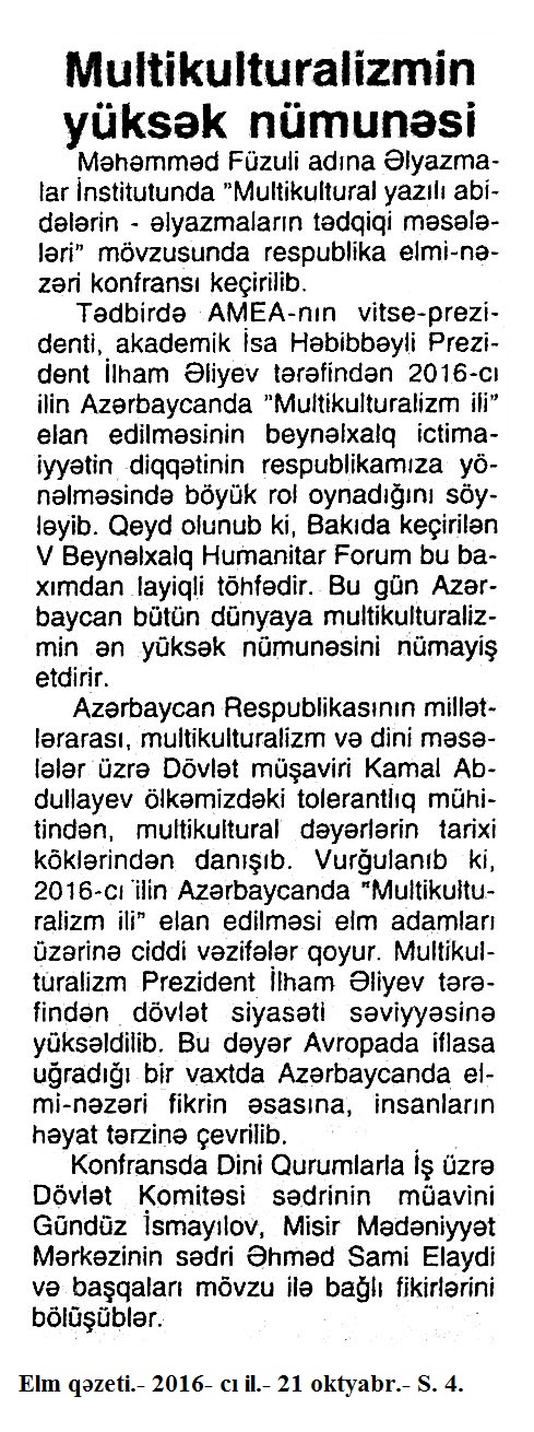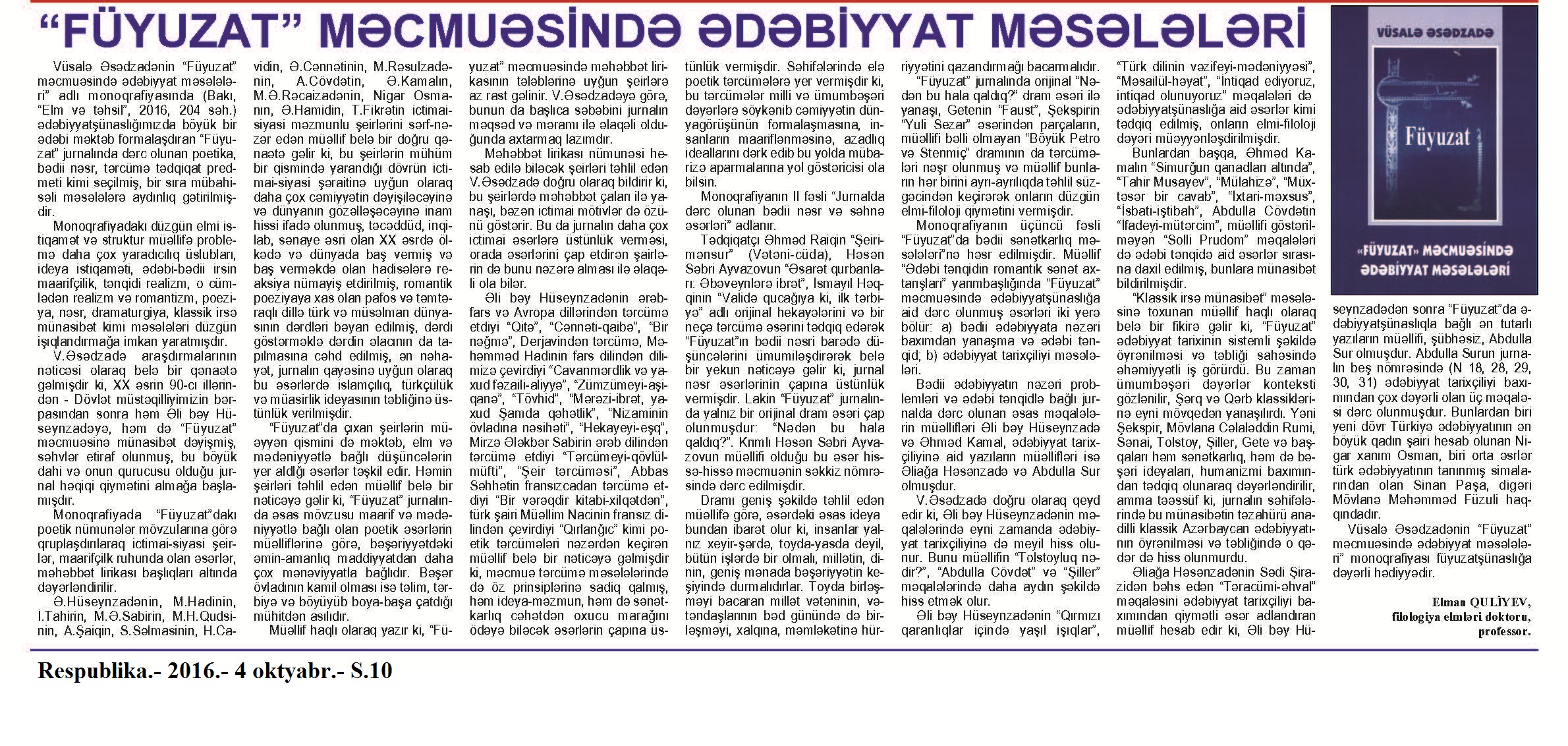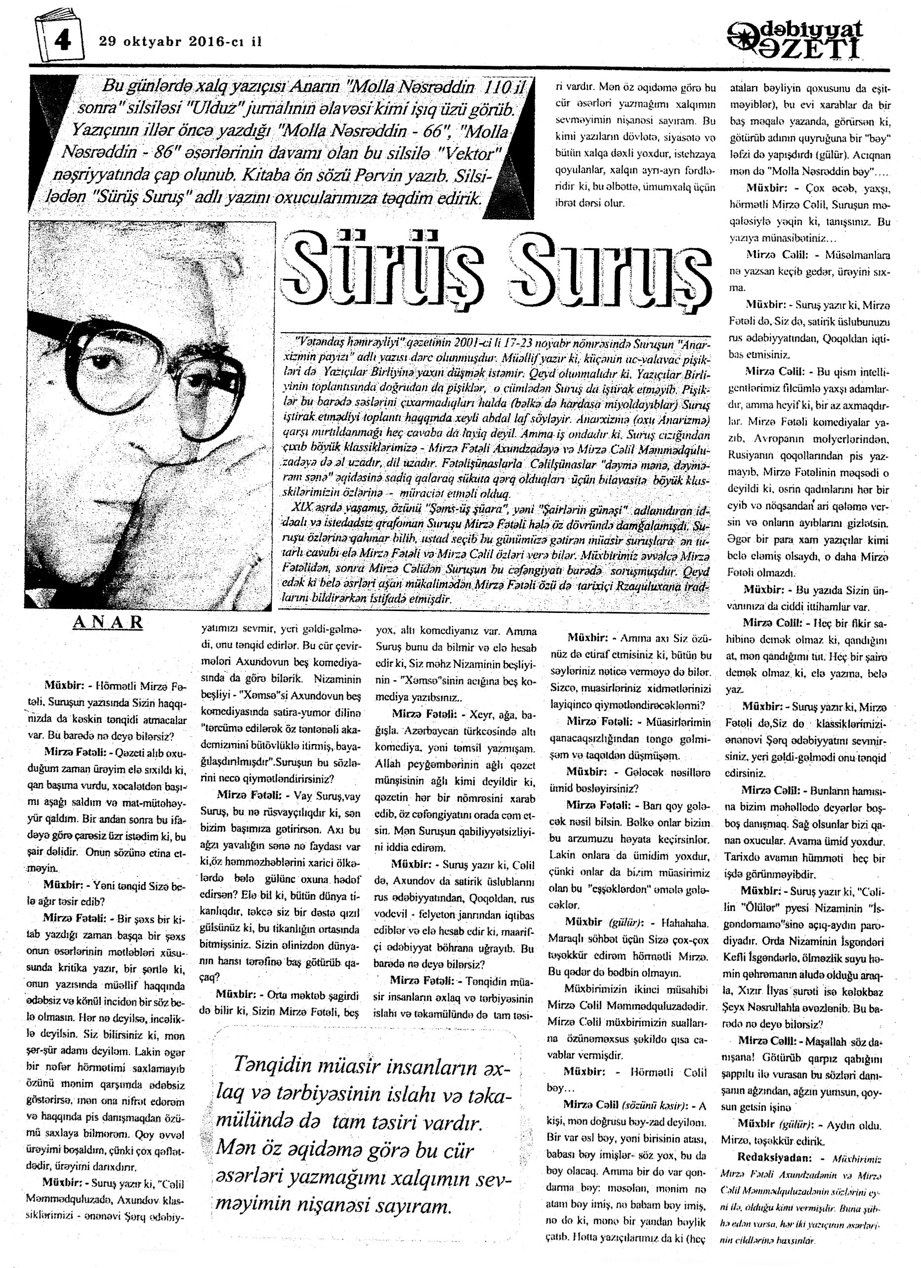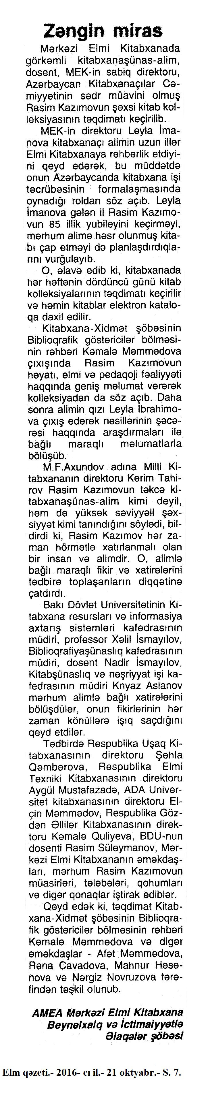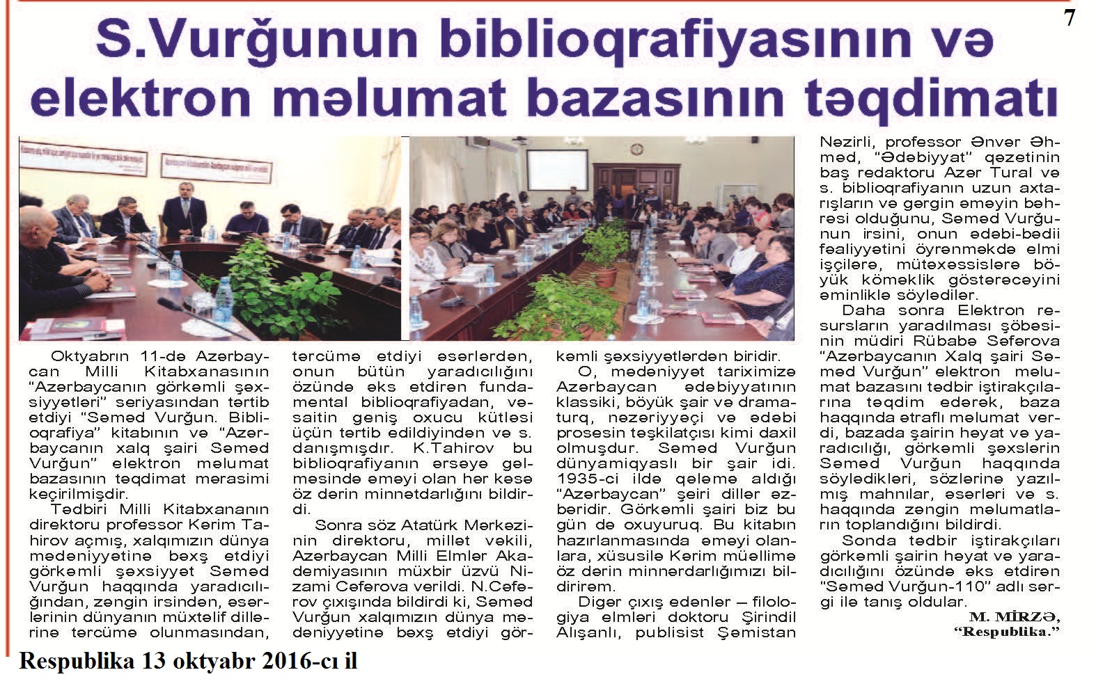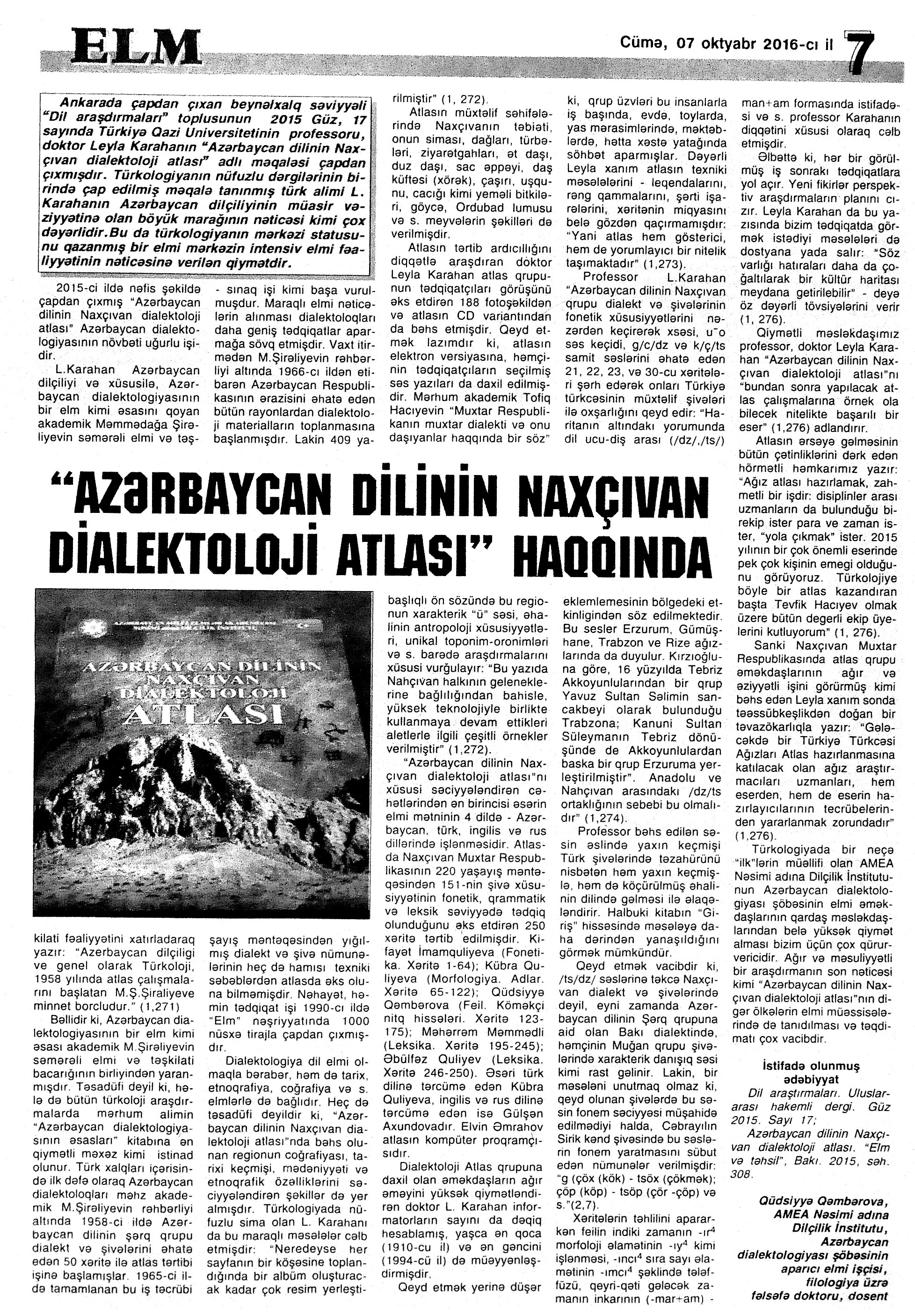 şəhəri, 6 oktyabr 2016-cı il: [musiqi sahəsində] //Azərbaycan.-