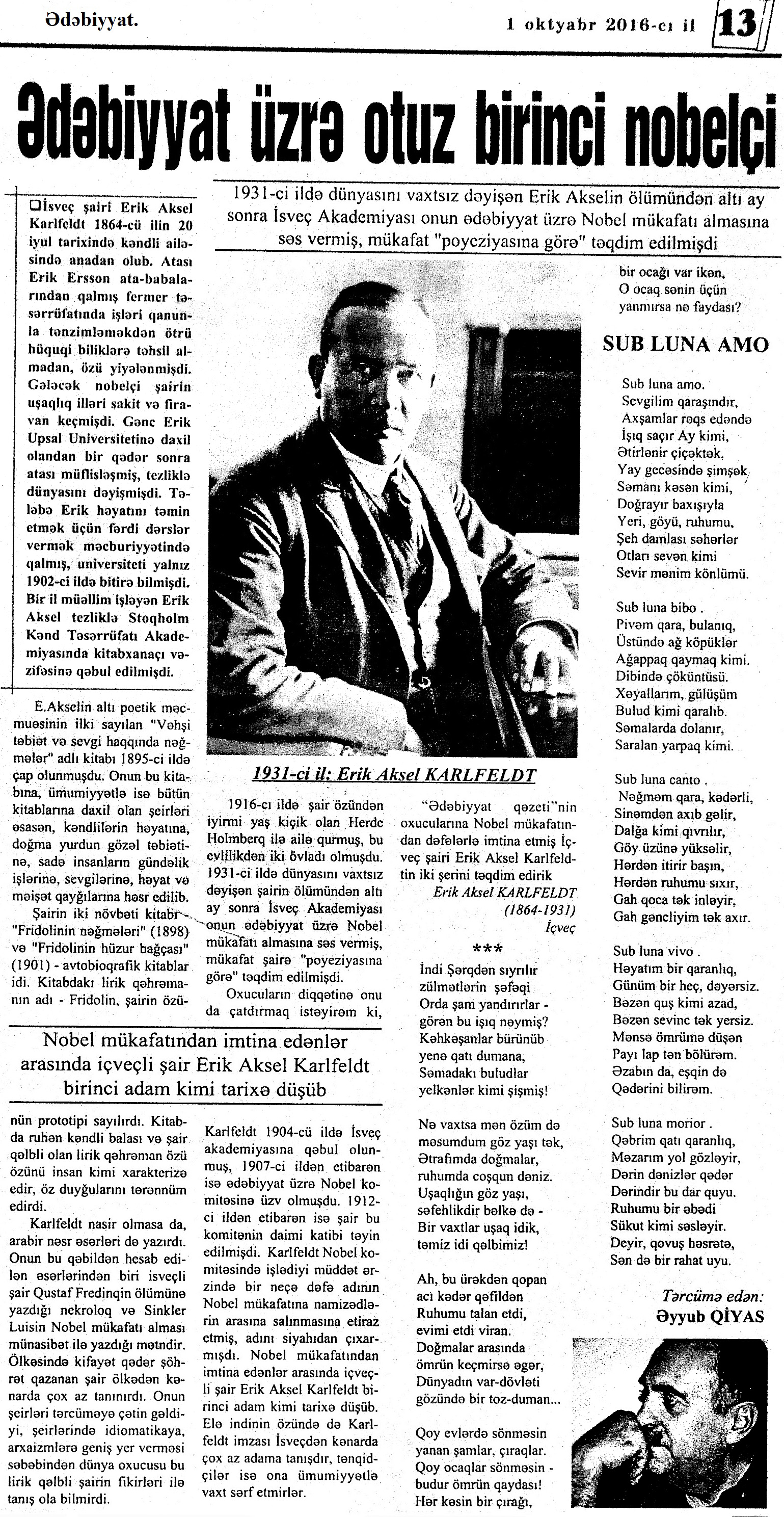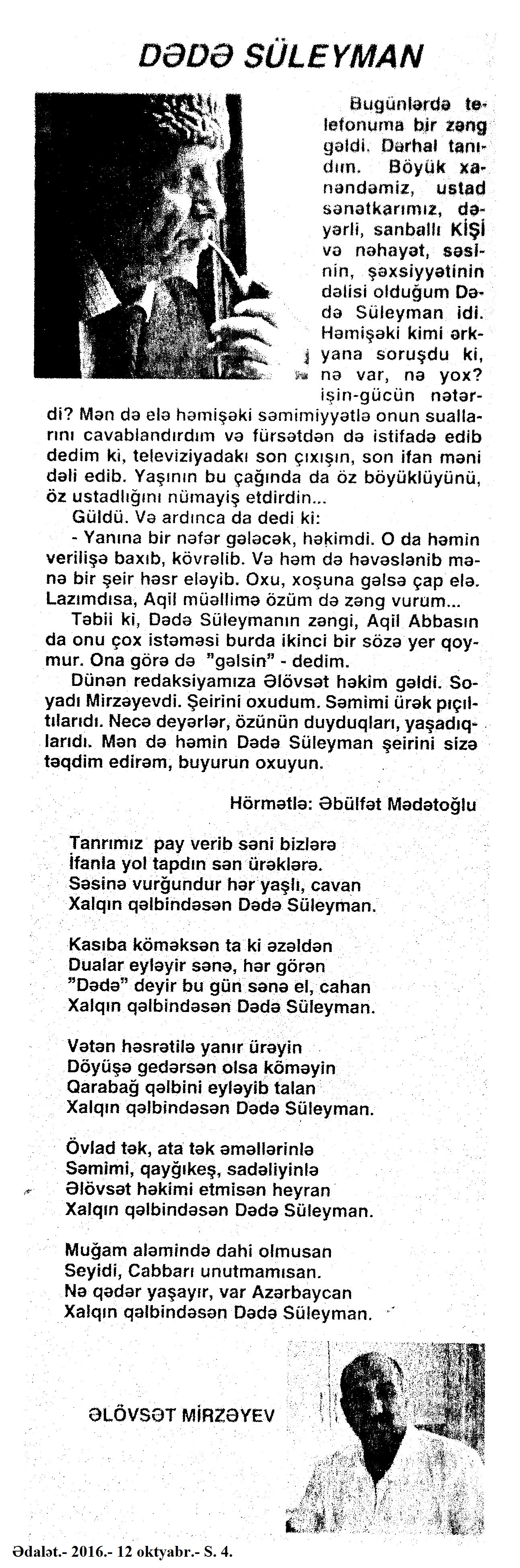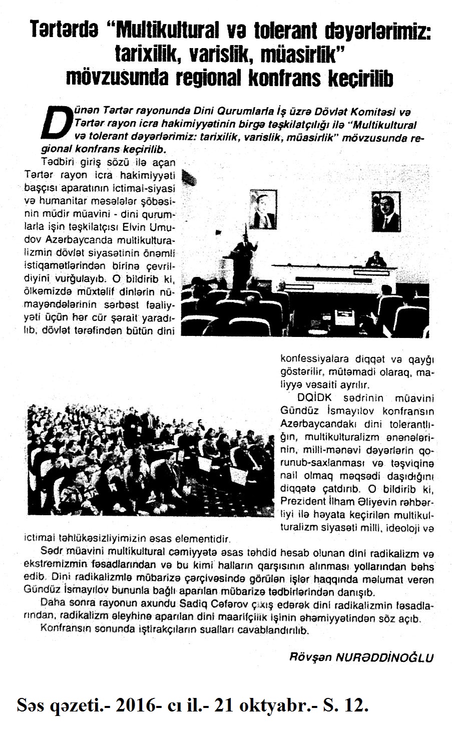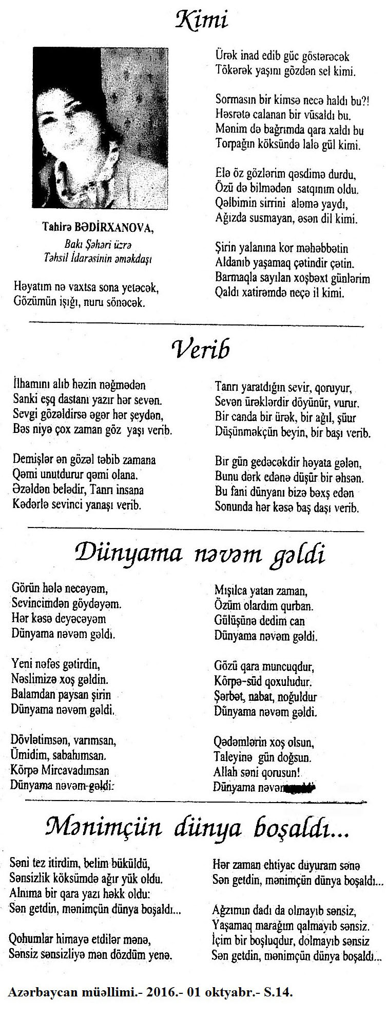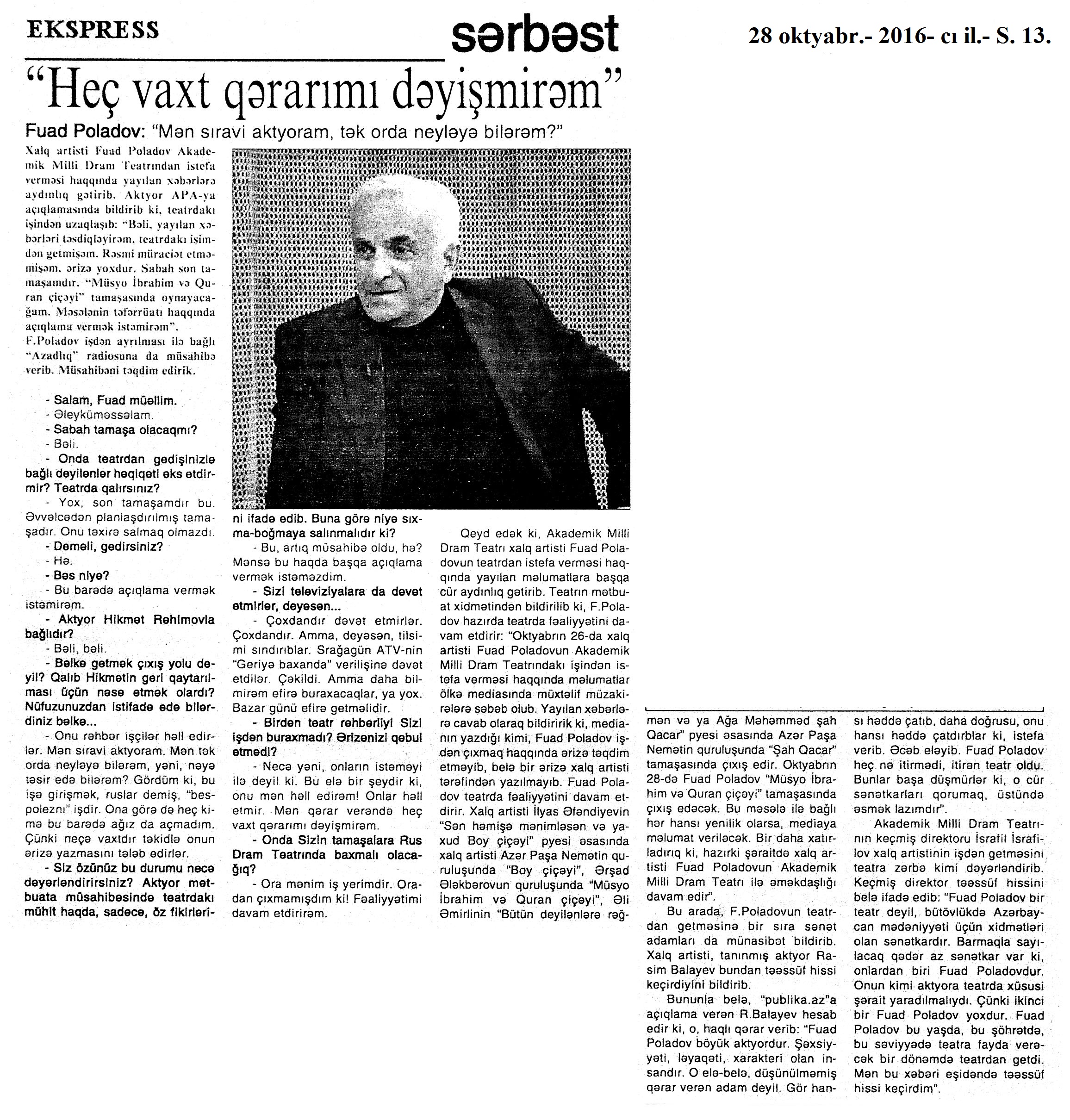 şəhəri, 6 oktyabr 2016-cı il: [musiqi sahəsində] //Azərbaycan.-