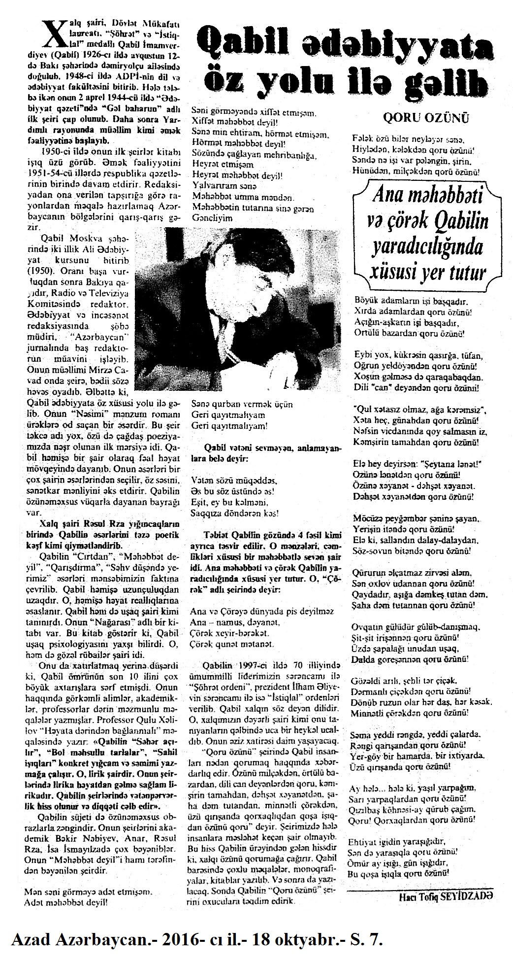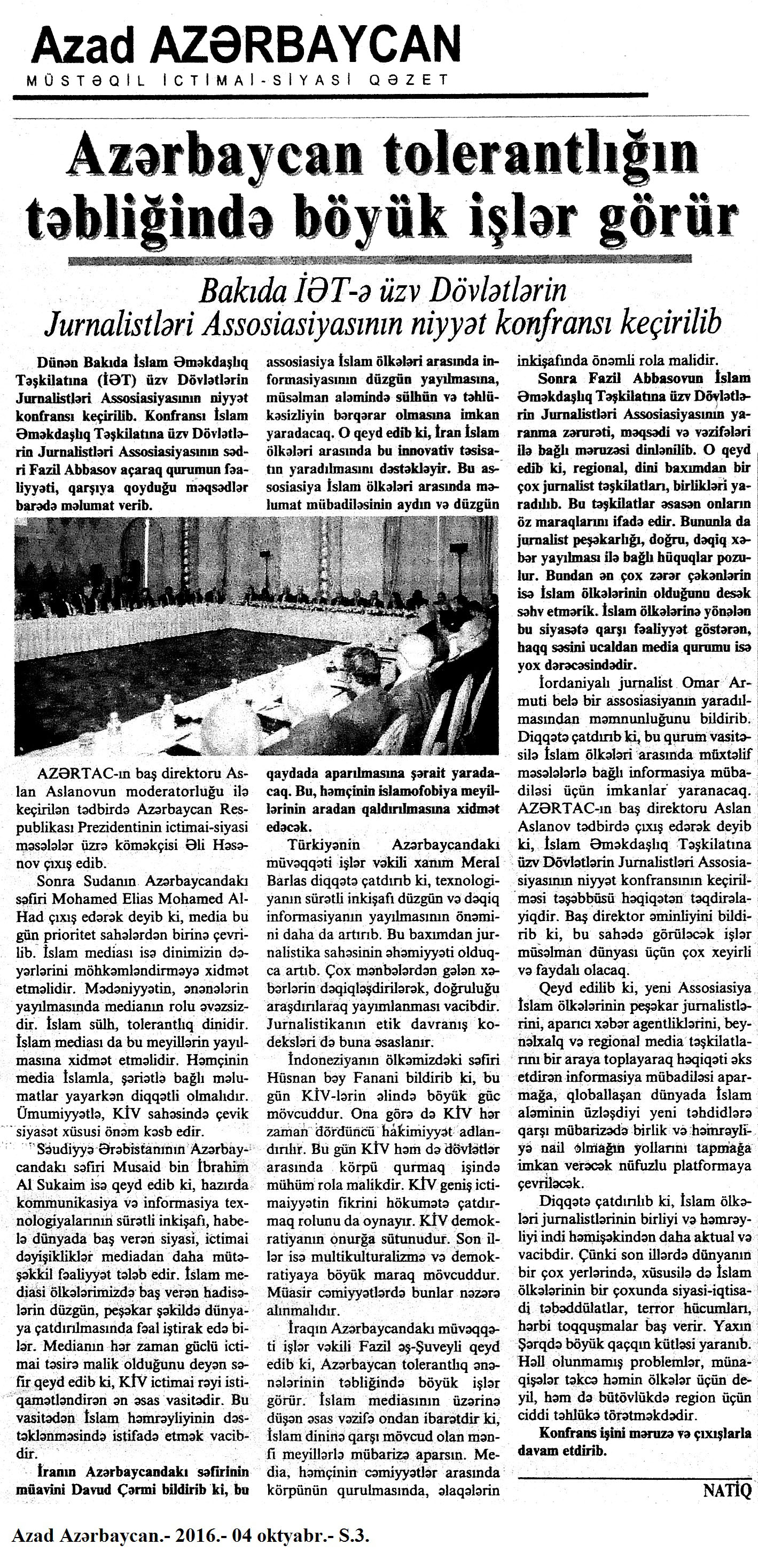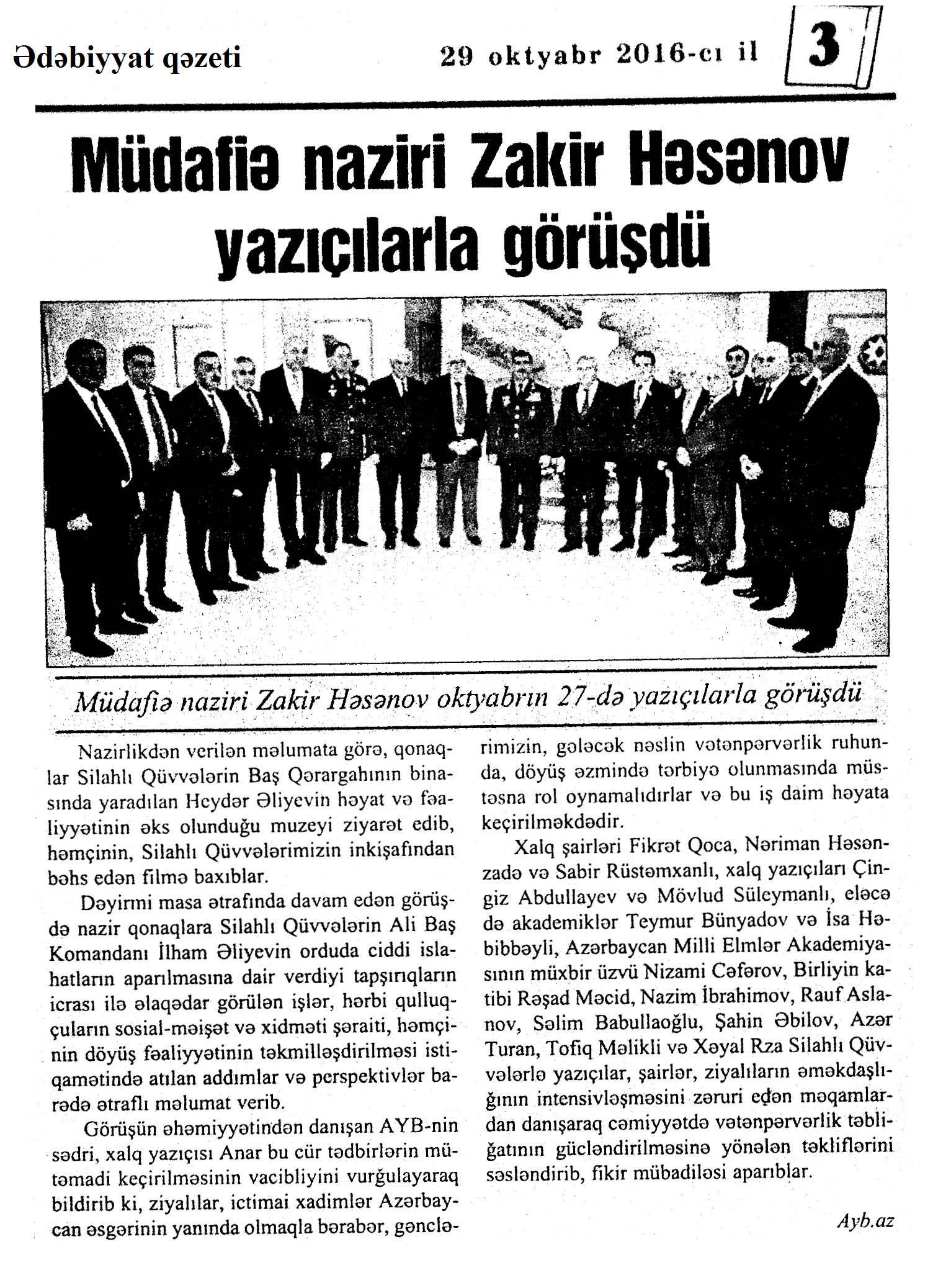 //Azərbaycan.- 2016.- 7 oktyabr.- S.2.