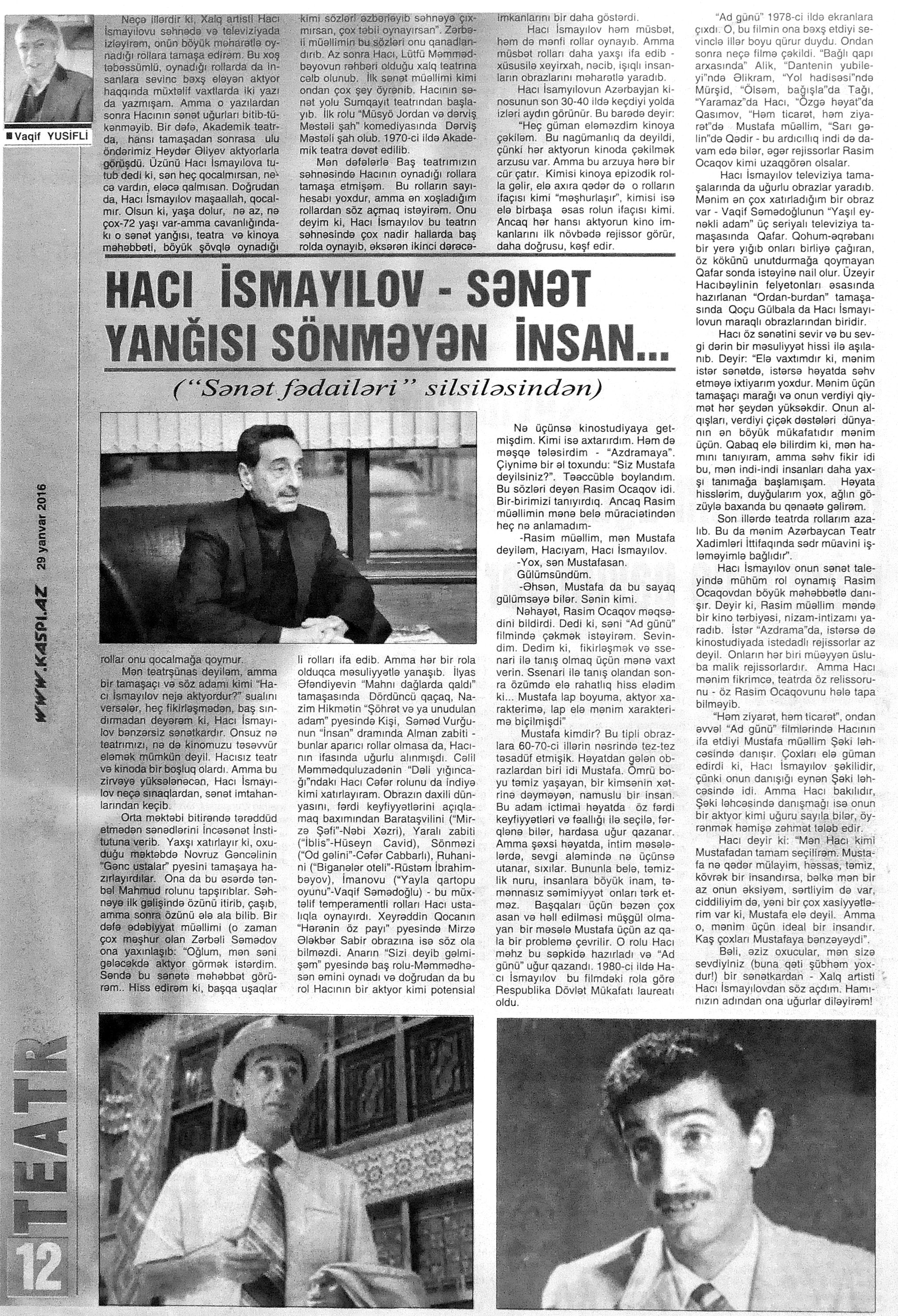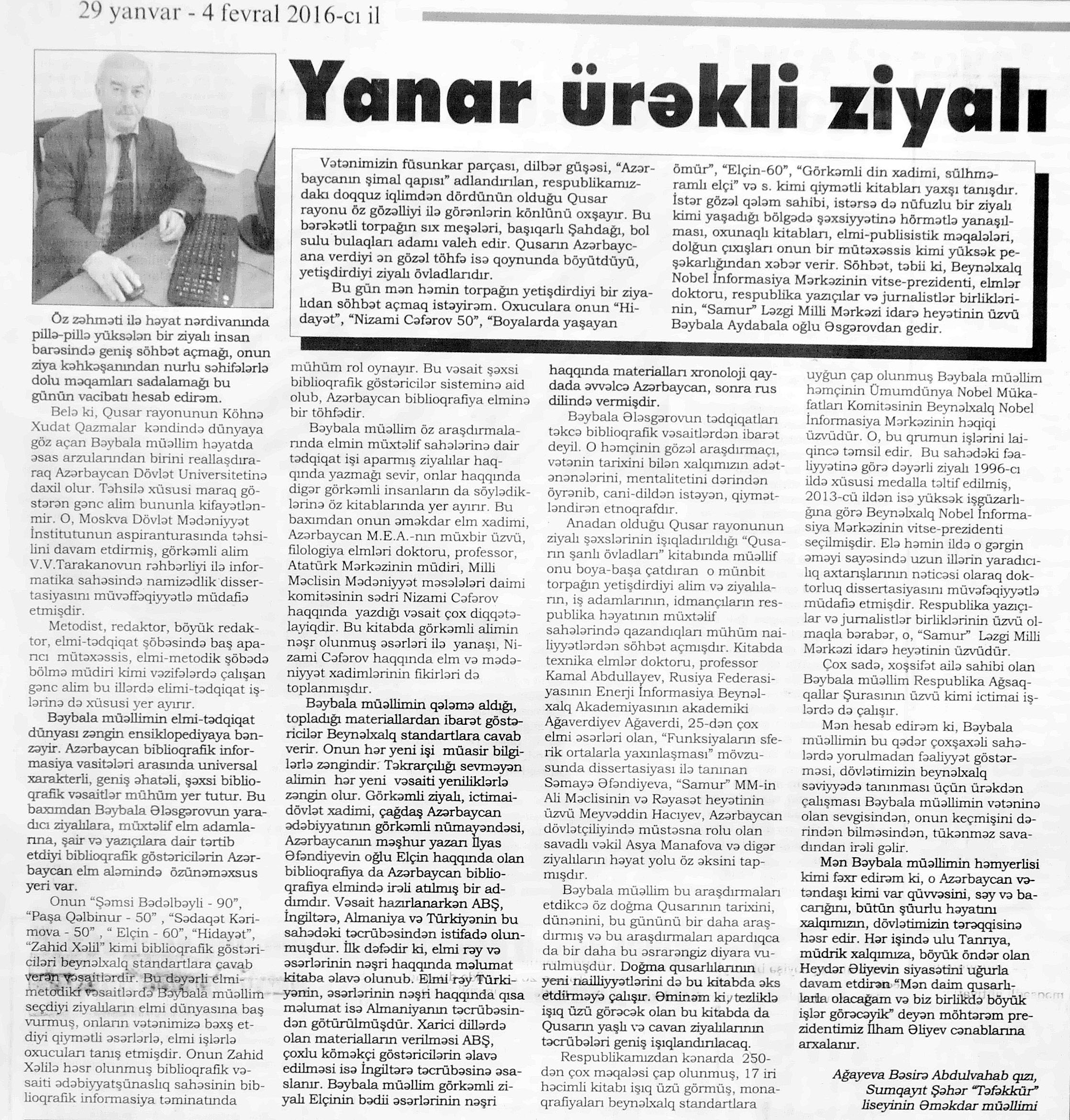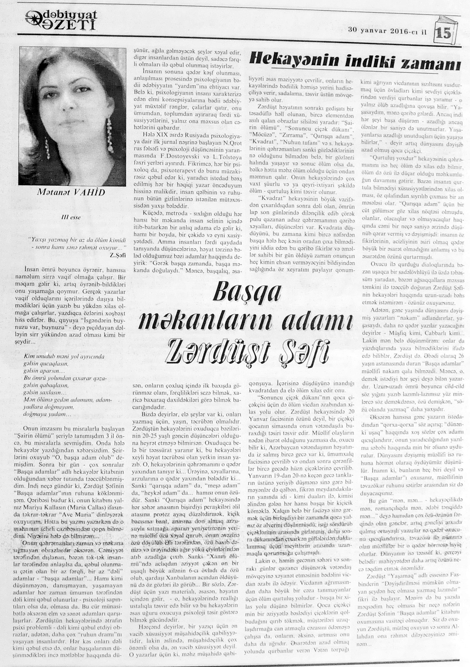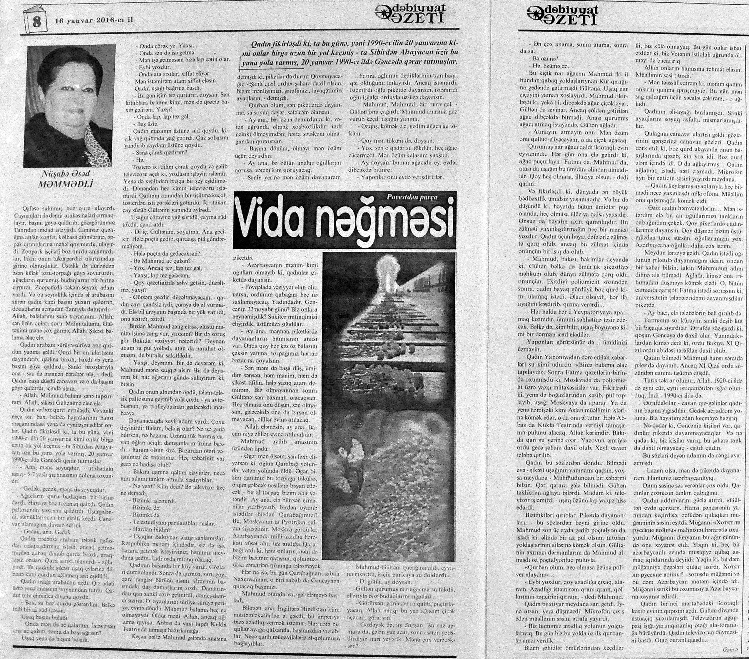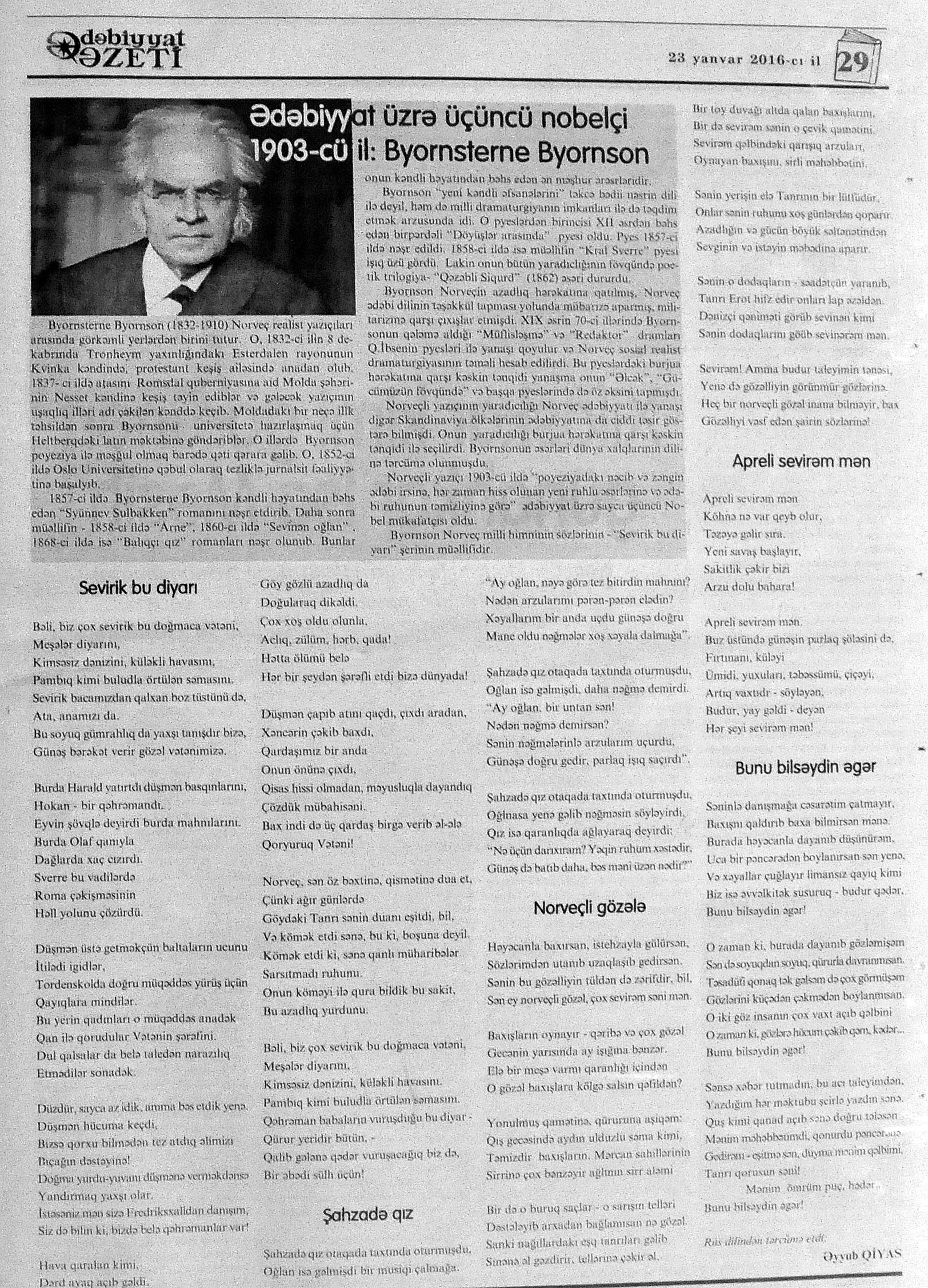 yanvar 2016-cı il //Azərbaycan.- 2016.- 12 yanvar.- S.6; Mədəniyyət.- 2016.-