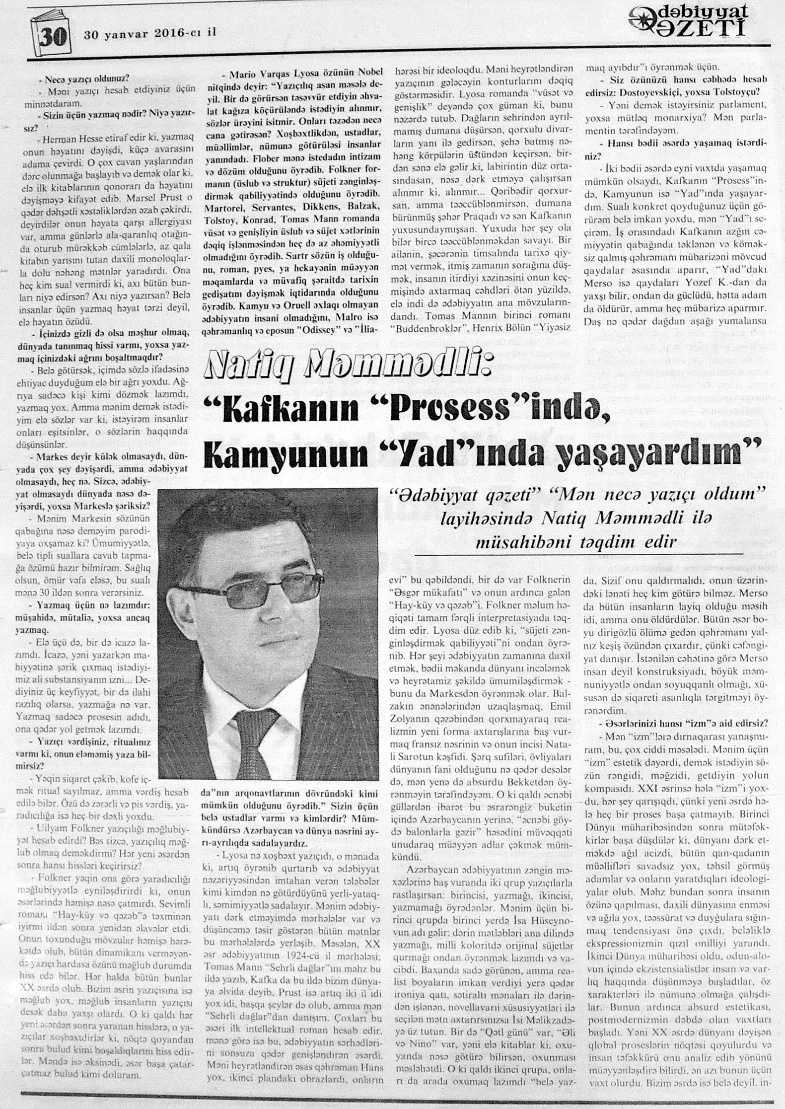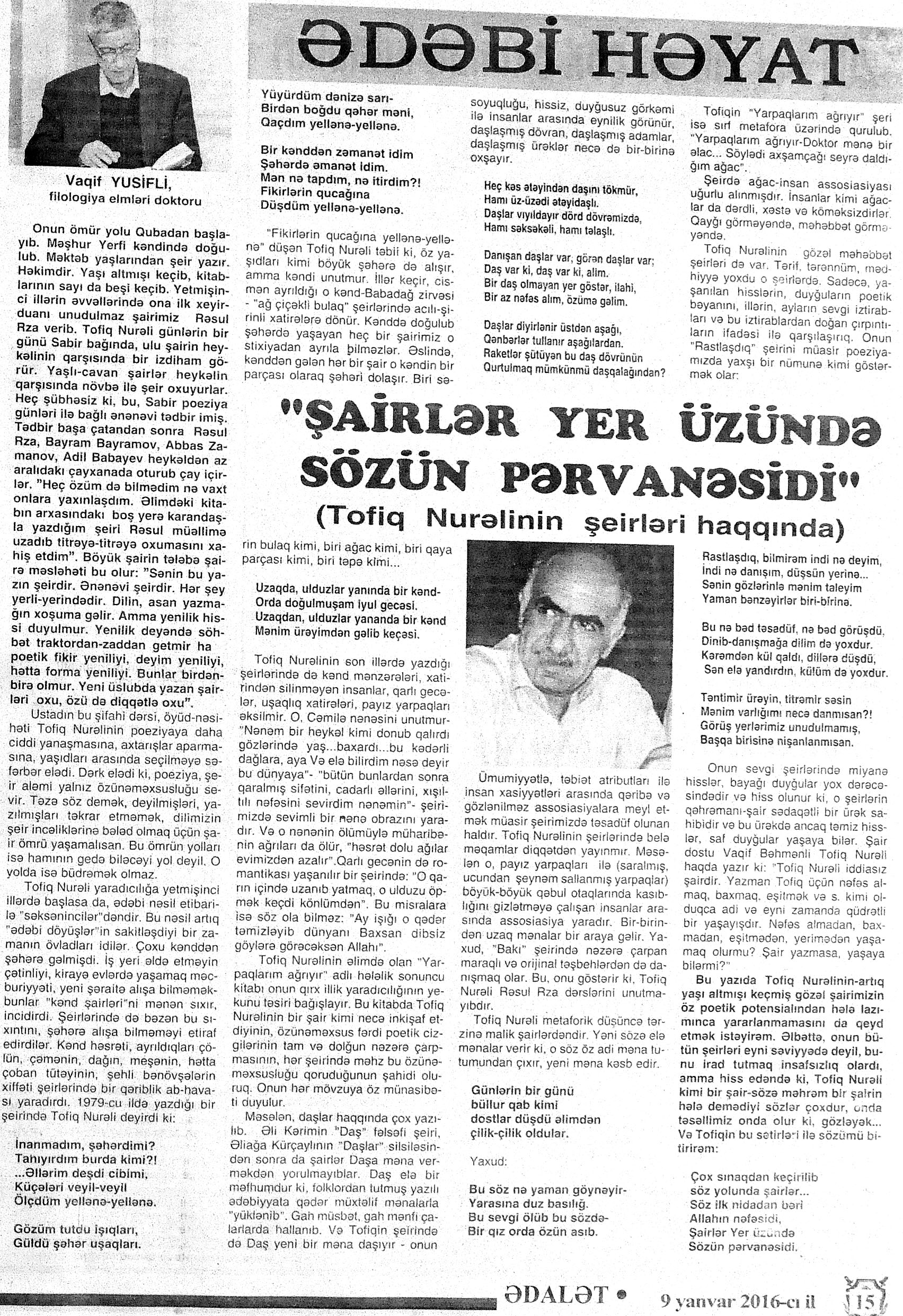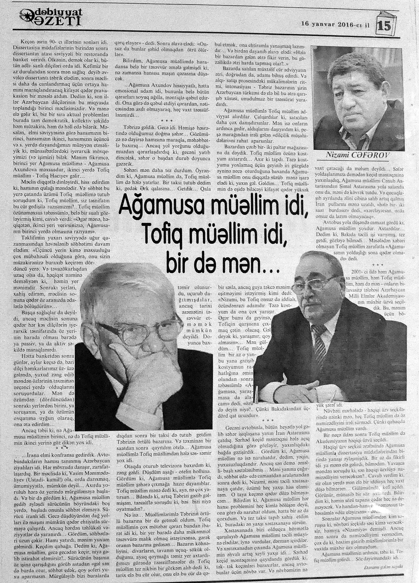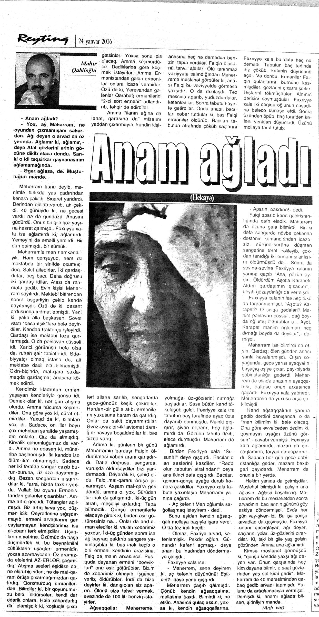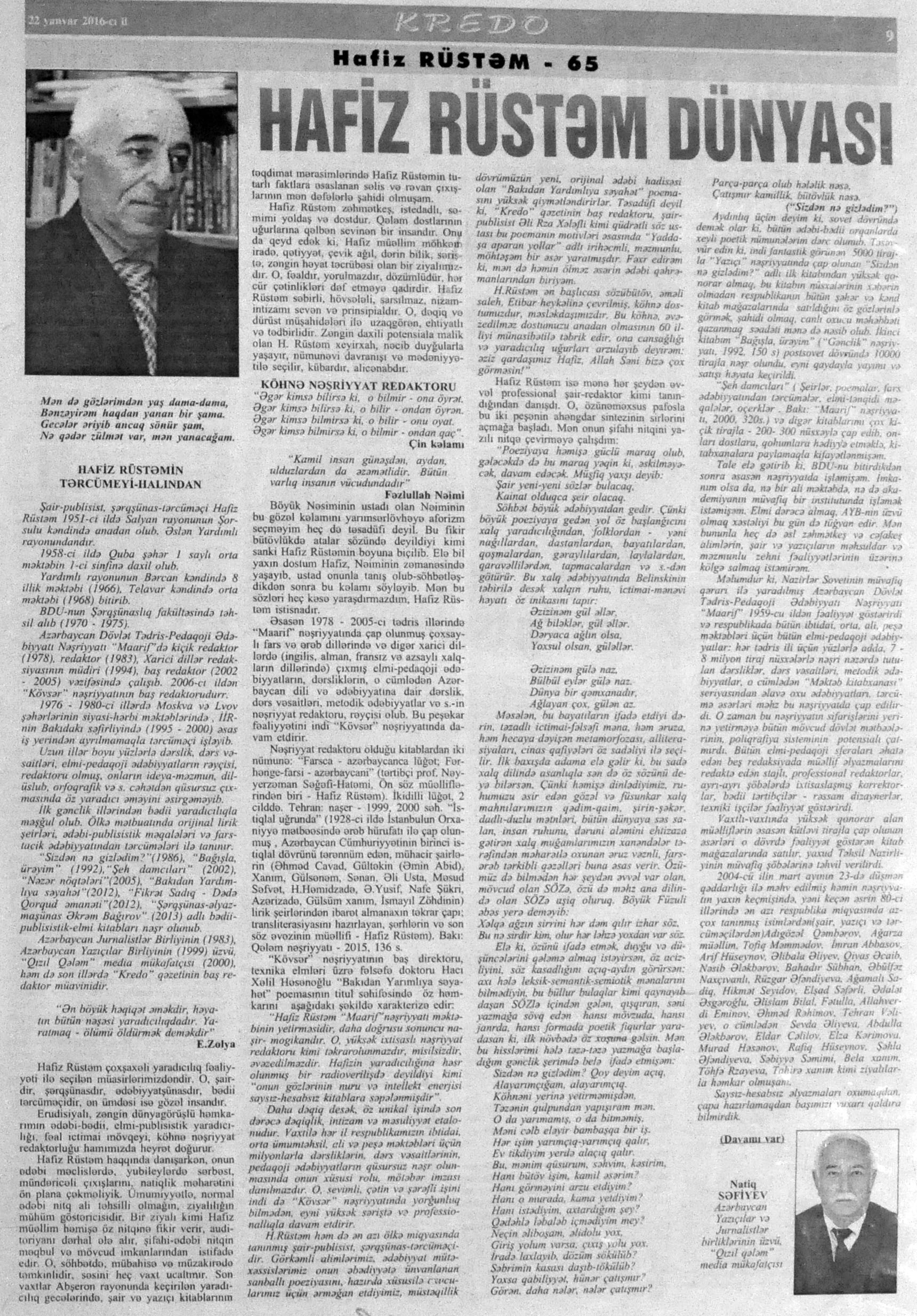 yanvar 2016-cı il //Azərbaycan.- 2016.- 12 yanvar.- S.6; Mədəniyyət.- 2016.-
