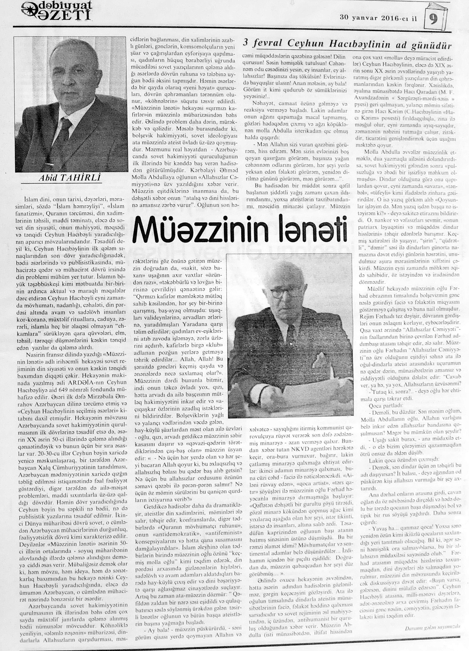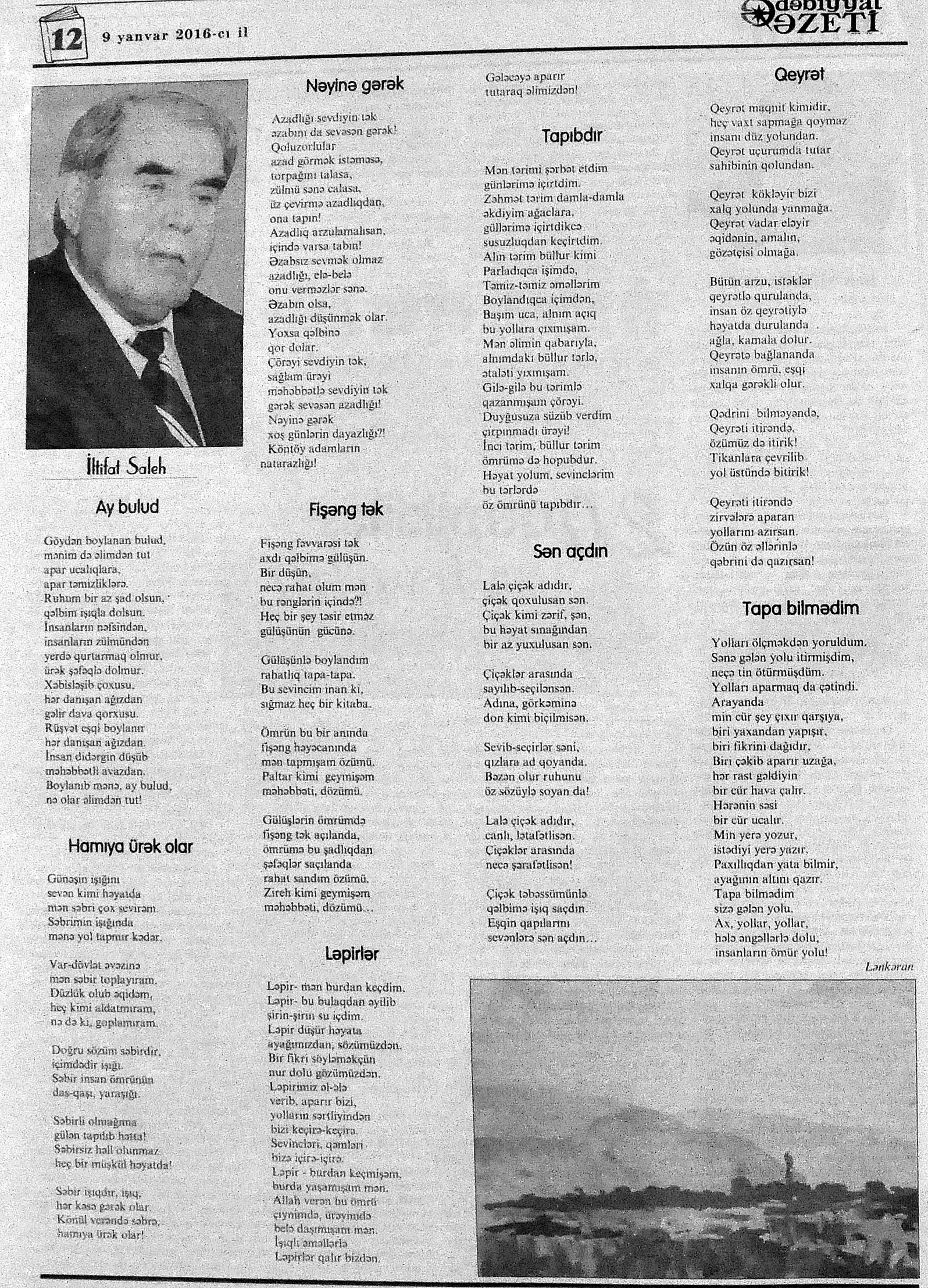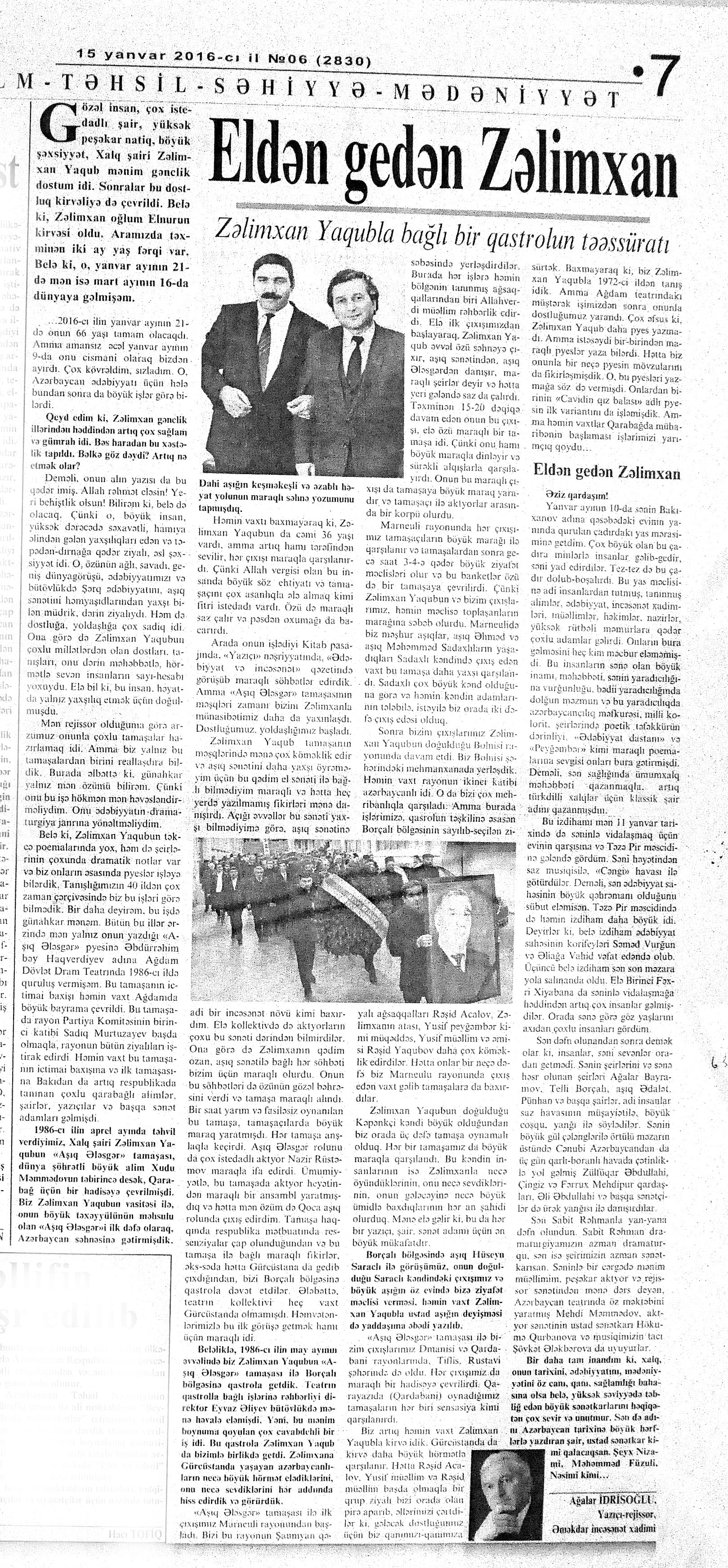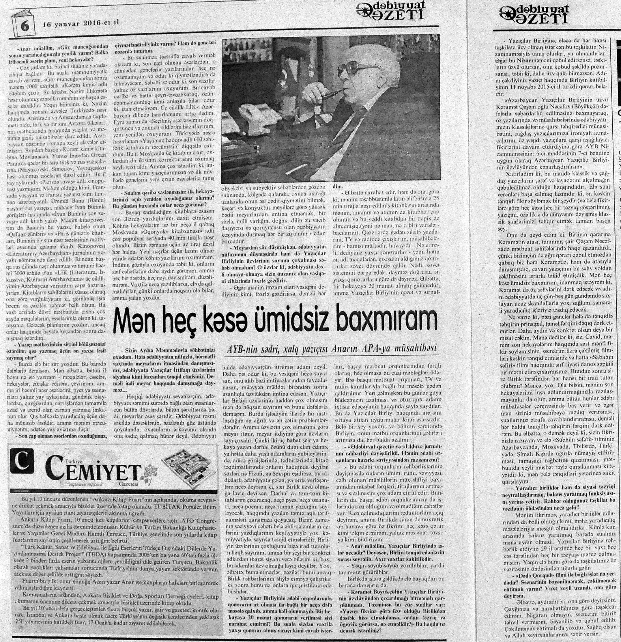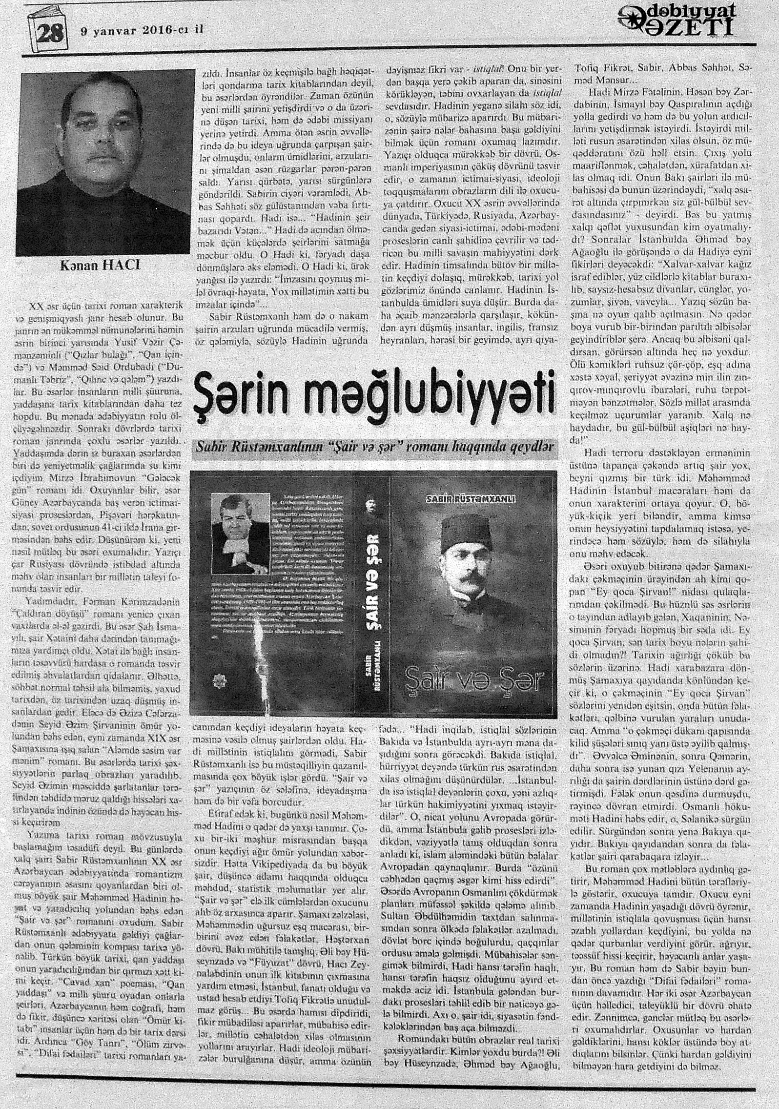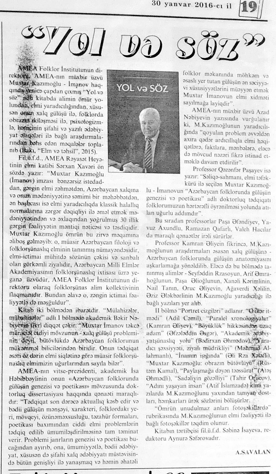 yanvar 2016-cı il //Azərbaycan.- 2016.- 12 yanvar.- S.6; Mədəniyyət.- 2016.-