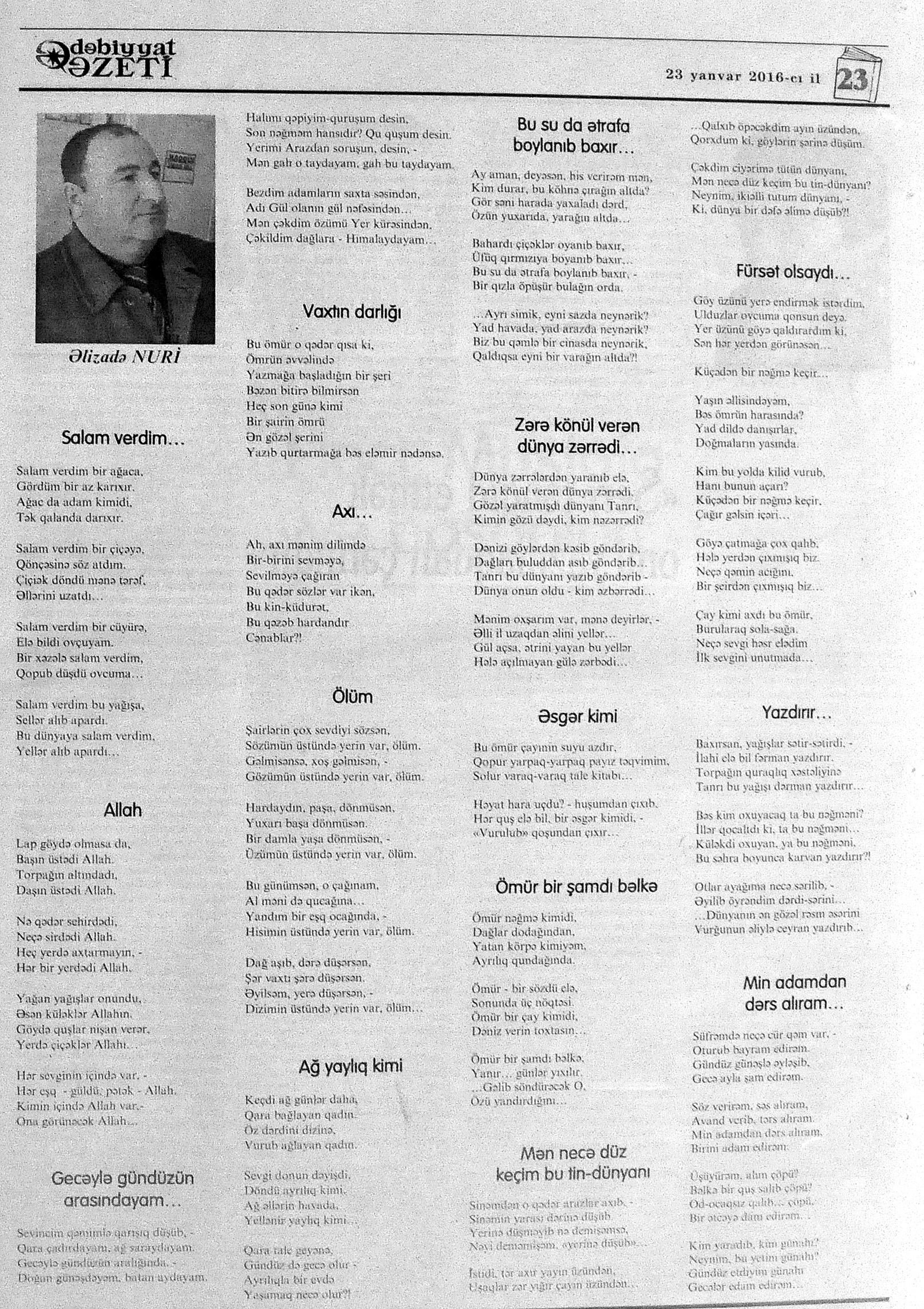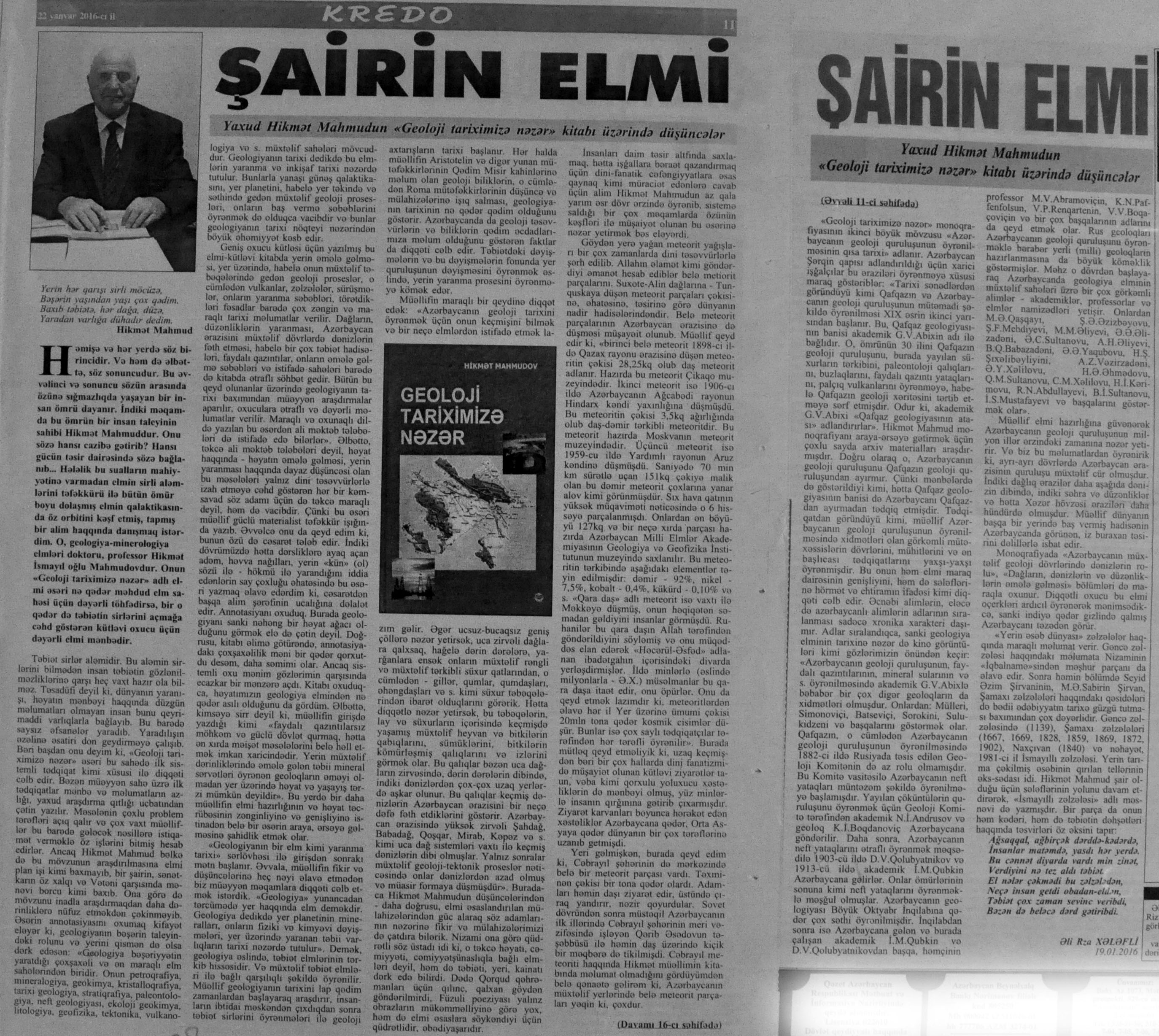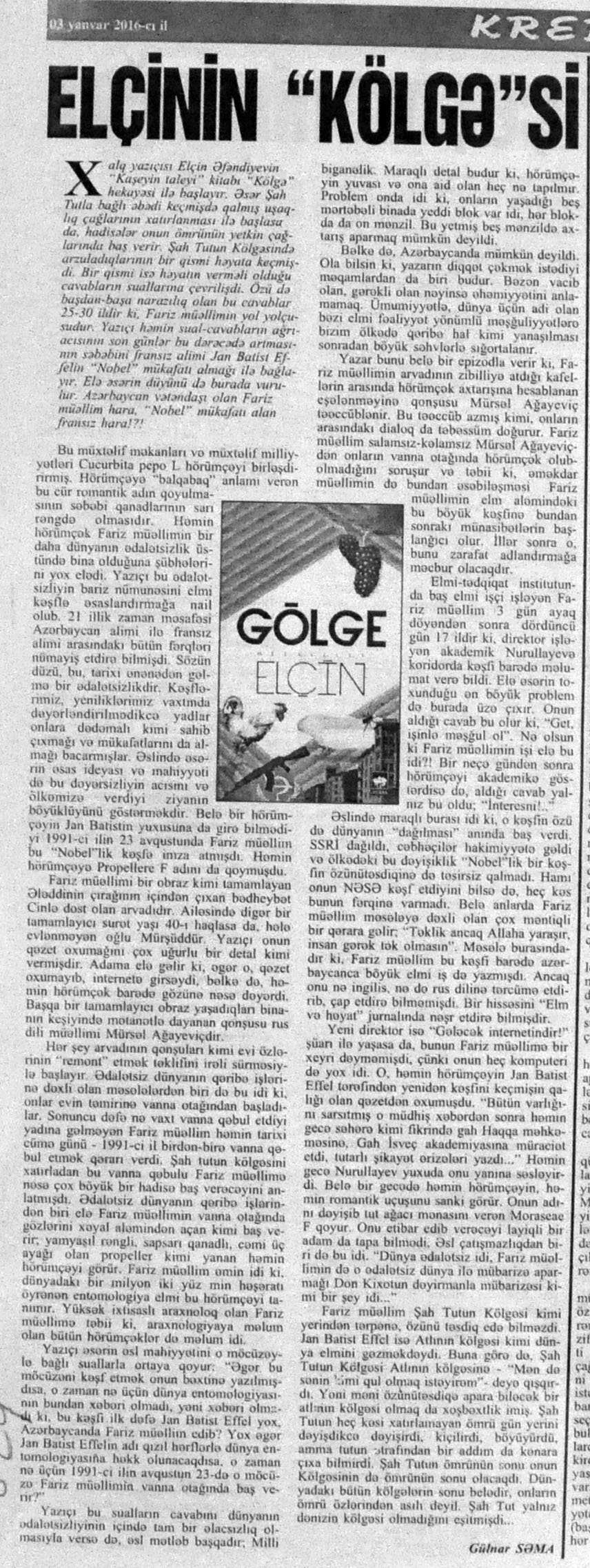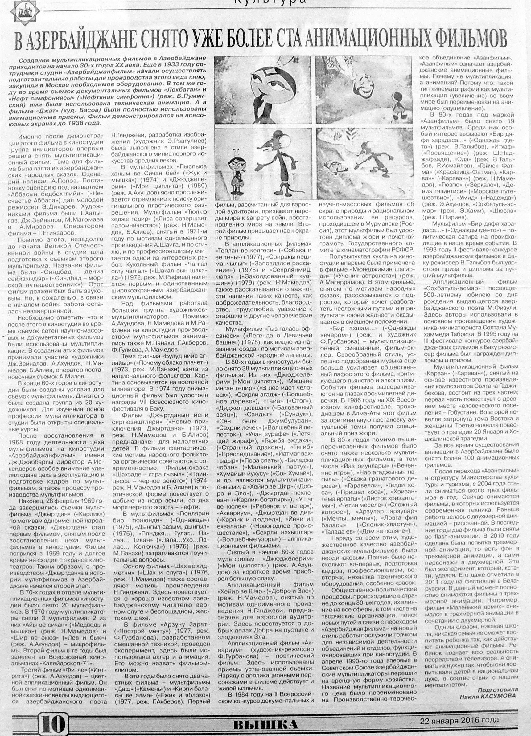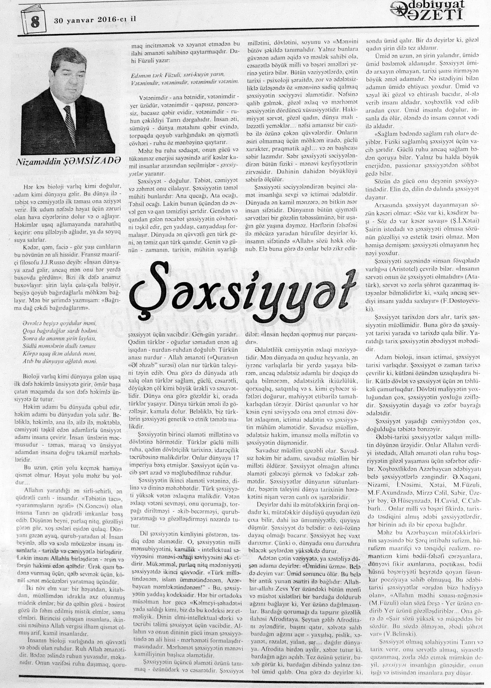 yanvar 2016-cı il //Azərbaycan.- 2016.- 12 yanvar.- S.6; Mədəniyyət.- 2016.-
