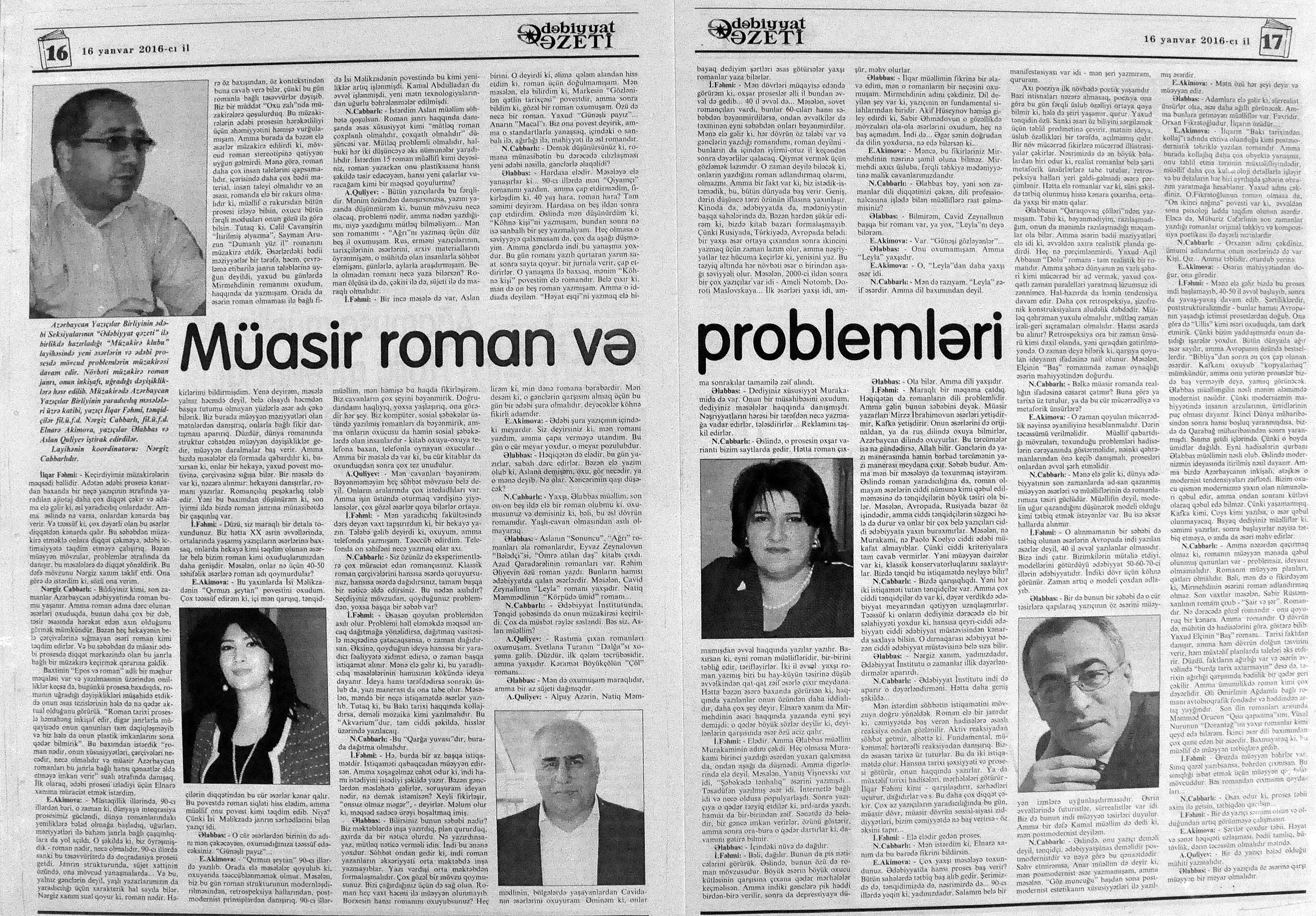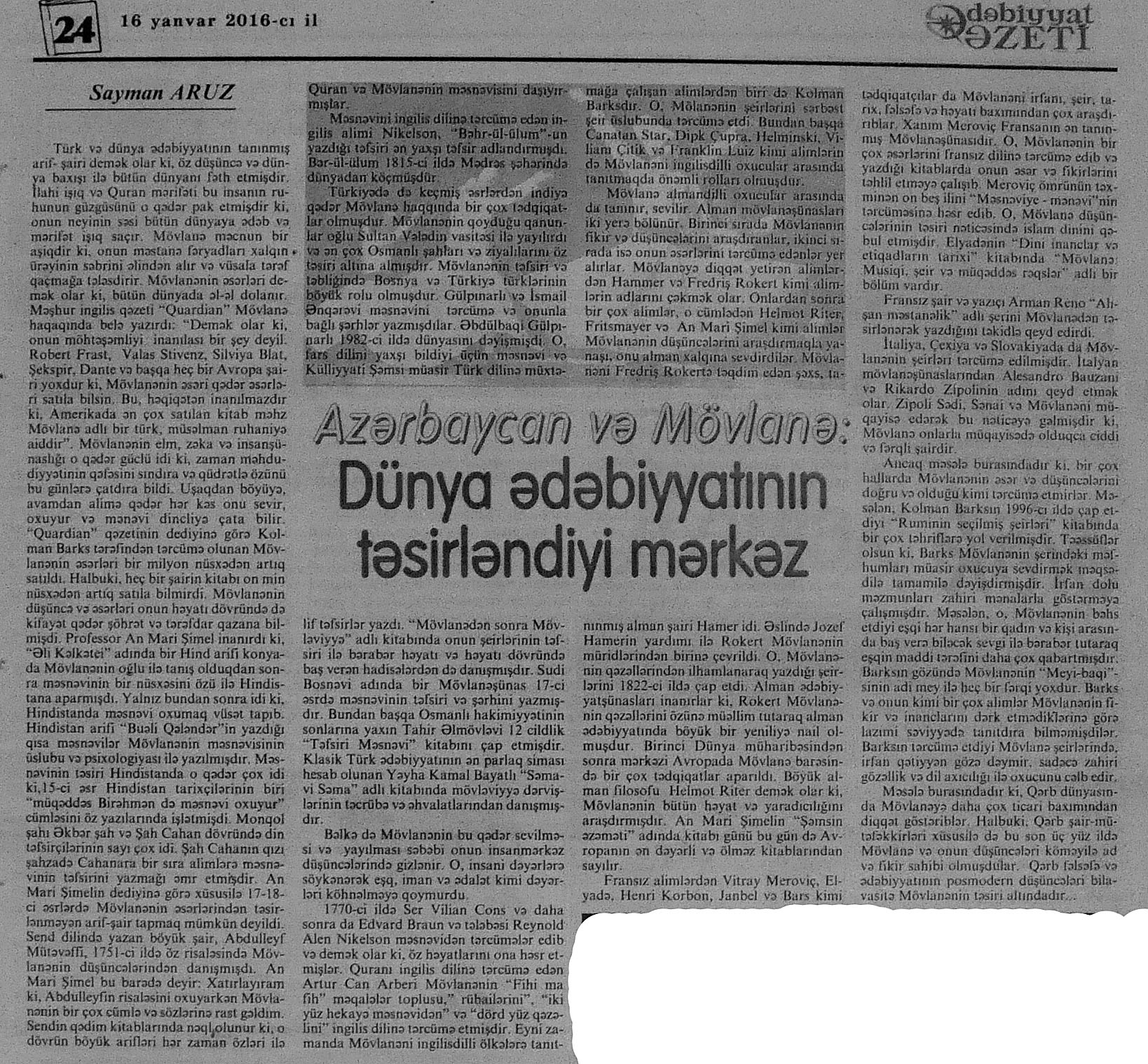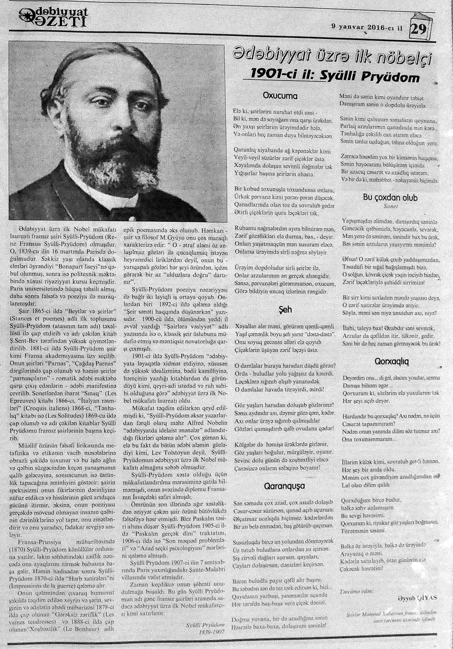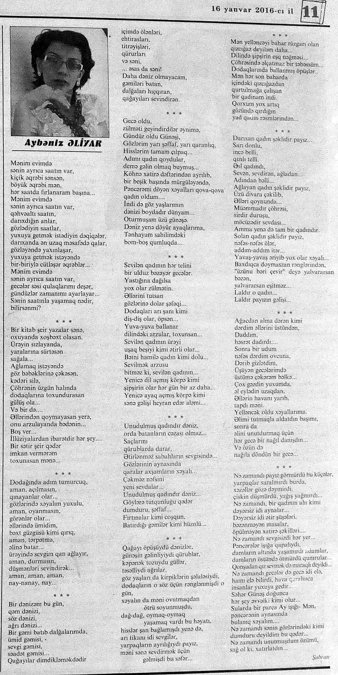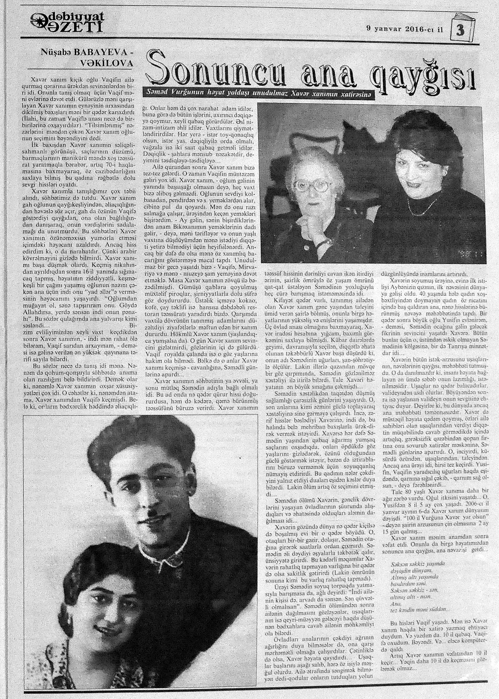 yanvar 2016-cı il //Azərbaycan.- 2016.- 12 yanvar.- S.6; Mədəniyyət.- 2016.-