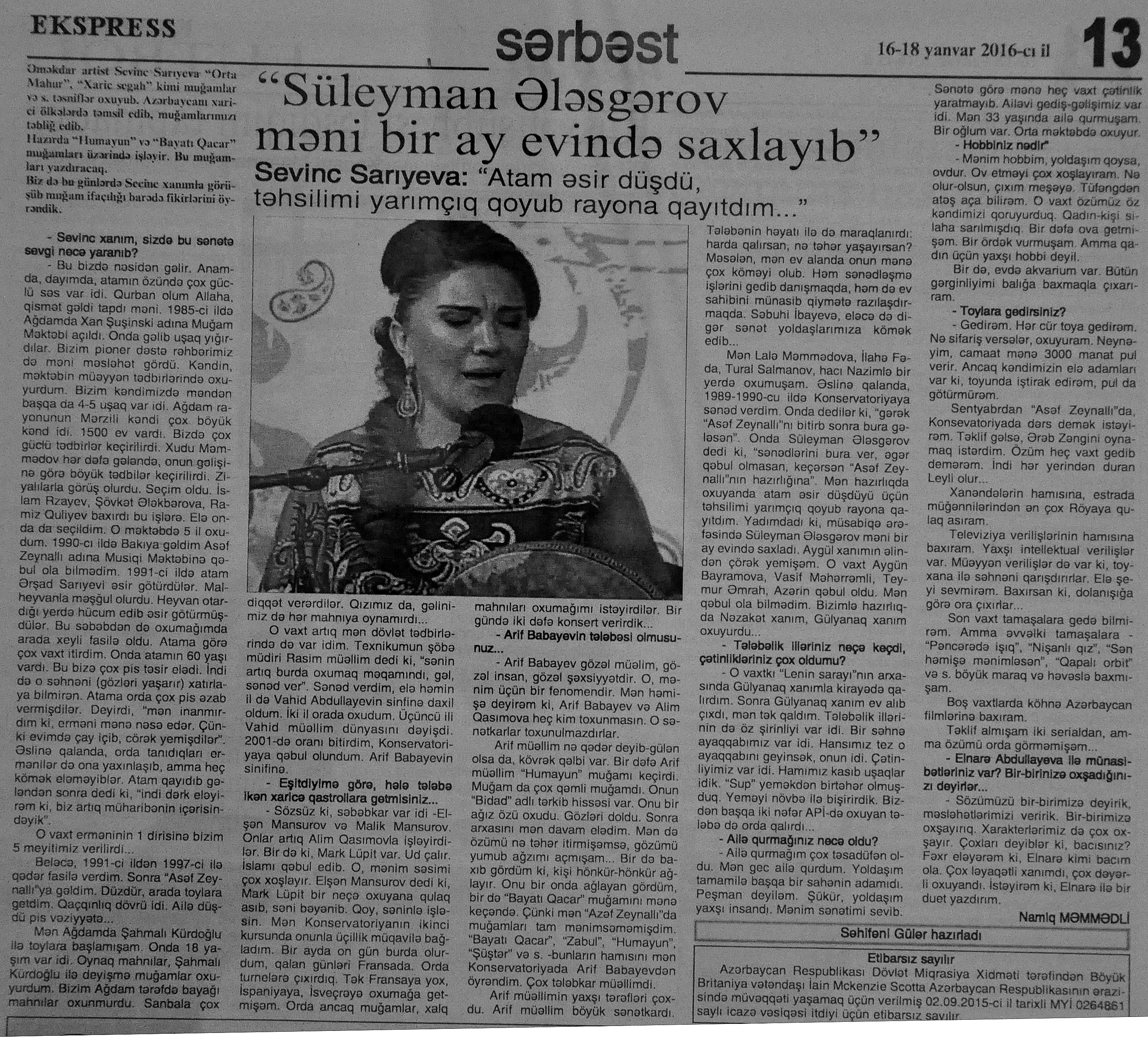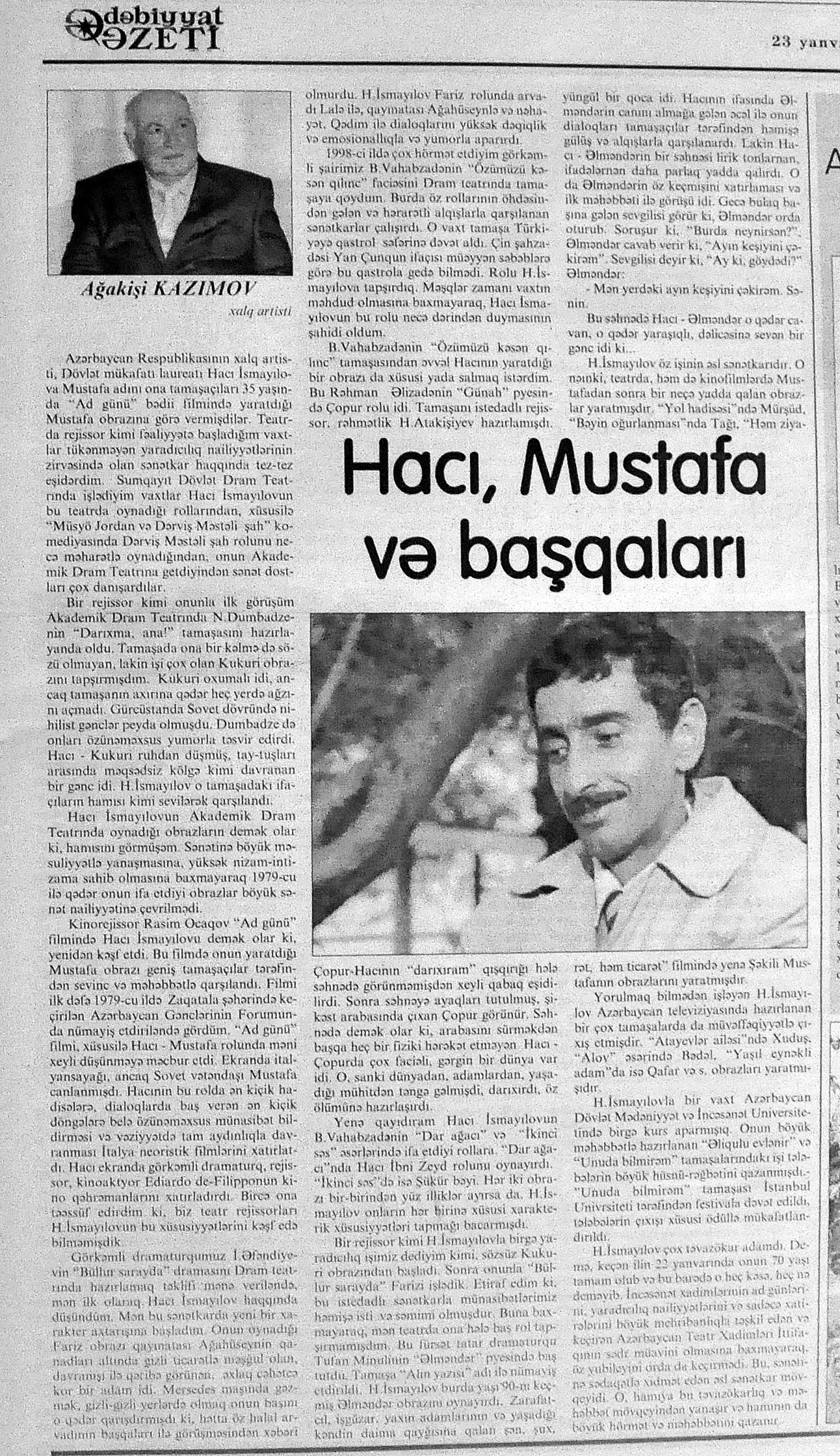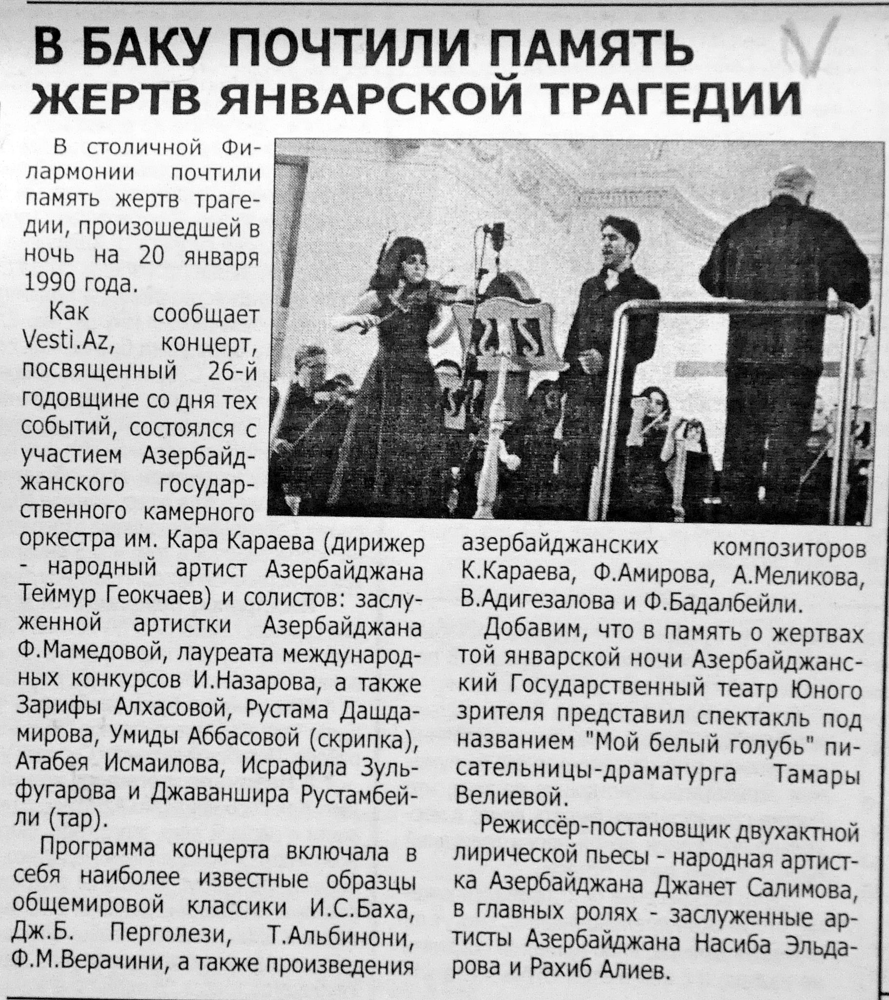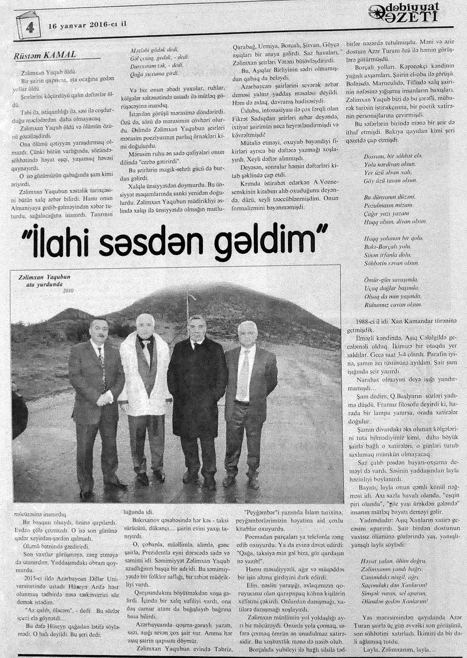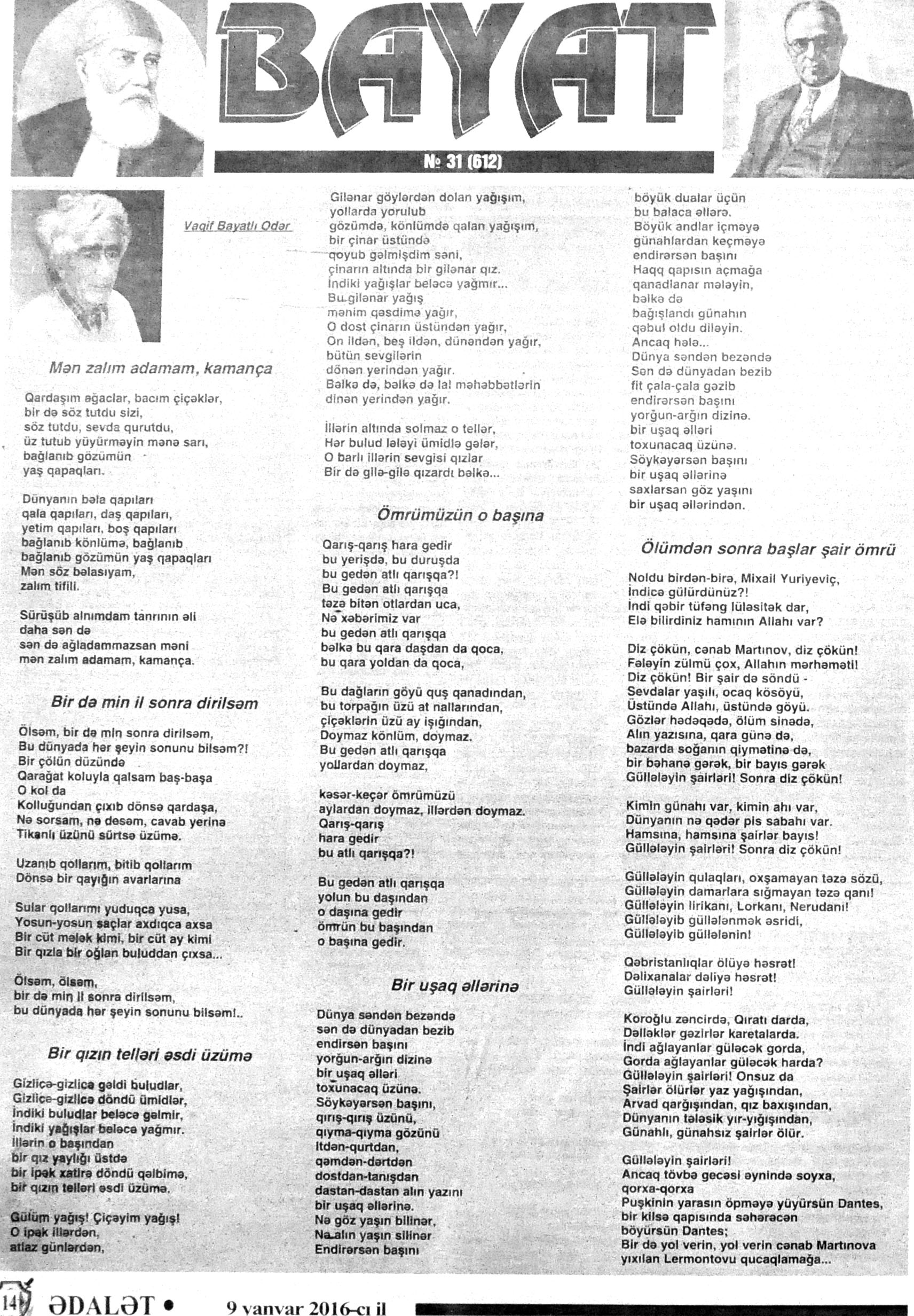 yanvar 2016-cı il //Azərbaycan.- 2016.- 12 yanvar.- S.6; Mədəniyyət.- 2016.-