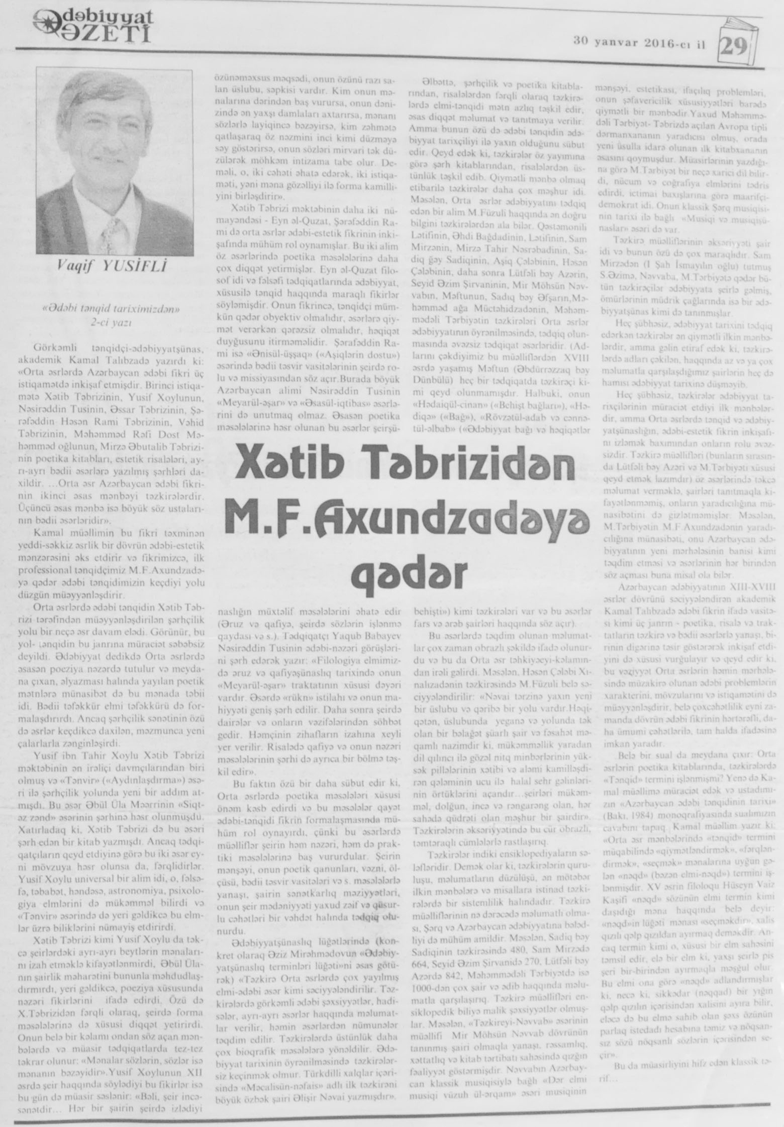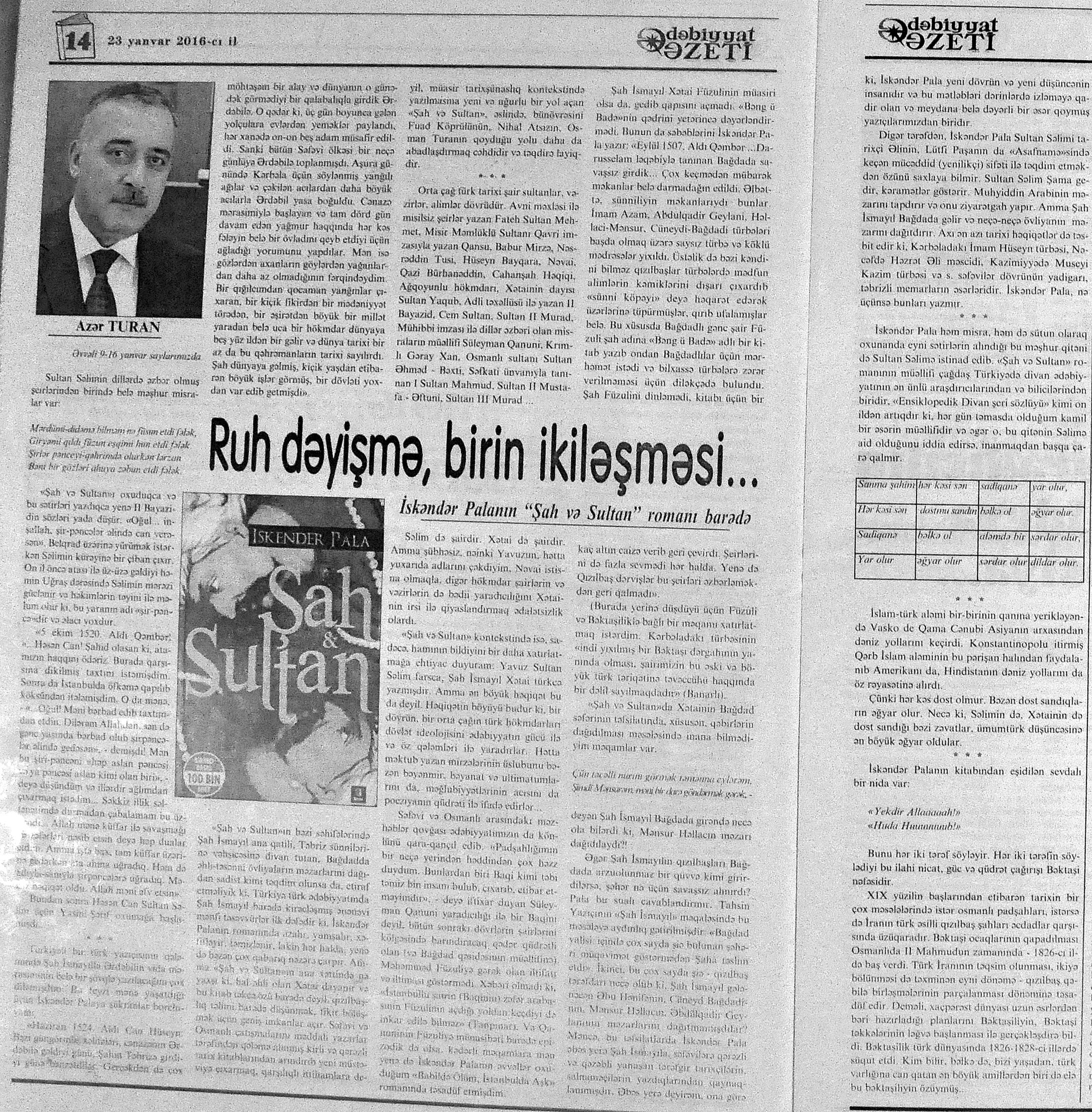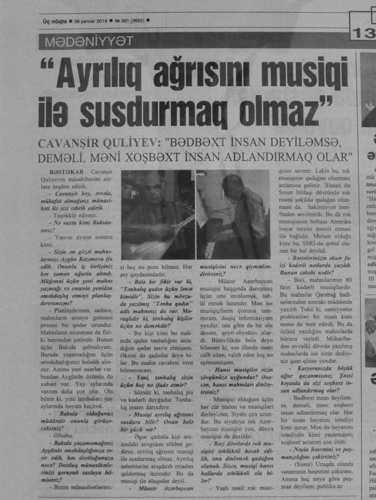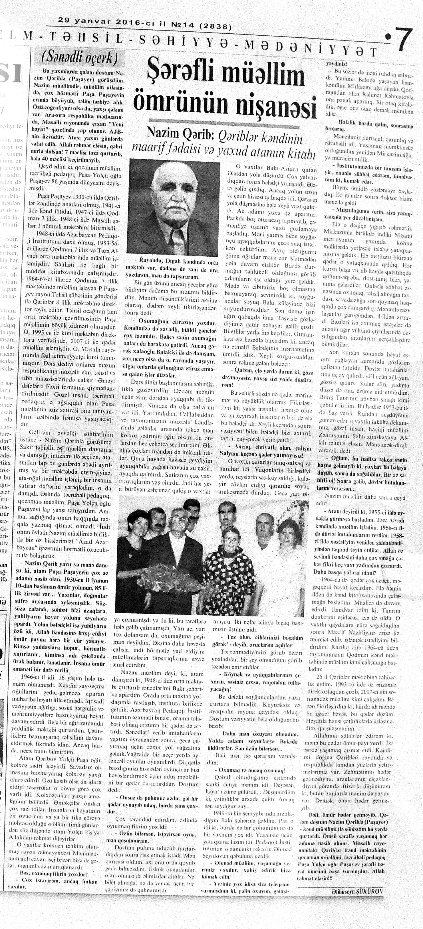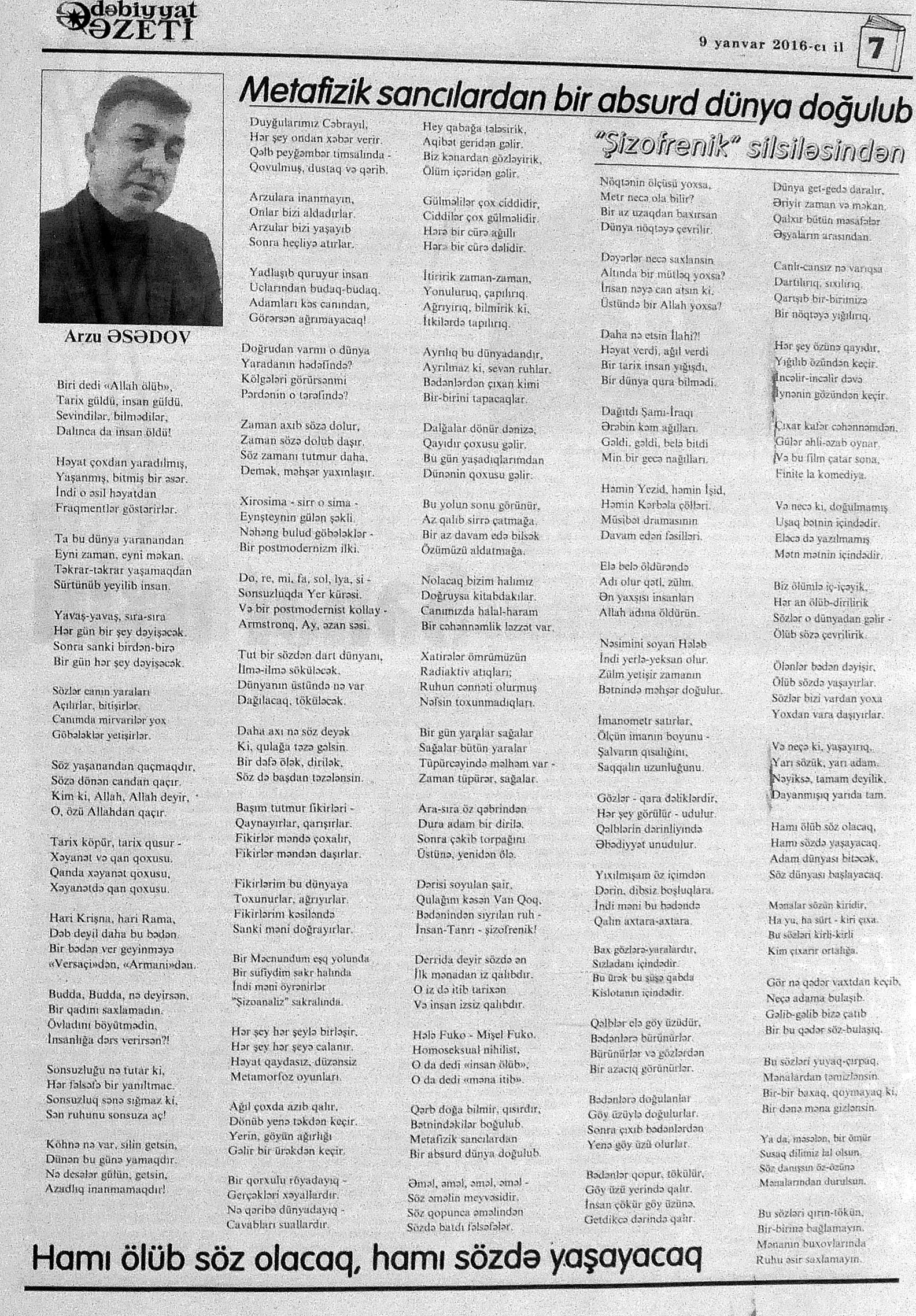 yanvar 2016-cı il //Azərbaycan.- 2016.- 12 yanvar.- S.6; Mədəniyyət.- 2016.-