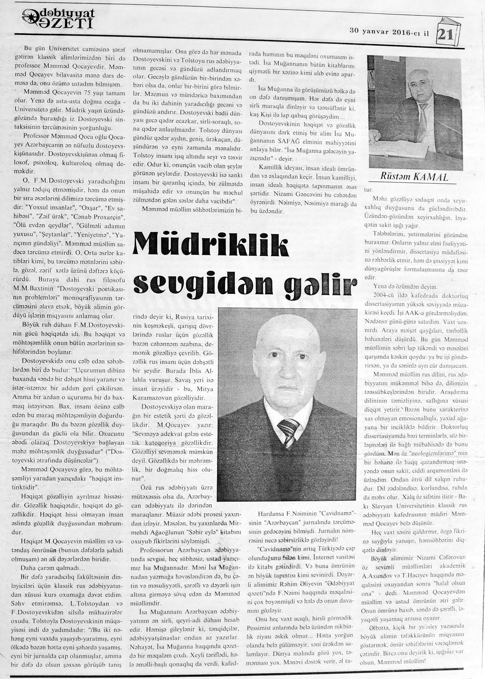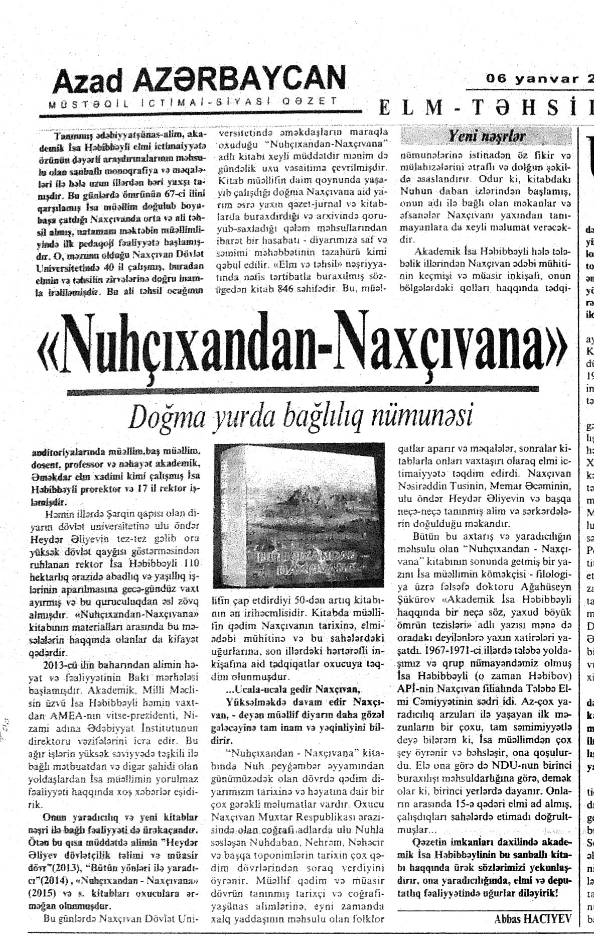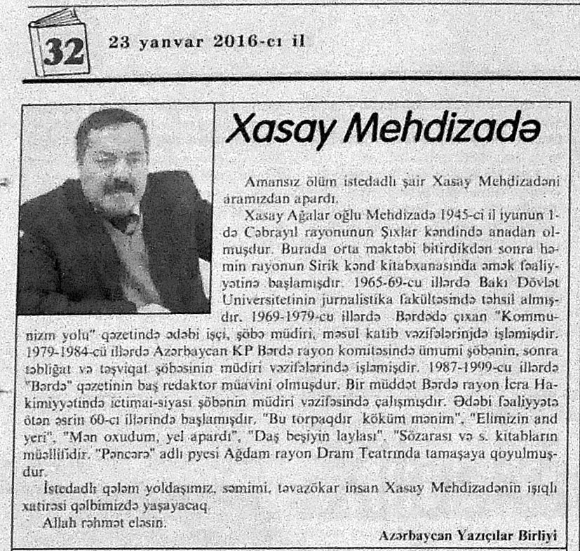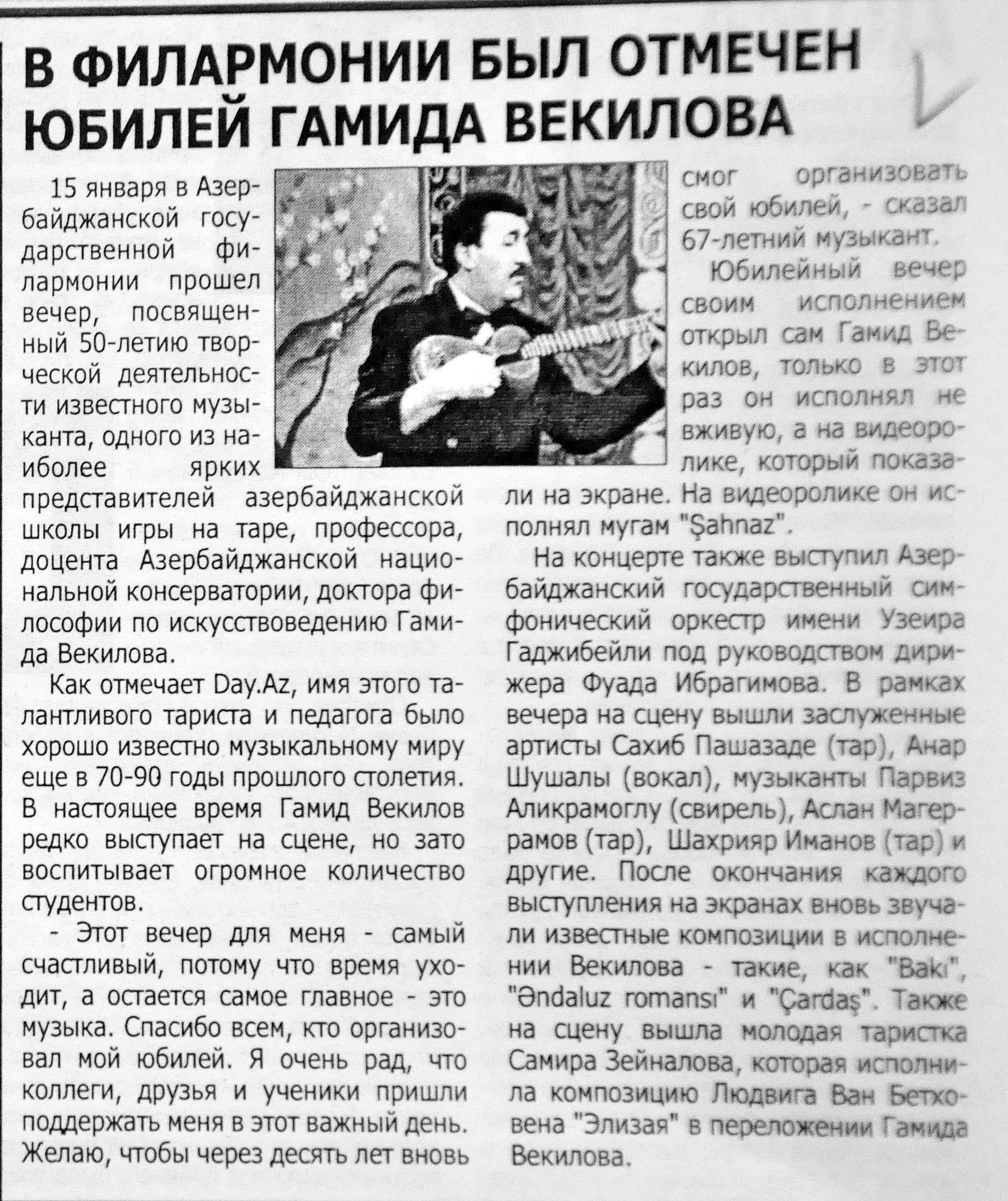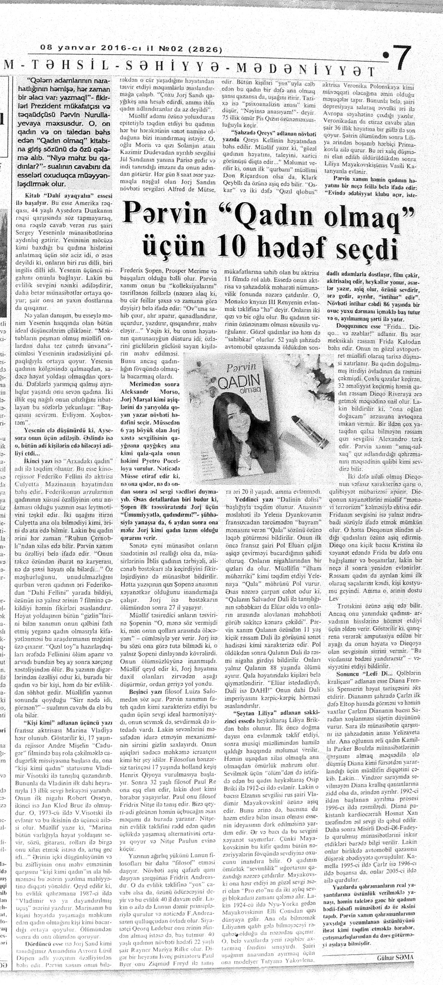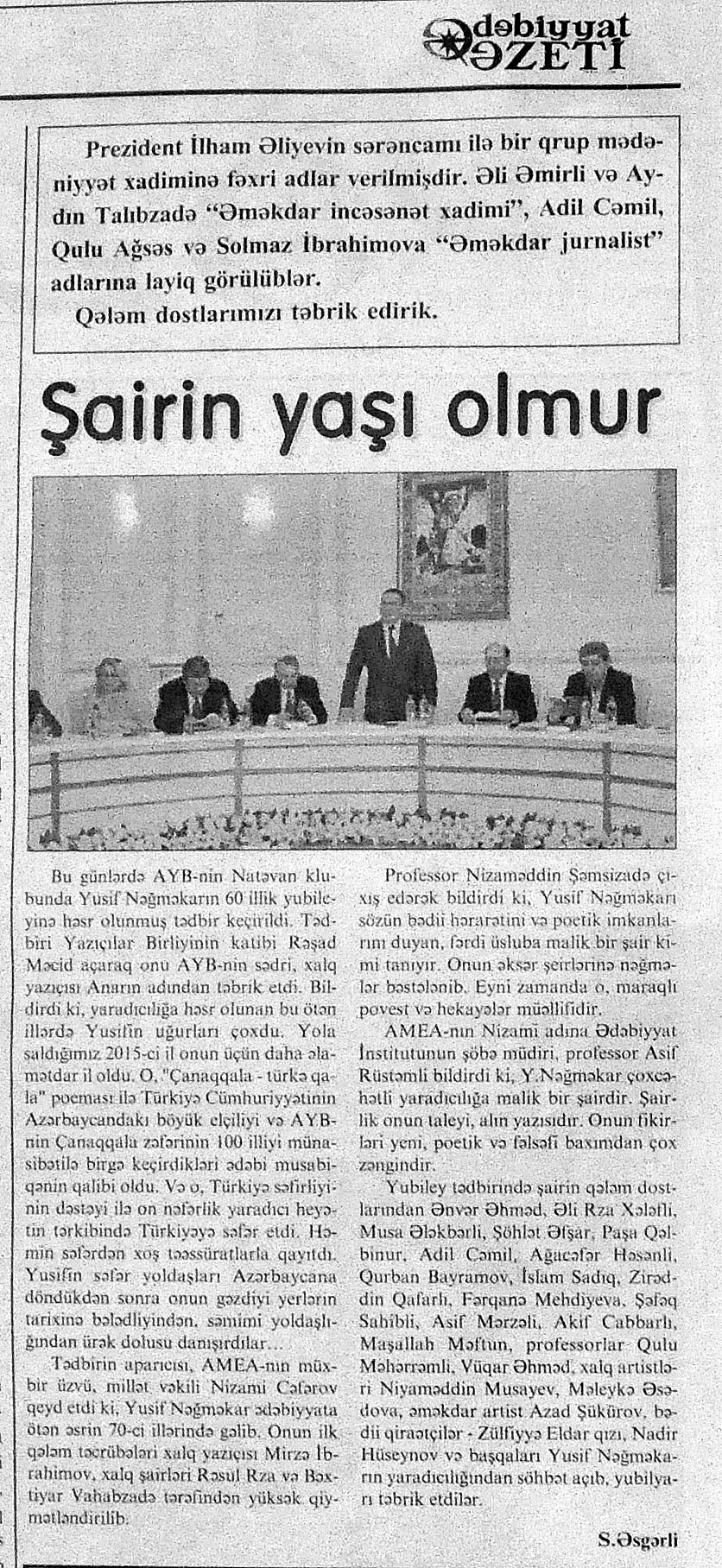 yanvar 2016-cı il //Azərbaycan.- 2016.- 12 yanvar.- S.6; Mədəniyyət.- 2016.-