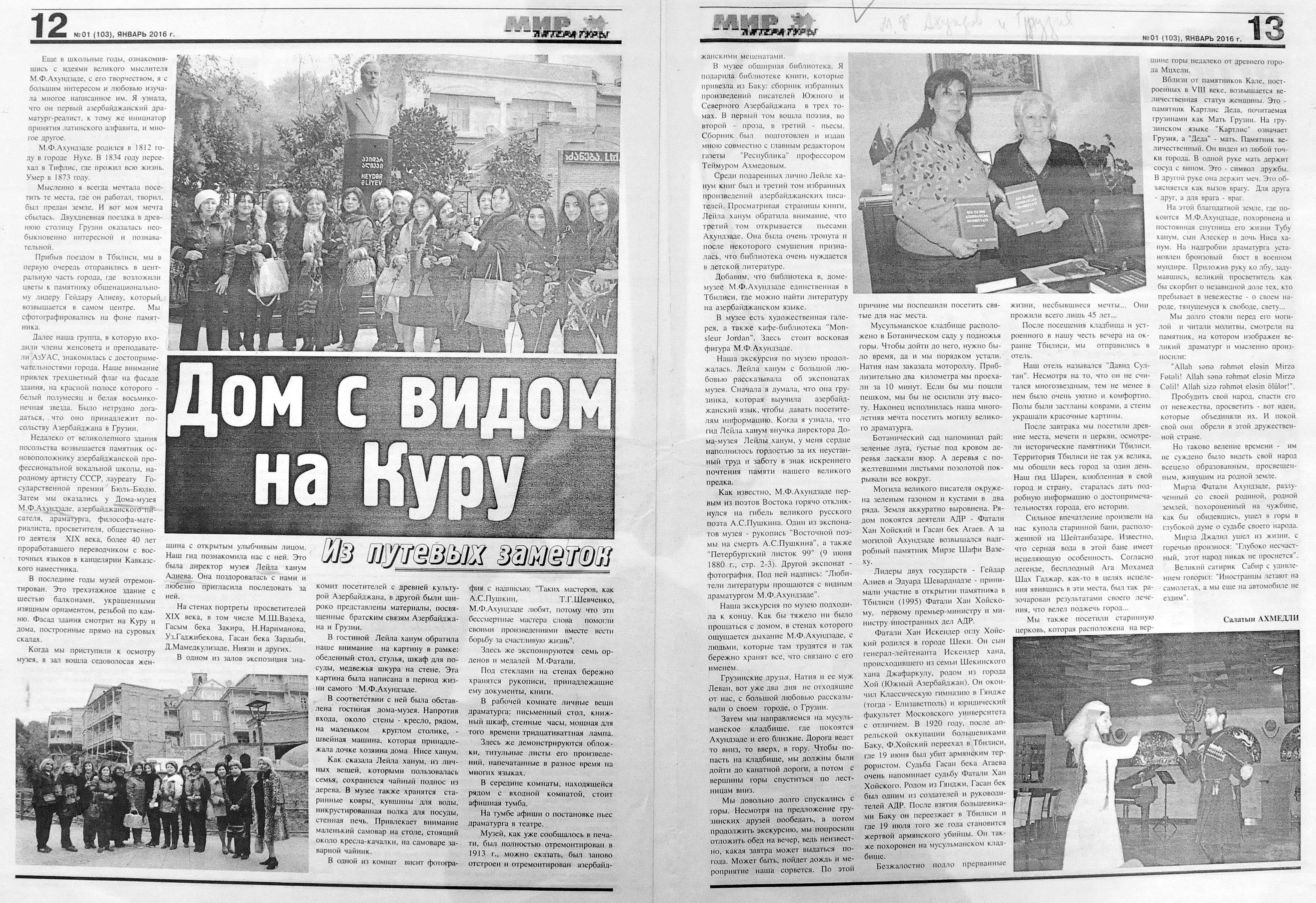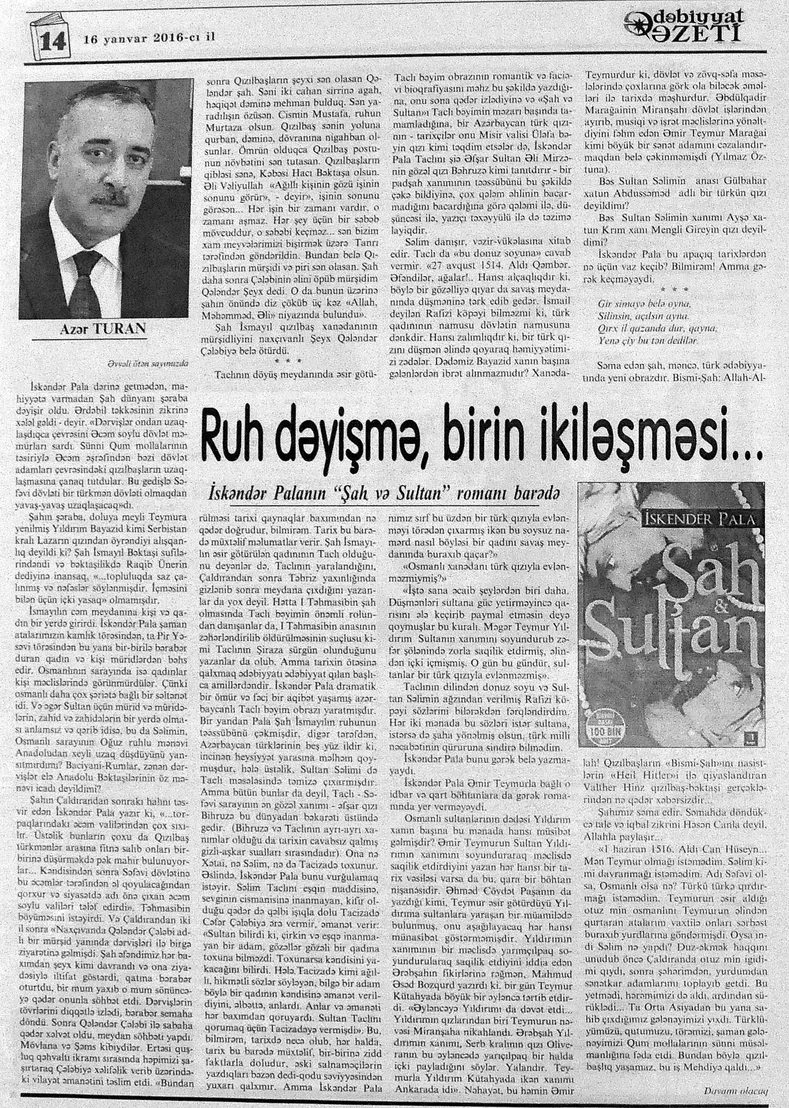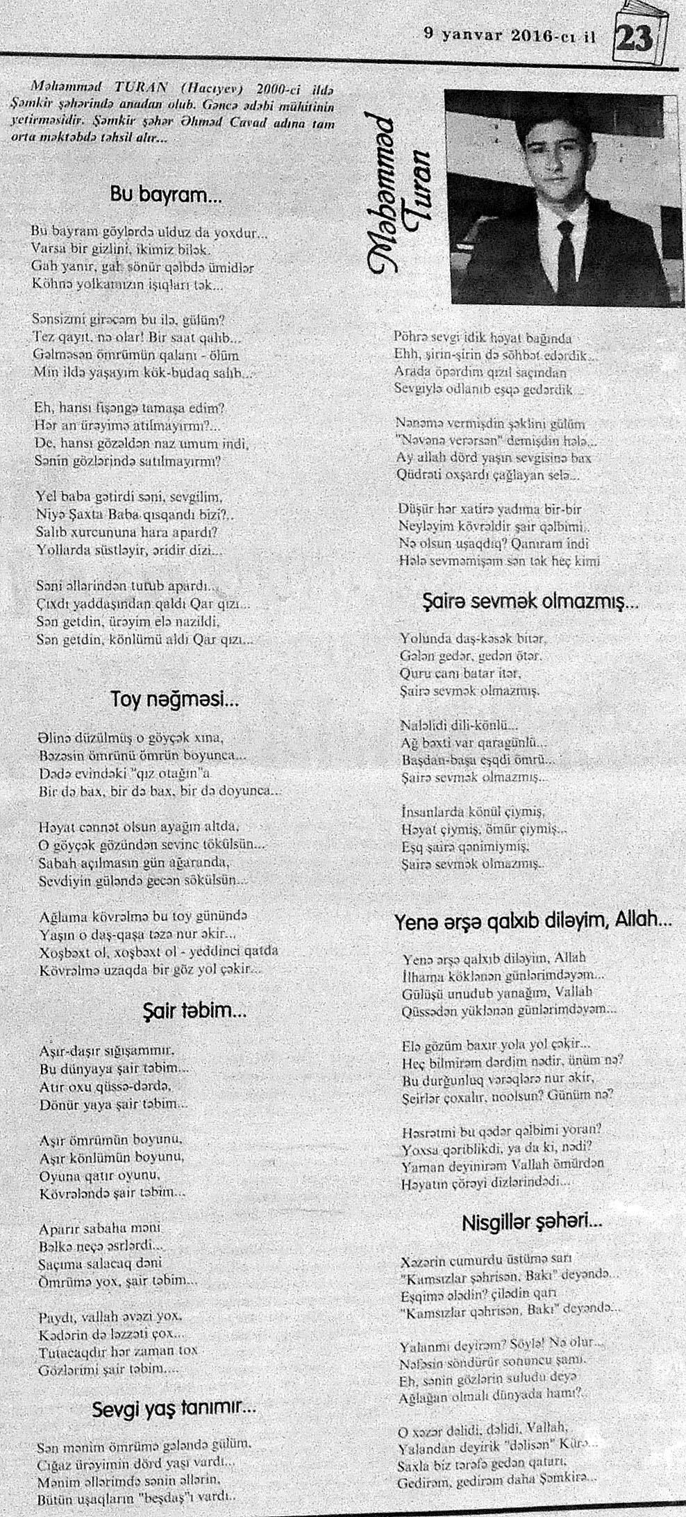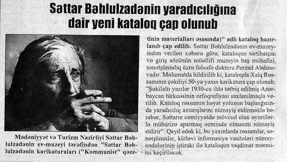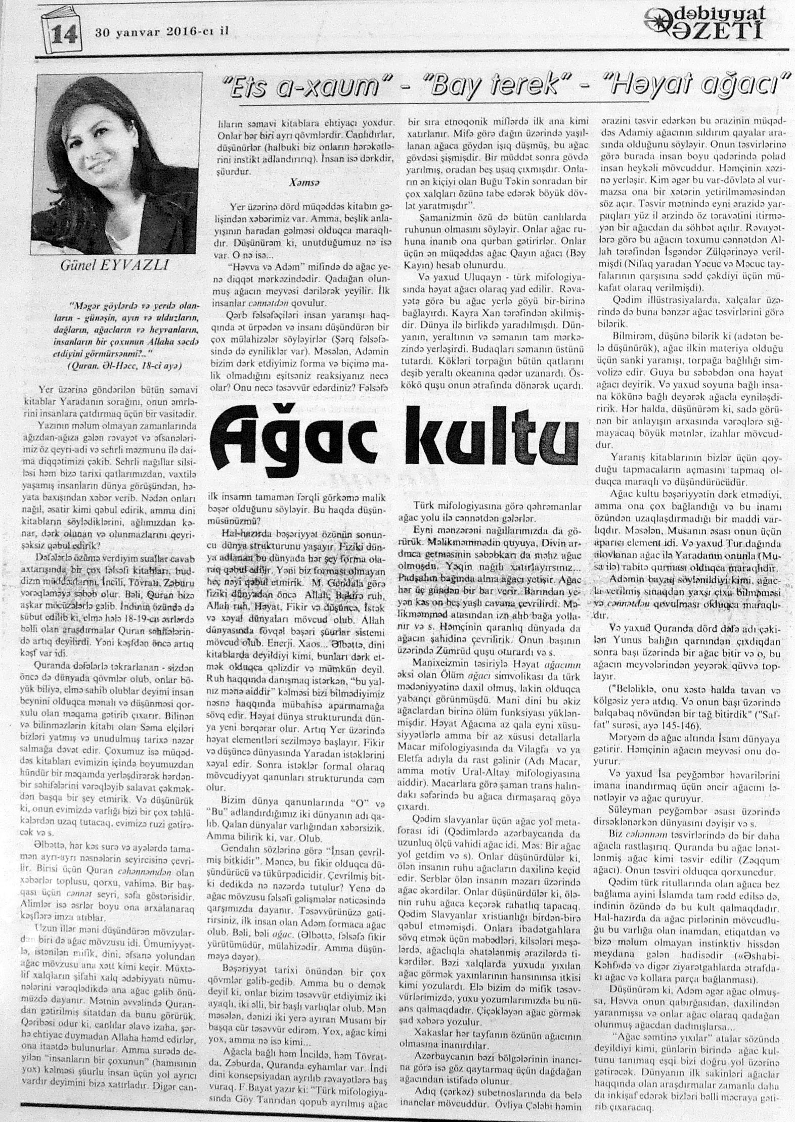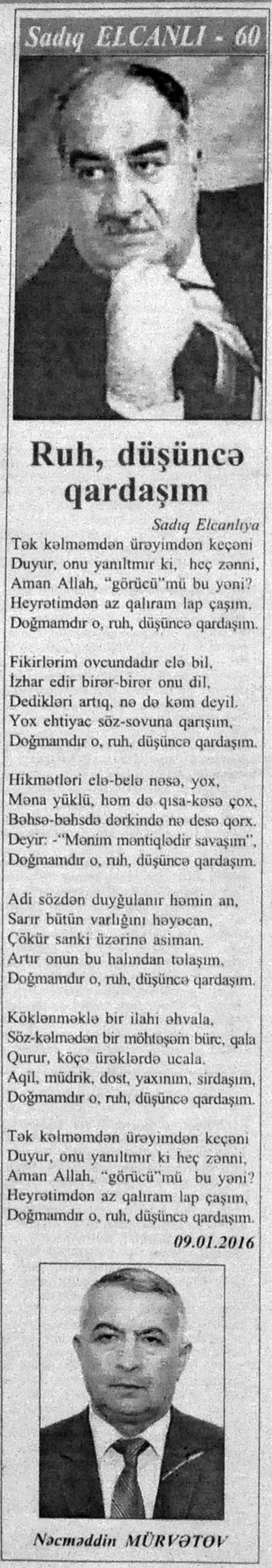yanvar 2016-cı il //Azərbaycan.- 2016.- 12 yanvar.- S.6; Mədəniyyət.- 2016.-