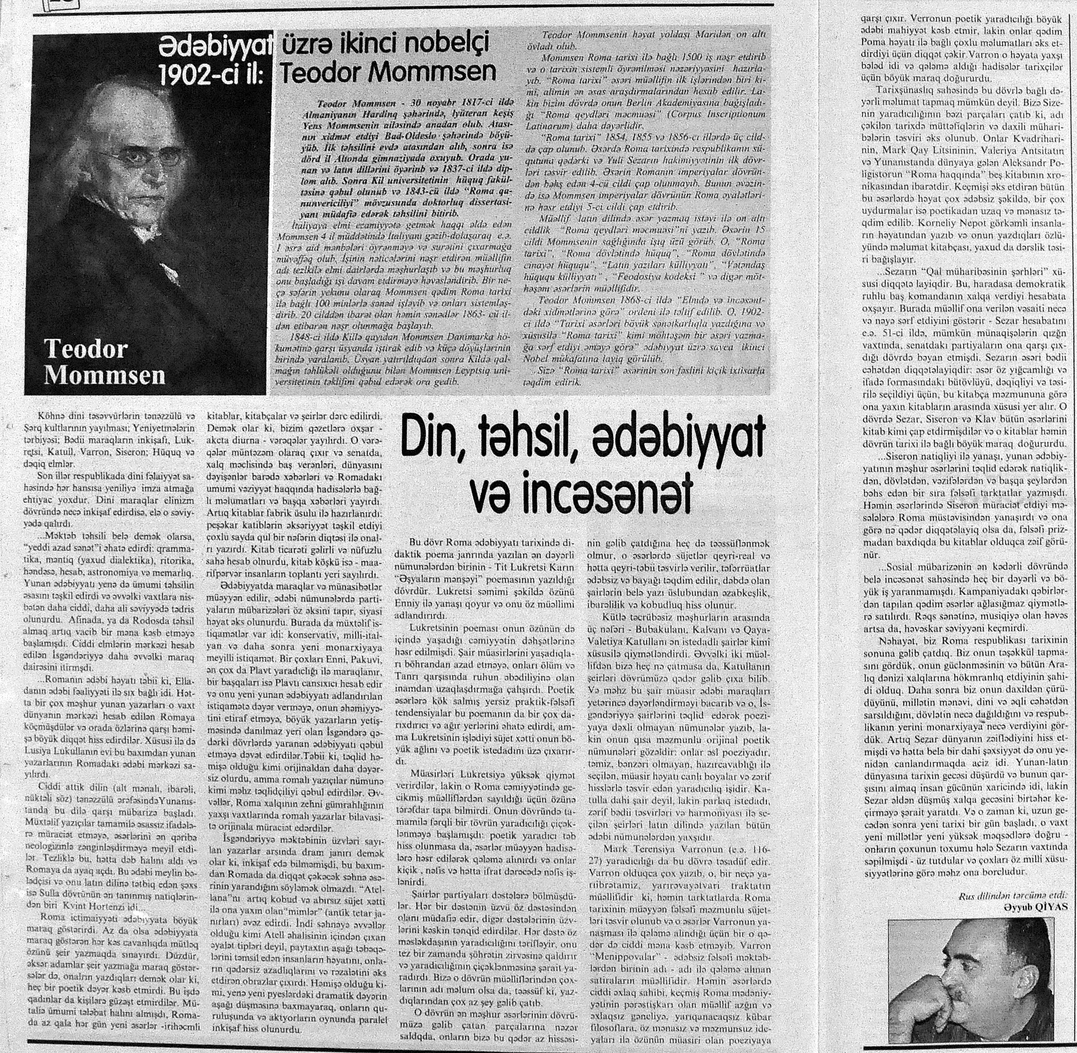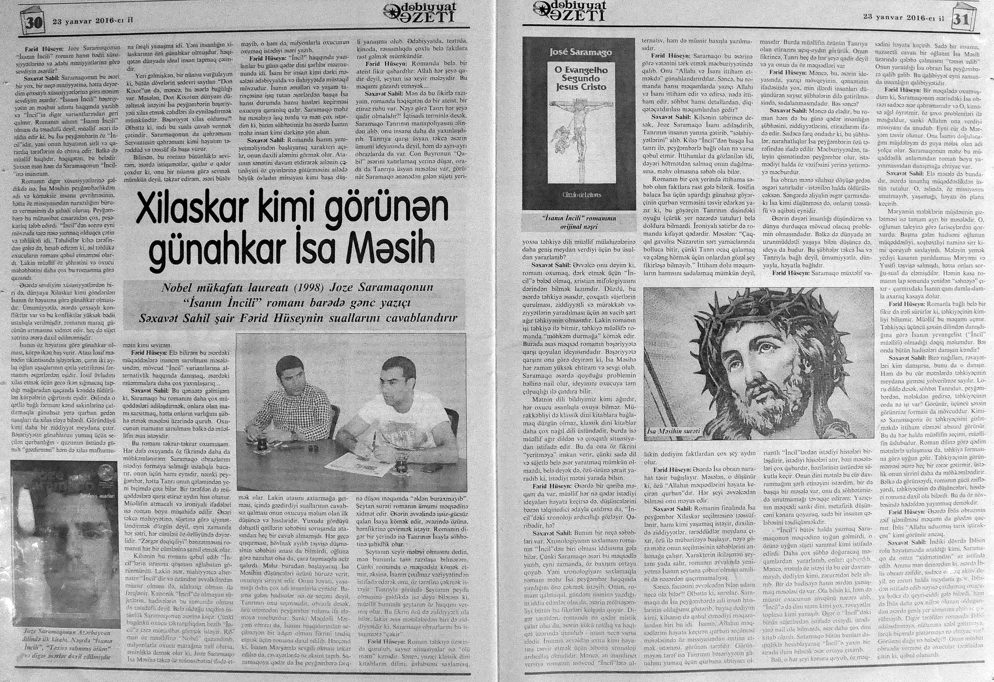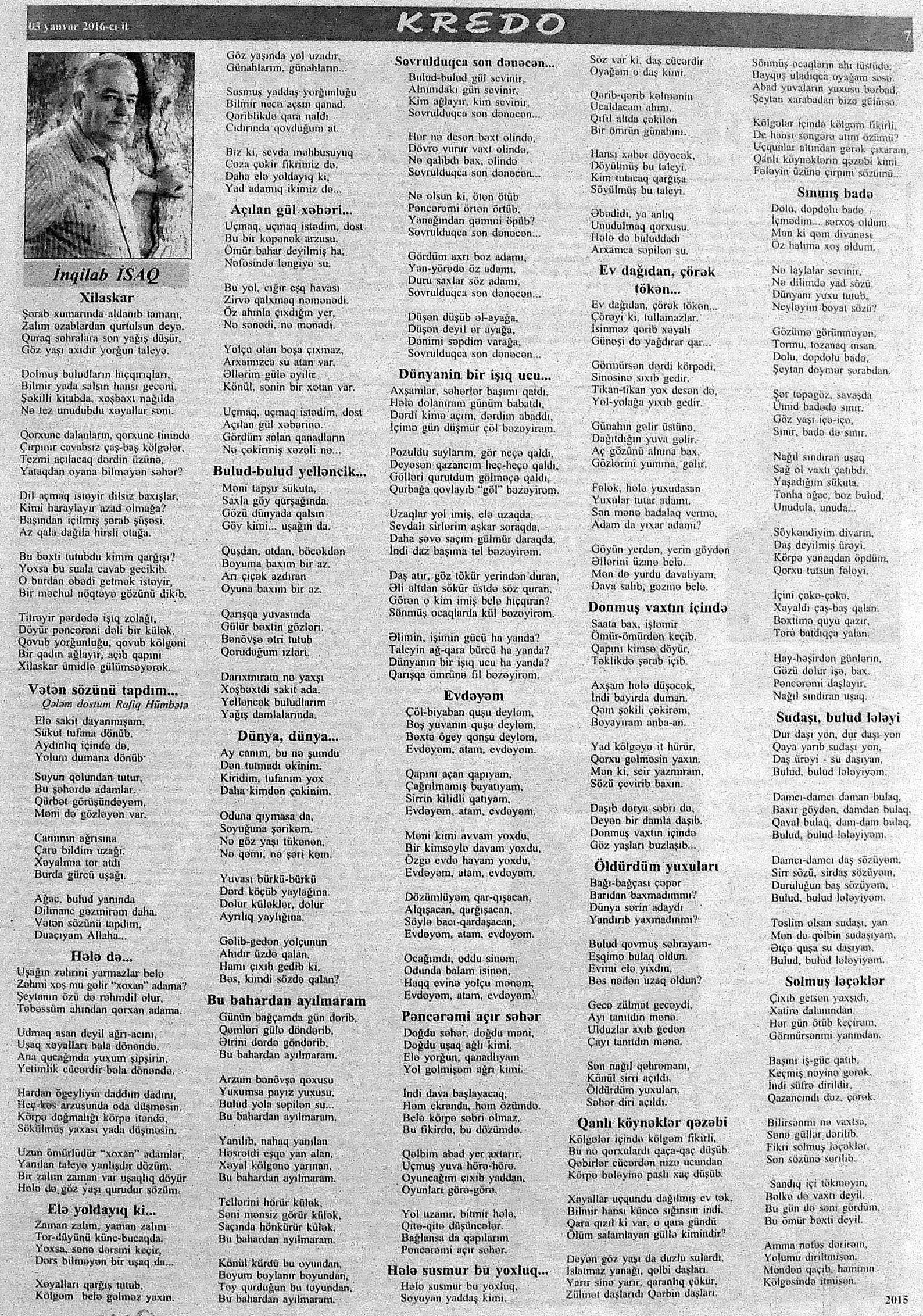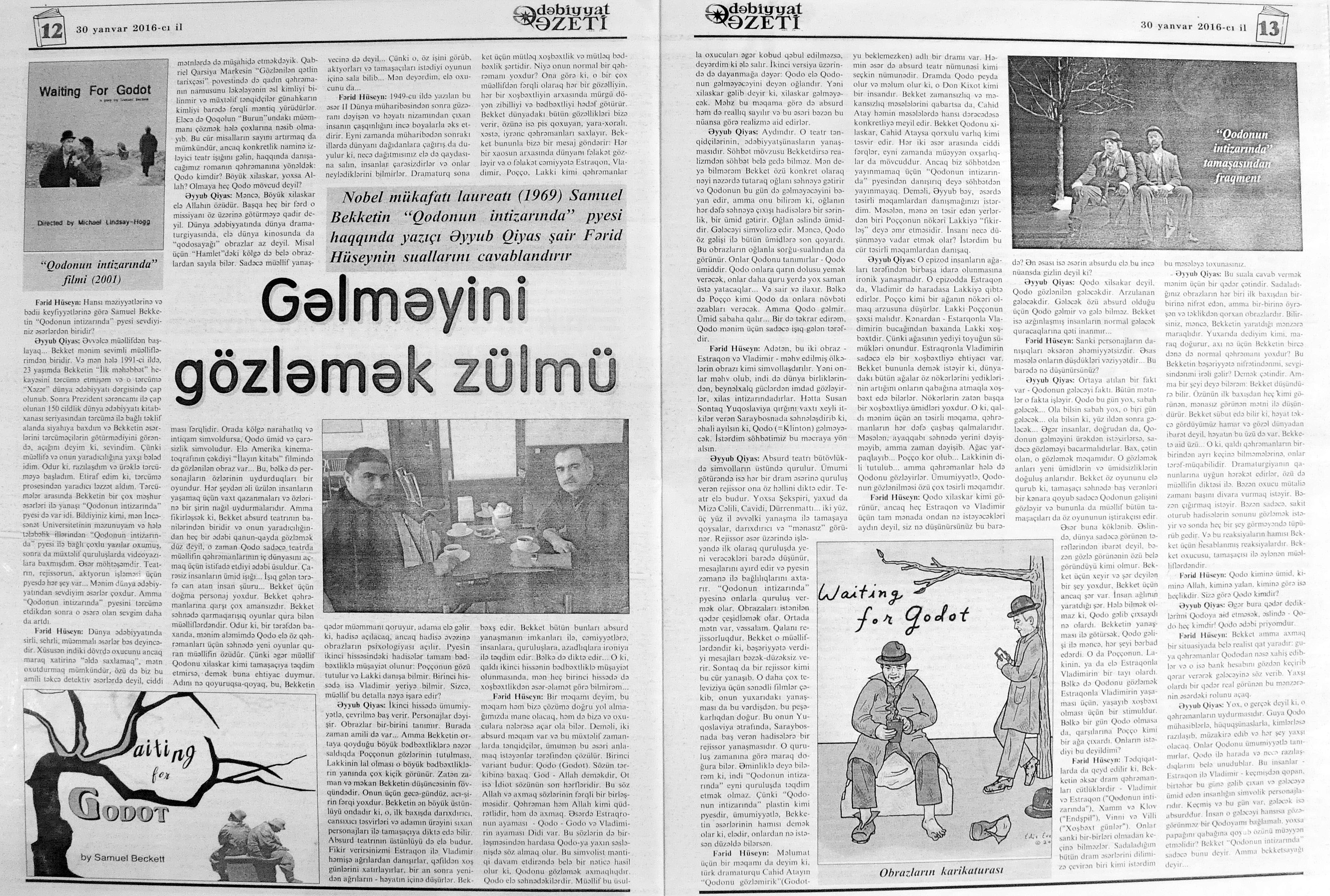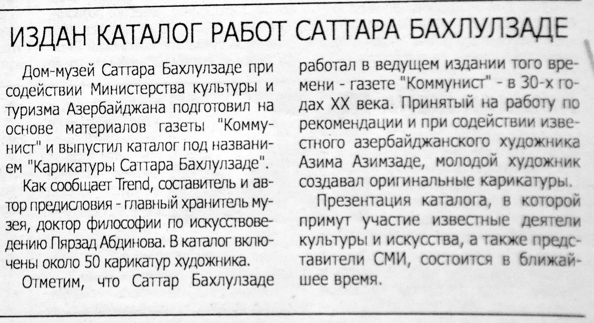 yanvar 2016-cı il //Azərbaycan.- 2016.- 12 yanvar.- S.6; Mədəniyyət.- 2016.-