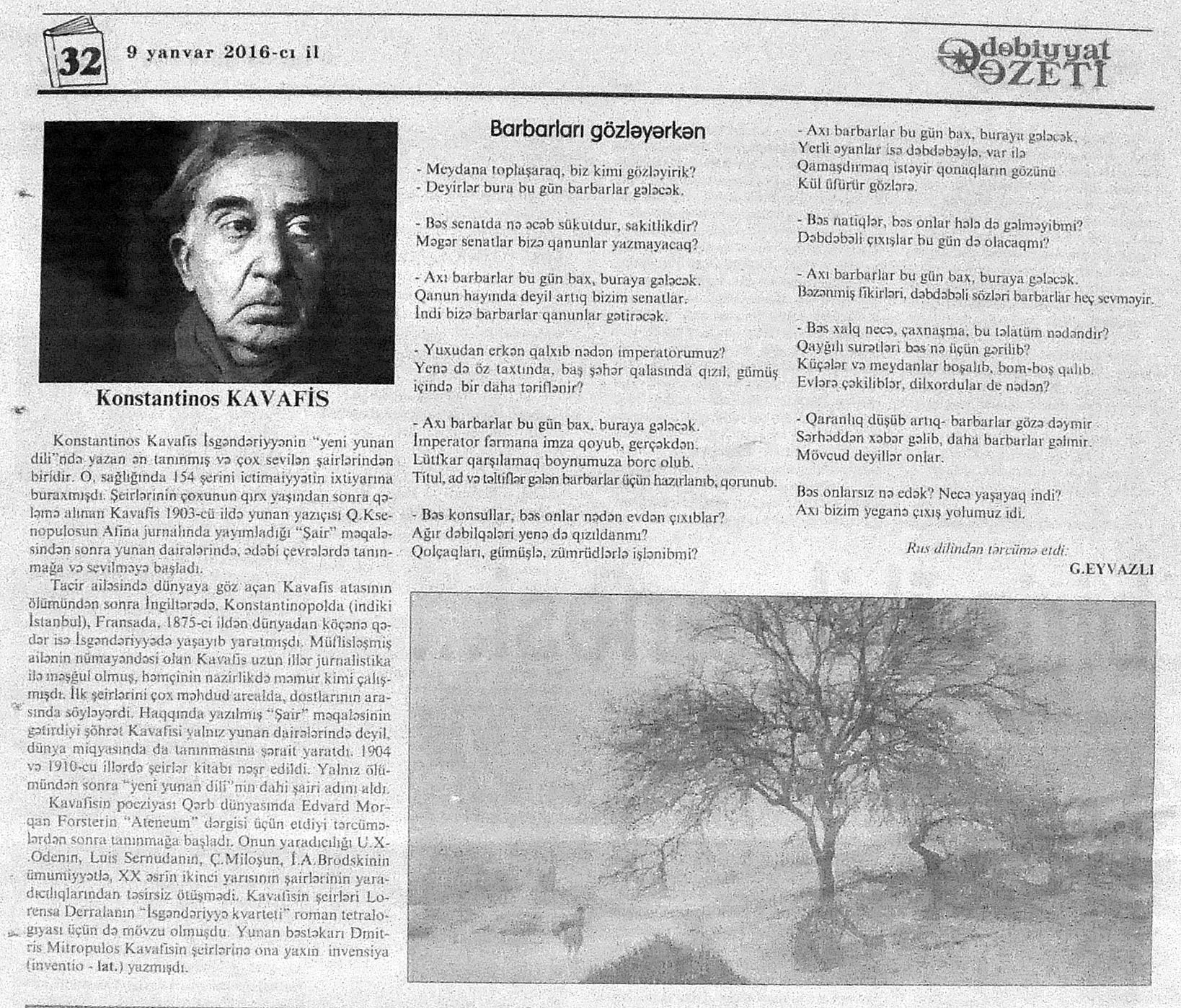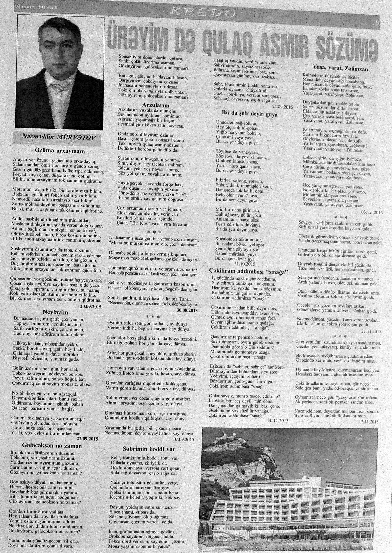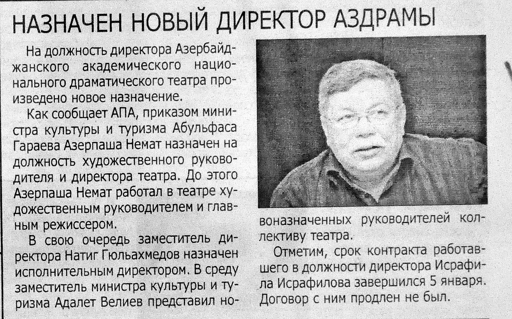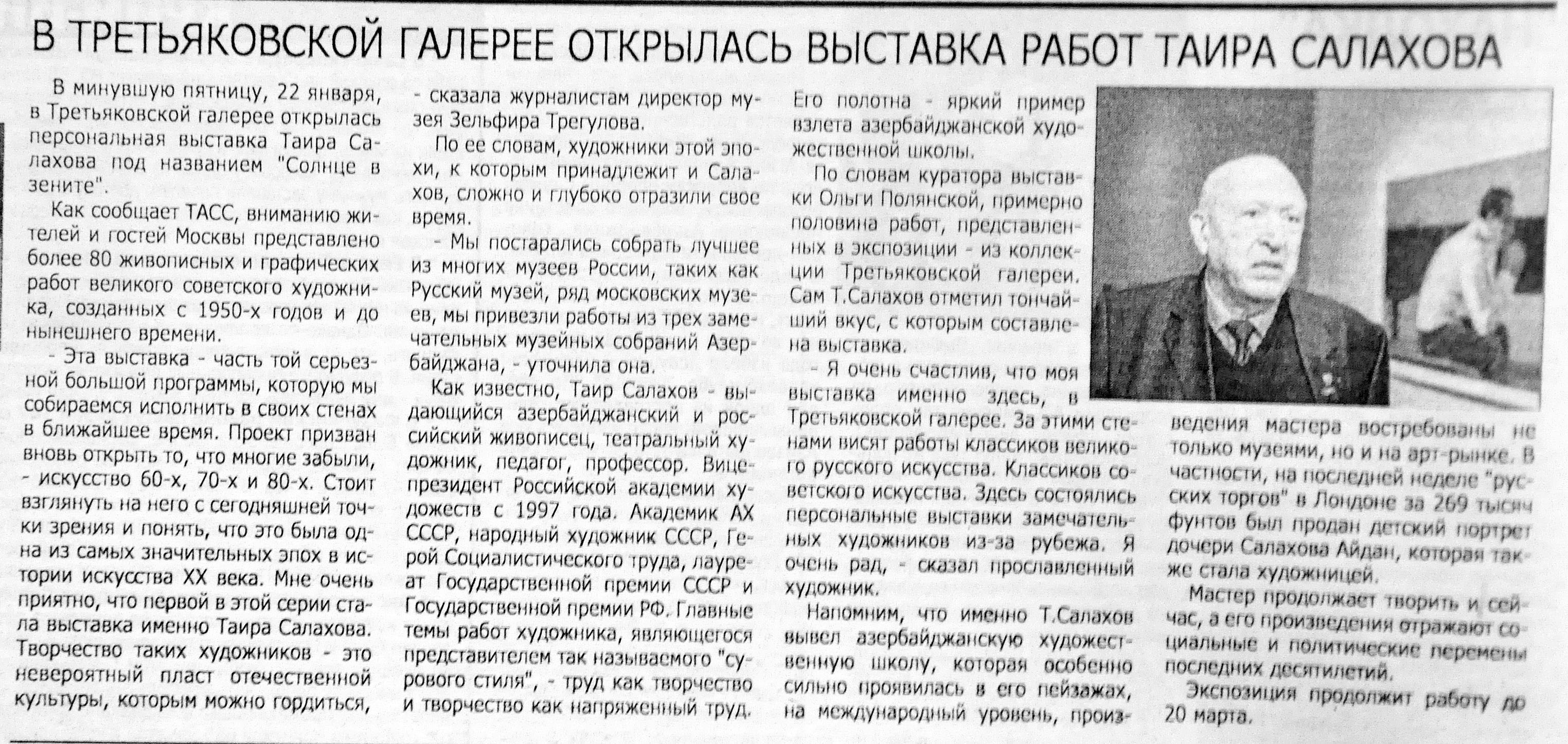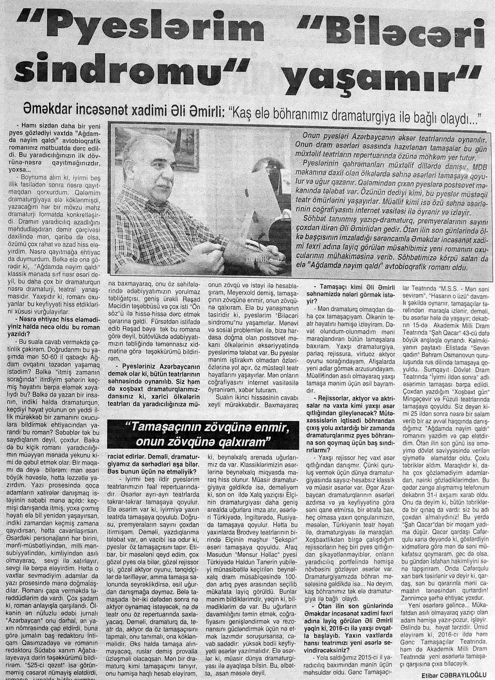 yanvar 2016-cı il //Azərbaycan.- 2016.- 12 yanvar.- S.6; Mədəniyyət.- 2016.-