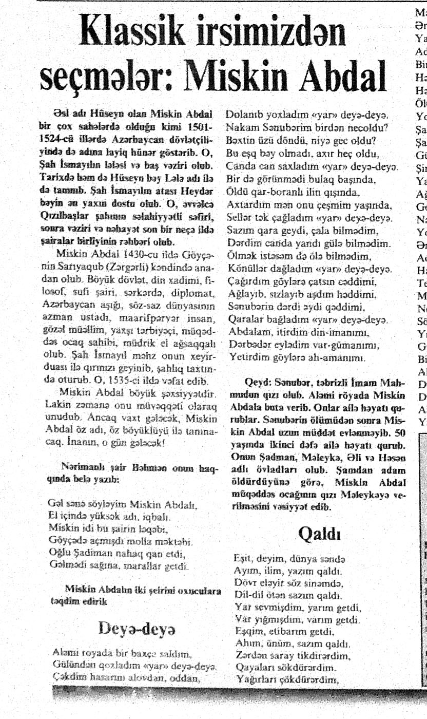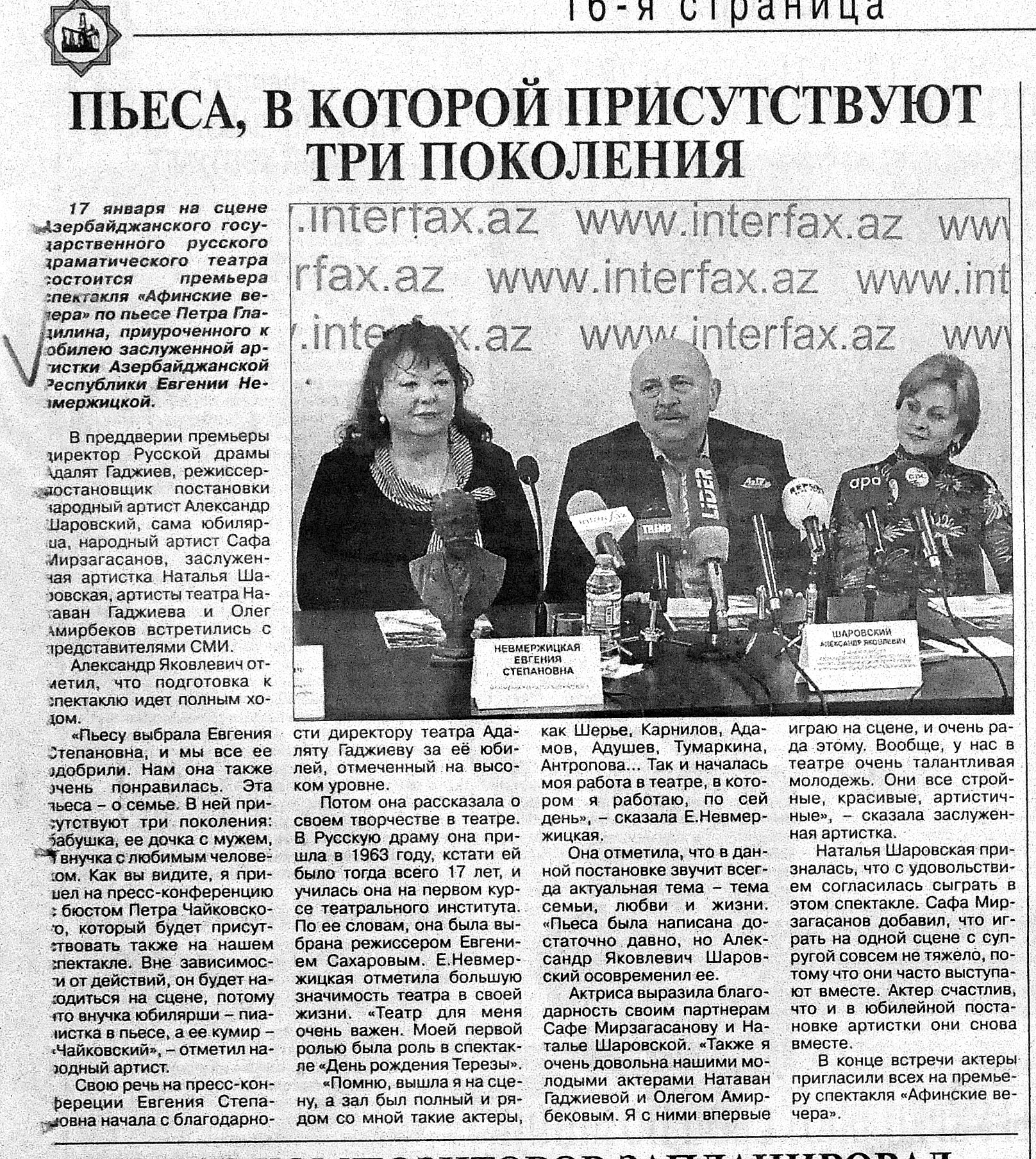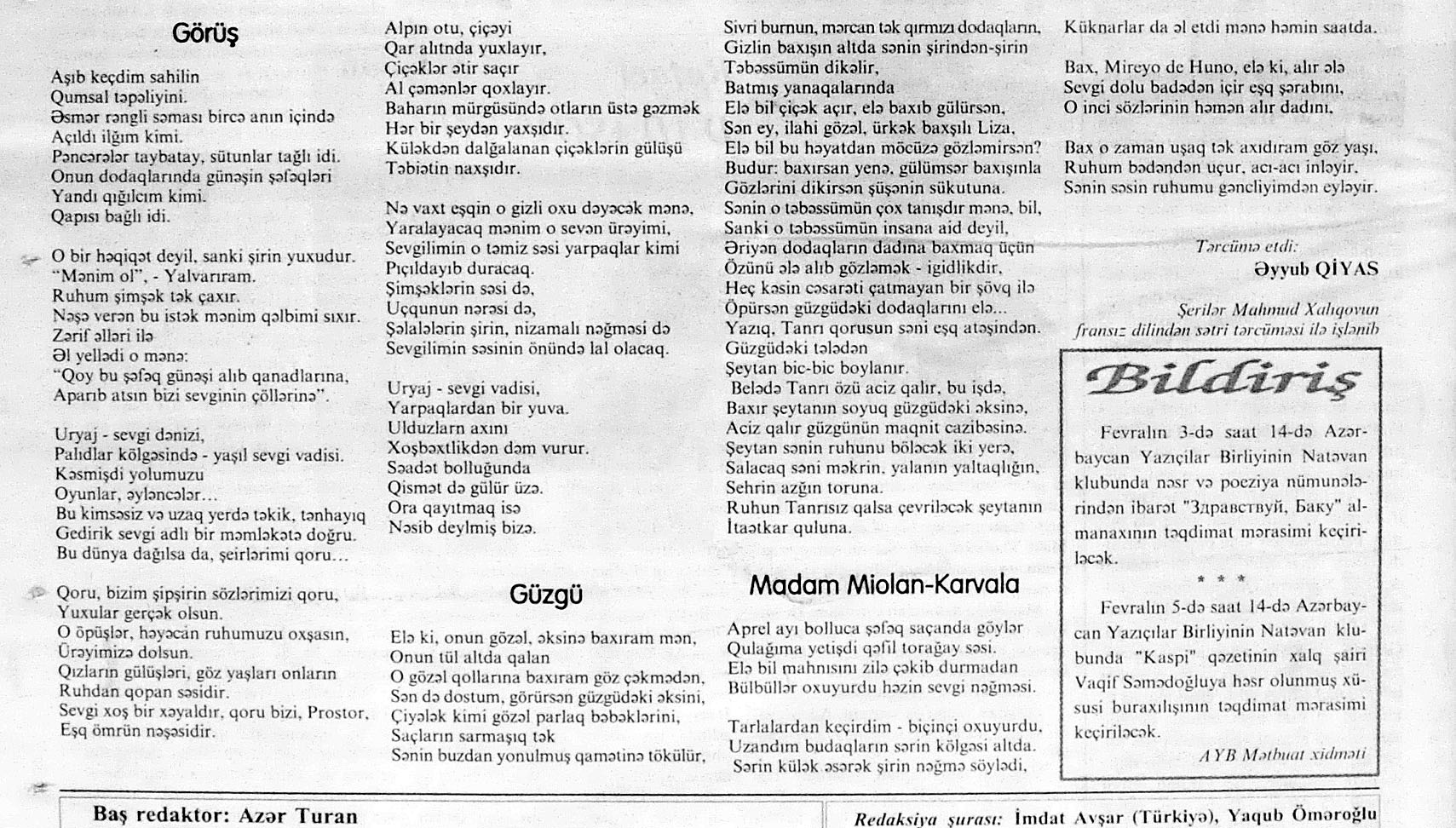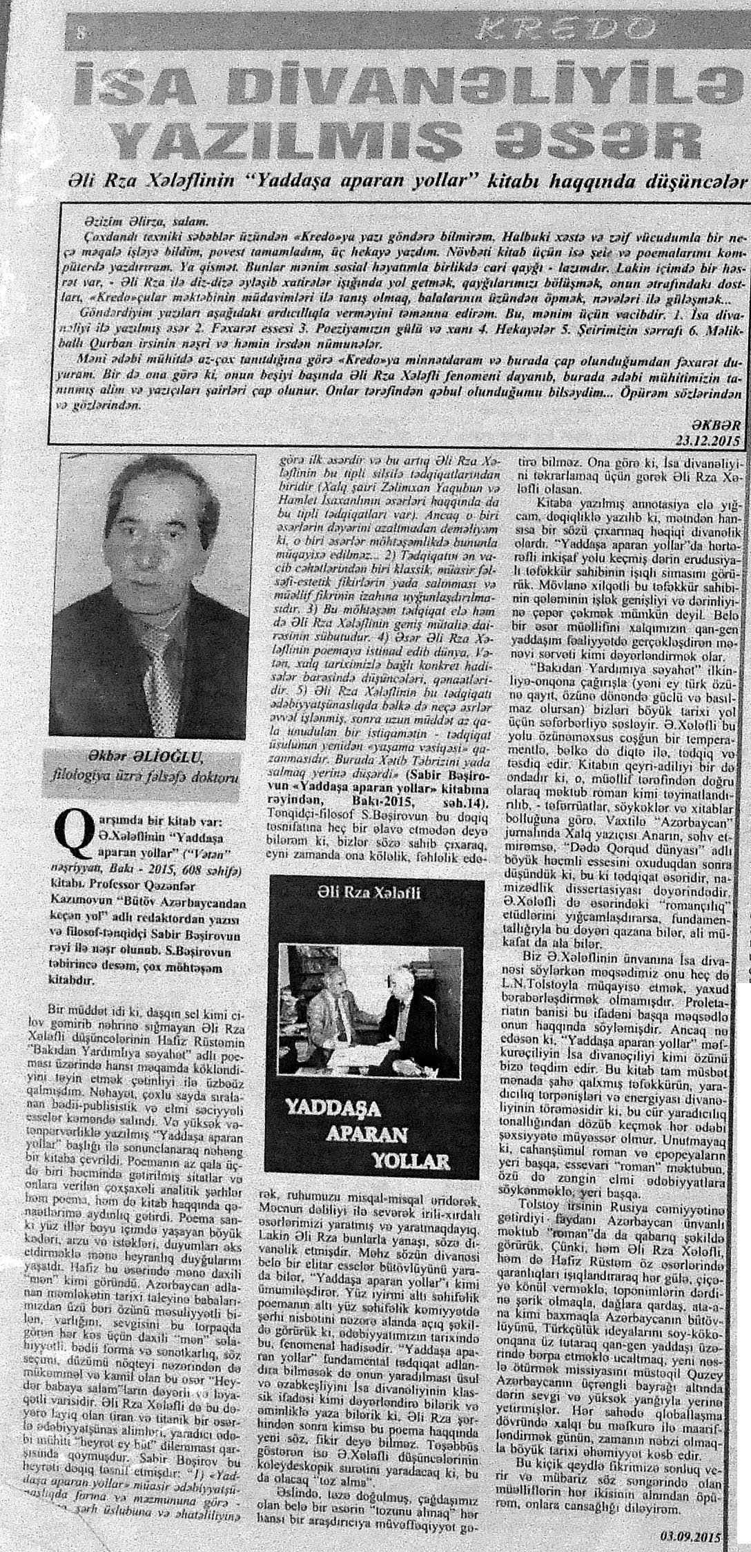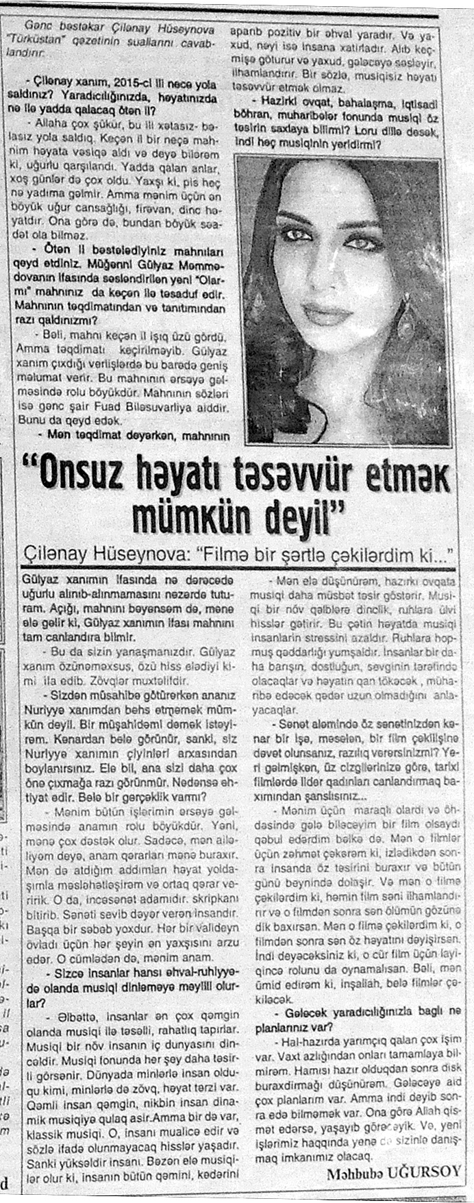 yanvar 2016-cı il //Azərbaycan.- 2016.- 12 yanvar.- S.6; Mədəniyyət.- 2016.-